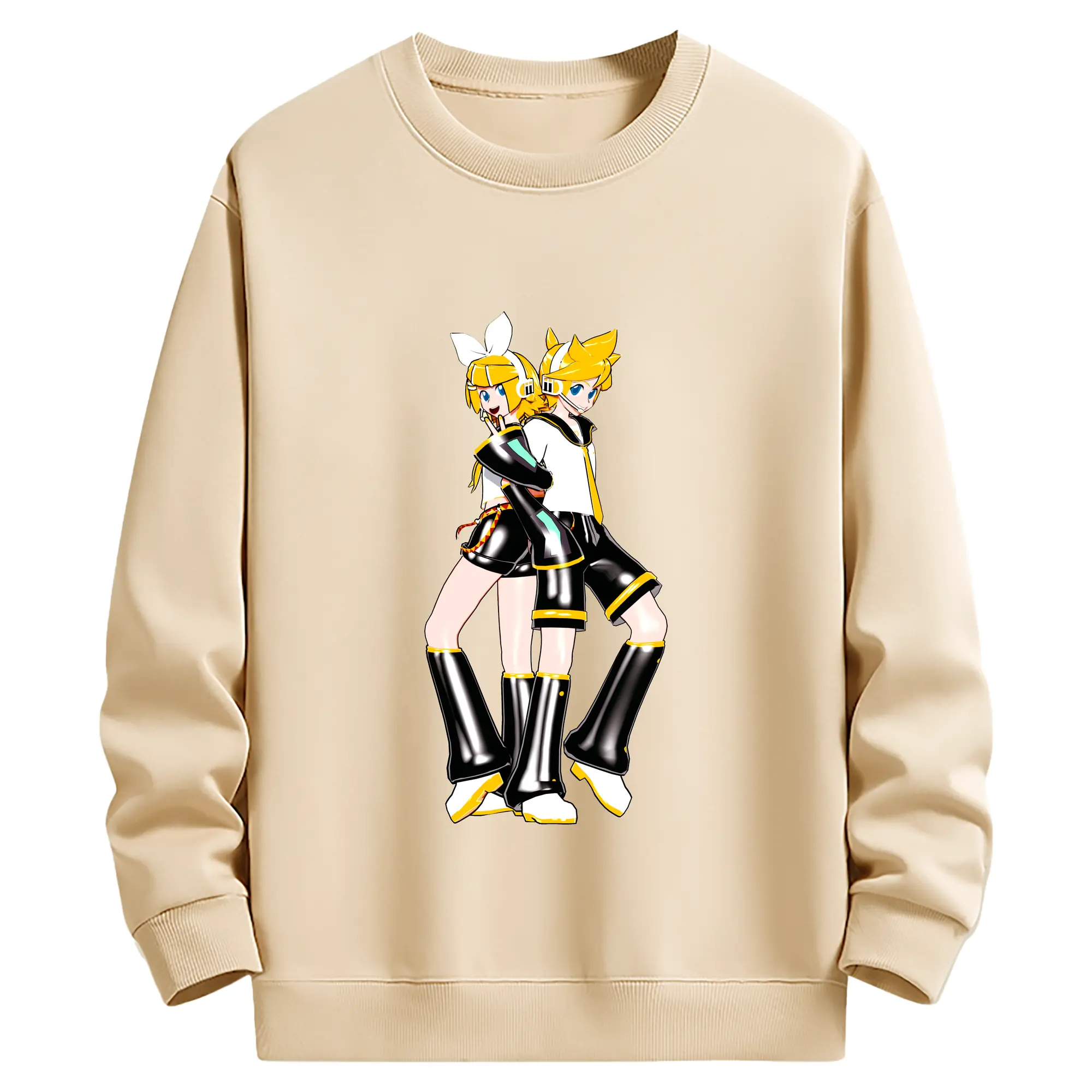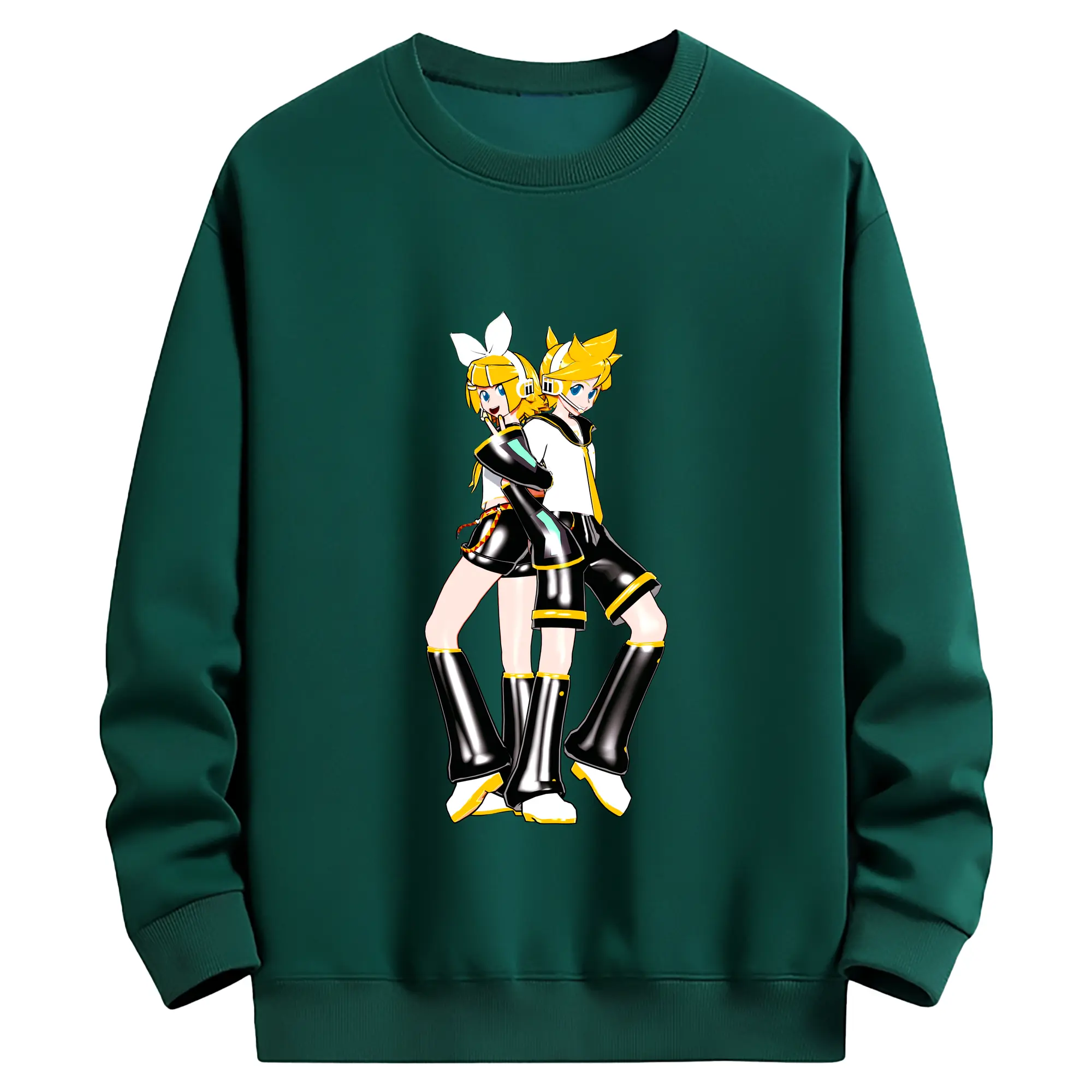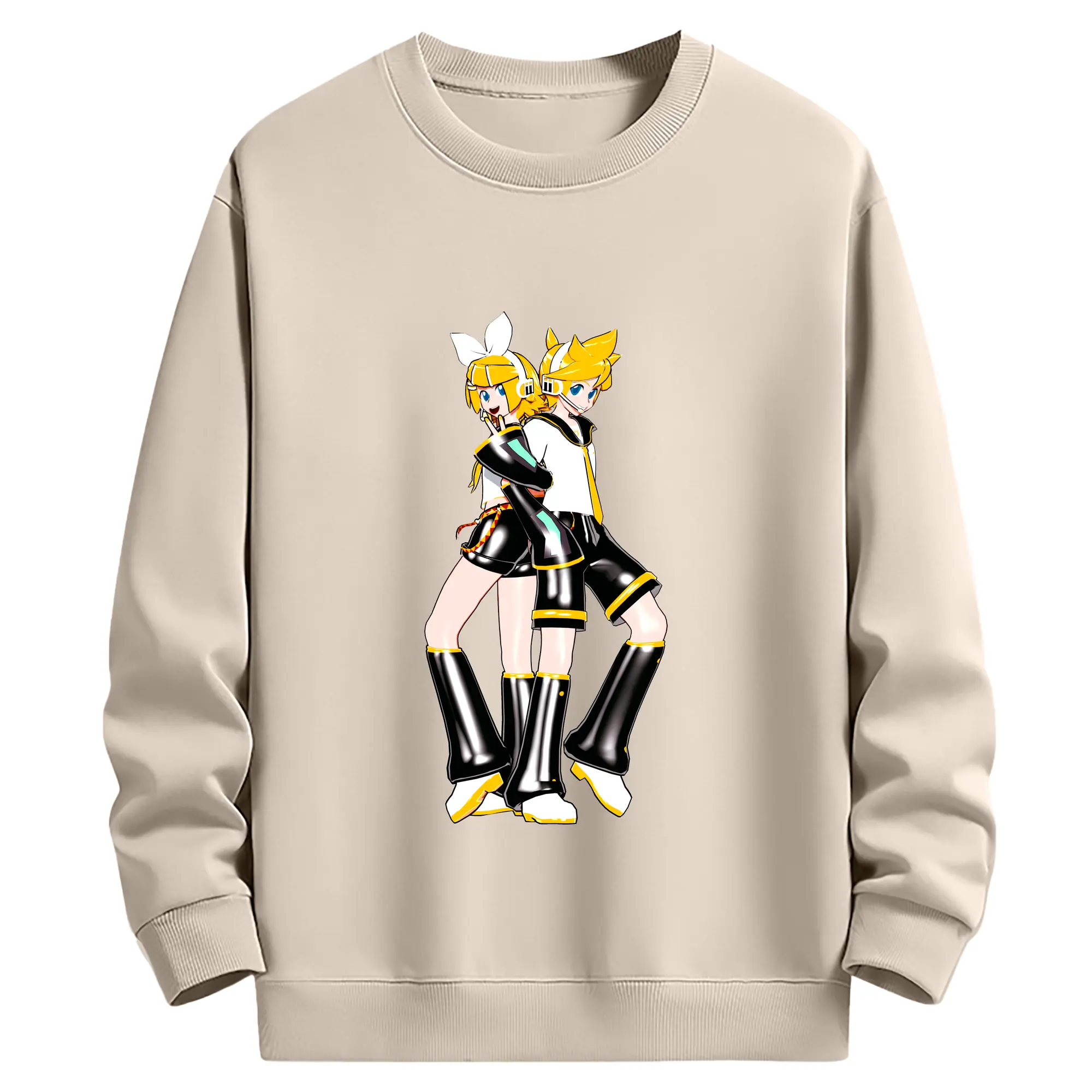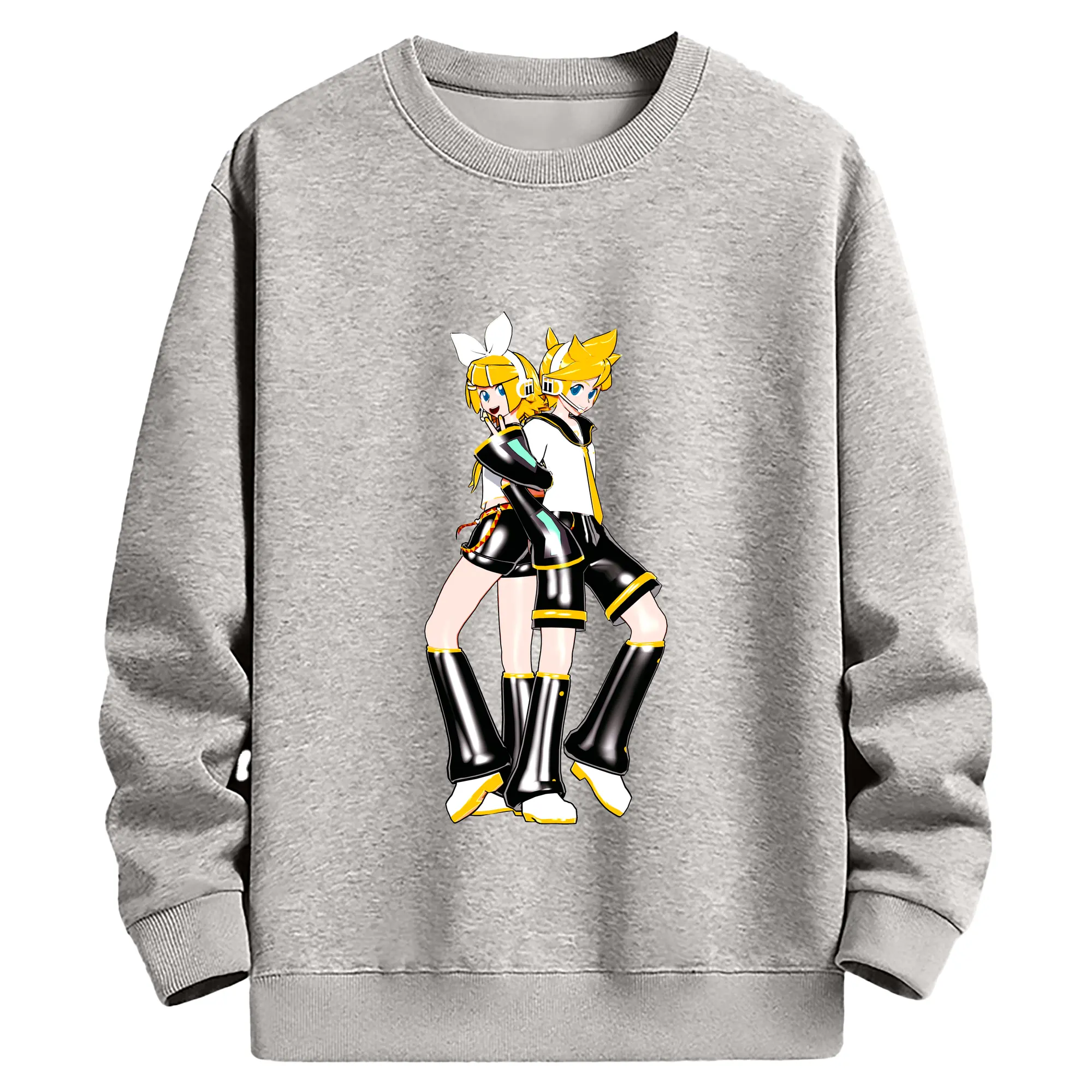 鏡音リン・レン シンプルスタイル - 綿100% 半袖Tシャツ ・ フロントプリント ・ 快適 通気性 ・ 日常使い 散歩 スポーツ用