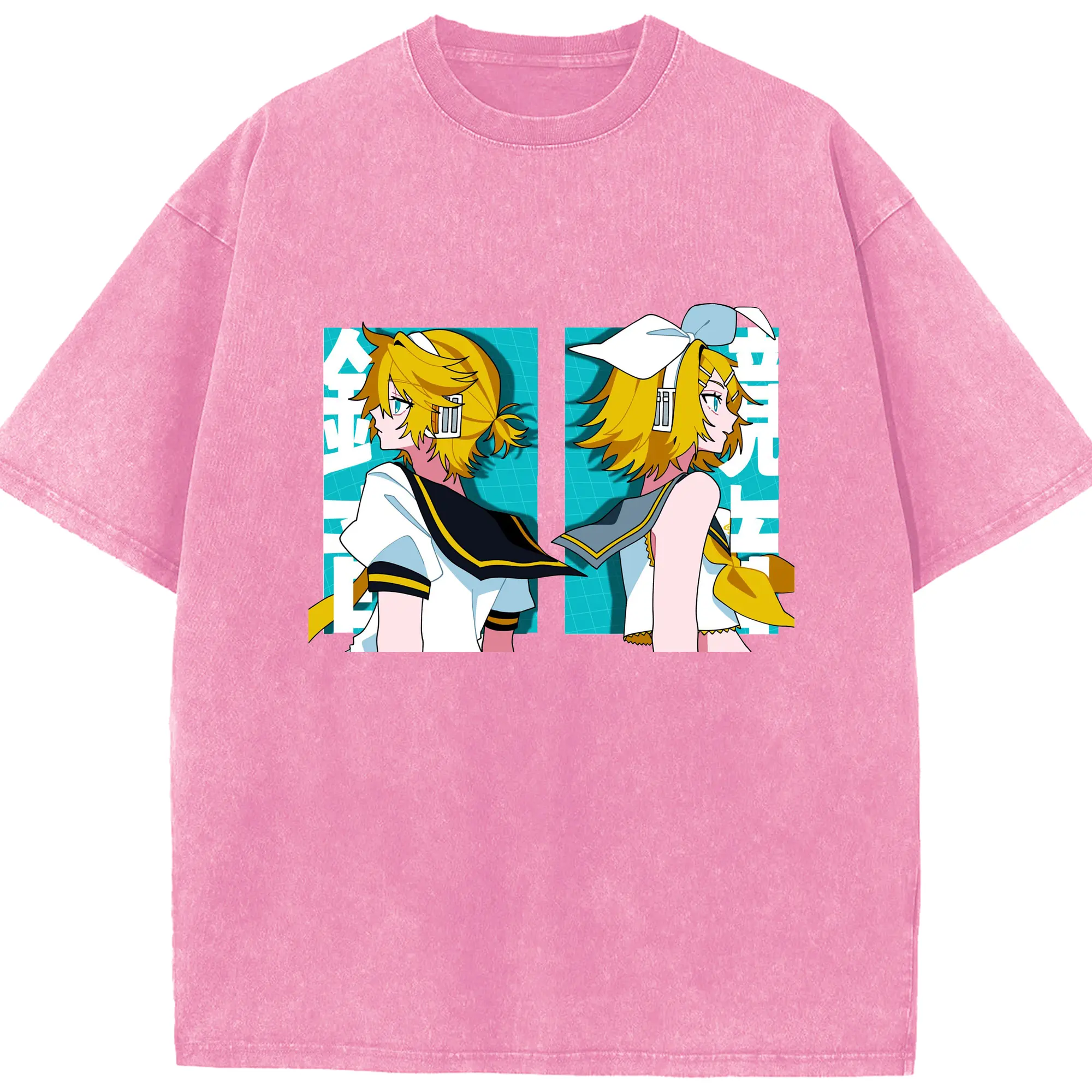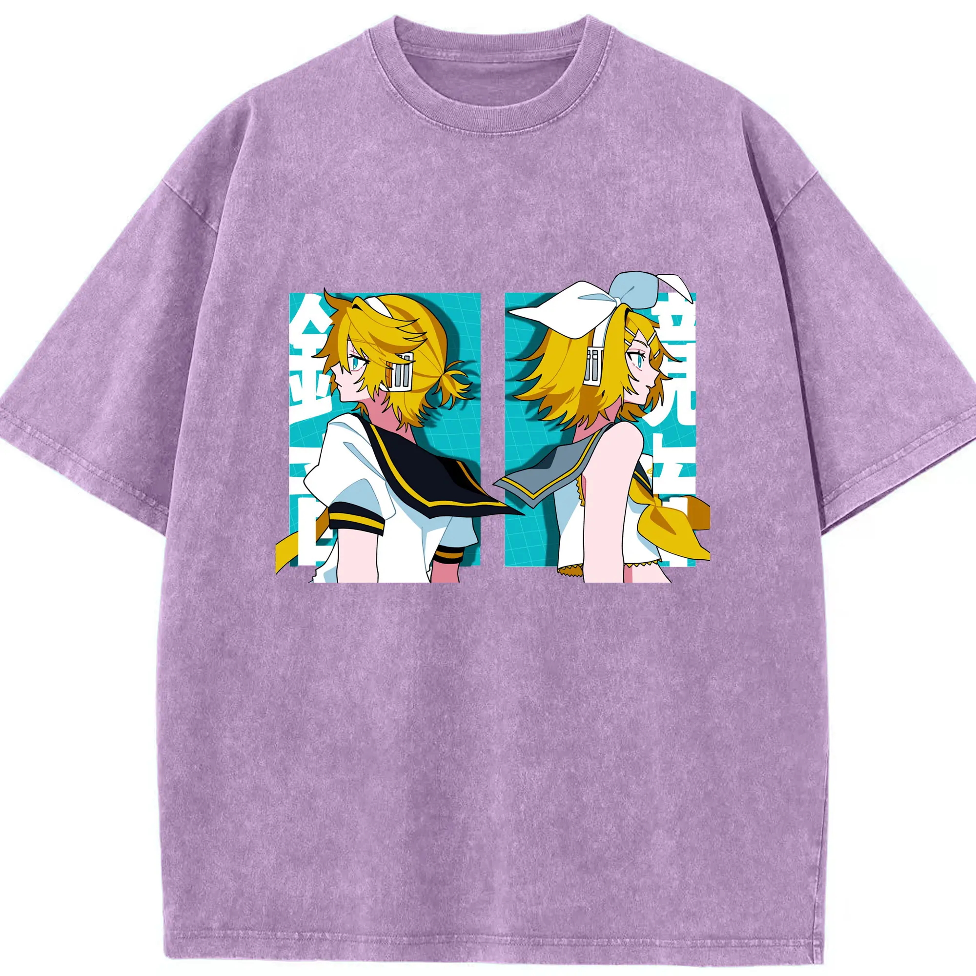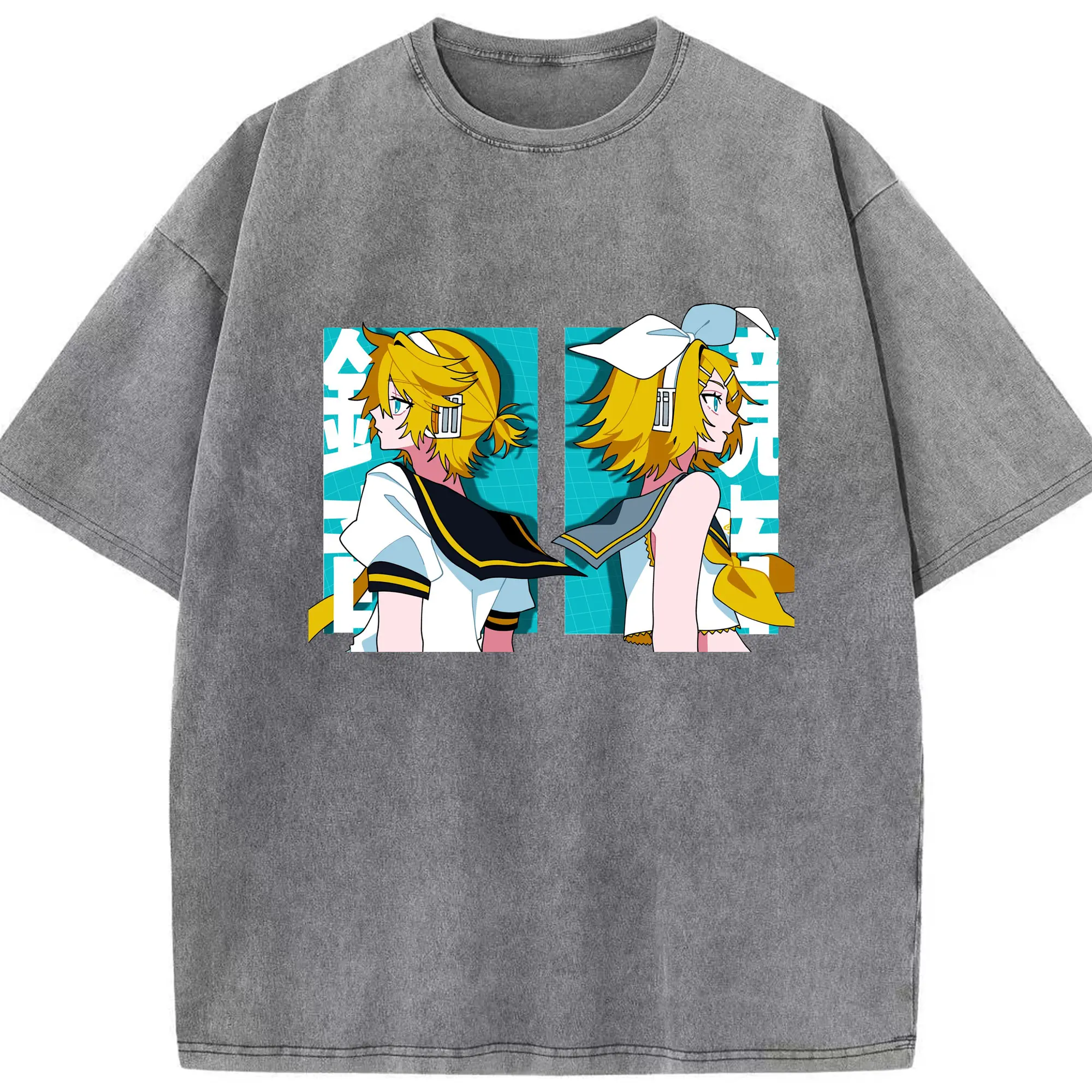 鏡音リン・レン 二次元 グッズ - 綿100% 半袖Tシャツ ・ フロントプリント ・ 快適 通気性 ・ 日常使い 散歩 スポーツ用
