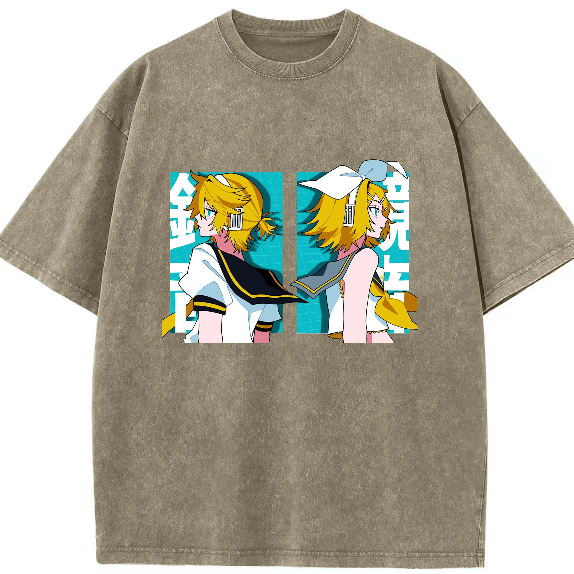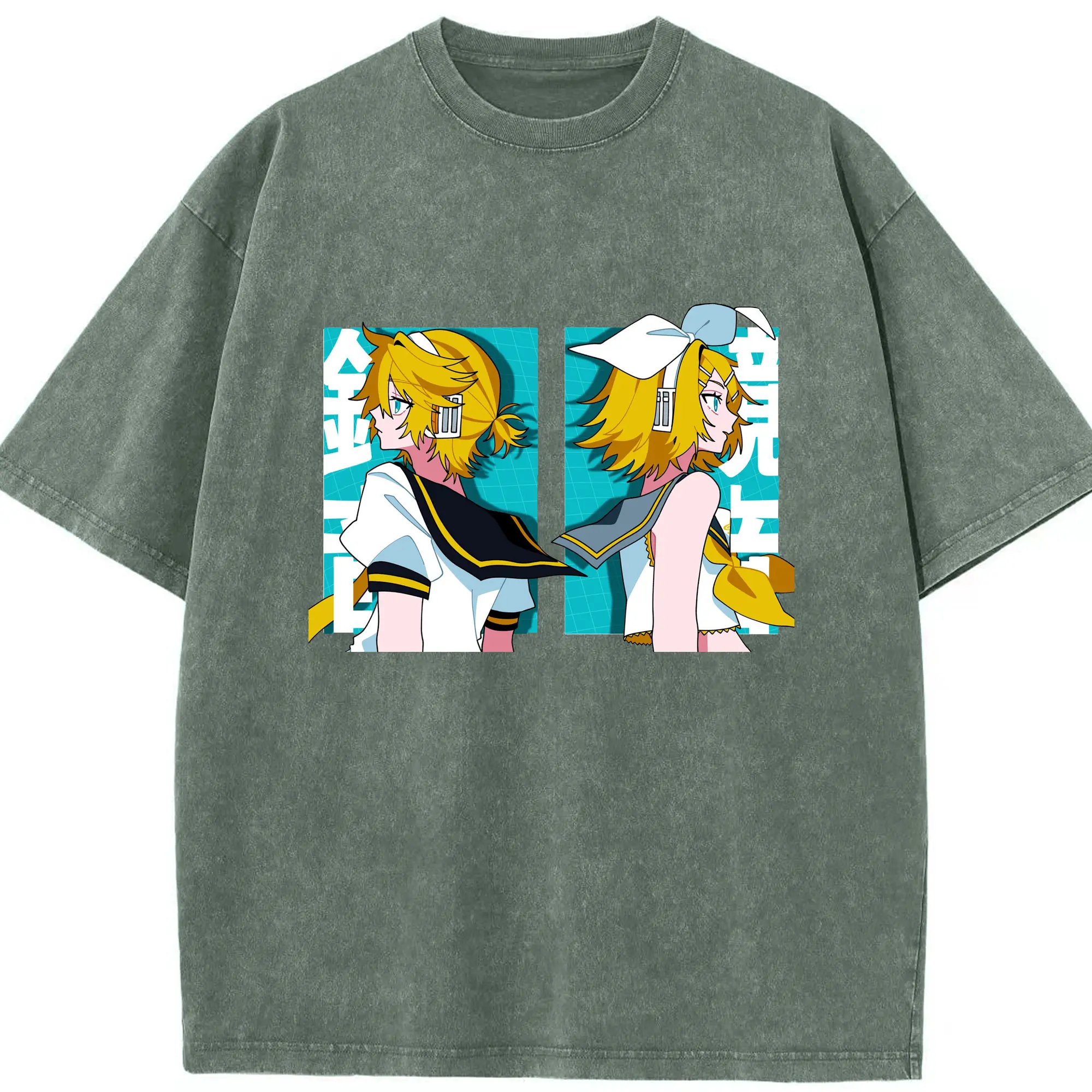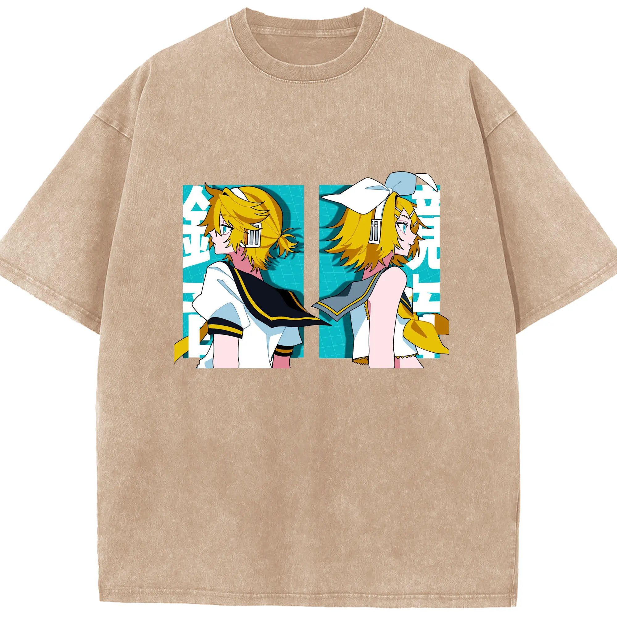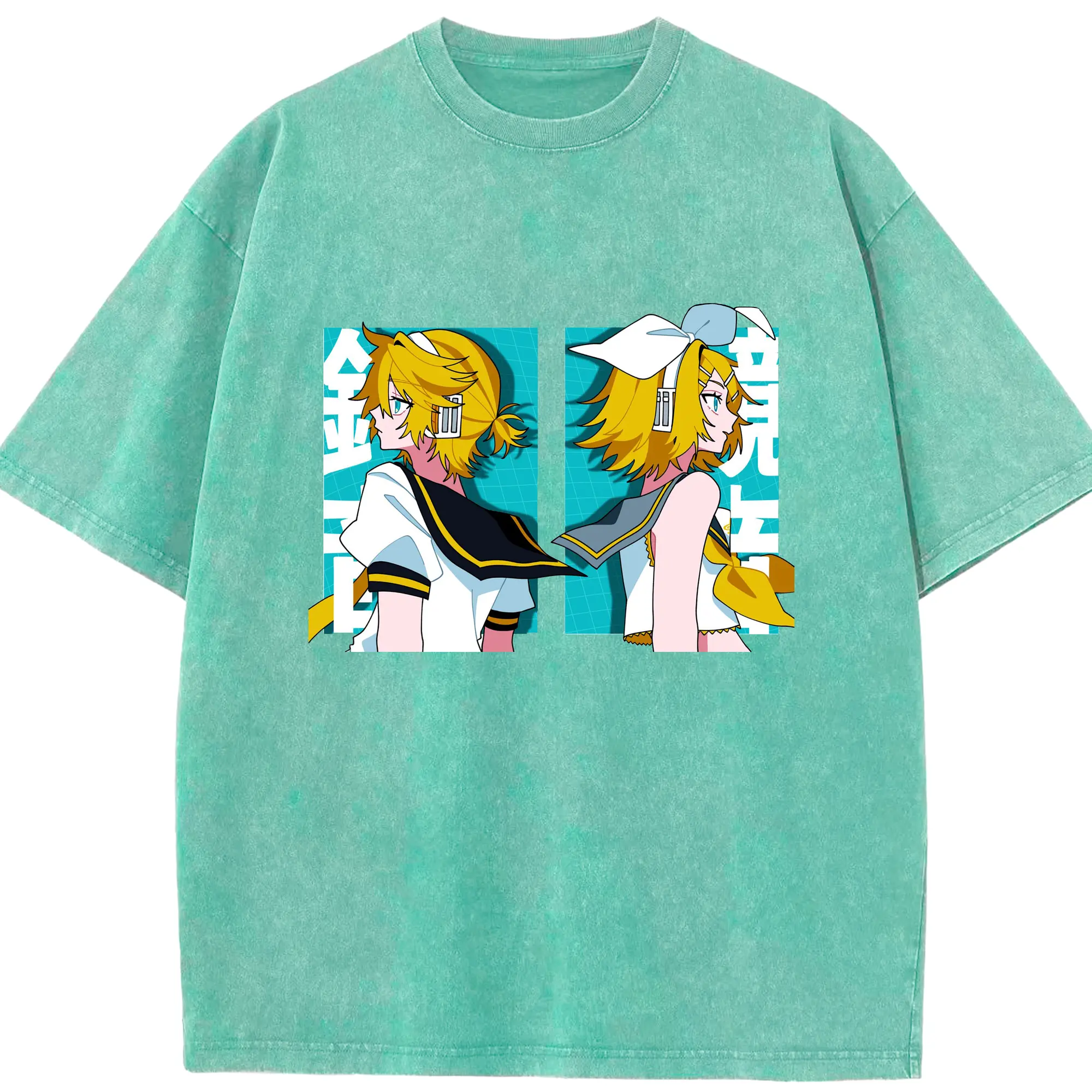 鏡音リン・レン 二次元 グッズ - 綿100% 半袖Tシャツ ・ フロントプリント ・ 快適 通気性 ・ 日常使い 散歩 スポーツ用