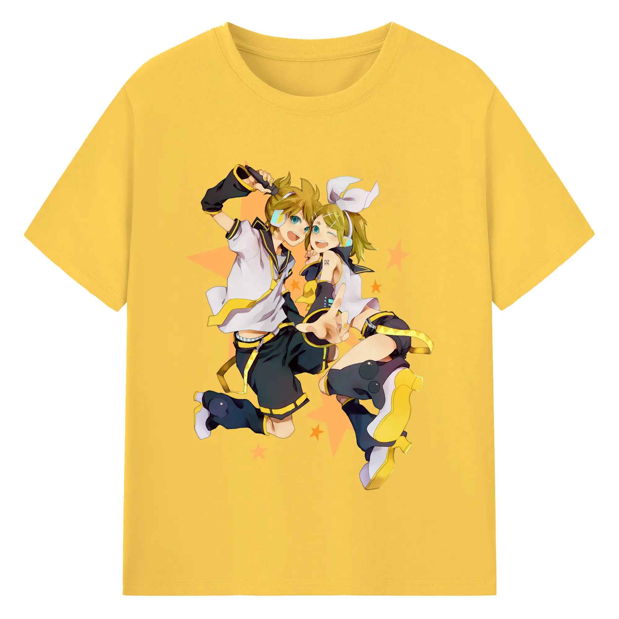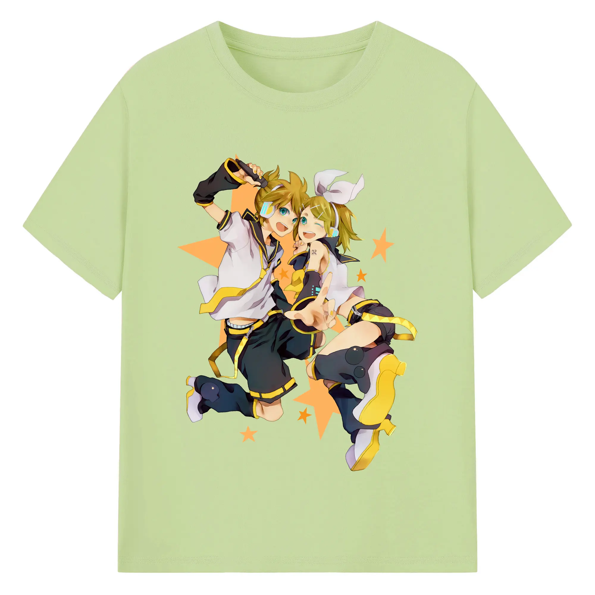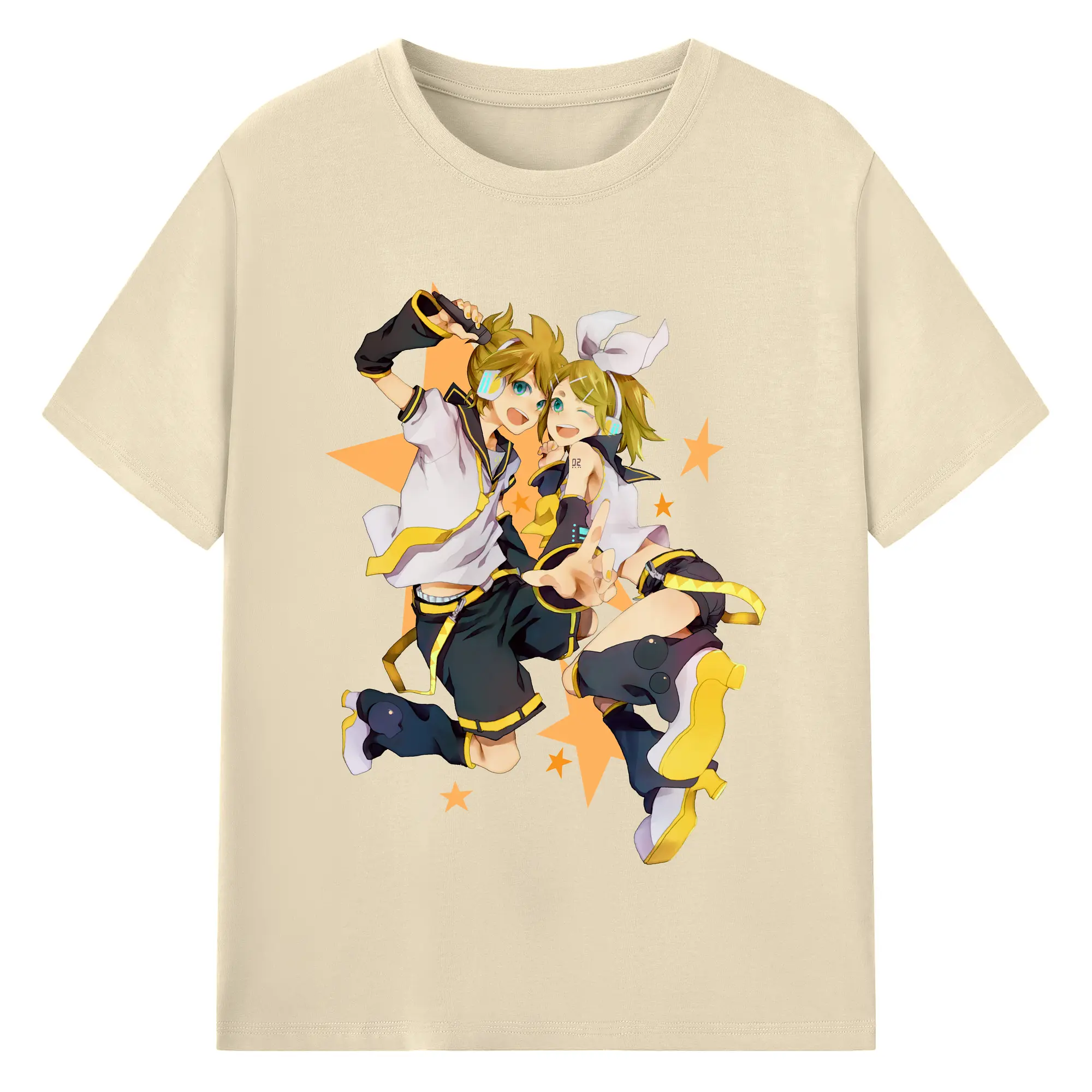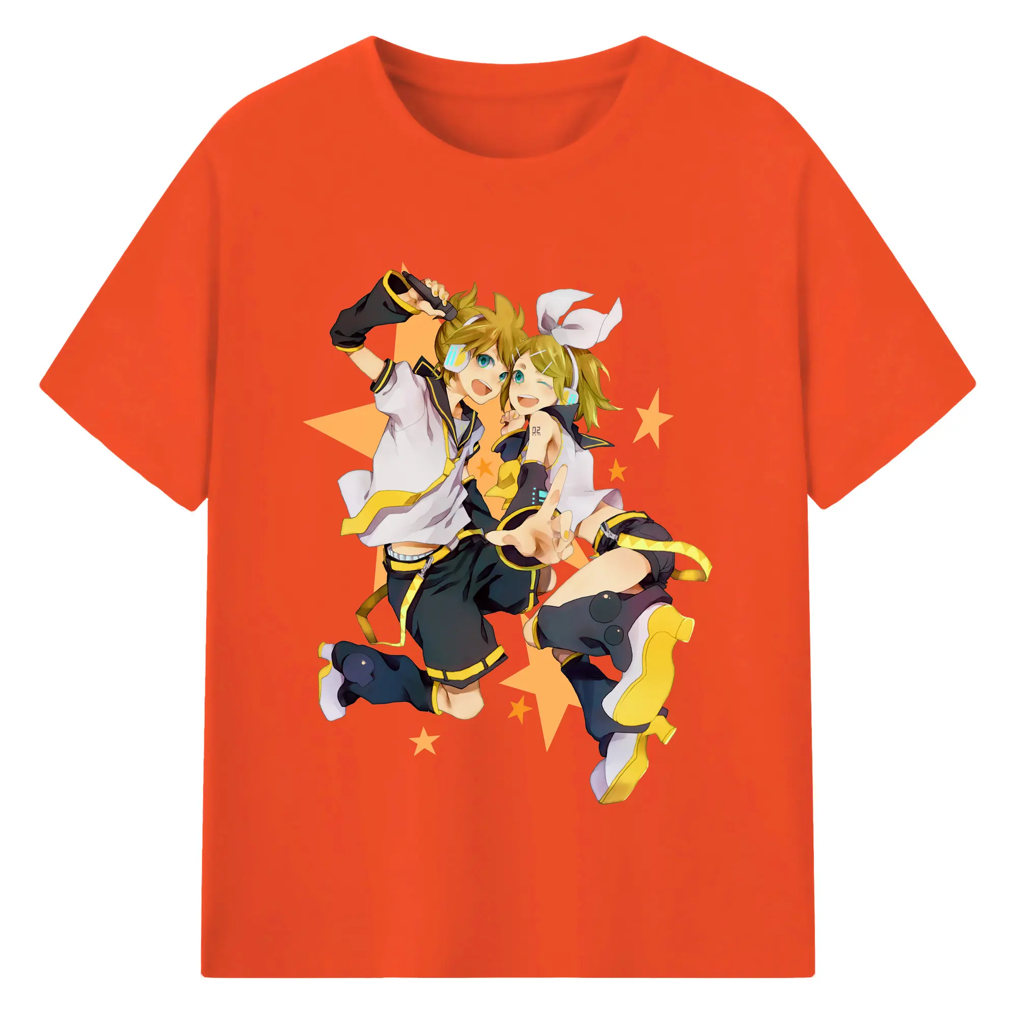 鏡音リン・レン 二次元 グッズ - 綿100% ヴィンテージ風 半袖Tシャツ ・ フロントプリント ・ 柔らか肌触り ・ 通気性 快適 ・ スポーツ カジュアル 外出用