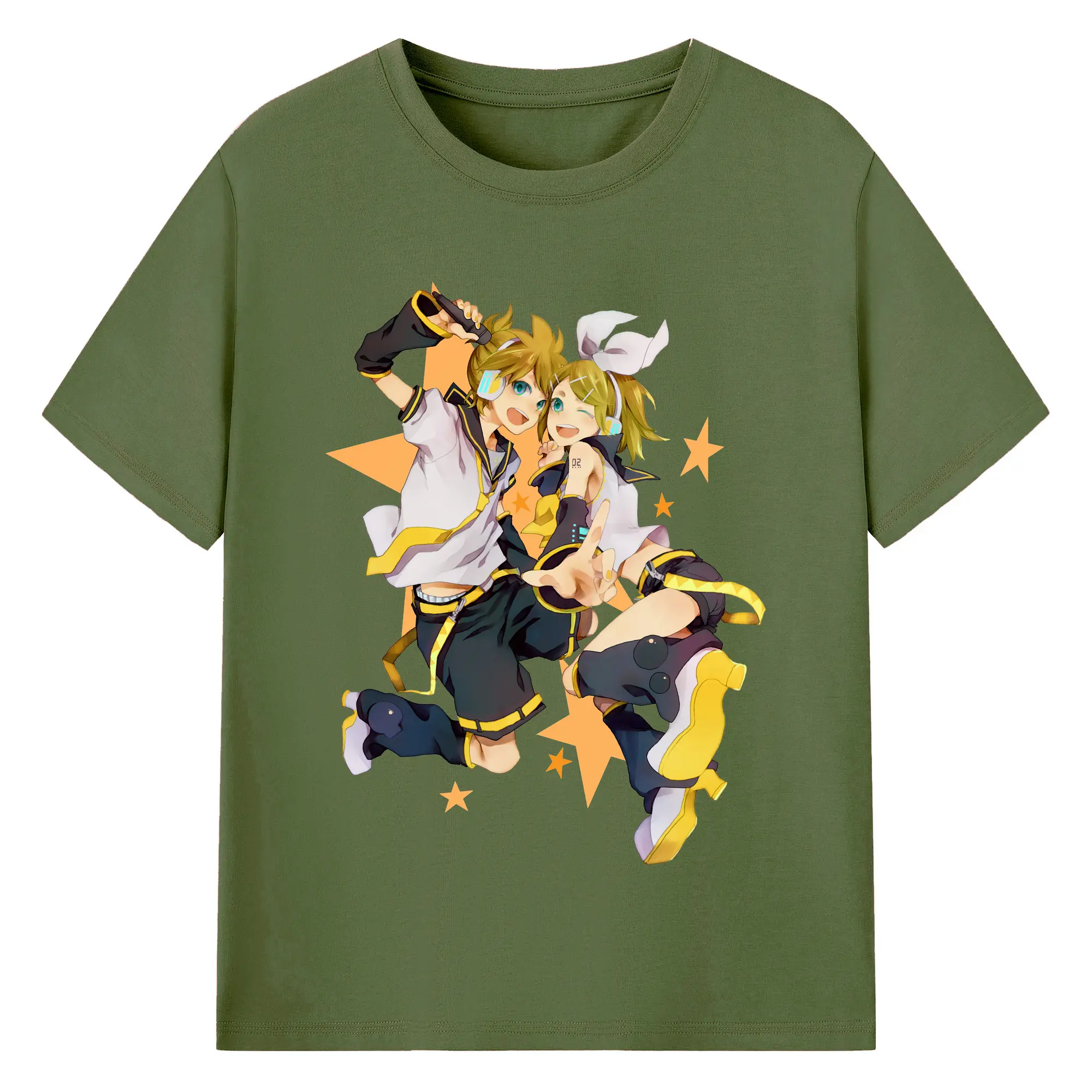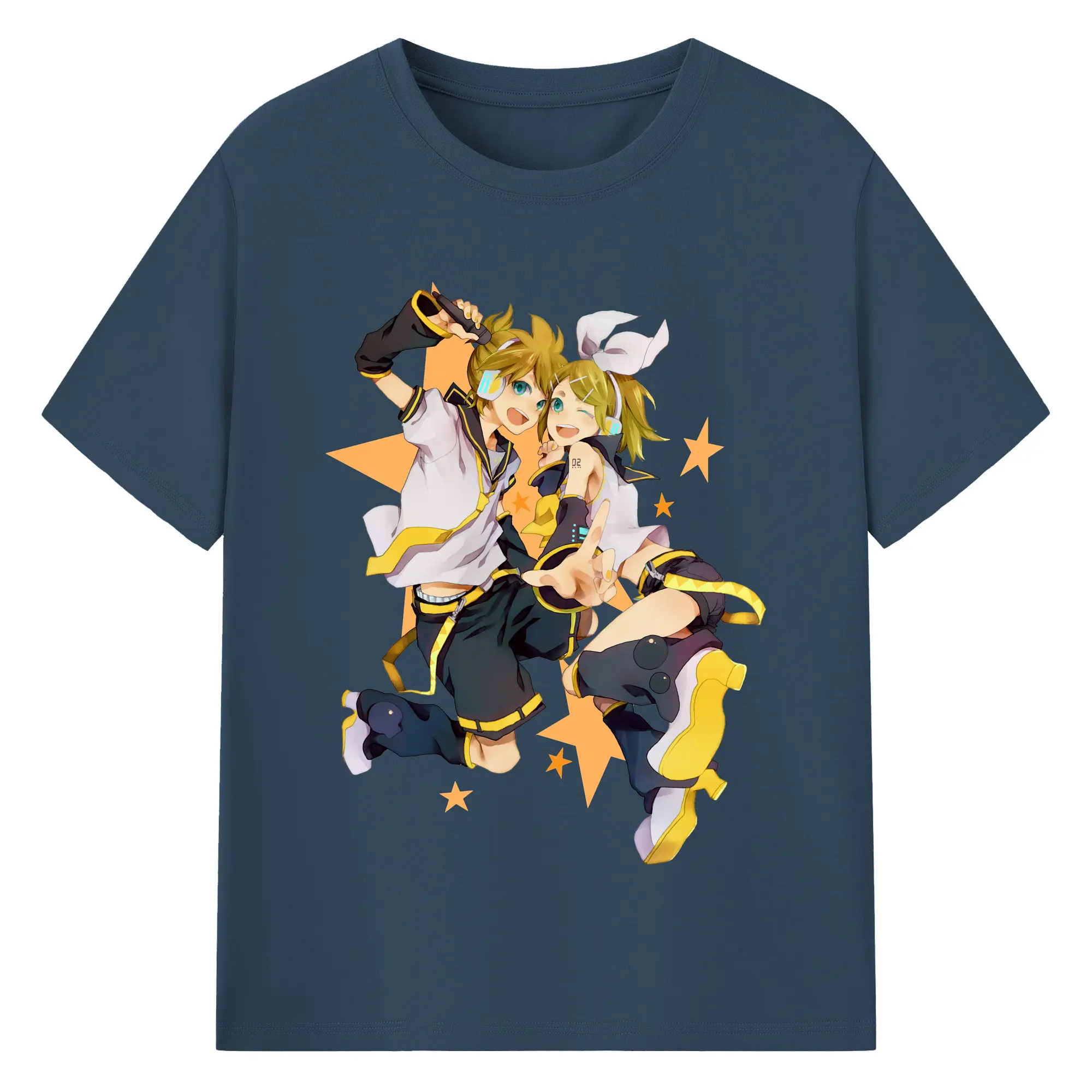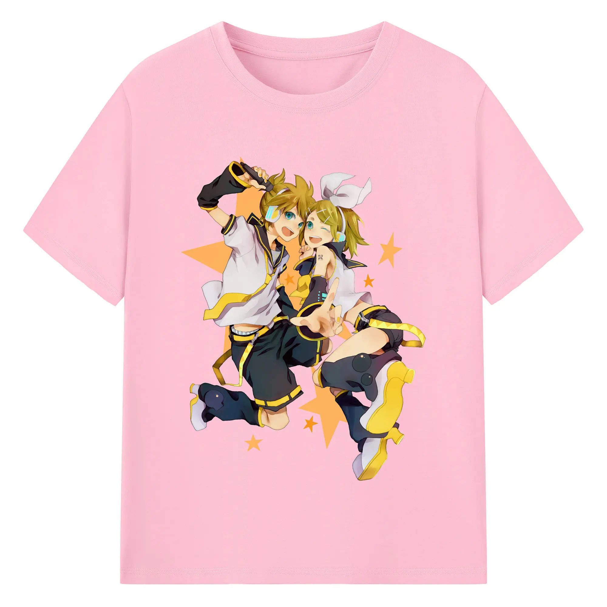 鏡音リン・レン 二次元 グッズ - 綿100% ヴィンテージ風 半袖Tシャツ ・ フロントプリント ・ 柔らか肌触り ・ 通気性 快適 ・ スポーツ カジュアル 外出用