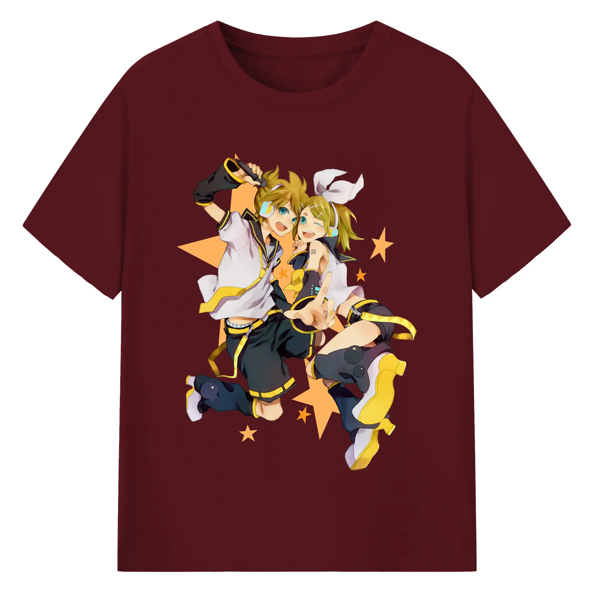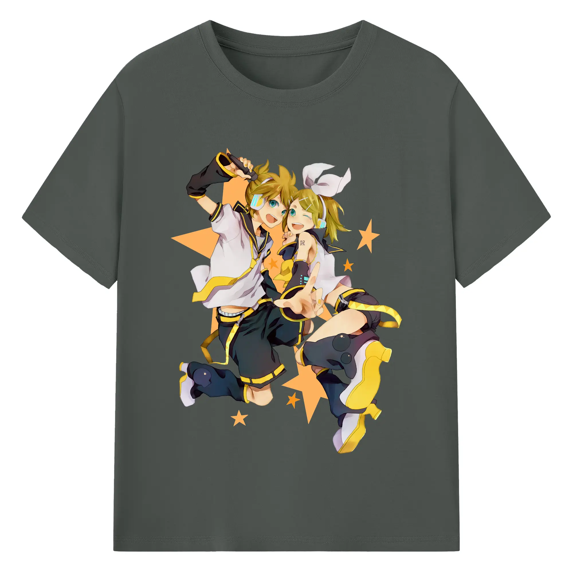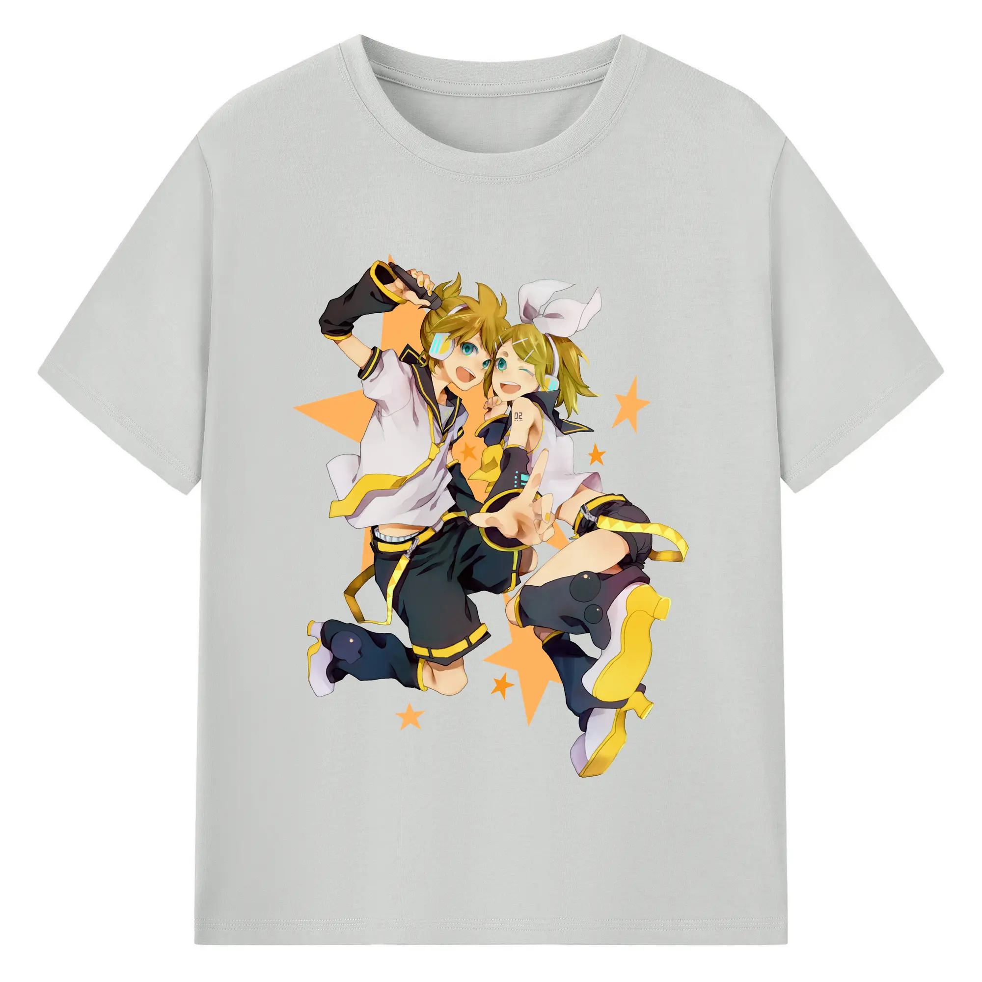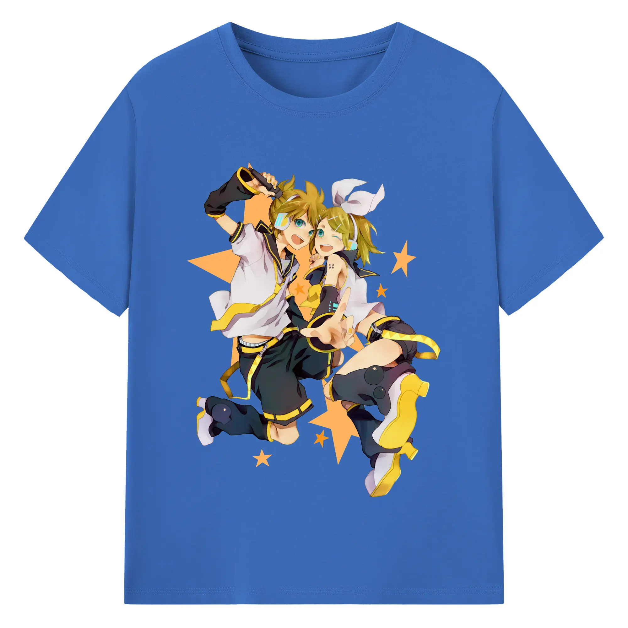 鏡音リン・レン 二次元 グッズ - 綿100% ヴィンテージ風 半袖Tシャツ ・ フロントプリント ・ 柔らか肌触り ・ 通気性 快適 ・ スポーツ カジュアル 外出用