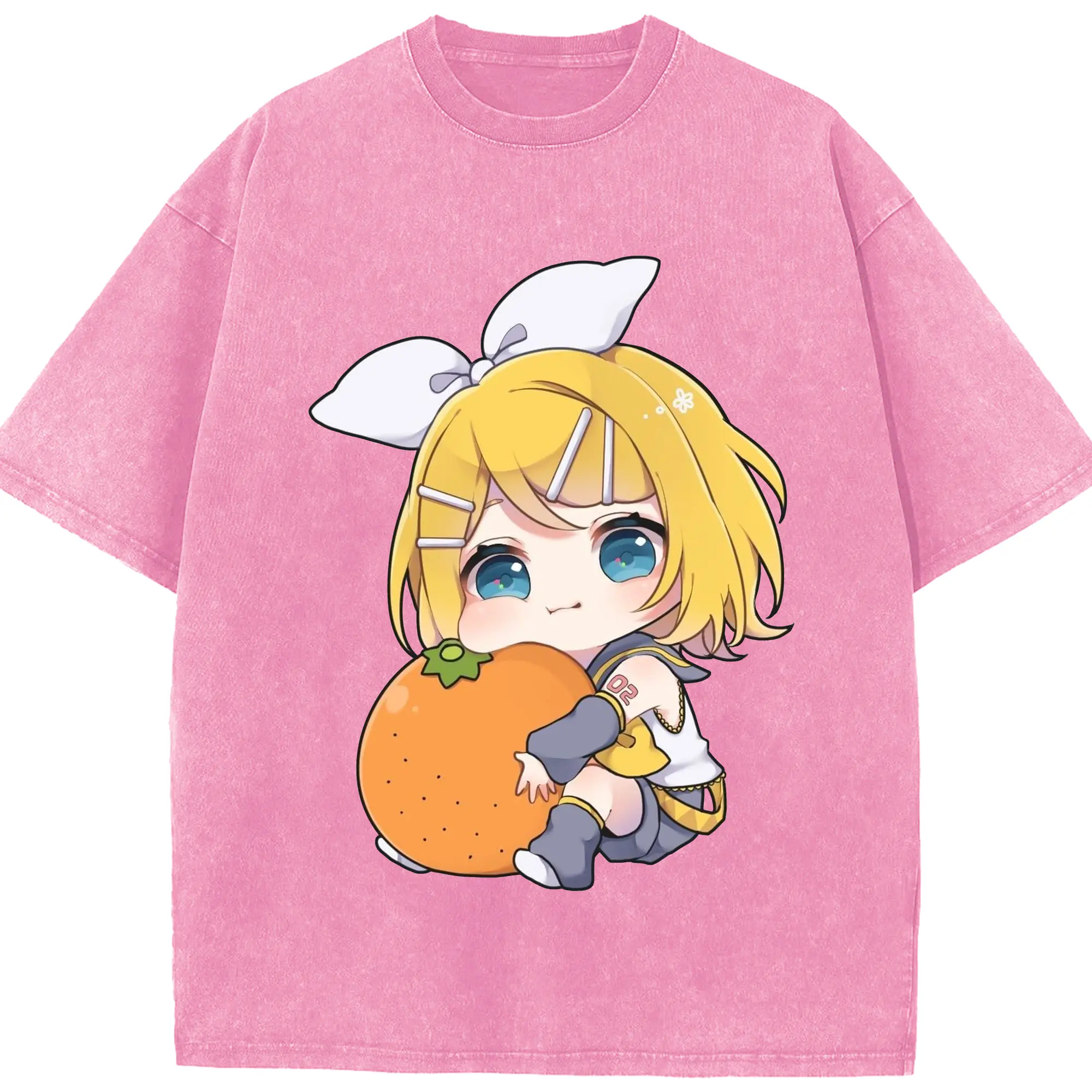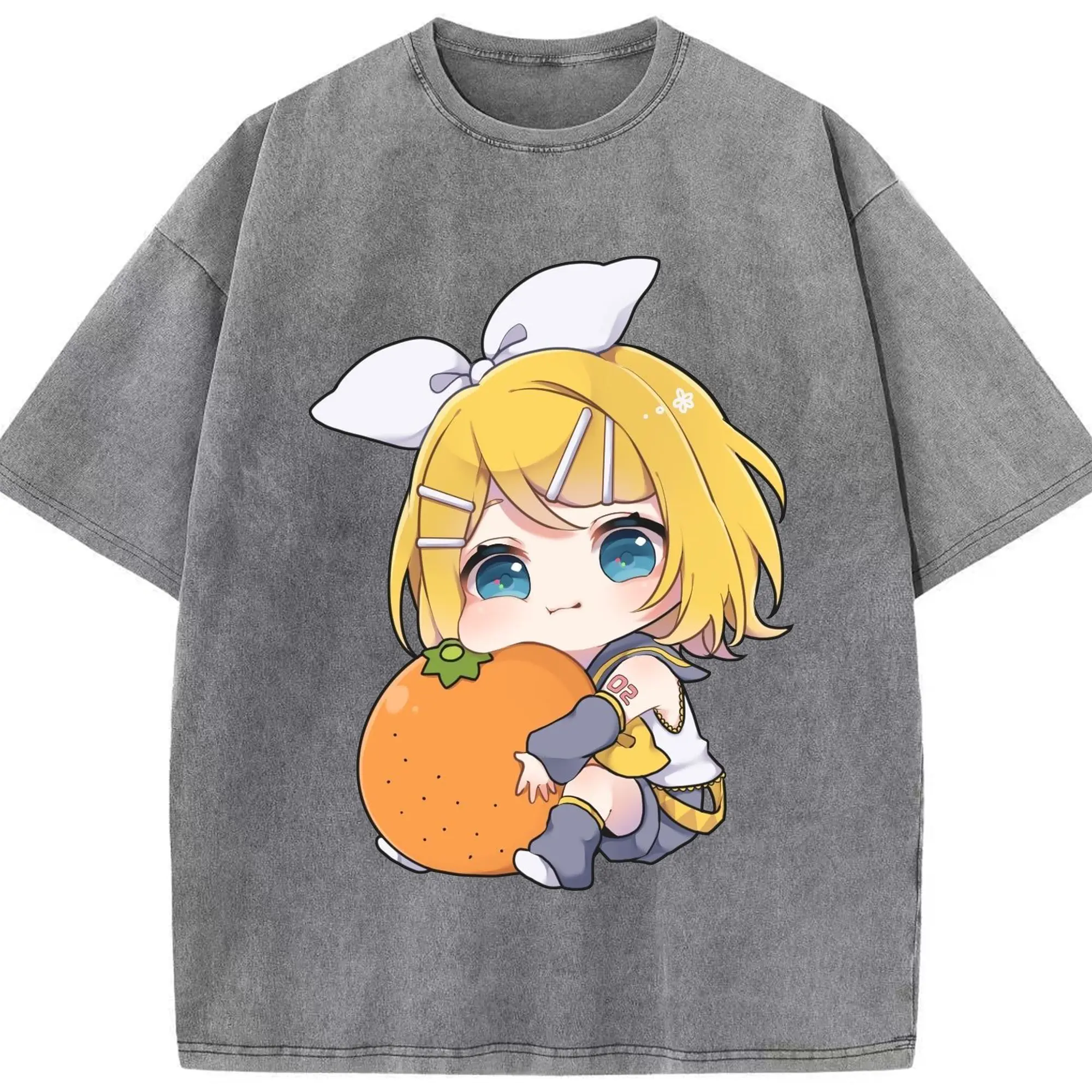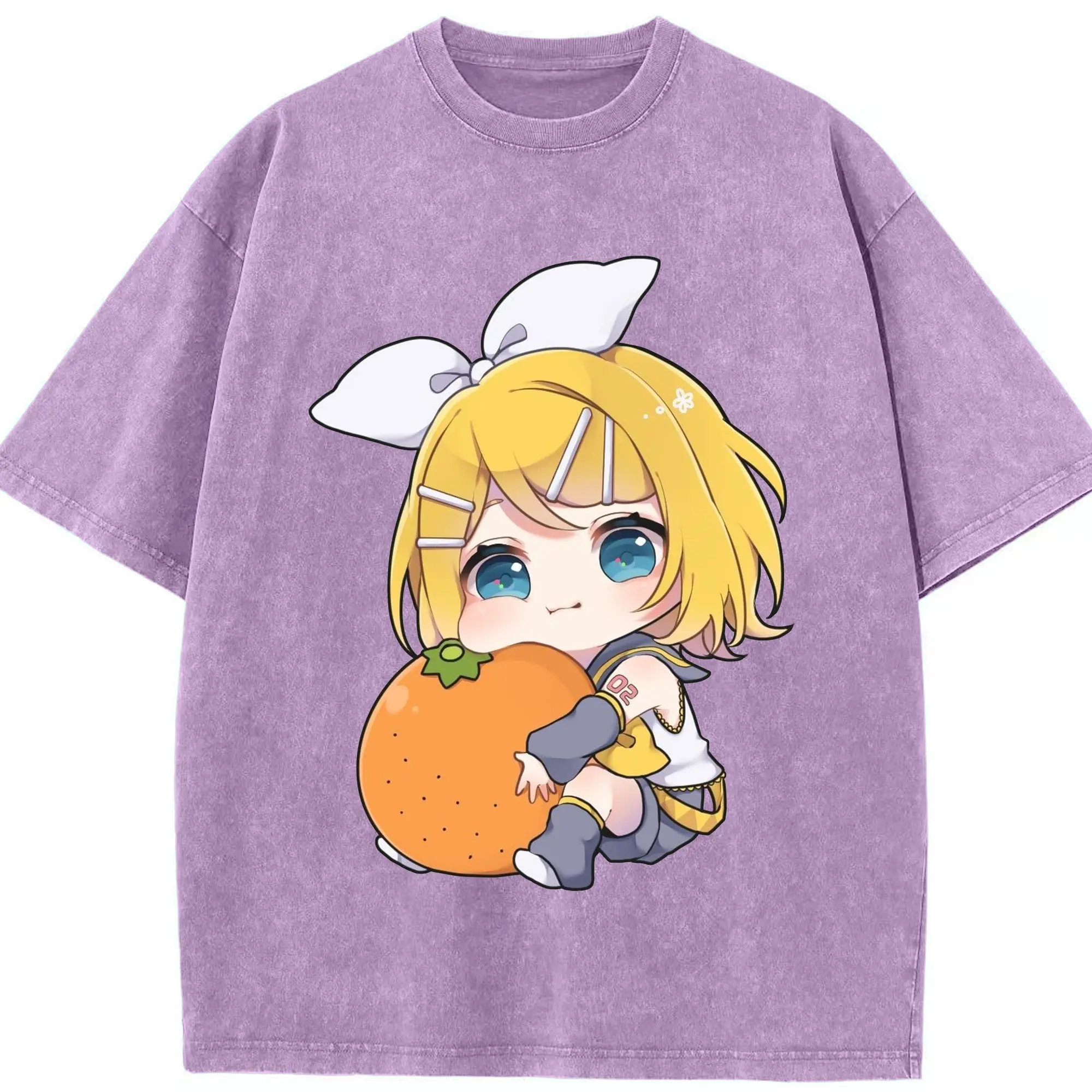 鏡音リン・レン 02かわいいスタイル - 綿100% 半袖Tシャツ ・ フロントプリント ・ 快適 通気性 ・ 日常使い 散歩 スポーツ用