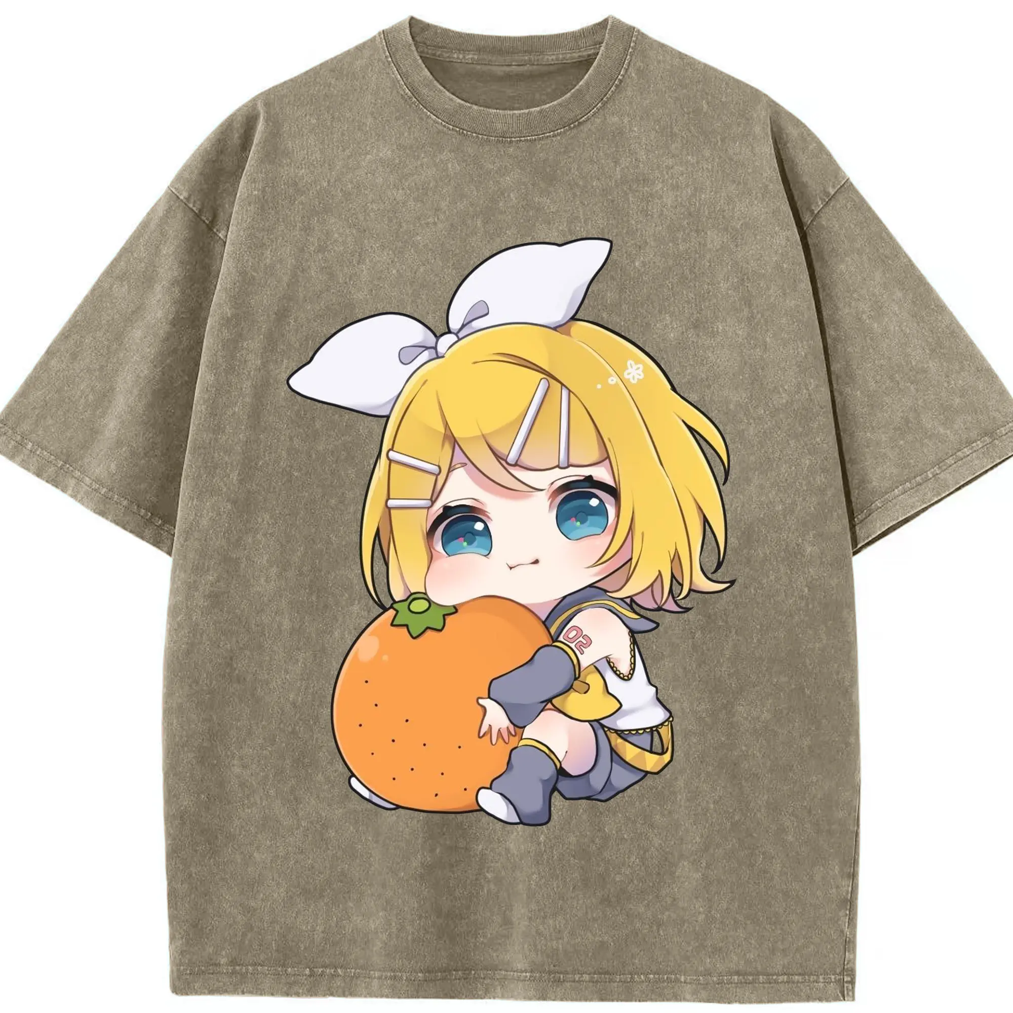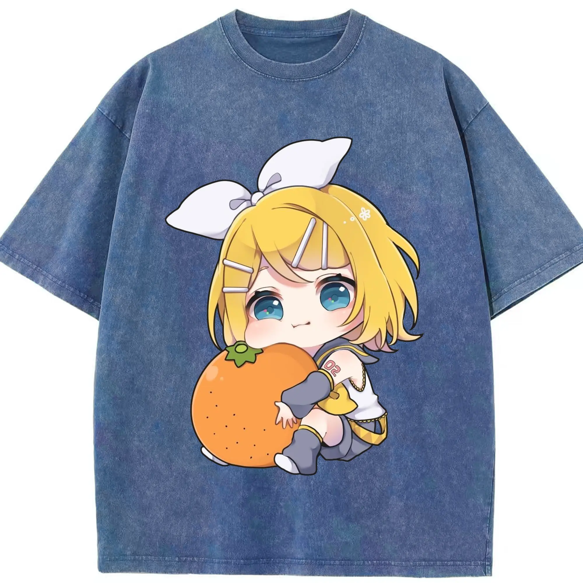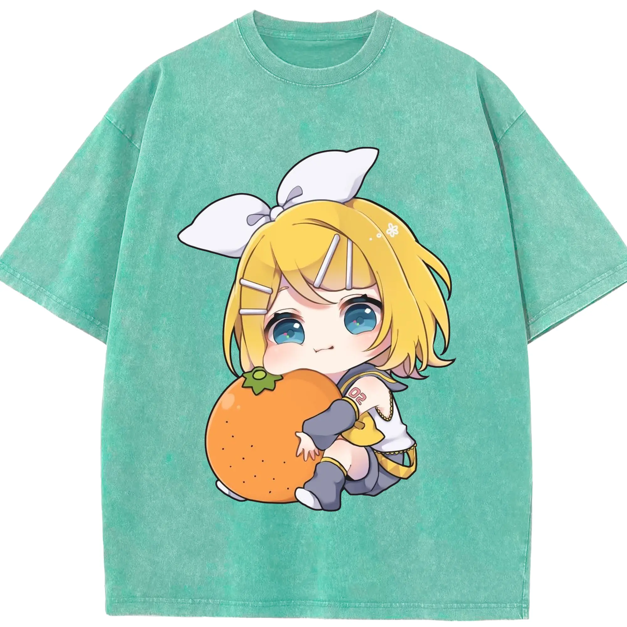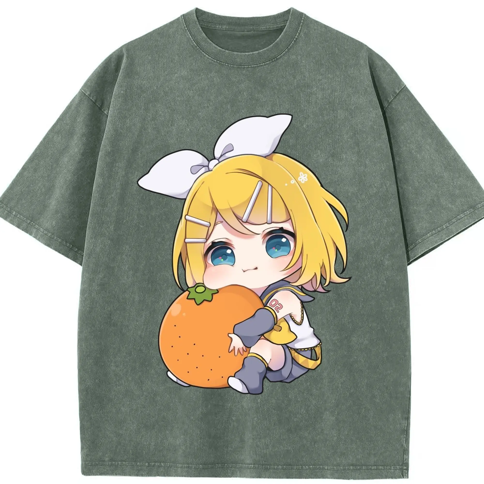 鏡音リン・レン 02かわいいスタイル - 綿100% 半袖Tシャツ ・ フロントプリント ・ 快適 通気性 ・ 日常使い 散歩 スポーツ用