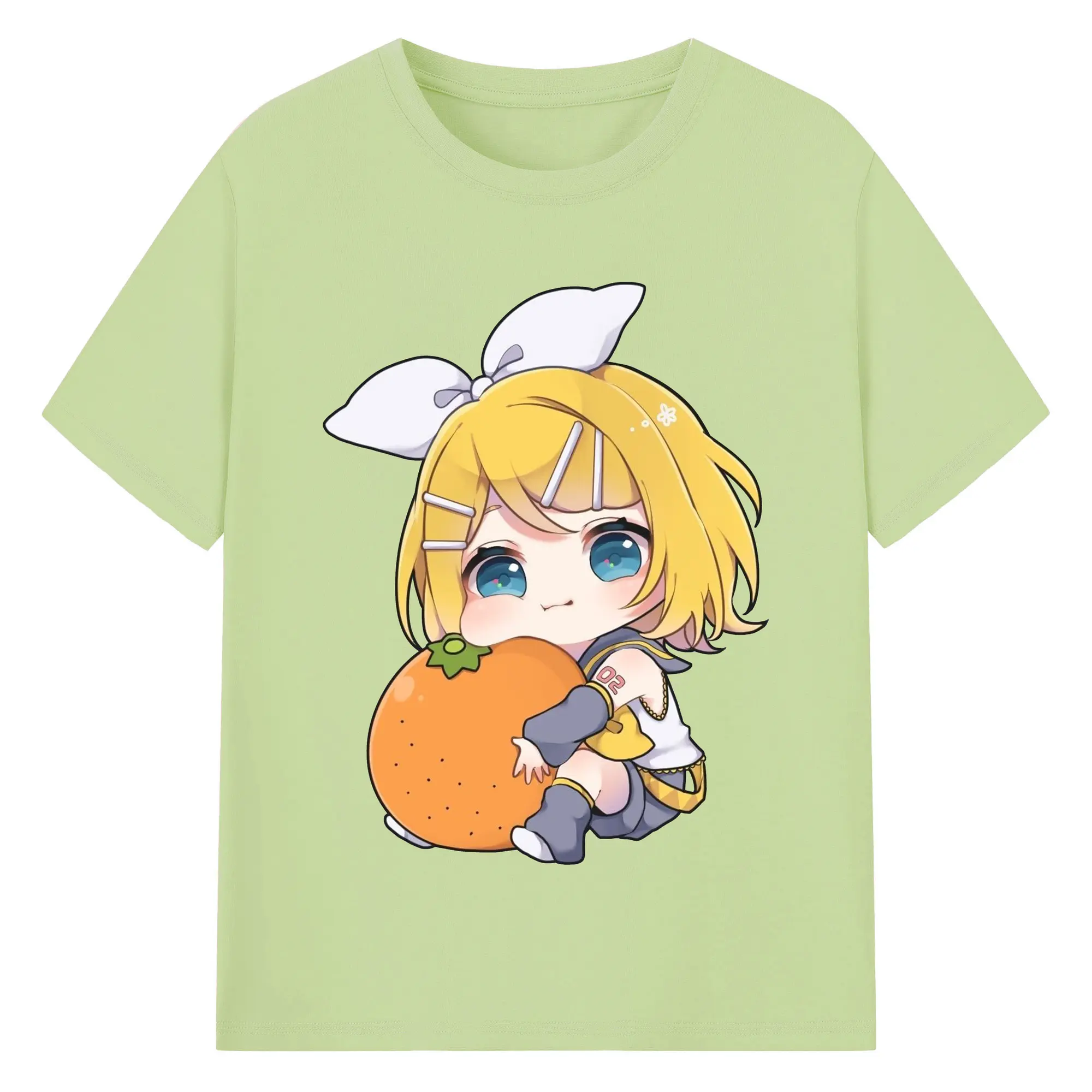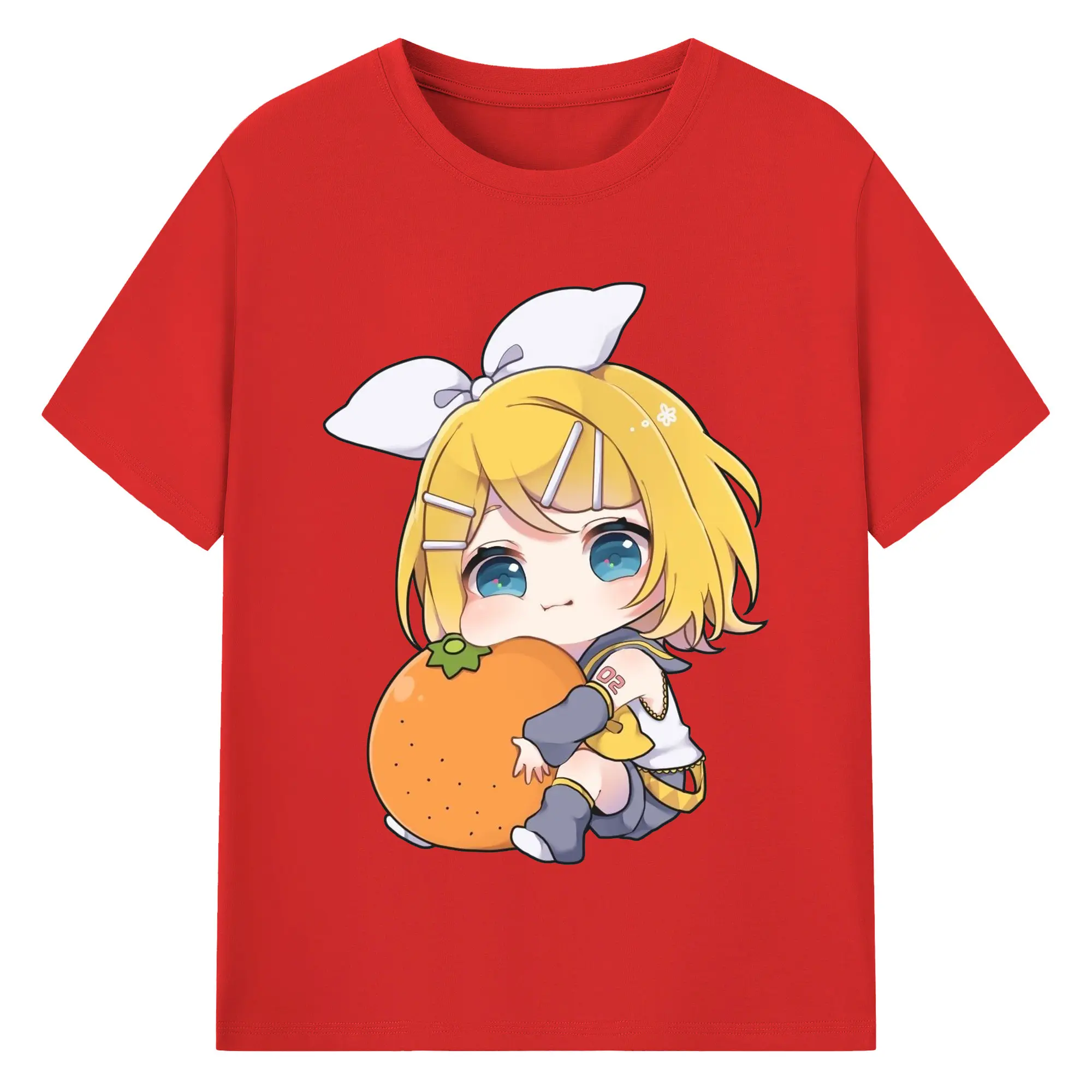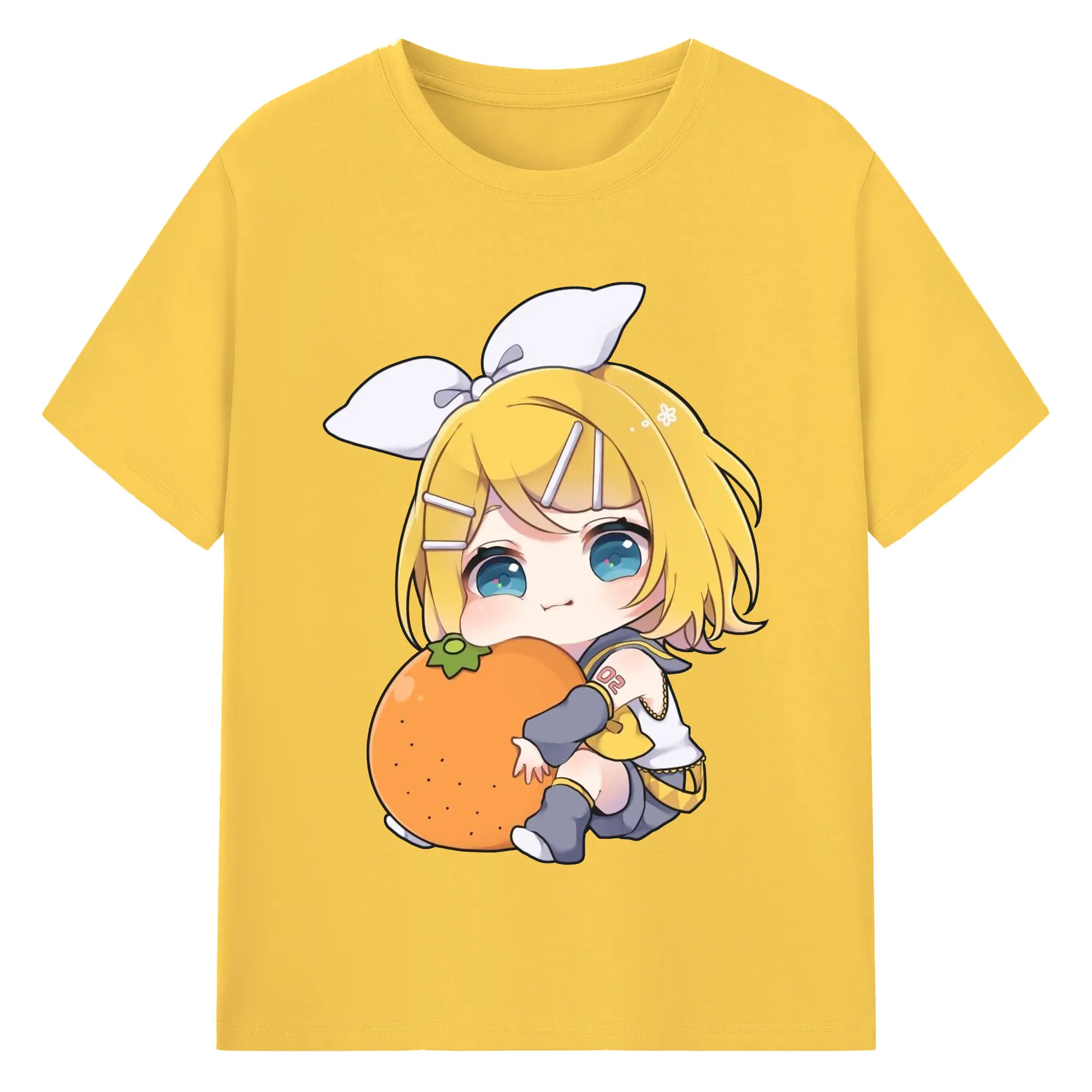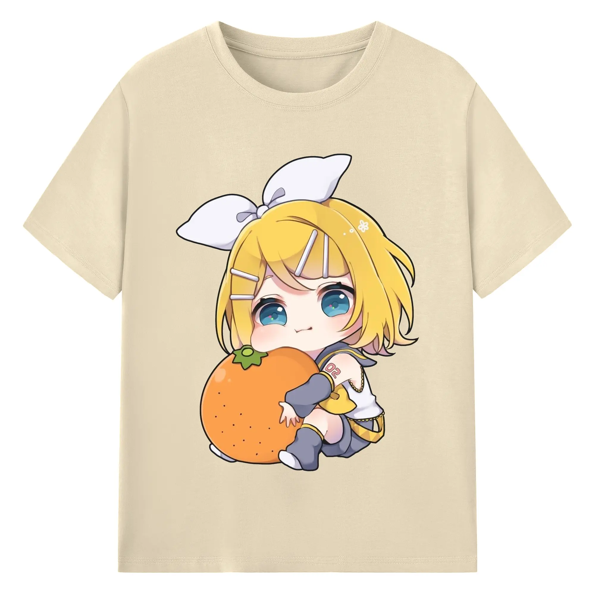 鏡音リン・レン 02かわいいスタイル - 綿100% ヴィンテージ風 半袖Tシャツ ・ フロントプリント ・ 柔らか肌触り ・ 通気性 快適 ・ スポーツ カジュアル 外出用
