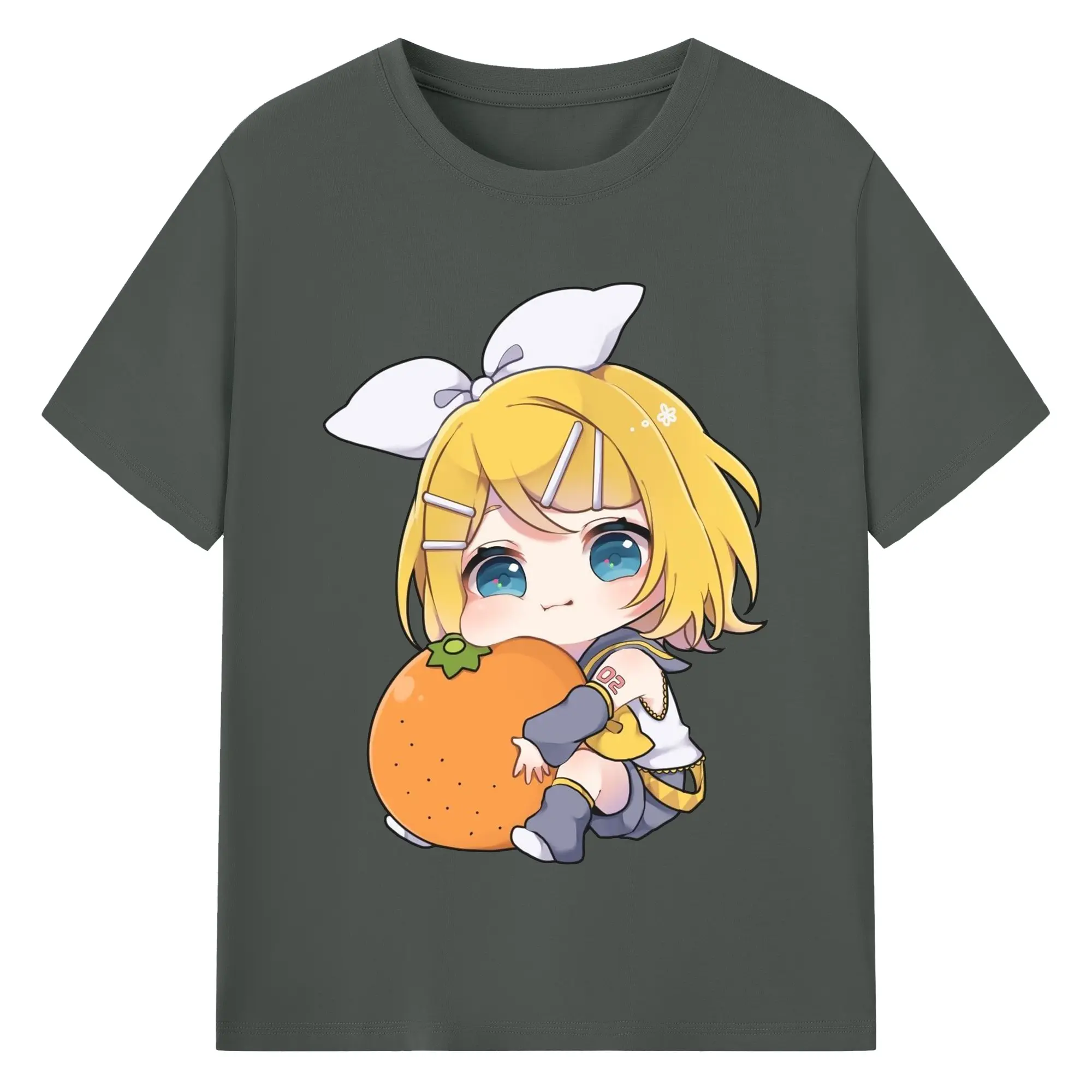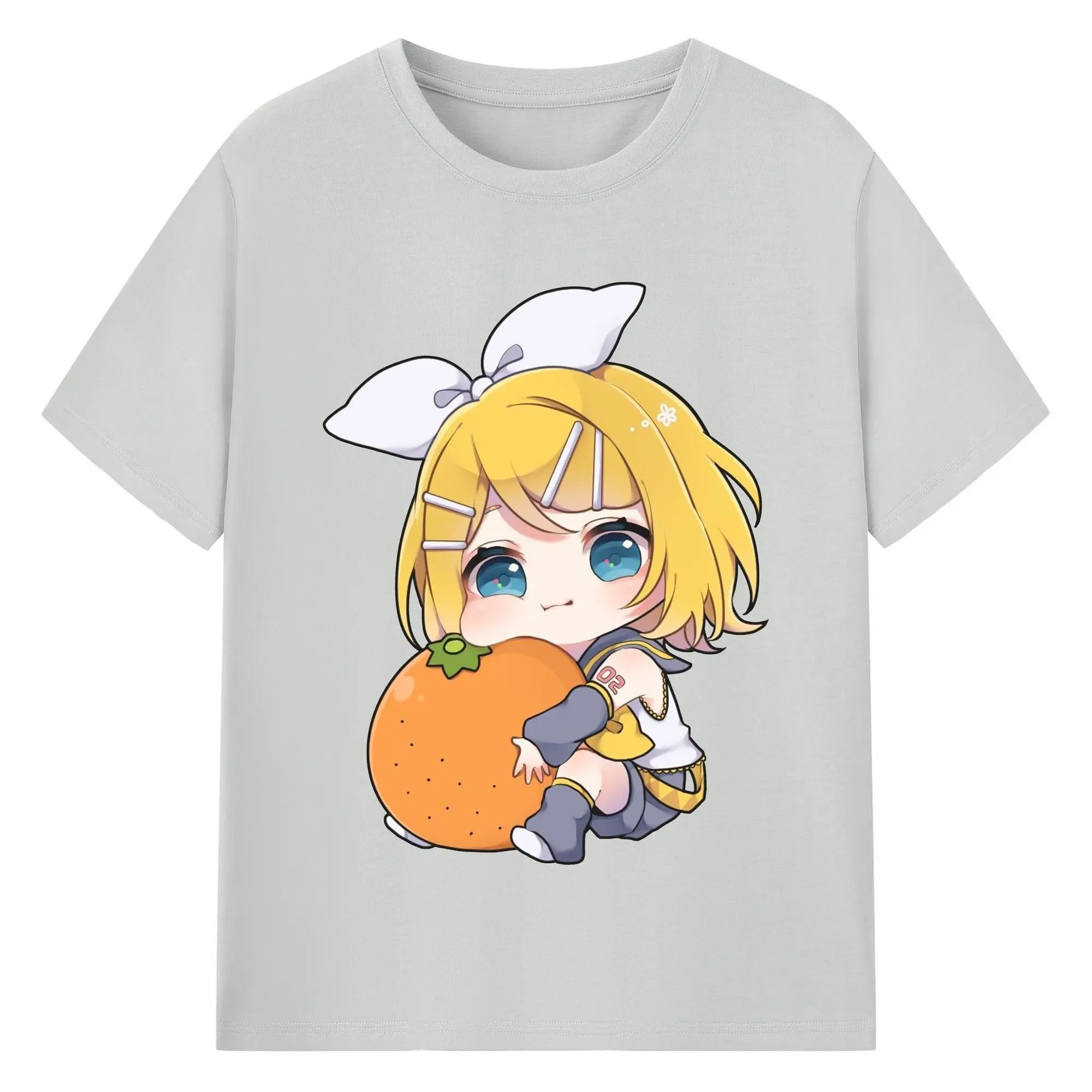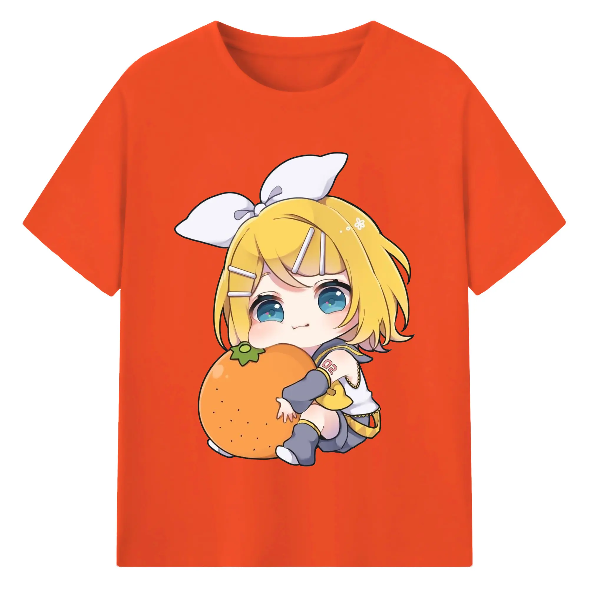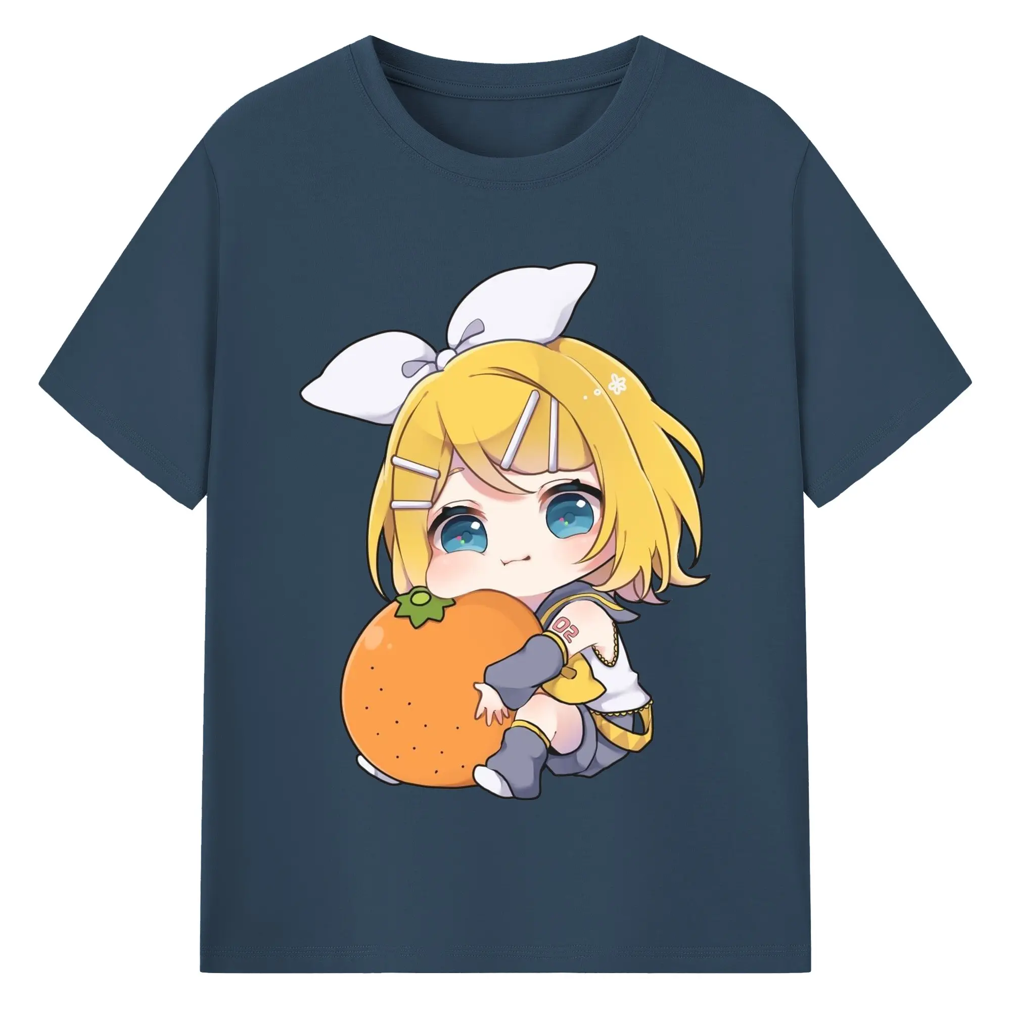 鏡音リン・レン 02かわいいスタイル - 綿100% ヴィンテージ風 半袖Tシャツ ・ フロントプリント ・ 柔らか肌触り ・ 通気性 快適 ・ スポーツ カジュアル 外出用