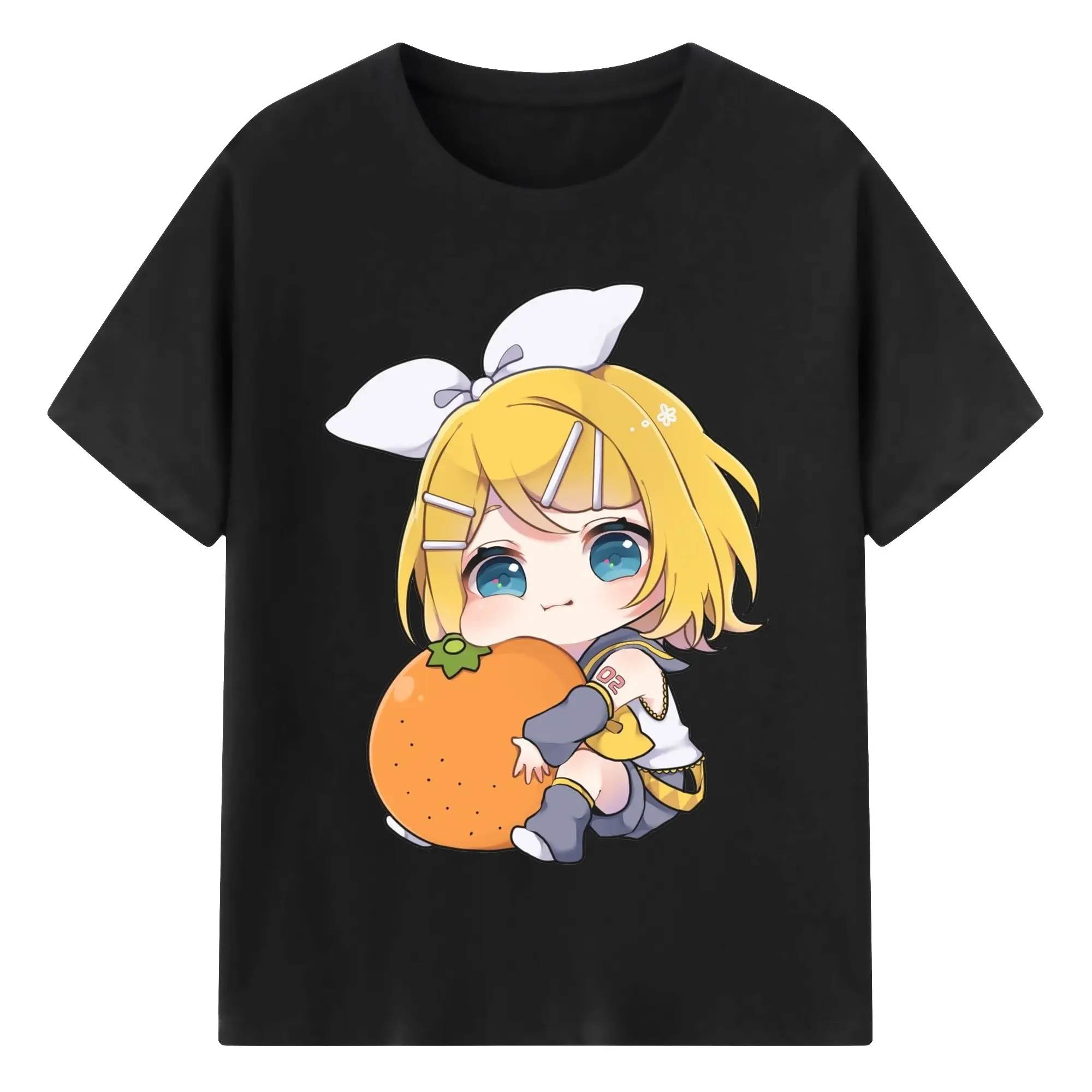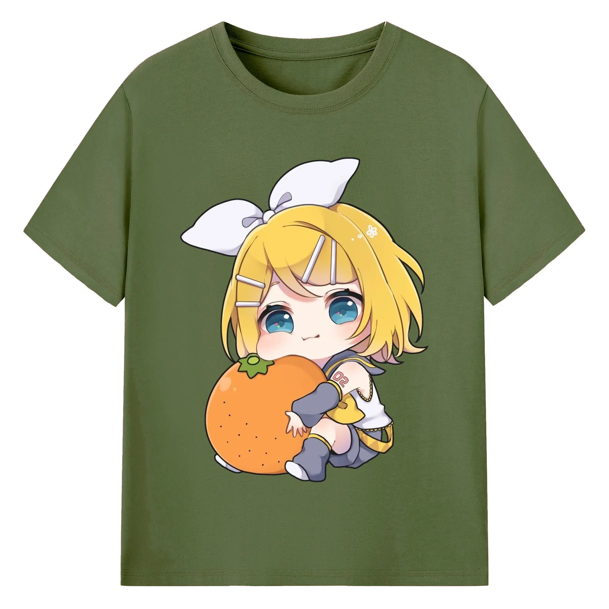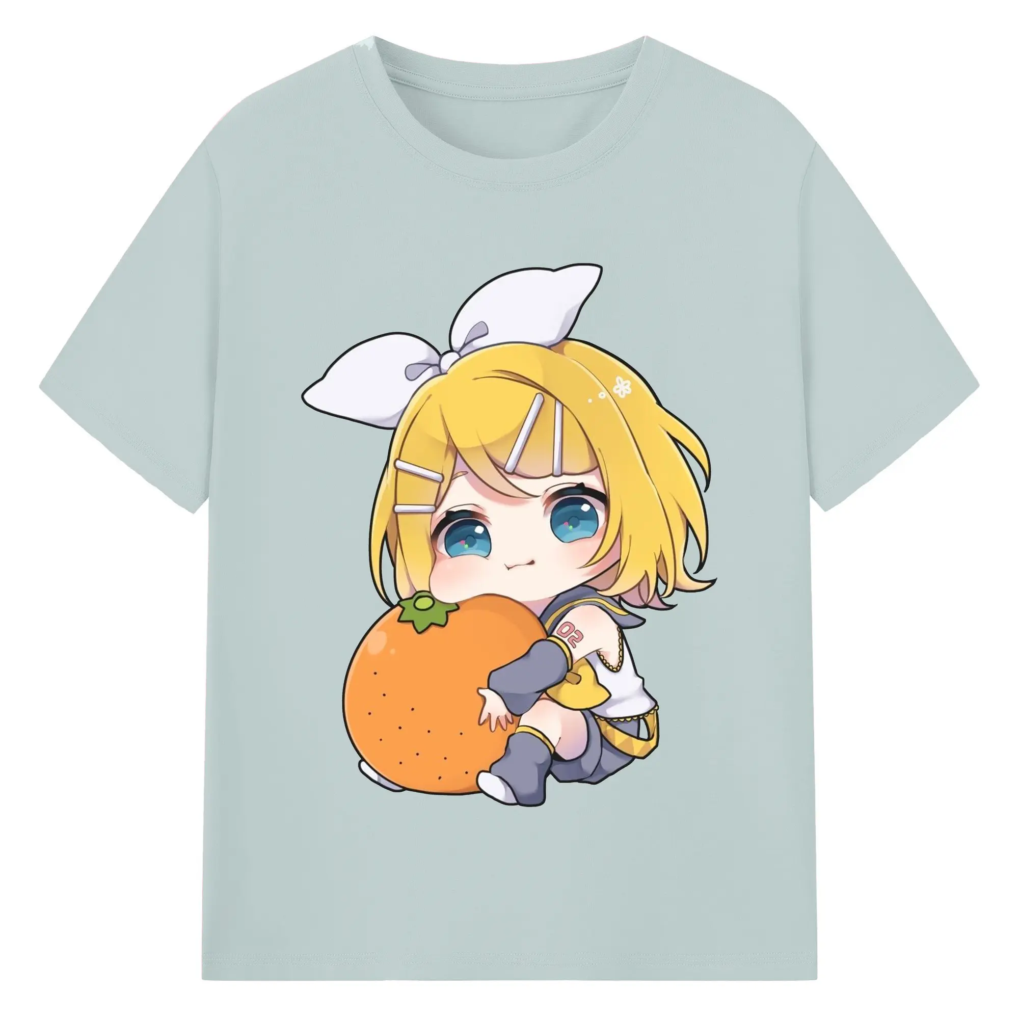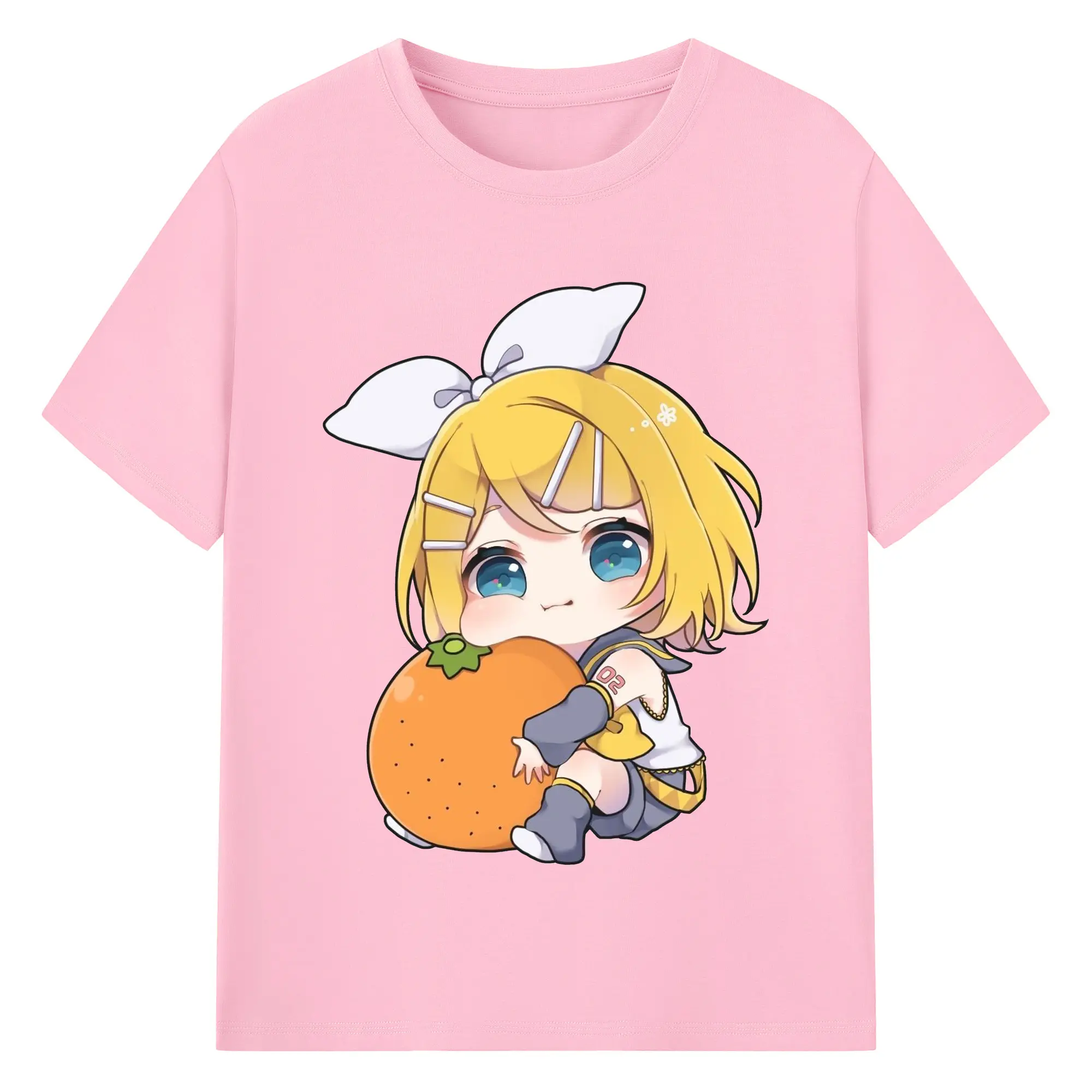 鏡音リン・レン 02かわいいスタイル - 綿100% ヴィンテージ風 半袖Tシャツ ・ フロントプリント ・ 柔らか肌触り ・ 通気性 快適 ・ スポーツ カジュアル 外出用