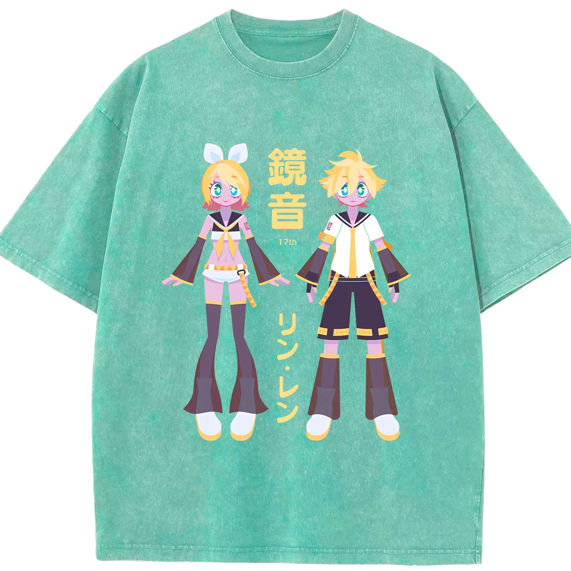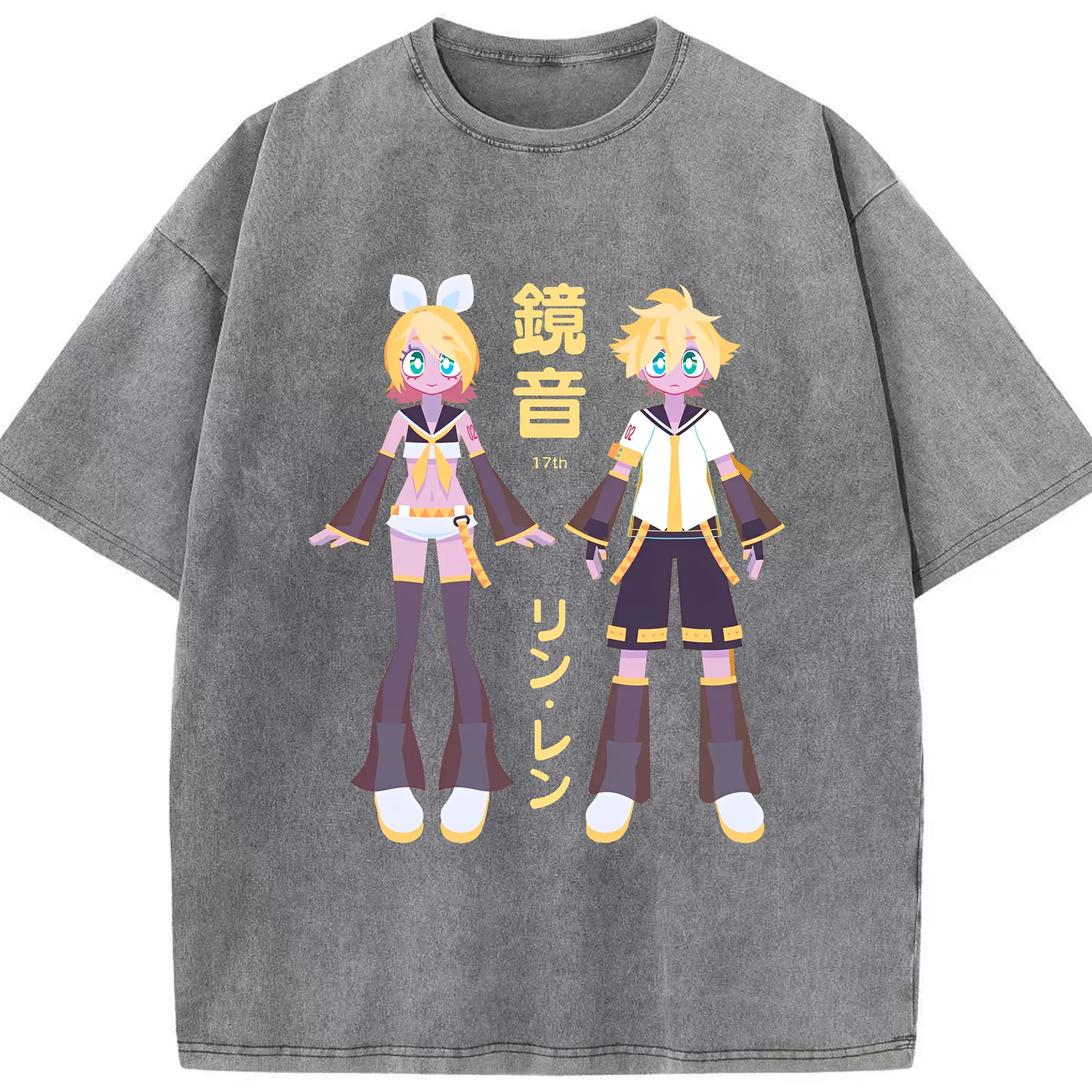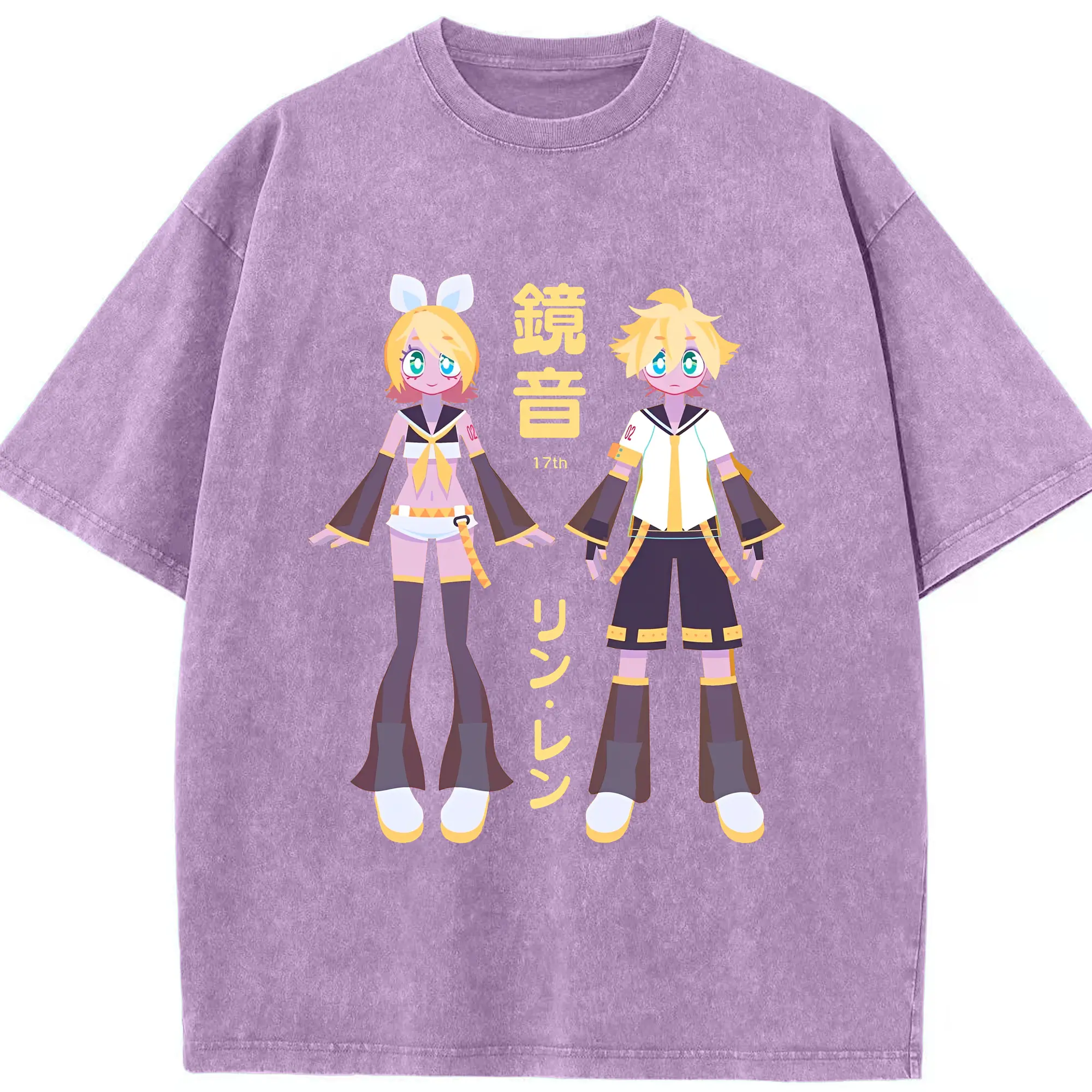 鏡音リン・レン 17th - 綿100% 半袖Tシャツ ・ フロントプリント ・ 快適 通気性 ・ 日常使い 散歩 スポーツ用