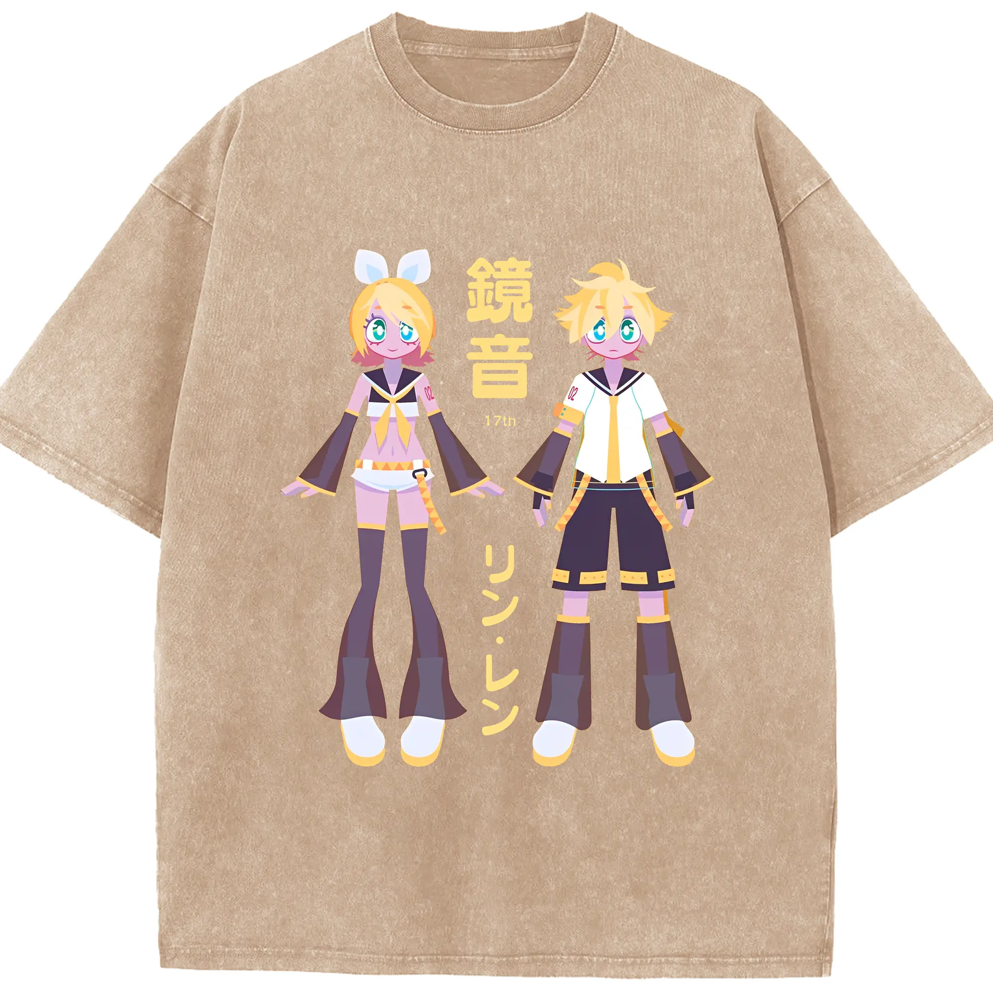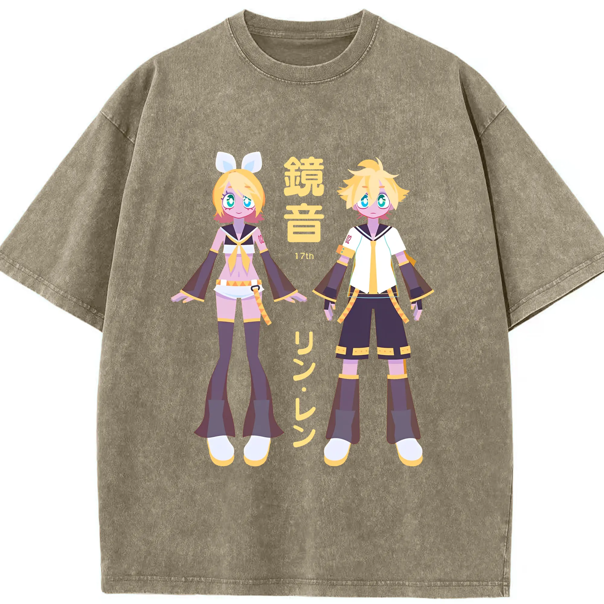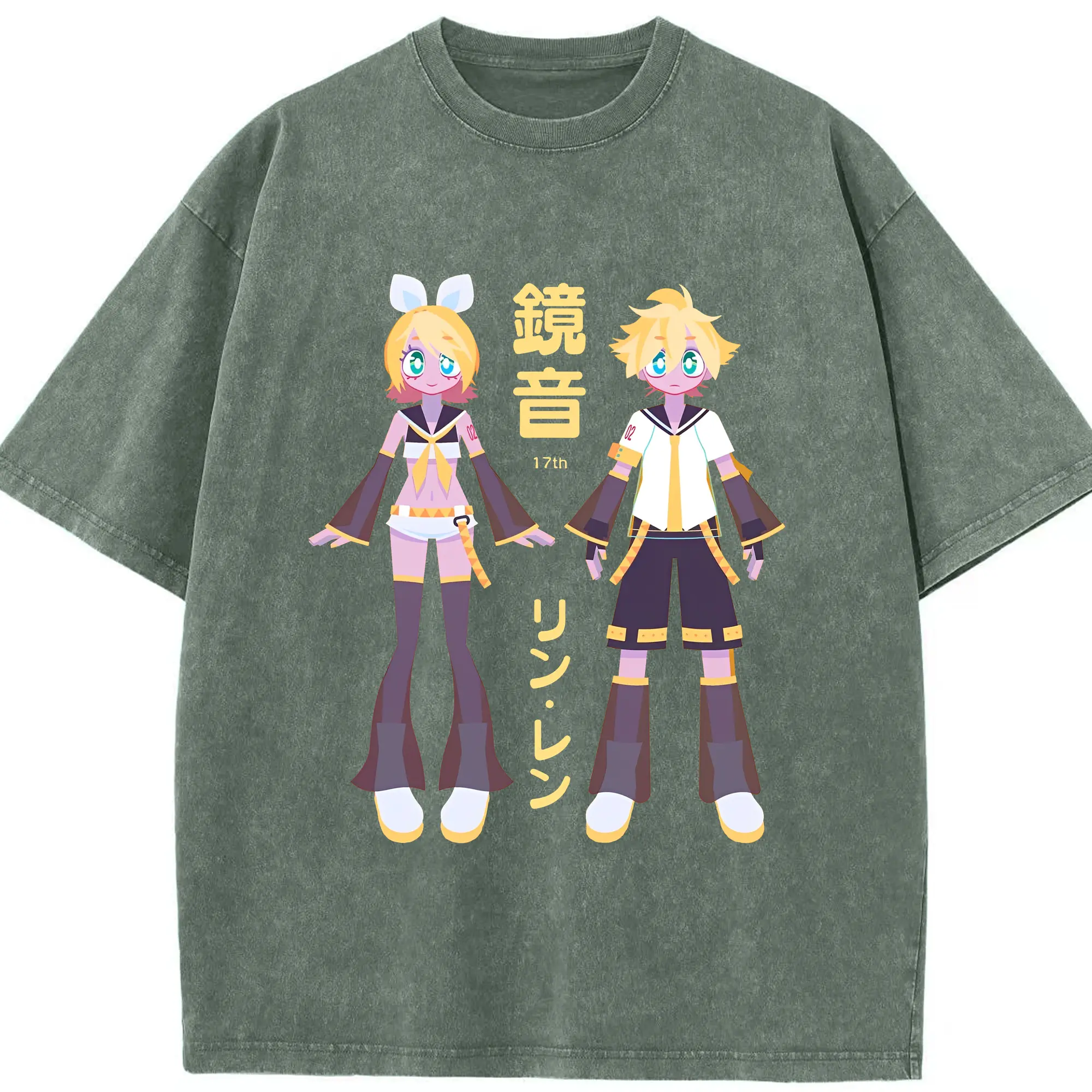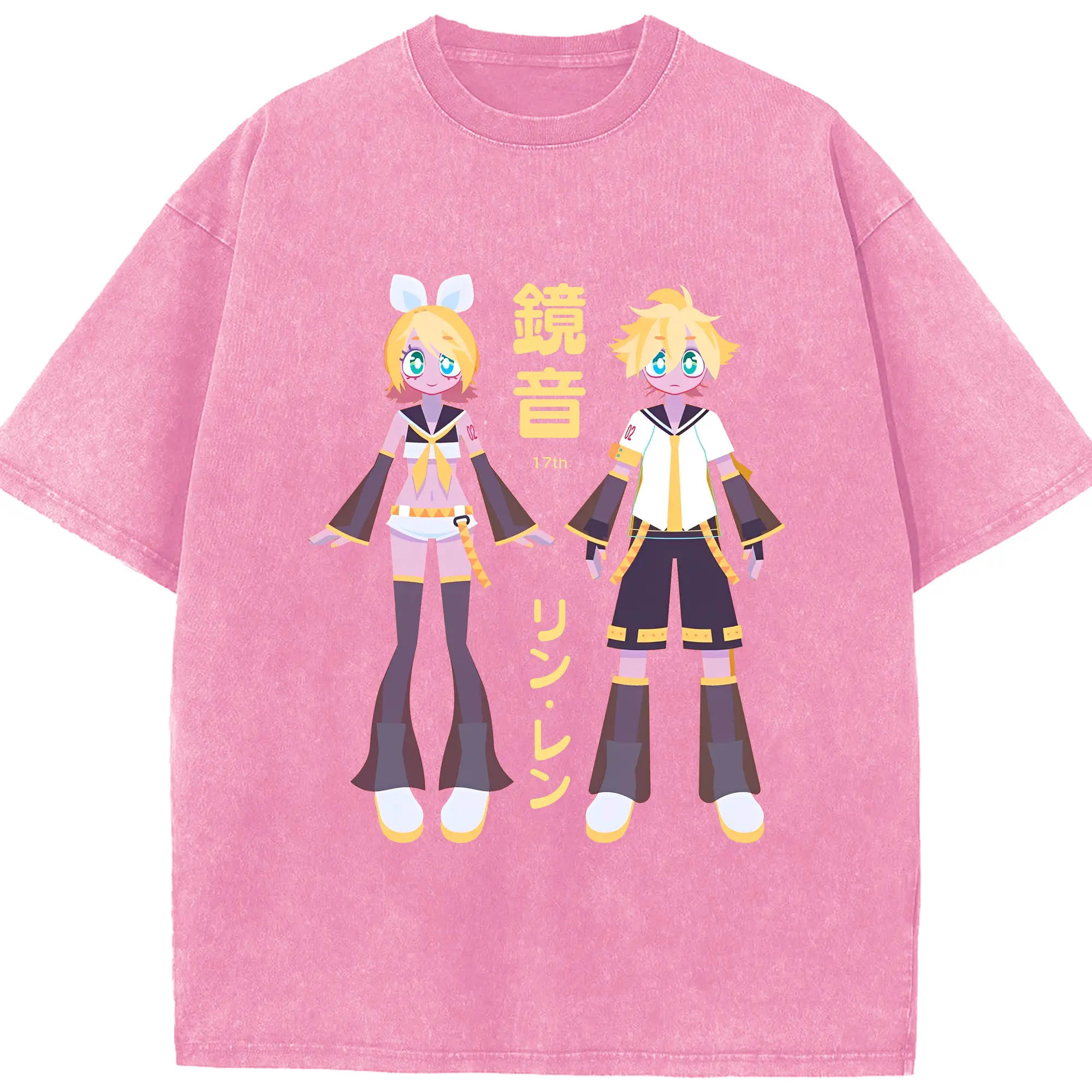 鏡音リン・レン 17th - 綿100% 半袖Tシャツ ・ フロントプリント ・ 快適 通気性 ・ 日常使い 散歩 スポーツ用