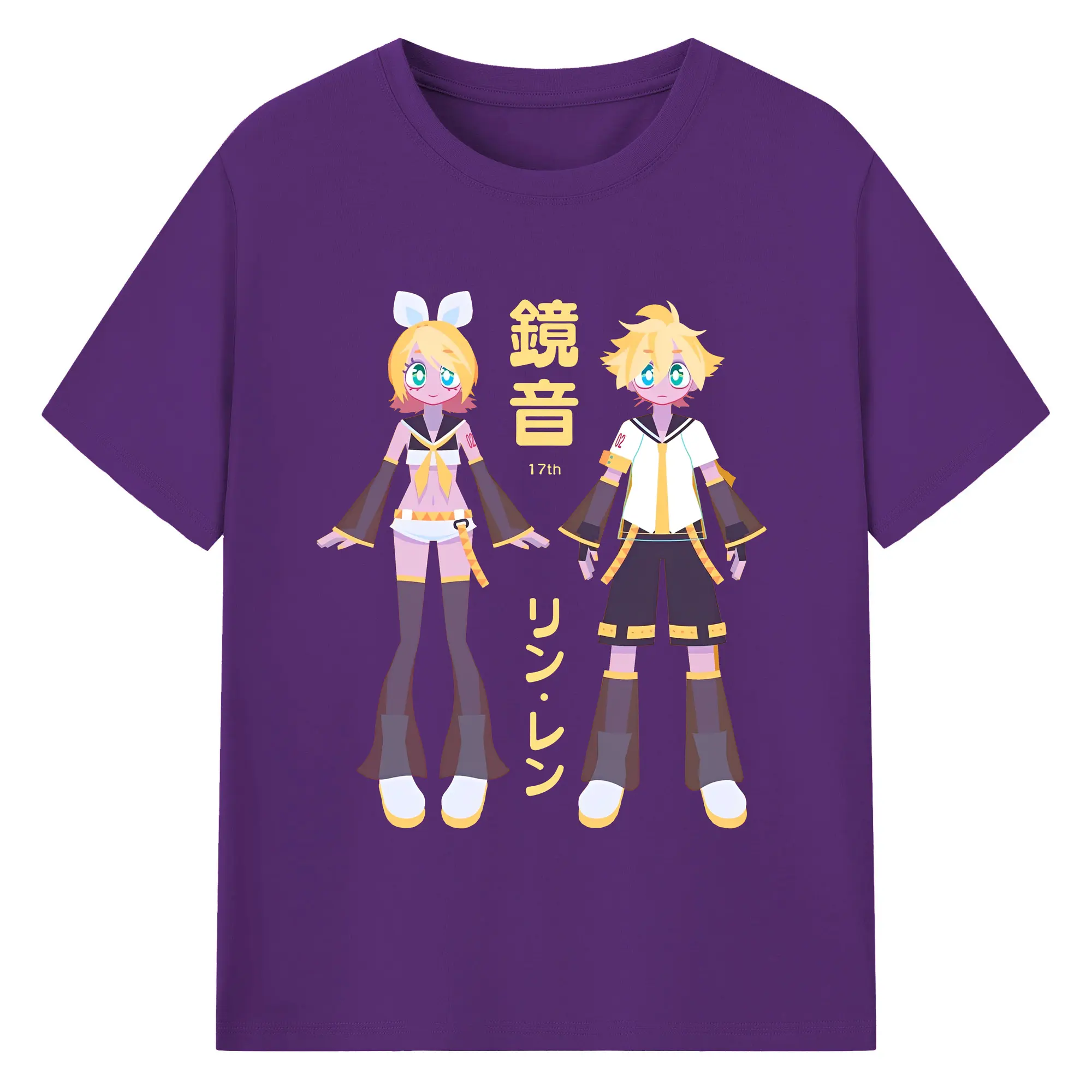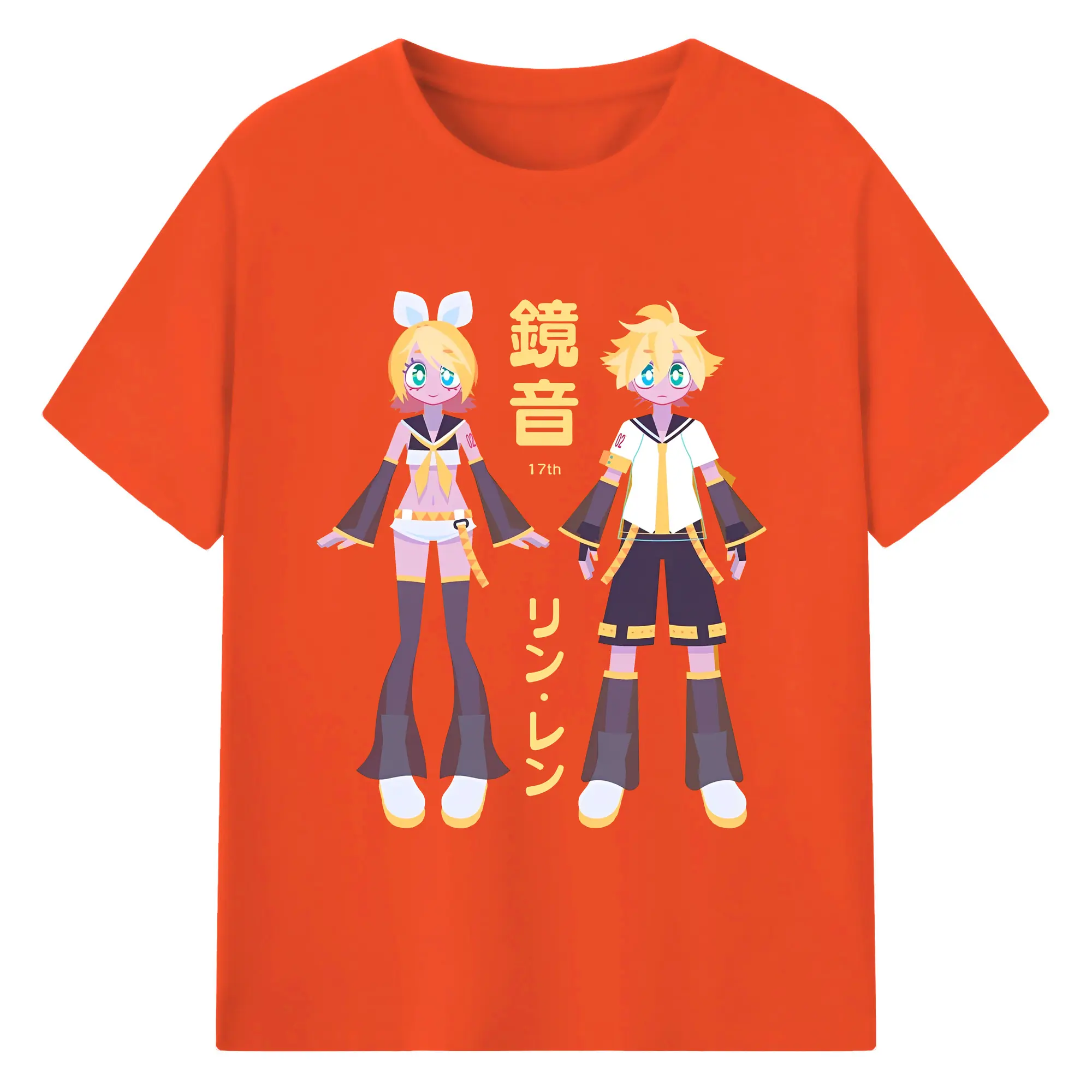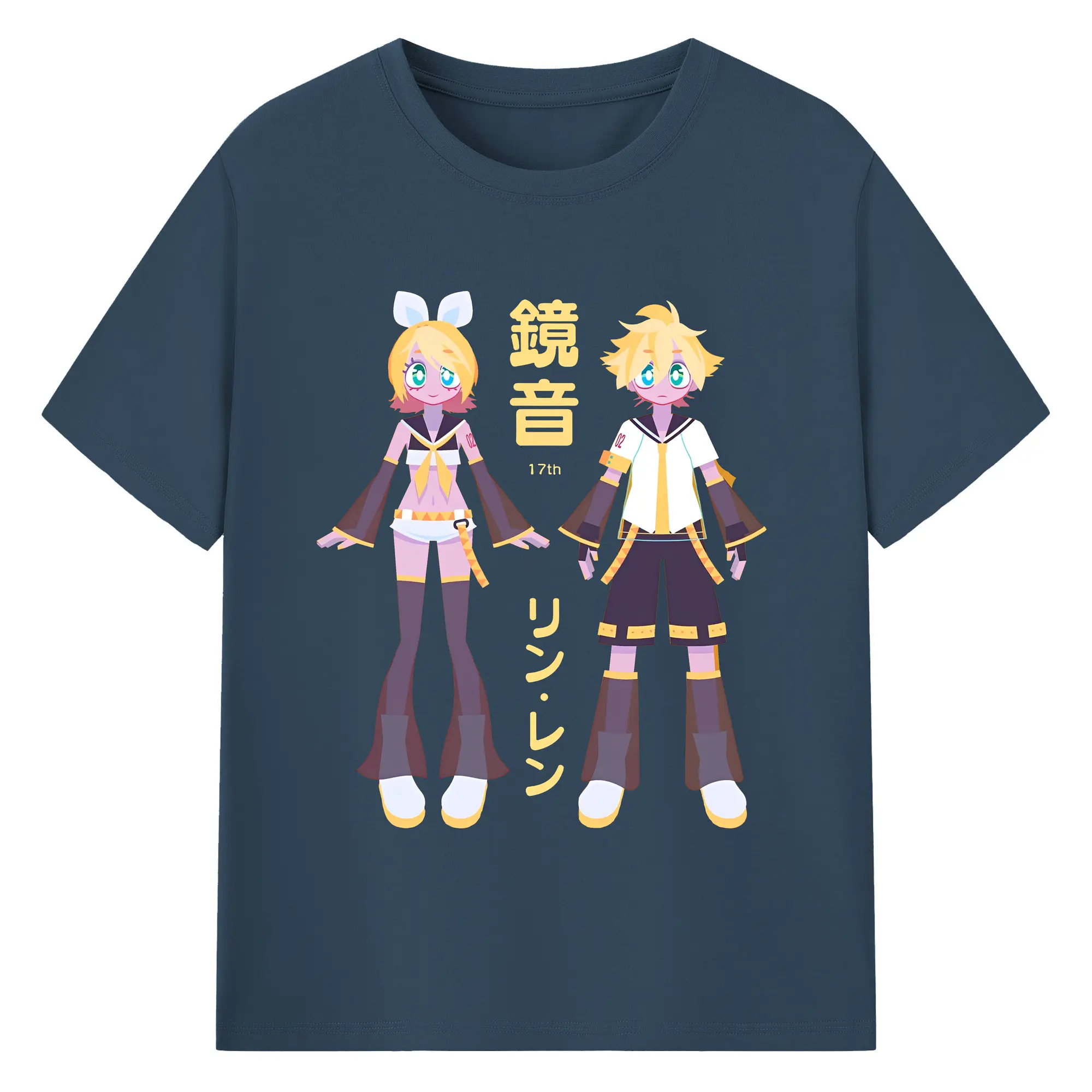 鏡音リン・レン 17th - 綿100% ヴィンテージ風 半袖Tシャツ ・ フロントプリント ・ 柔らか肌触り ・ 通気性 快適 ・ スポーツ カジュアル 外出用