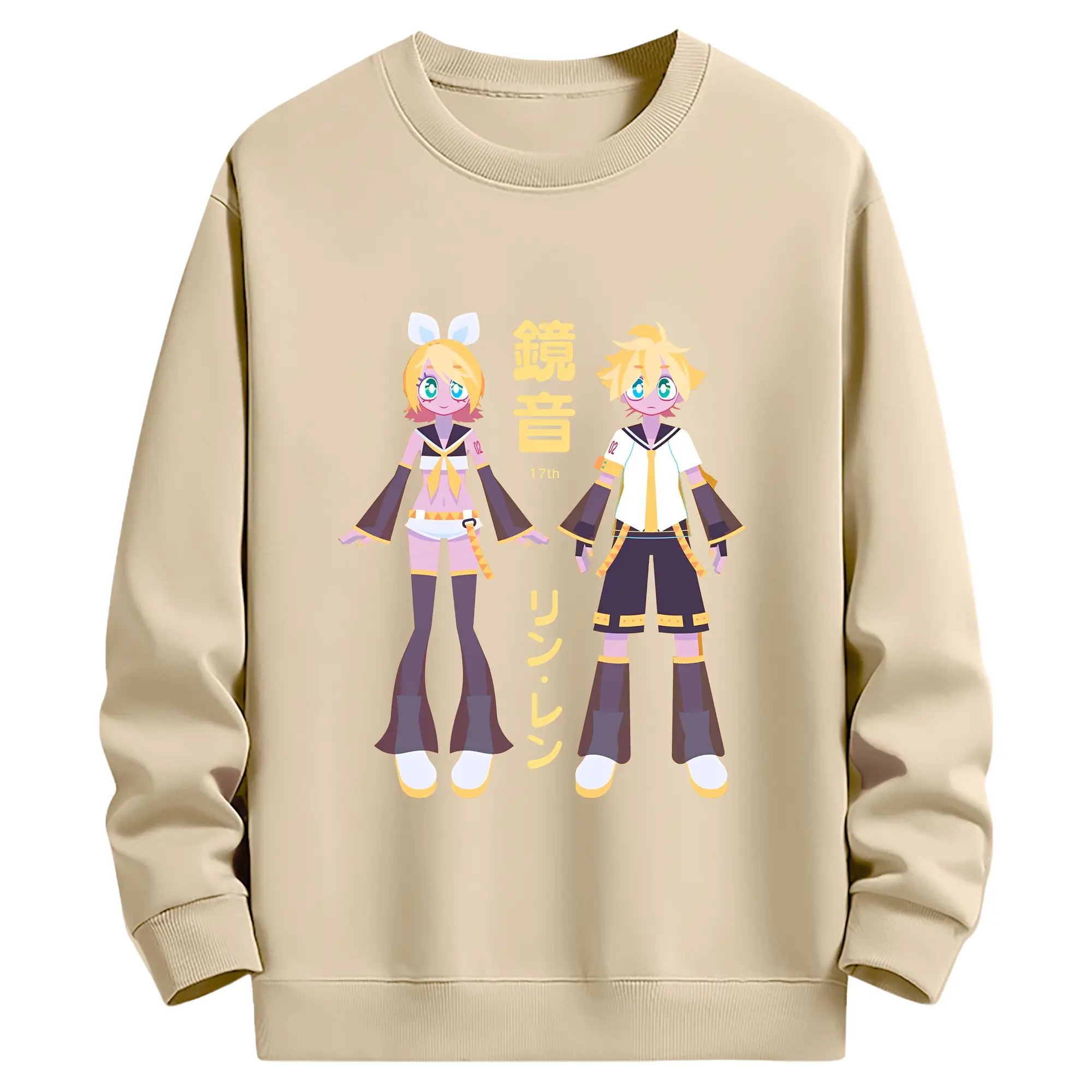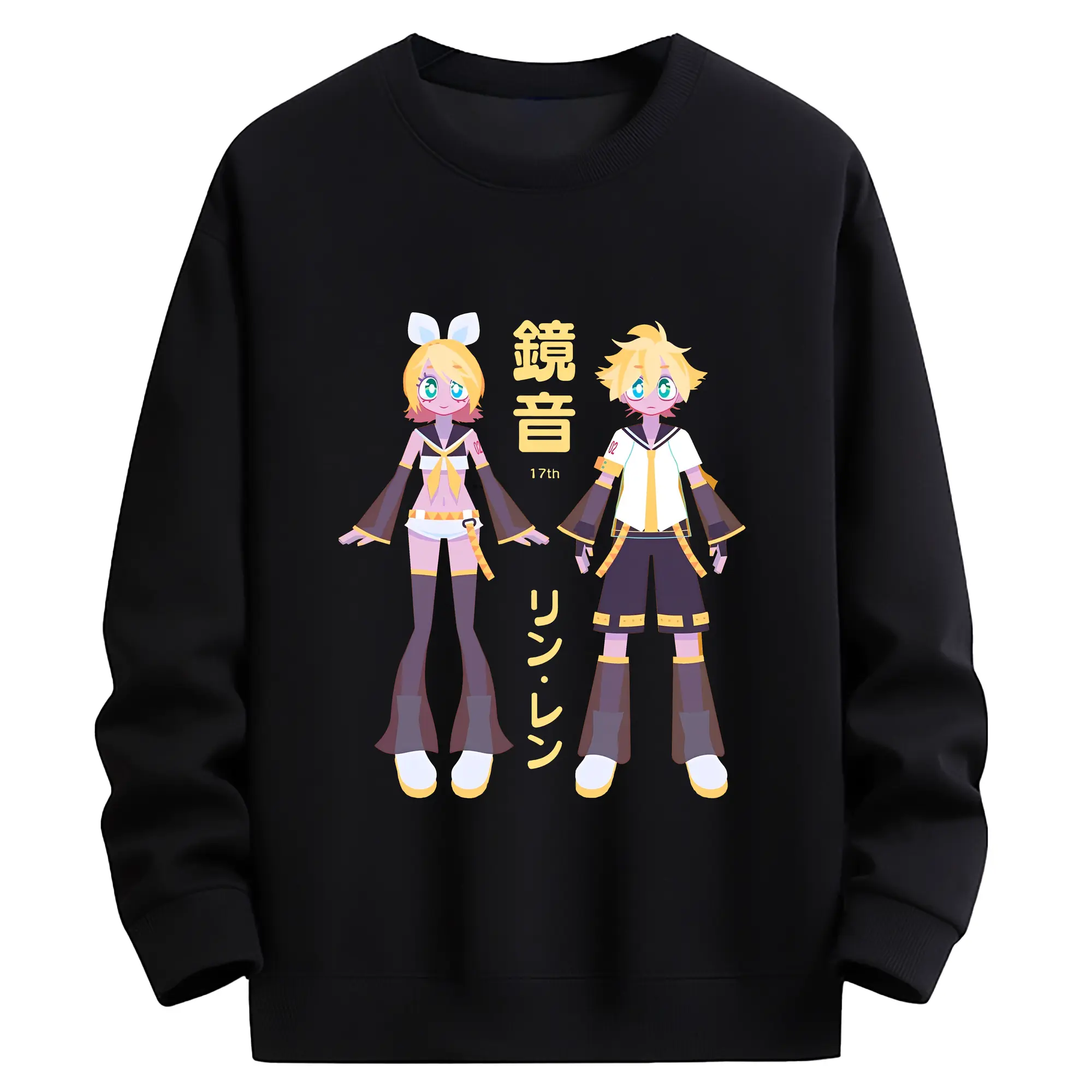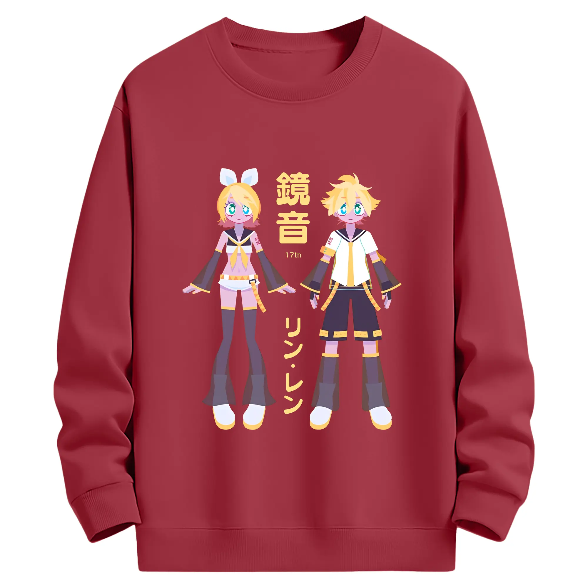 鏡音リン・レン 17th - 綿100% ヴィンテージ風 半袖Tシャツ ・ フロントプリント ・ 柔らか肌触り ・ 通気性 快適 ・ スポーツ カジュアル 外出用