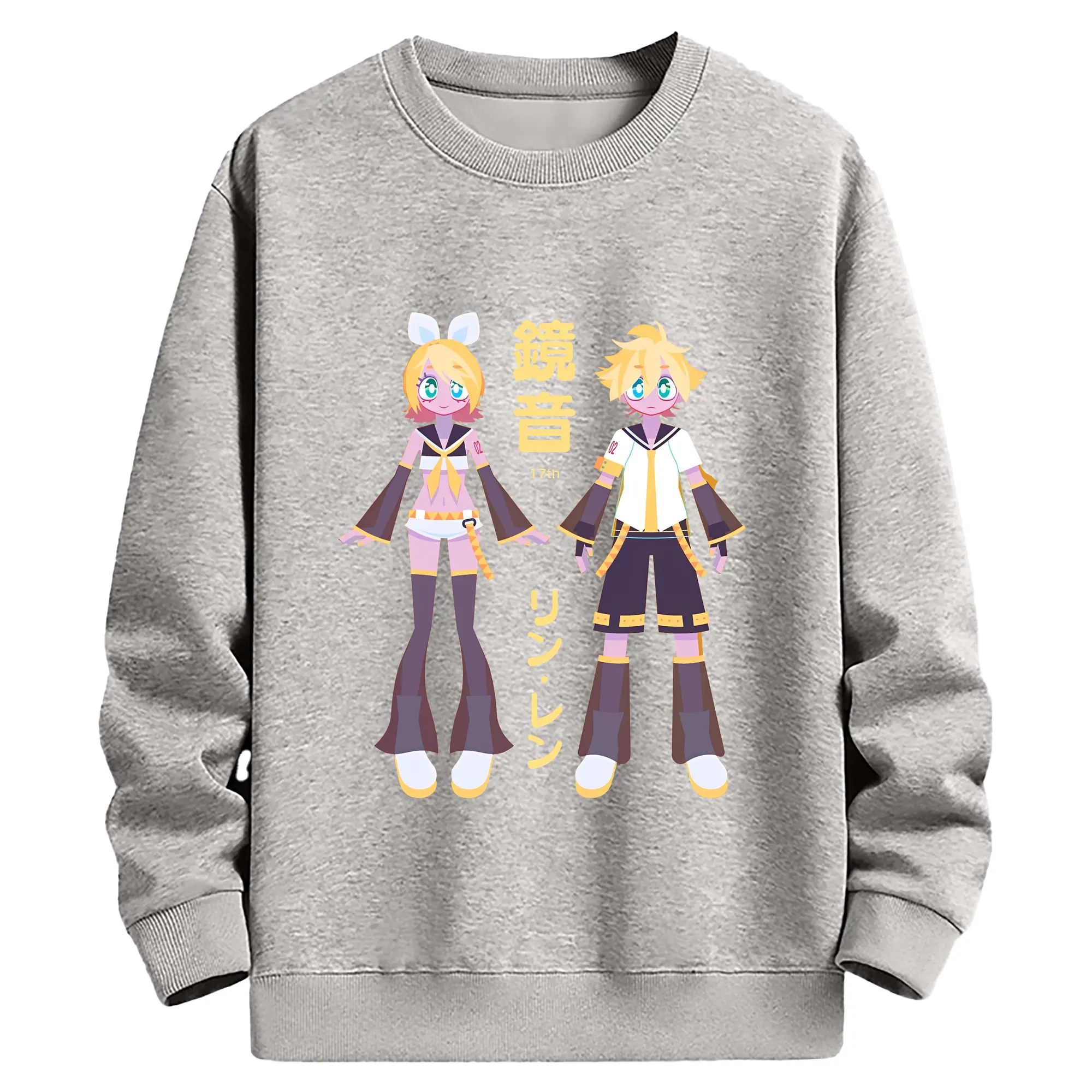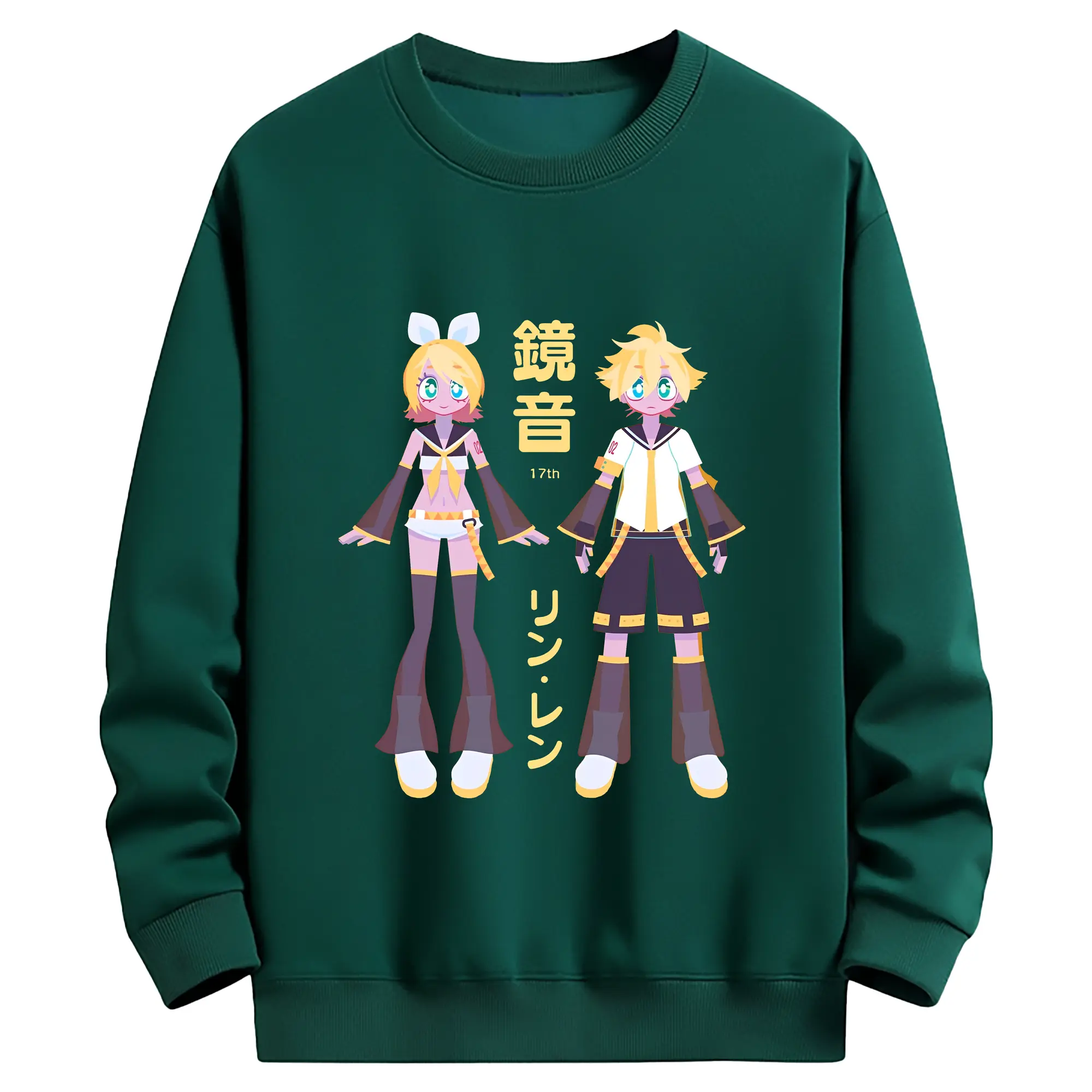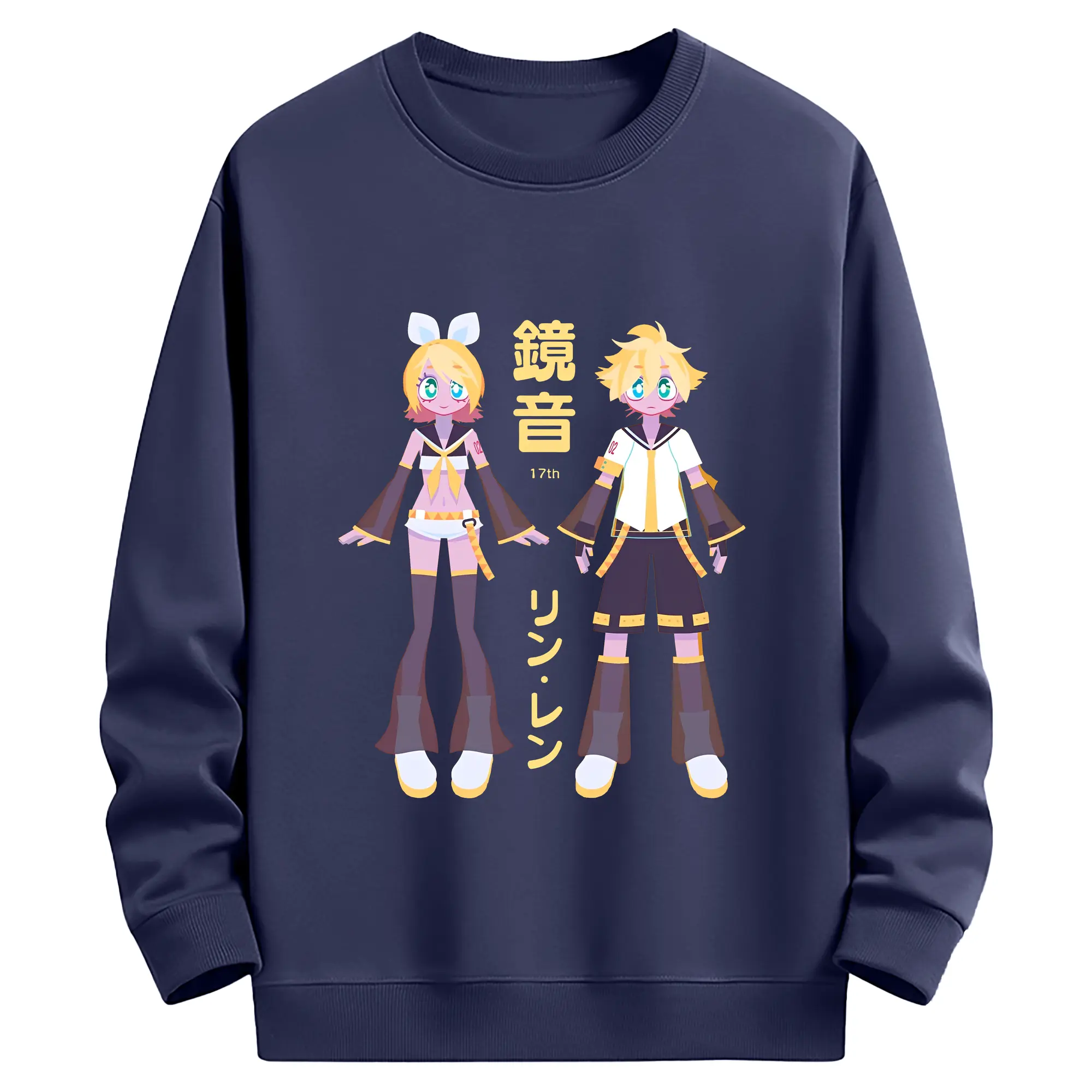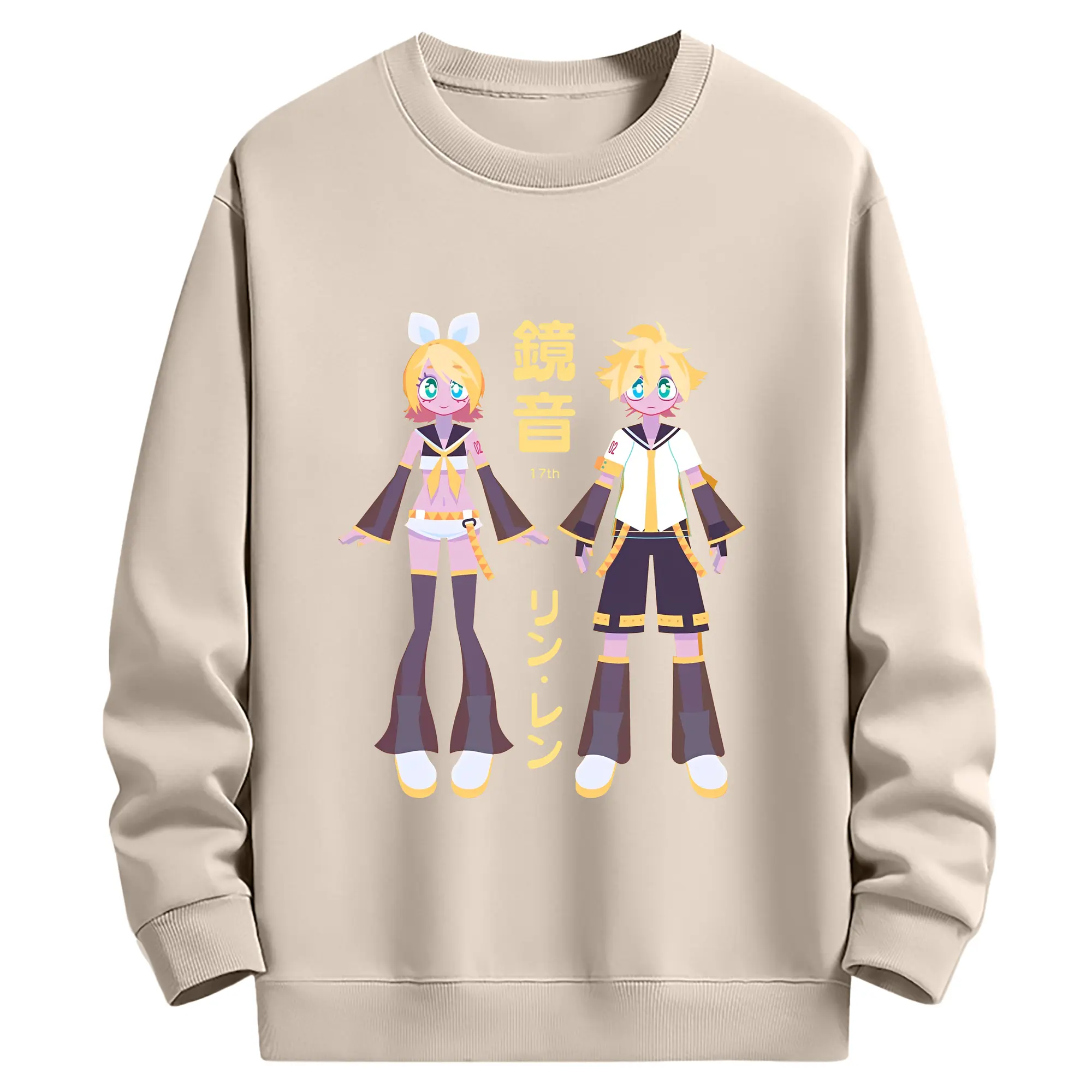 鏡音リン・レン 17th - 綿100% ヴィンテージ風 半袖Tシャツ ・ フロントプリント ・ 柔らか肌触り ・ 通気性 快適 ・ スポーツ カジュアル 外出用