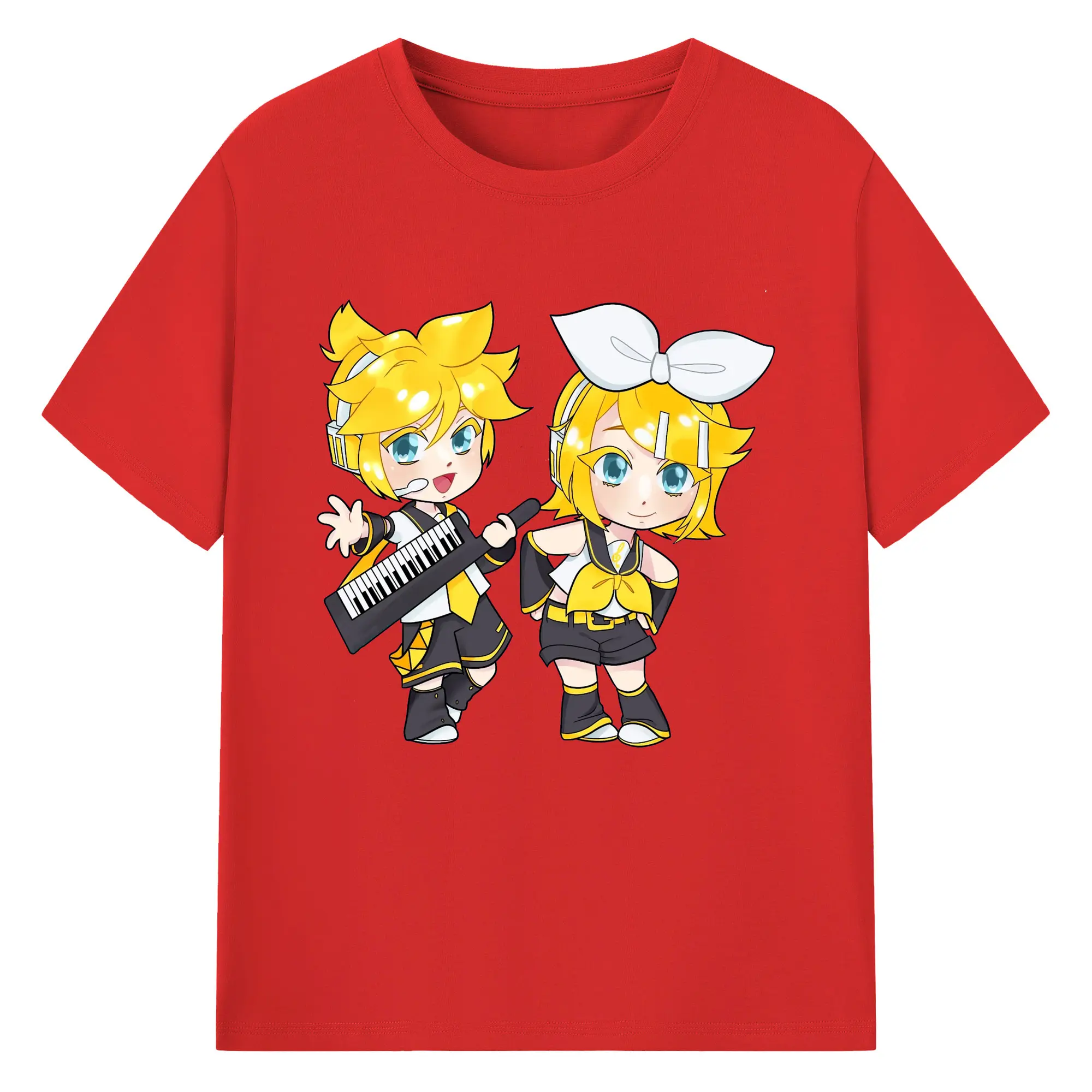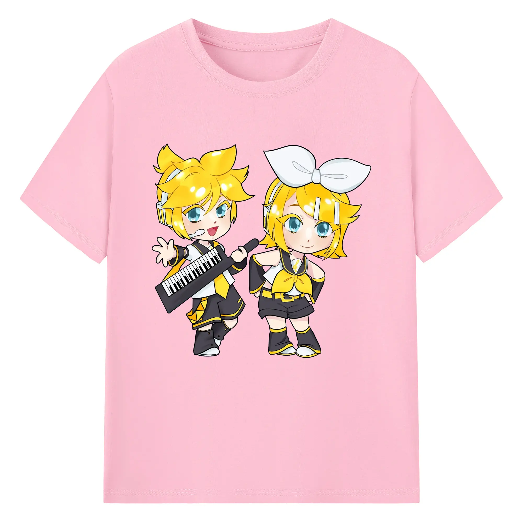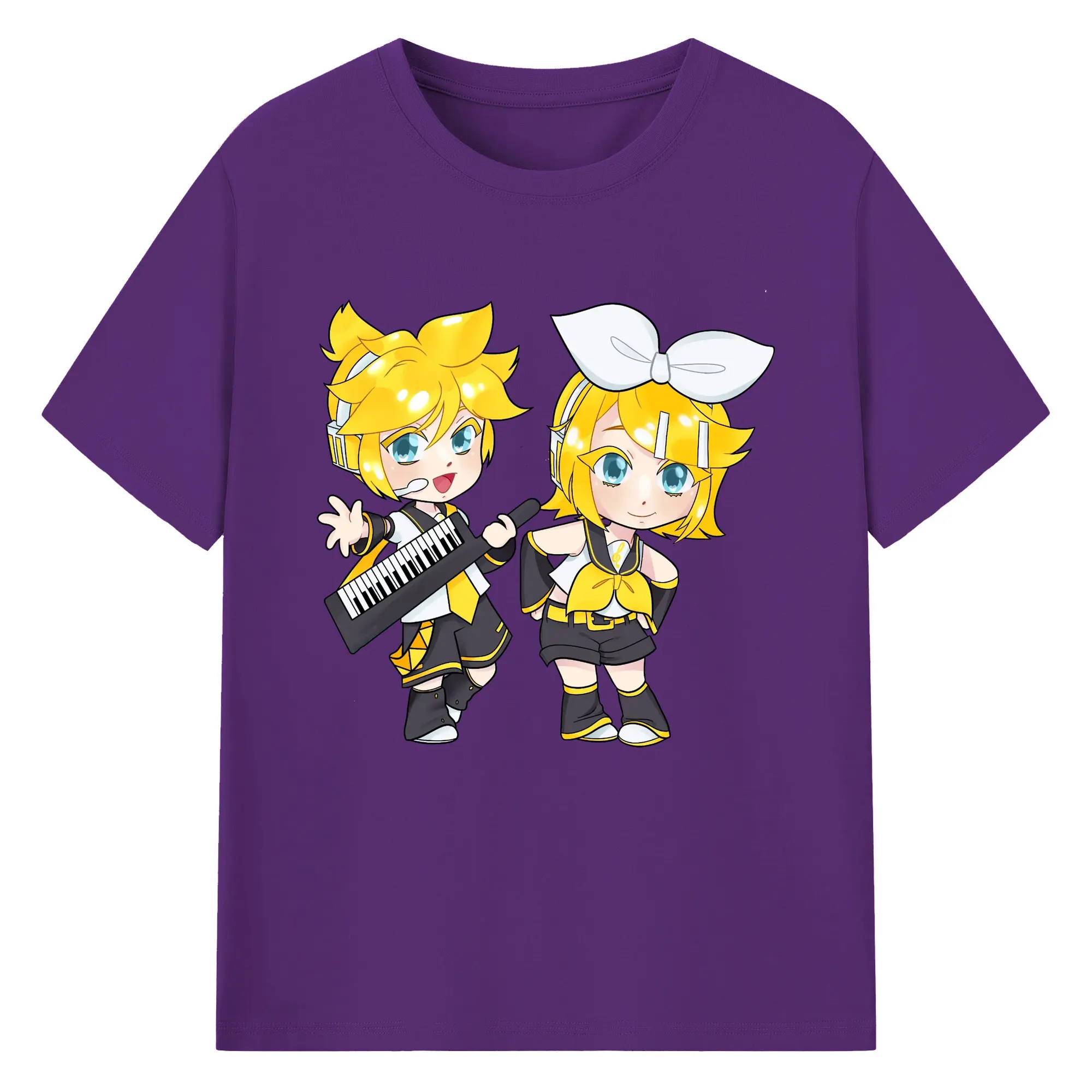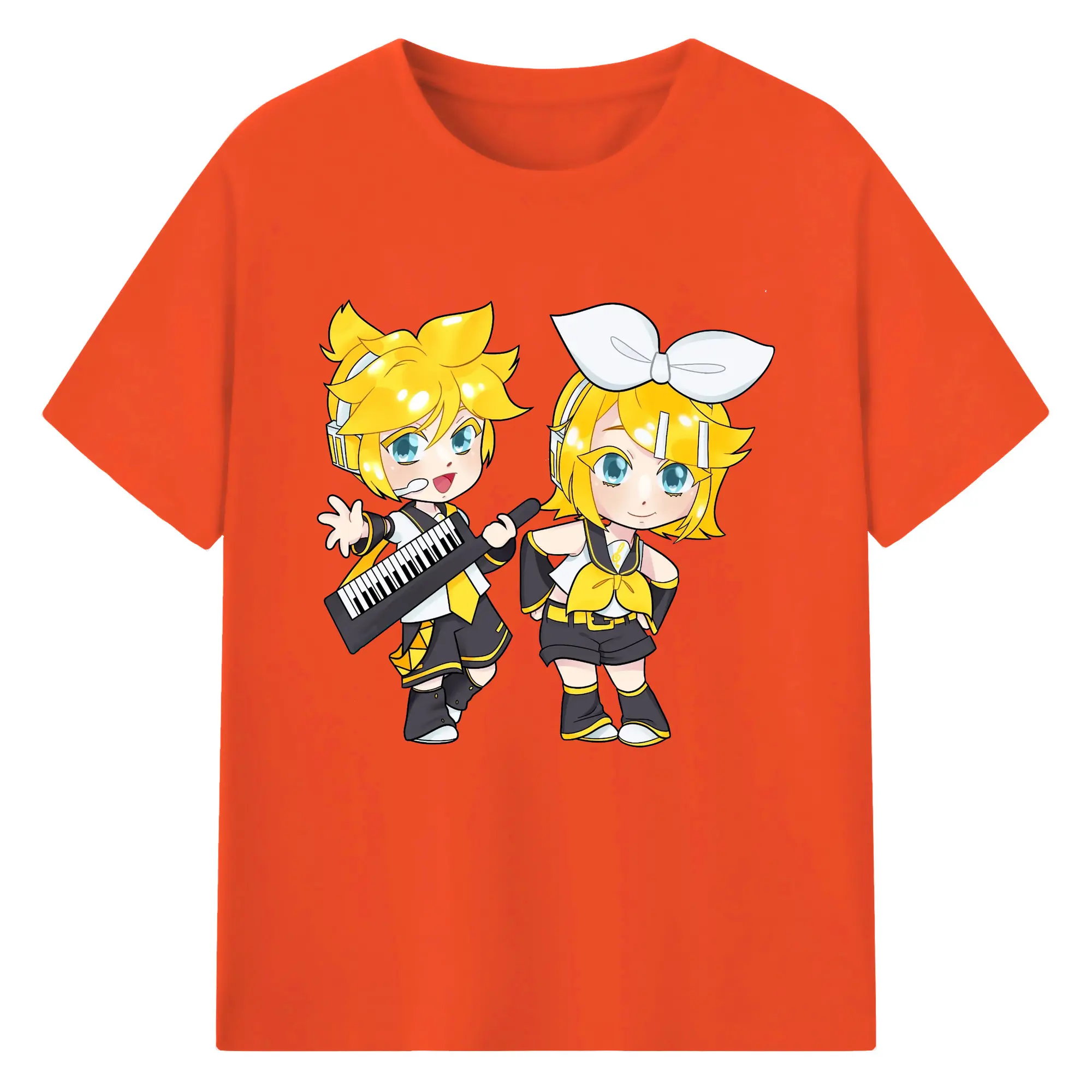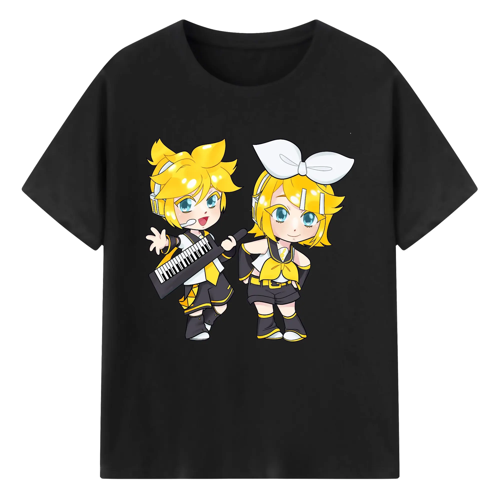 鏡音リン・レン 二次元 グッズ - 綿100% 半袖Tシャツ ・ フロントプリント ・ 快適 通気性 ・ 日常使い 散歩 スポーツ用