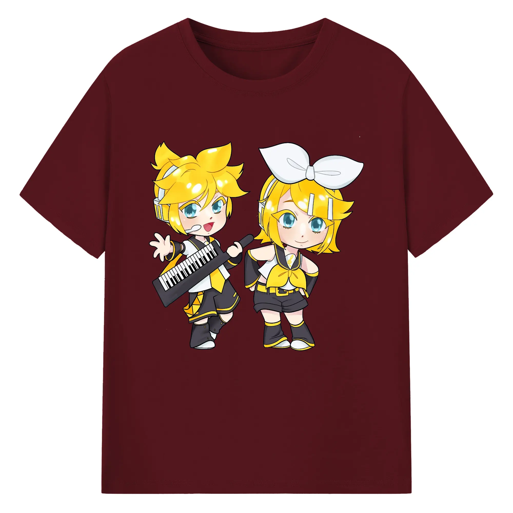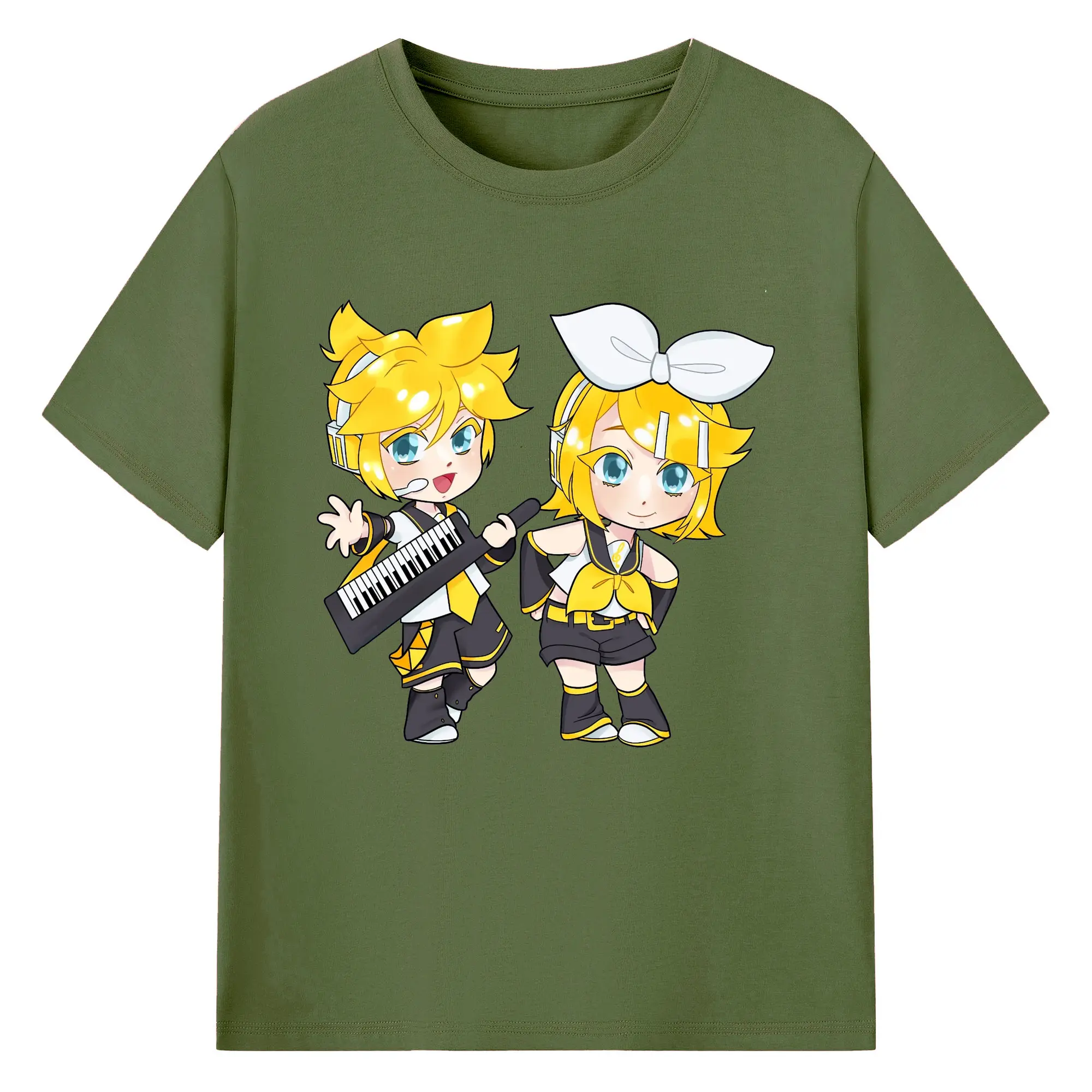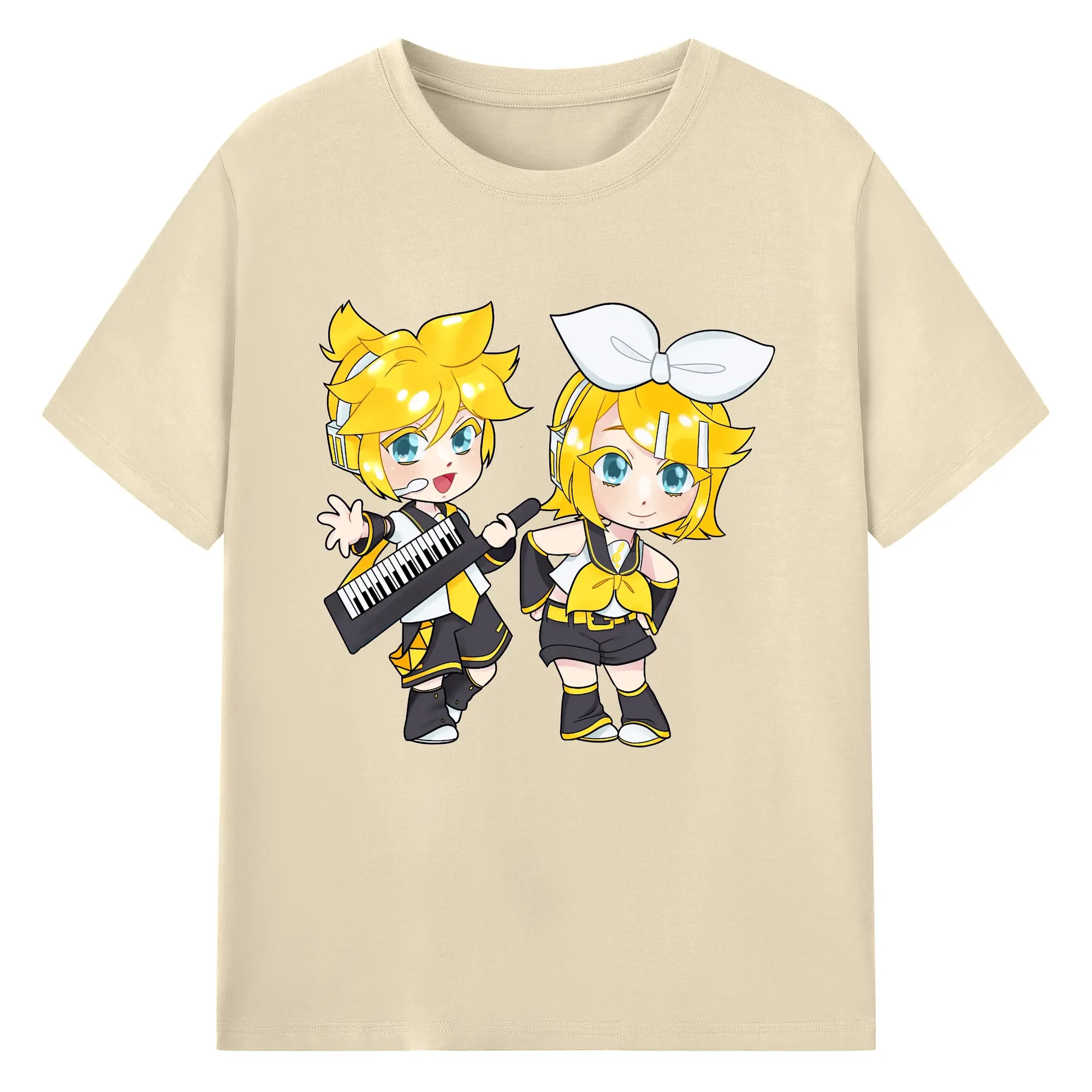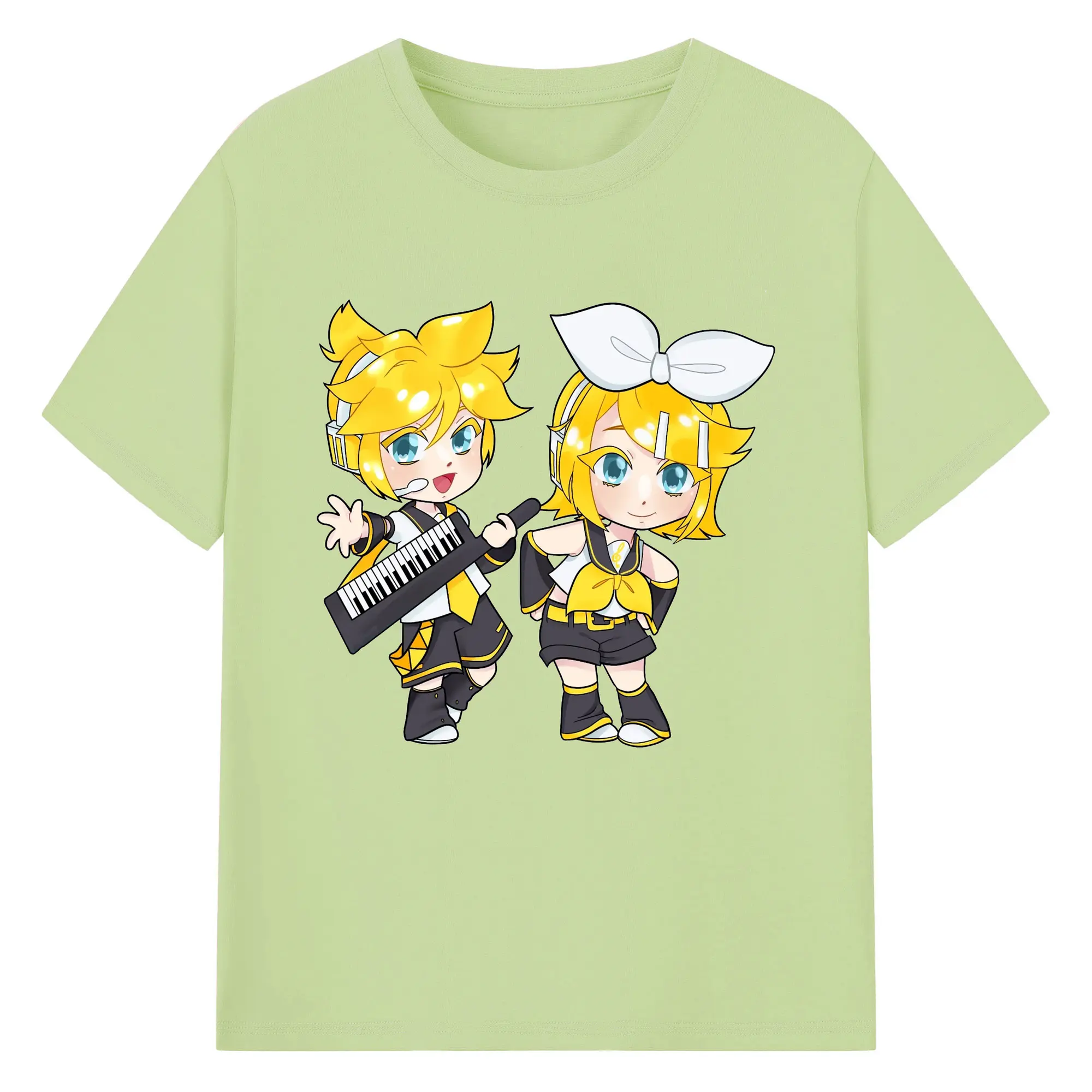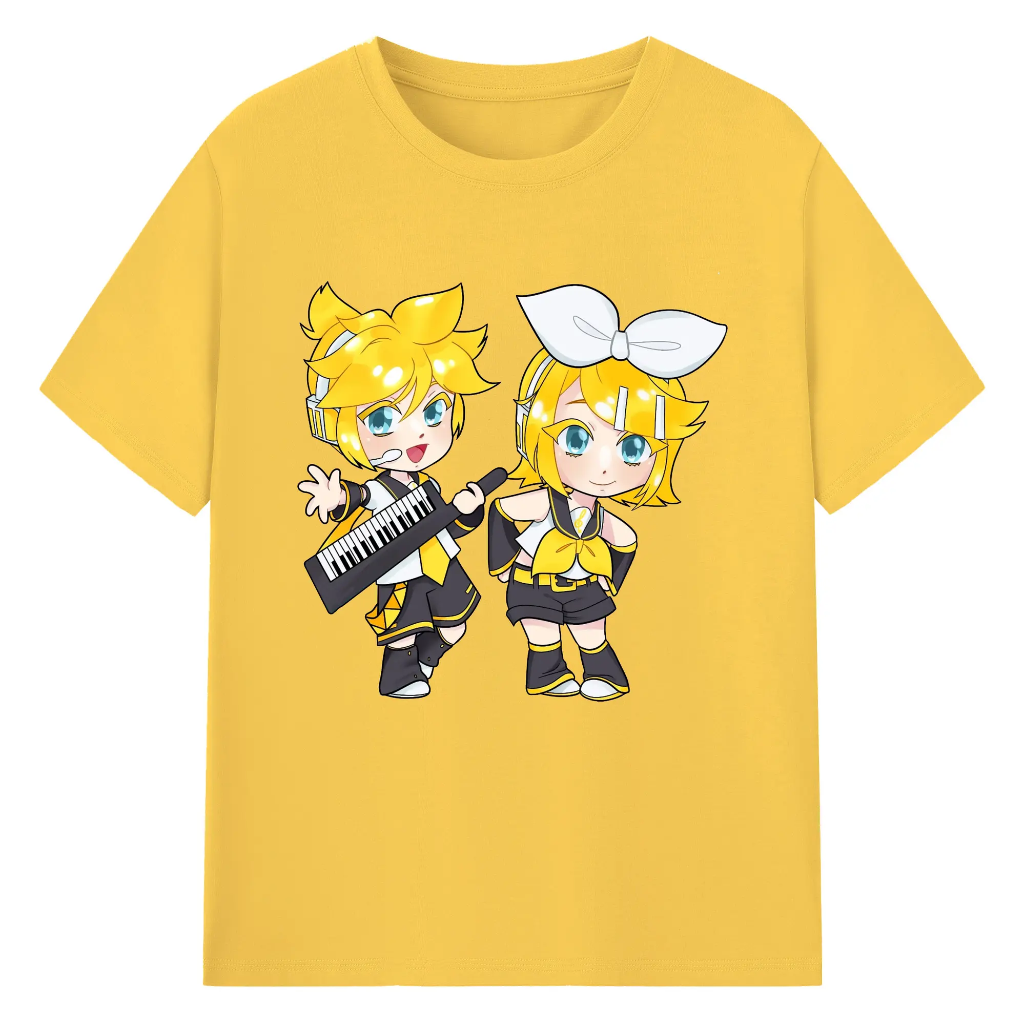 鏡音リン・レン 二次元 グッズ - 綿100% 半袖Tシャツ ・ フロントプリント ・ 快適 通気性 ・ 日常使い 散歩 スポーツ用