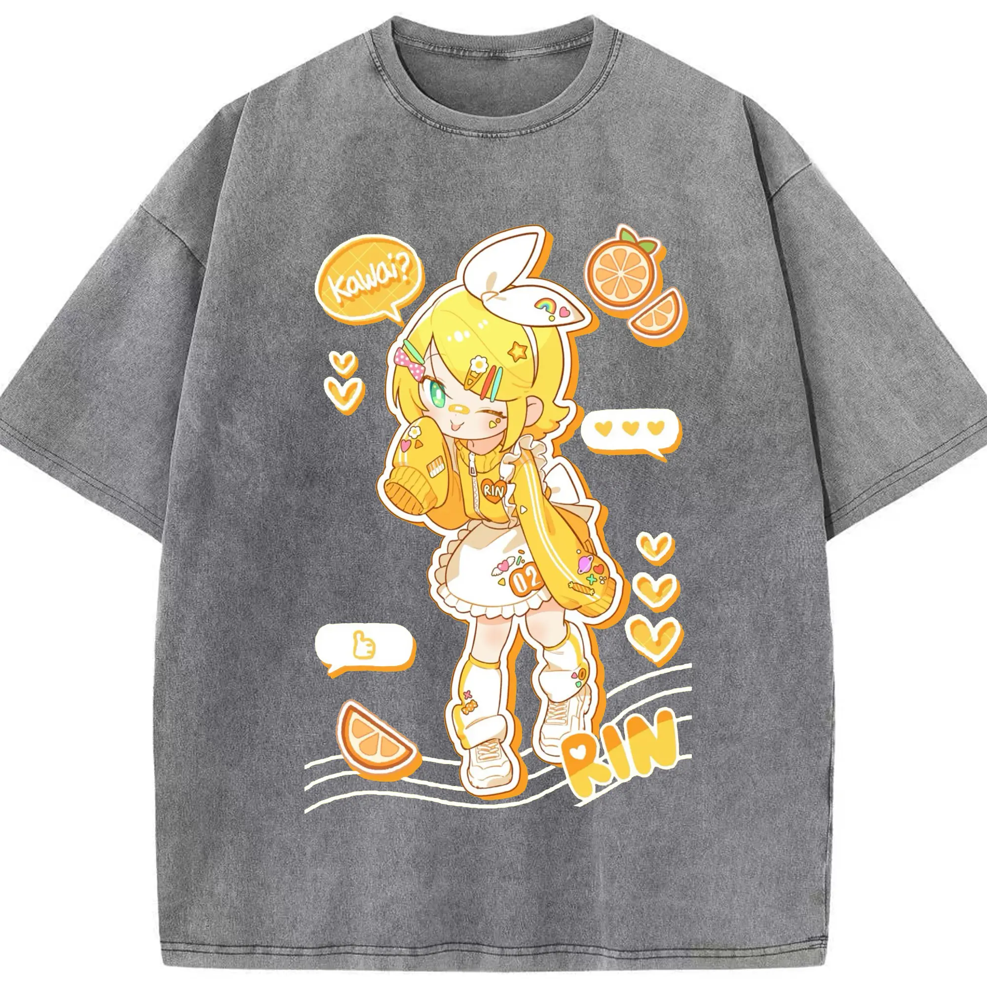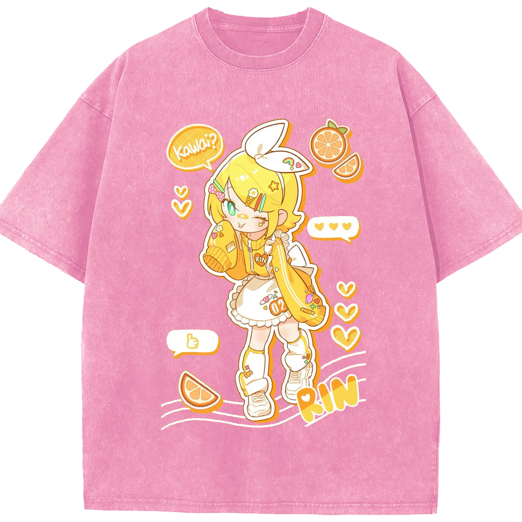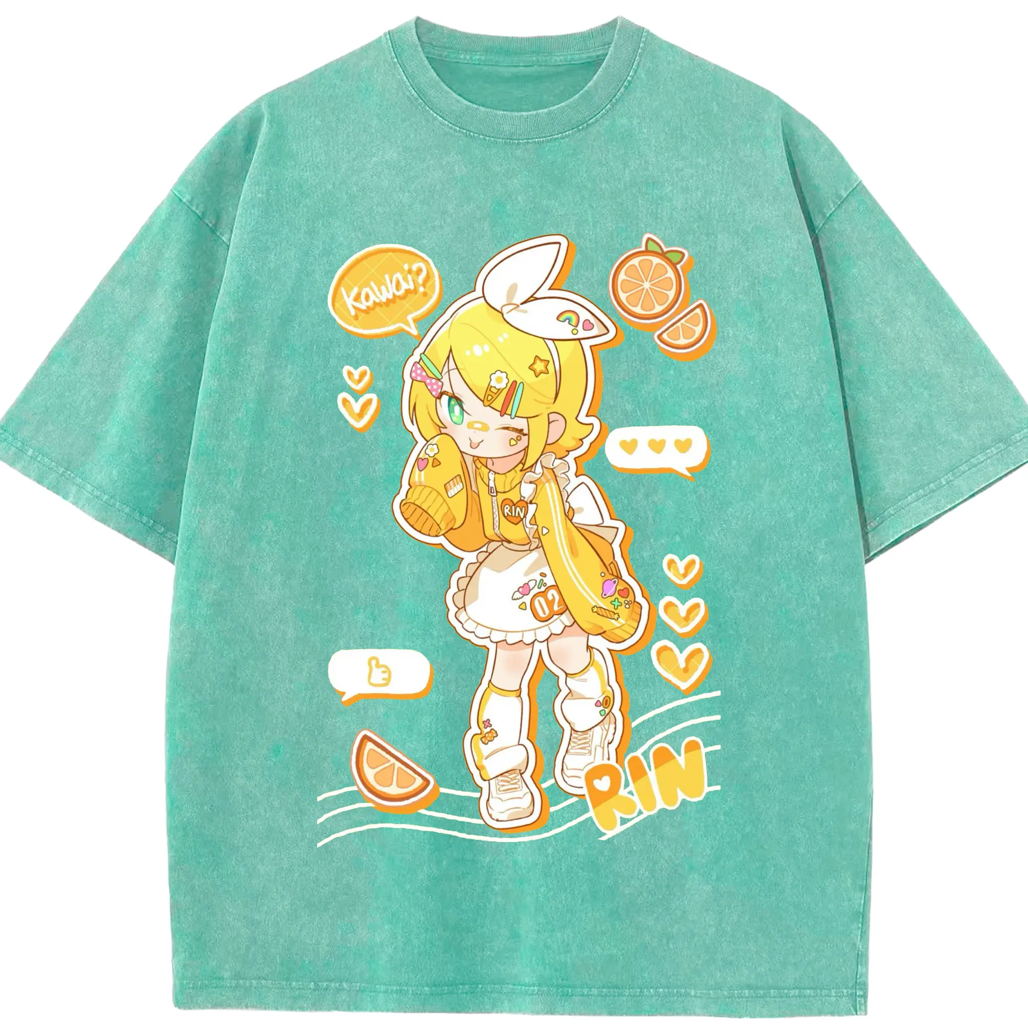 鏡音リンKagamine Rin - 綿100% 半袖Tシャツ ・ フロントプリント ・ 快適 通気性 ・ 日常使い 散歩 スポーツ用