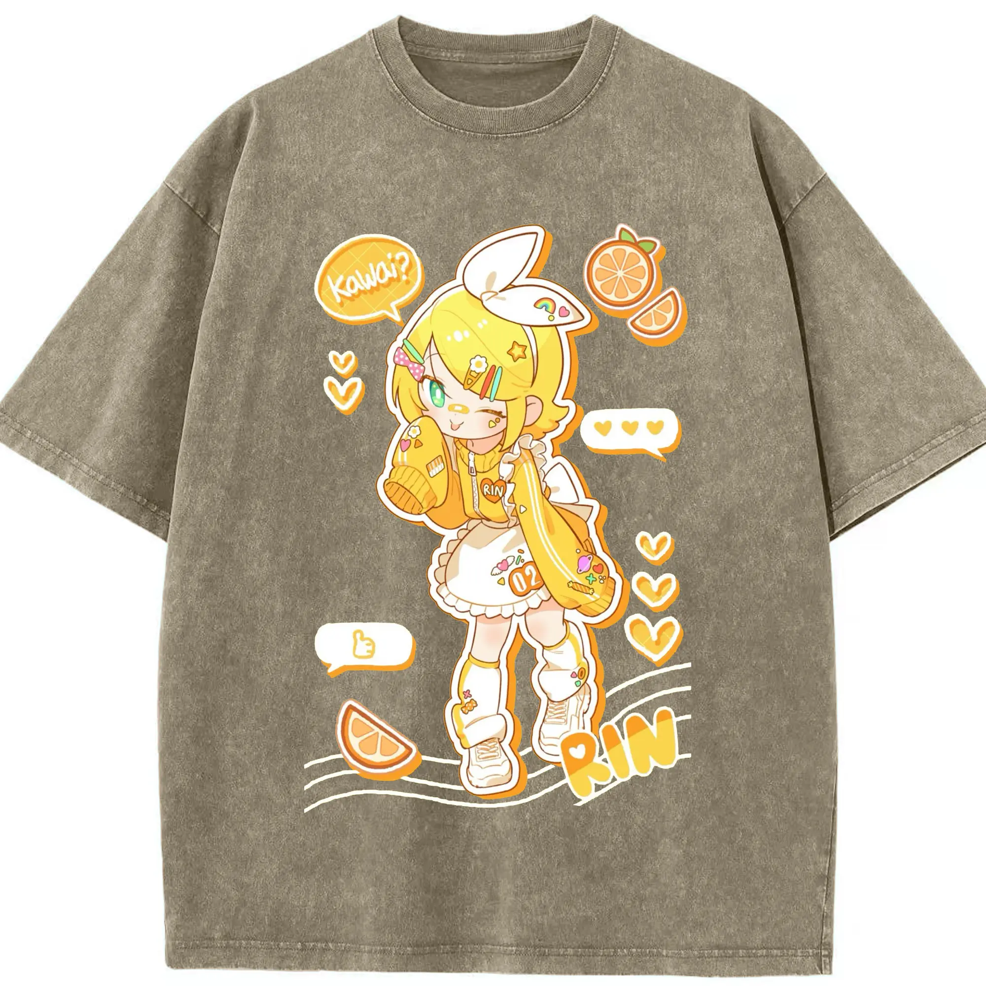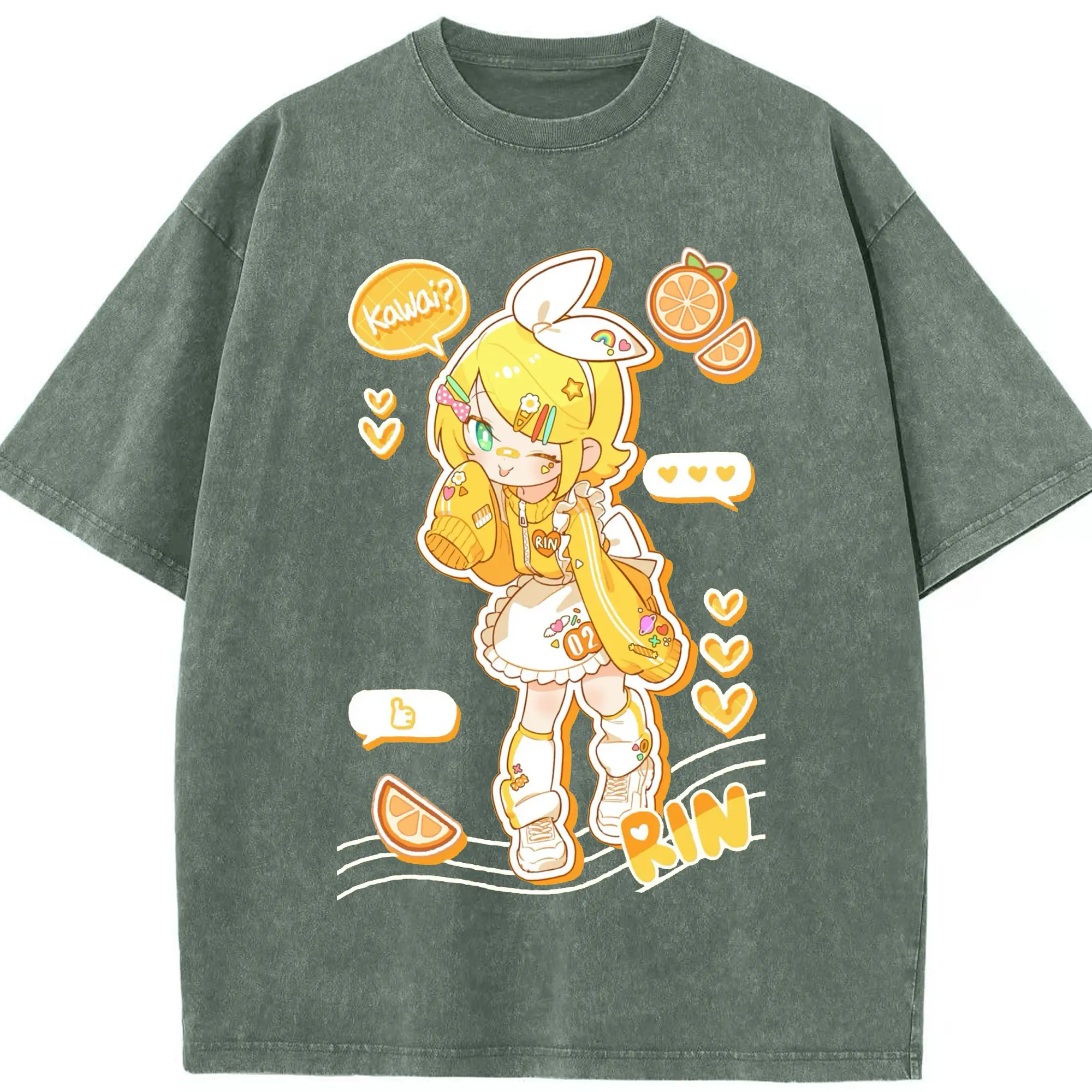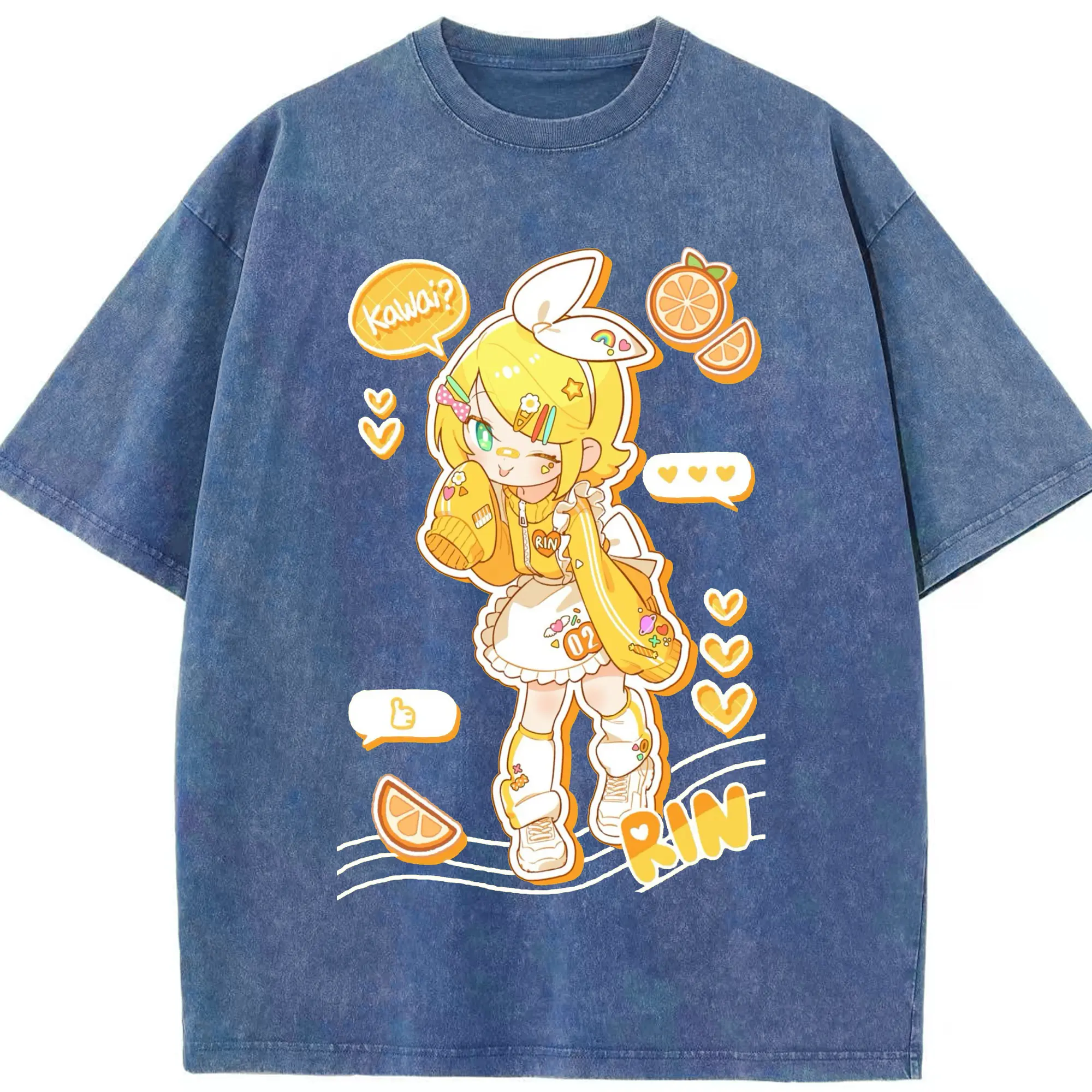 鏡音リンKagamine Rin - 綿100% 半袖Tシャツ ・ フロントプリント ・ 快適 通気性 ・ 日常使い 散歩 スポーツ用