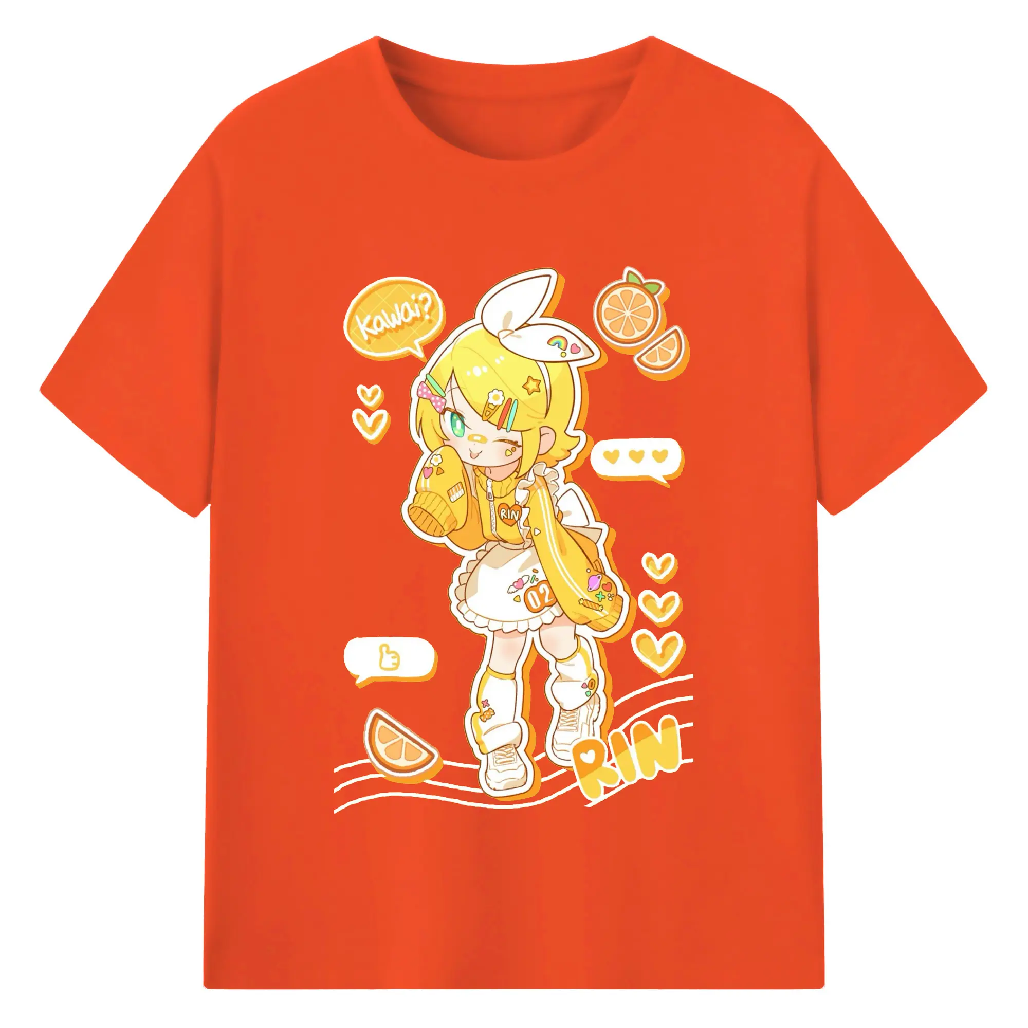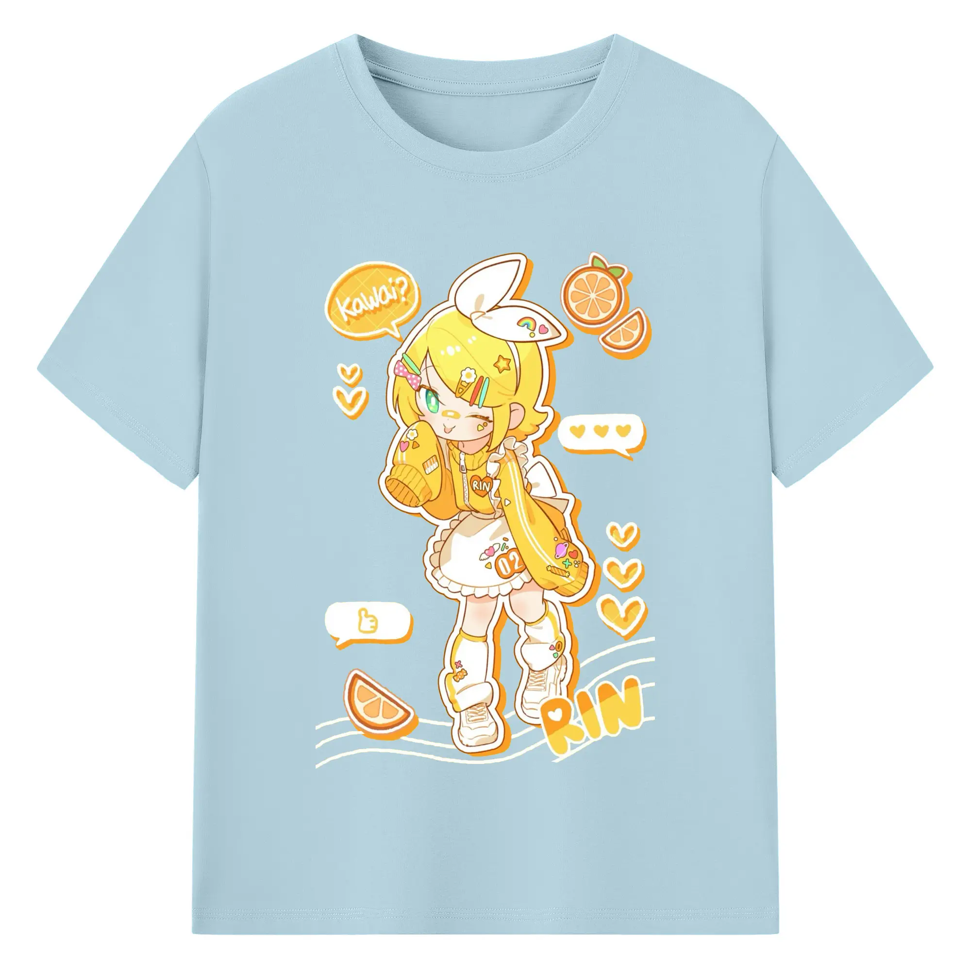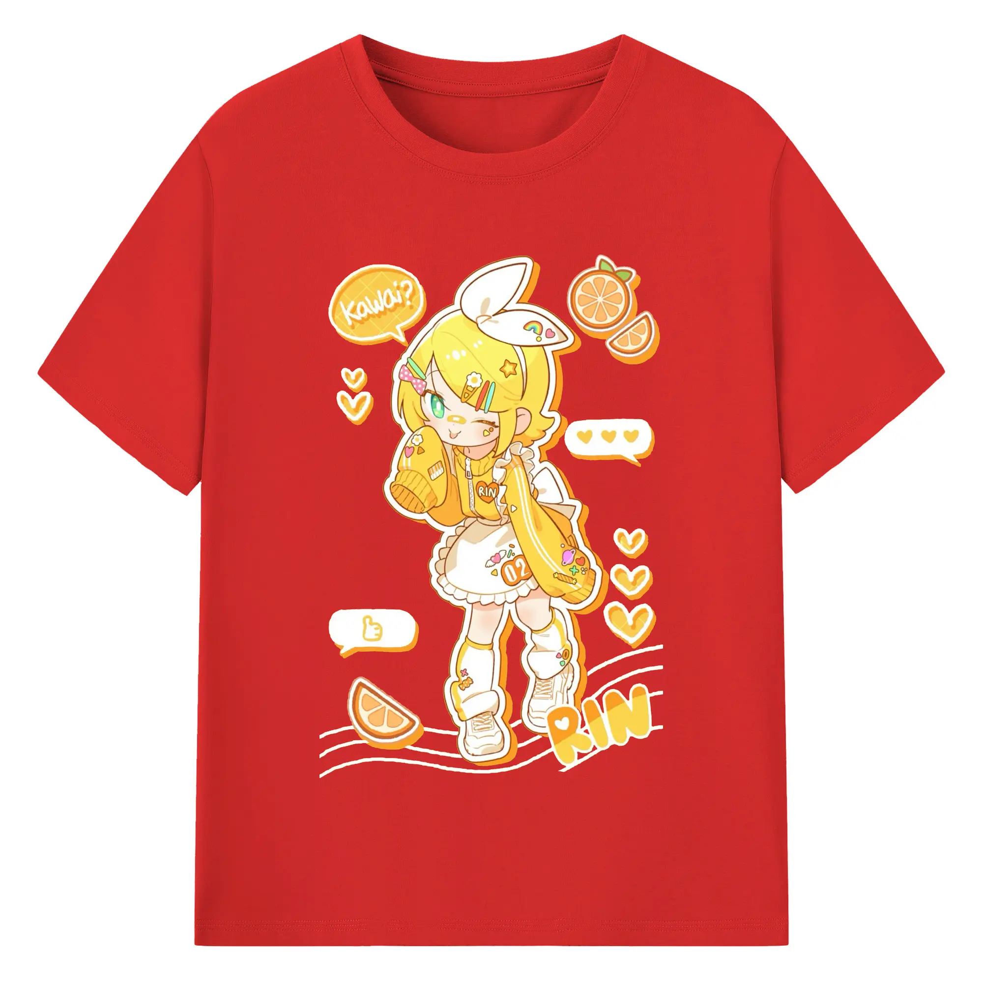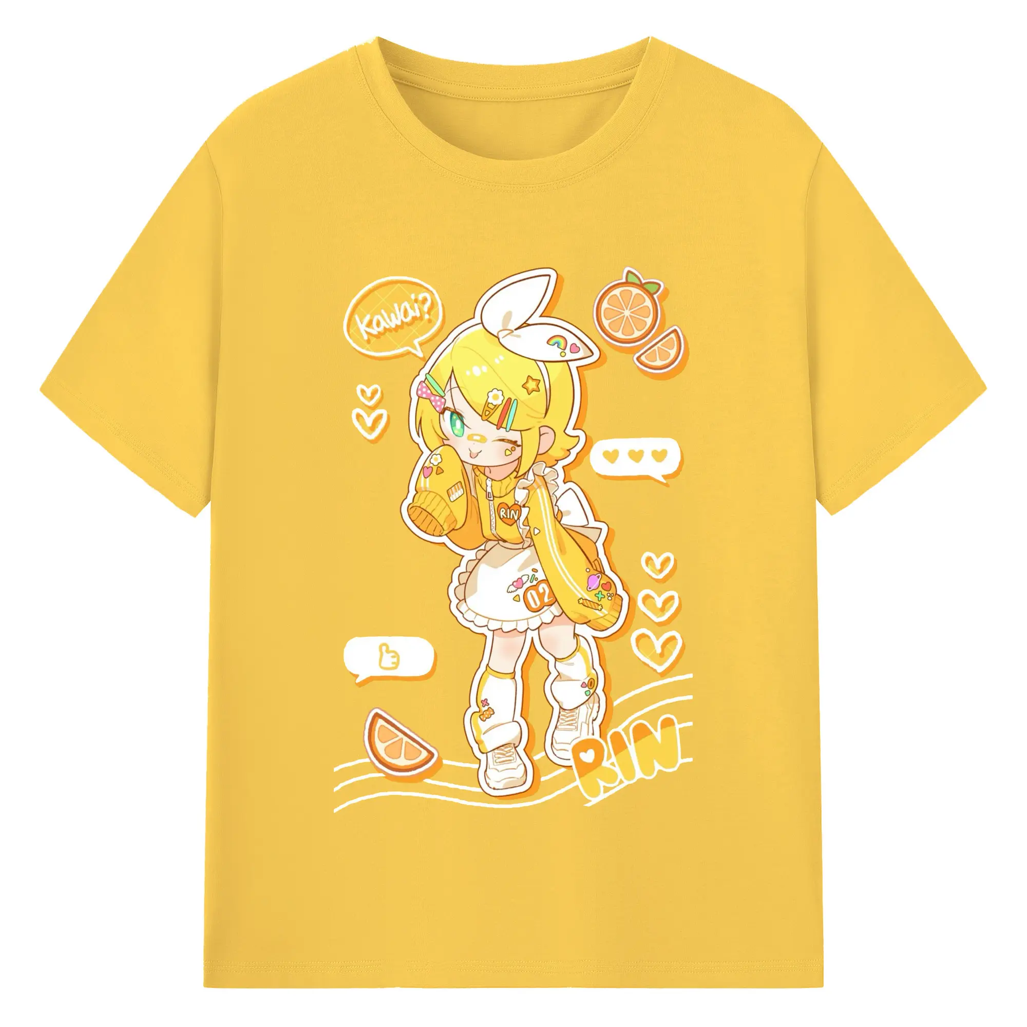 鏡音リン・レン かわいいスタイル - 綿100% 半袖Tシャツ ・ フロントプリント ・ 快適 通気性 ・ 日常使い 散歩 スポーツ用