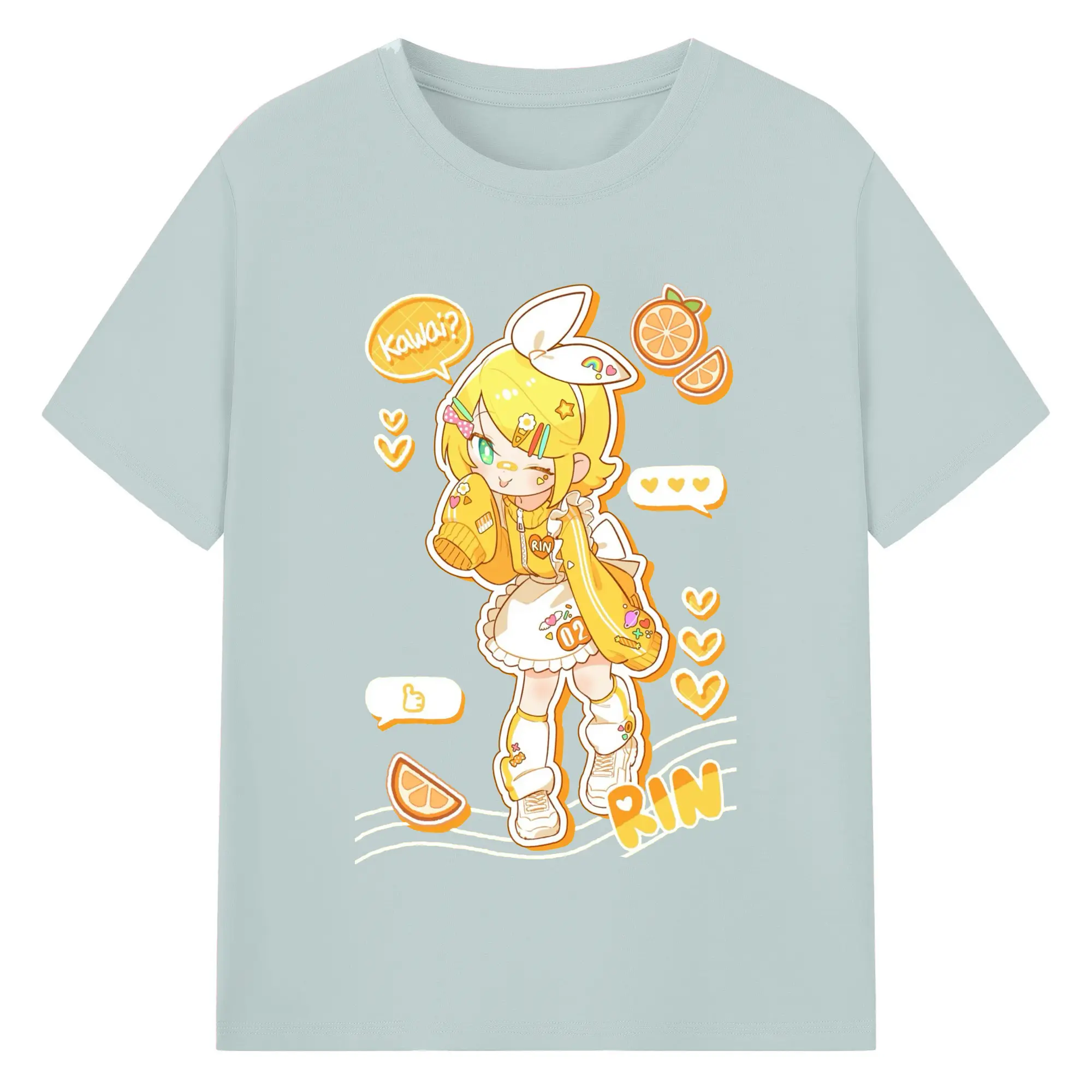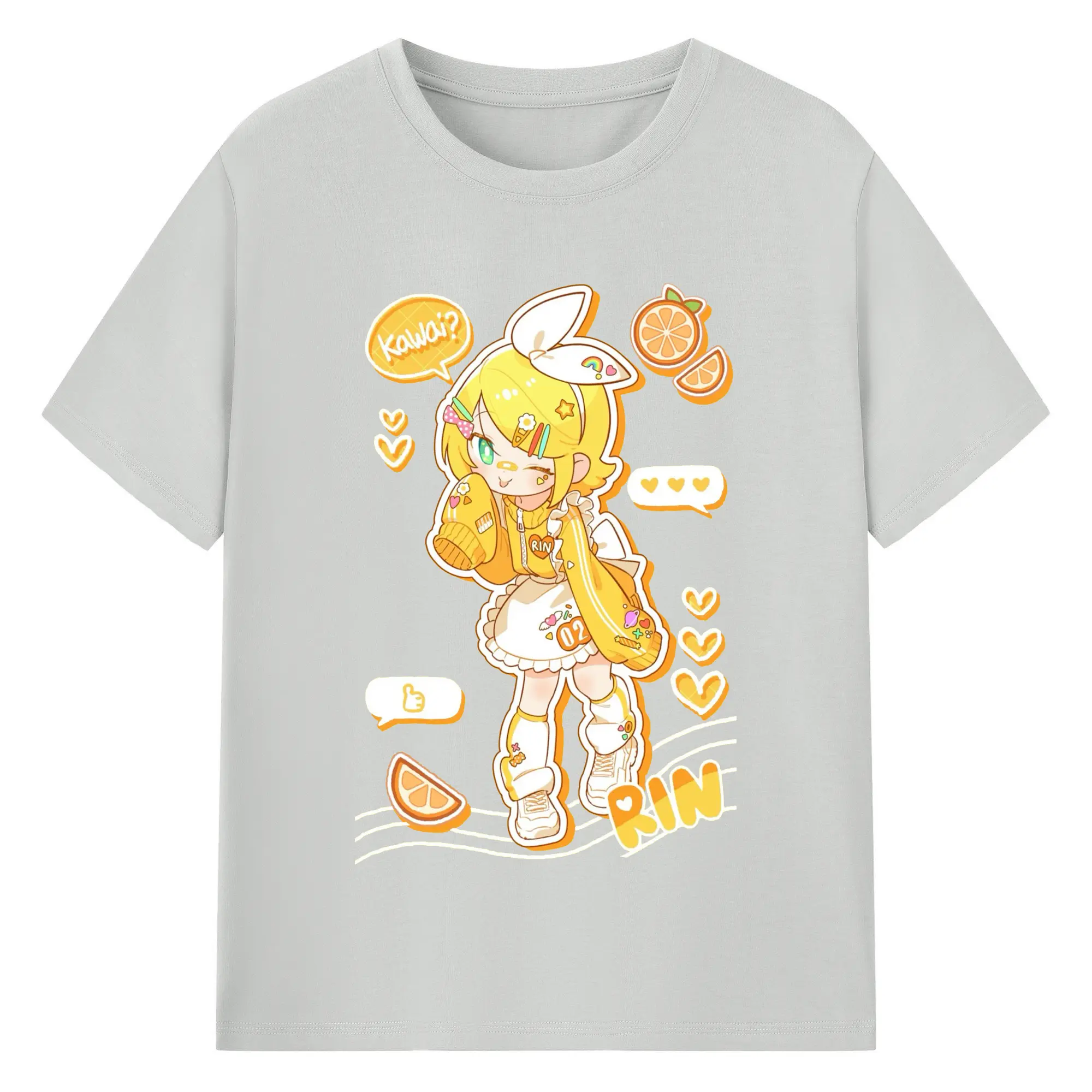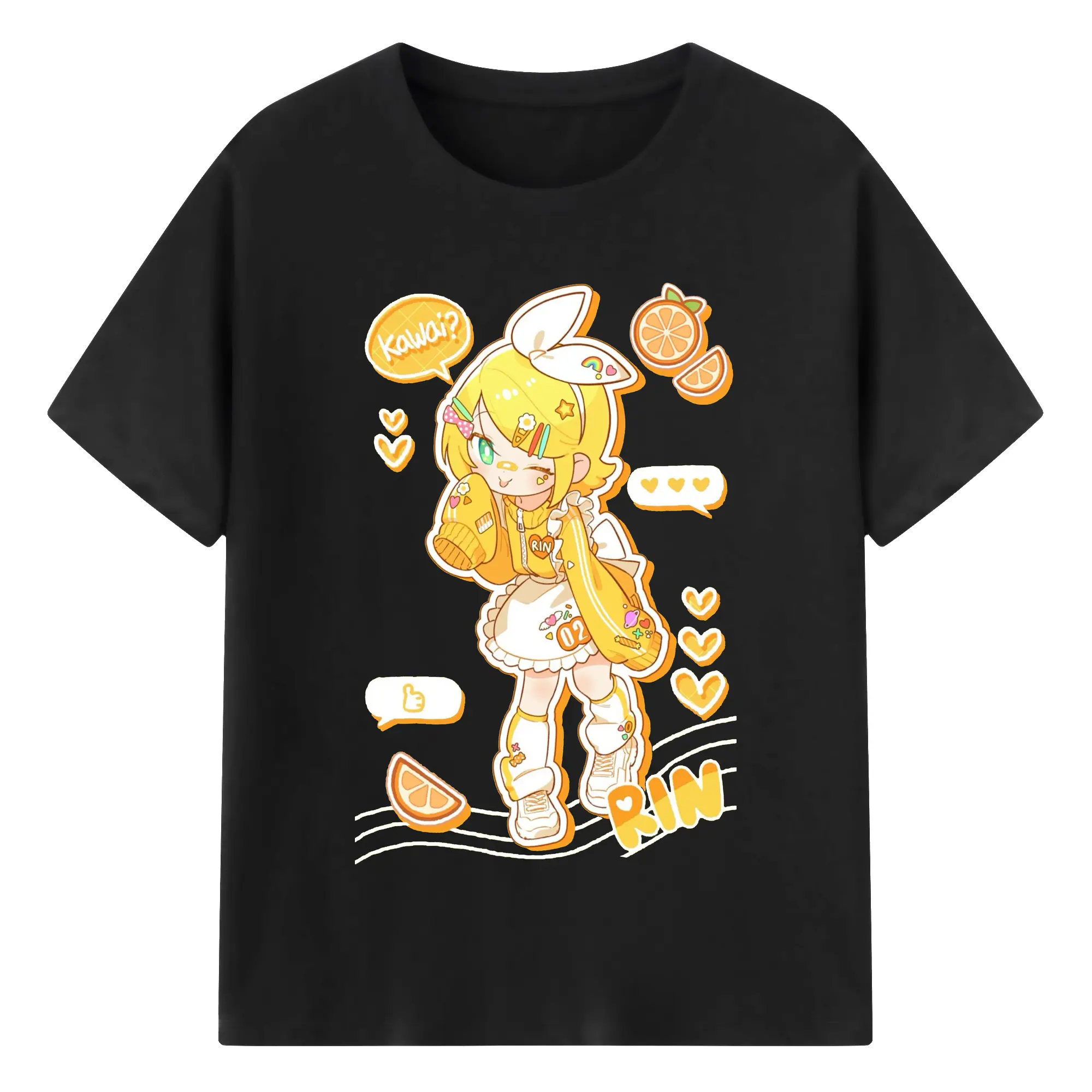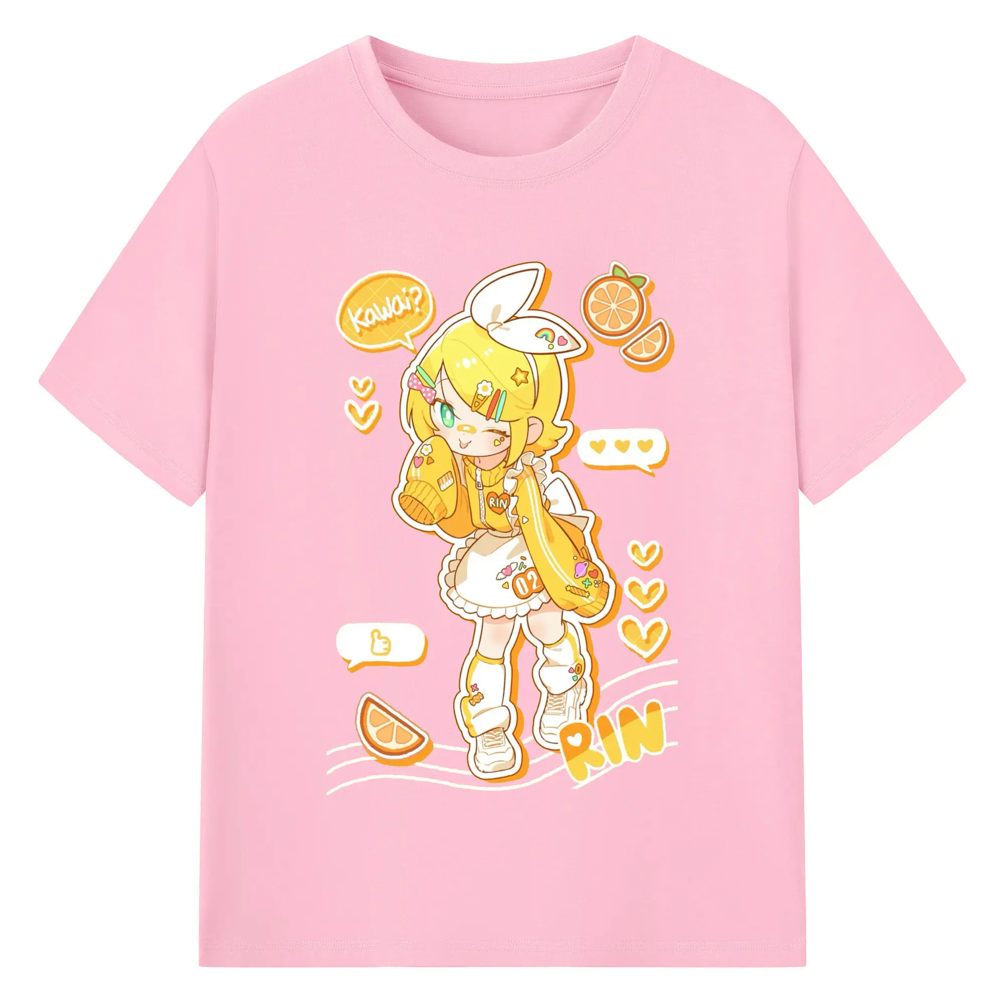 鏡音リン・レン かわいいスタイル - 綿100% 半袖Tシャツ ・ フロントプリント ・ 快適 通気性 ・ 日常使い 散歩 スポーツ用