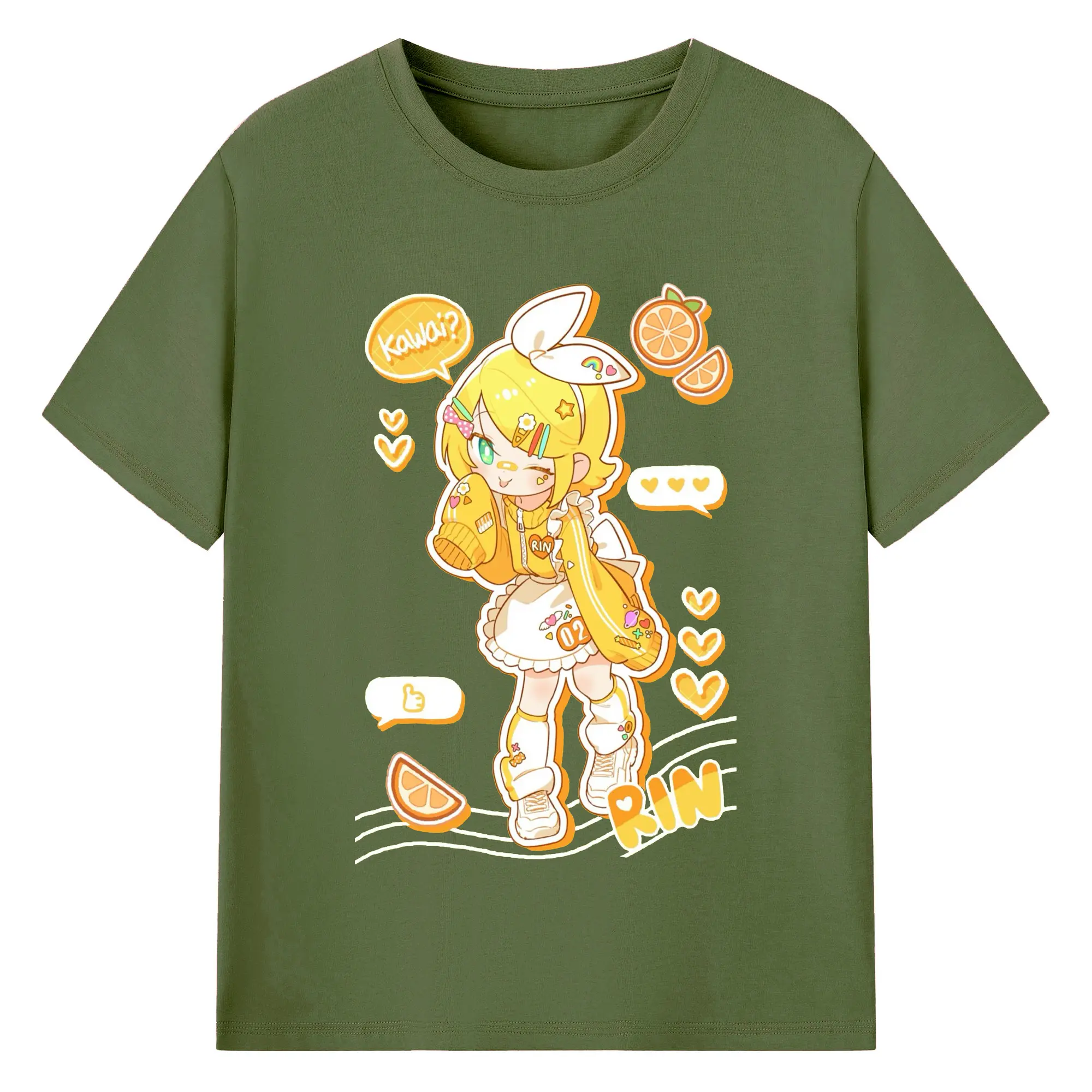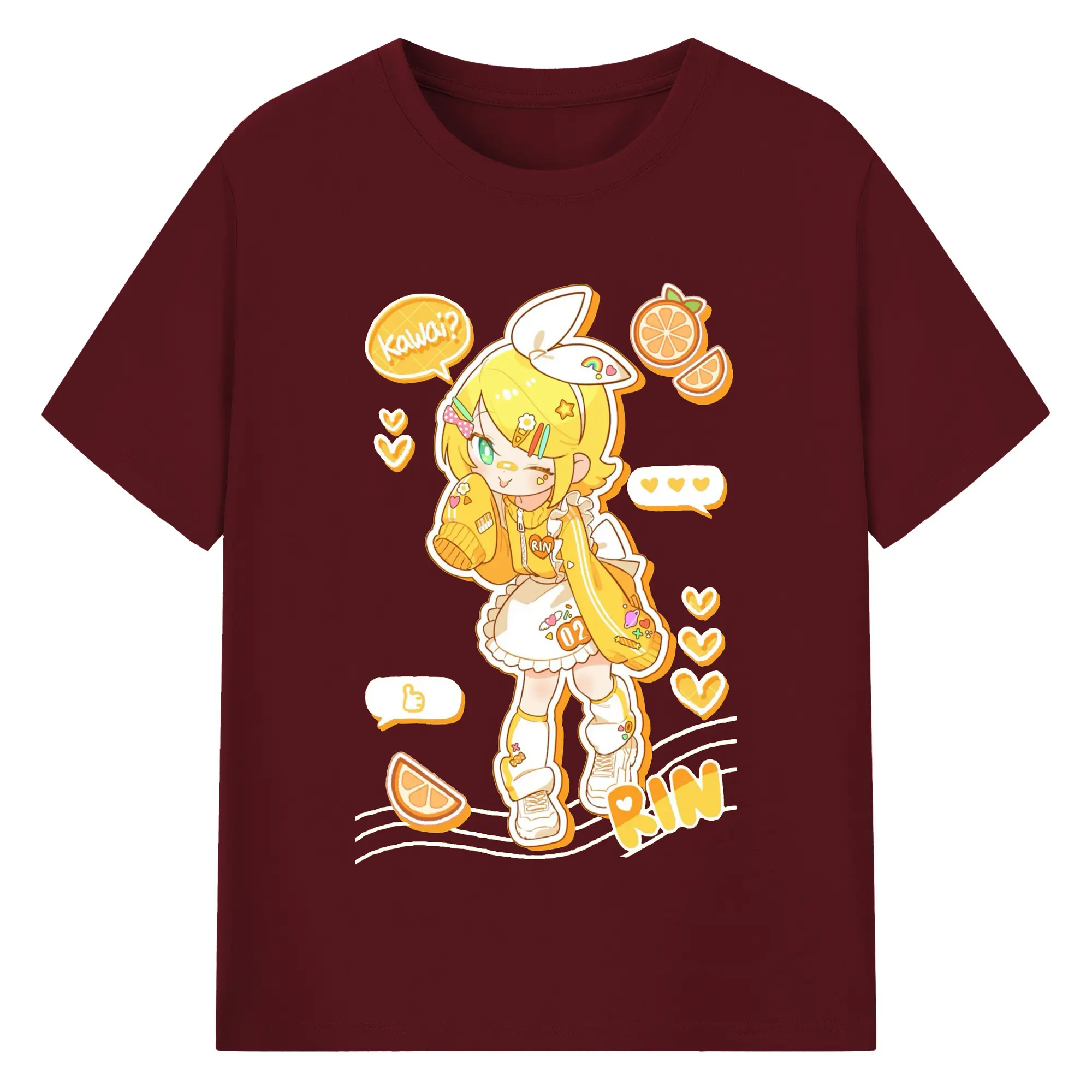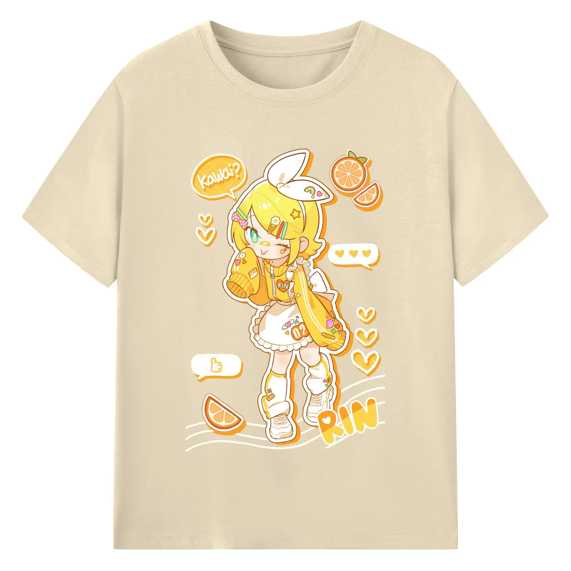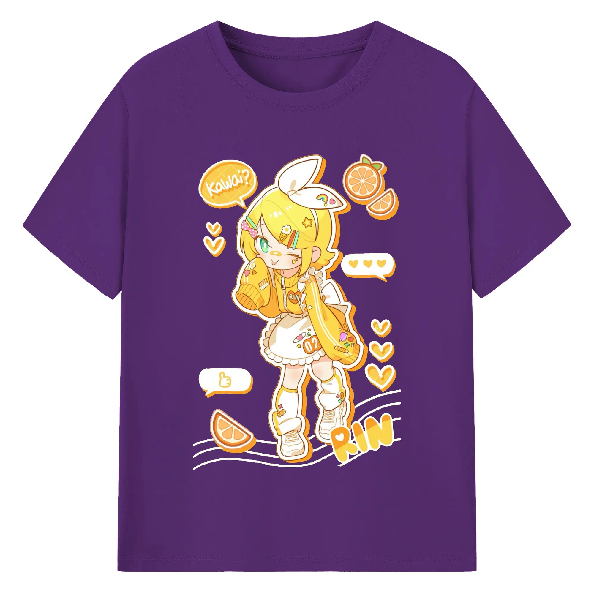 鏡音リン・レン かわいいスタイル - 綿100% 半袖Tシャツ ・ フロントプリント ・ 快適 通気性 ・ 日常使い 散歩 スポーツ用