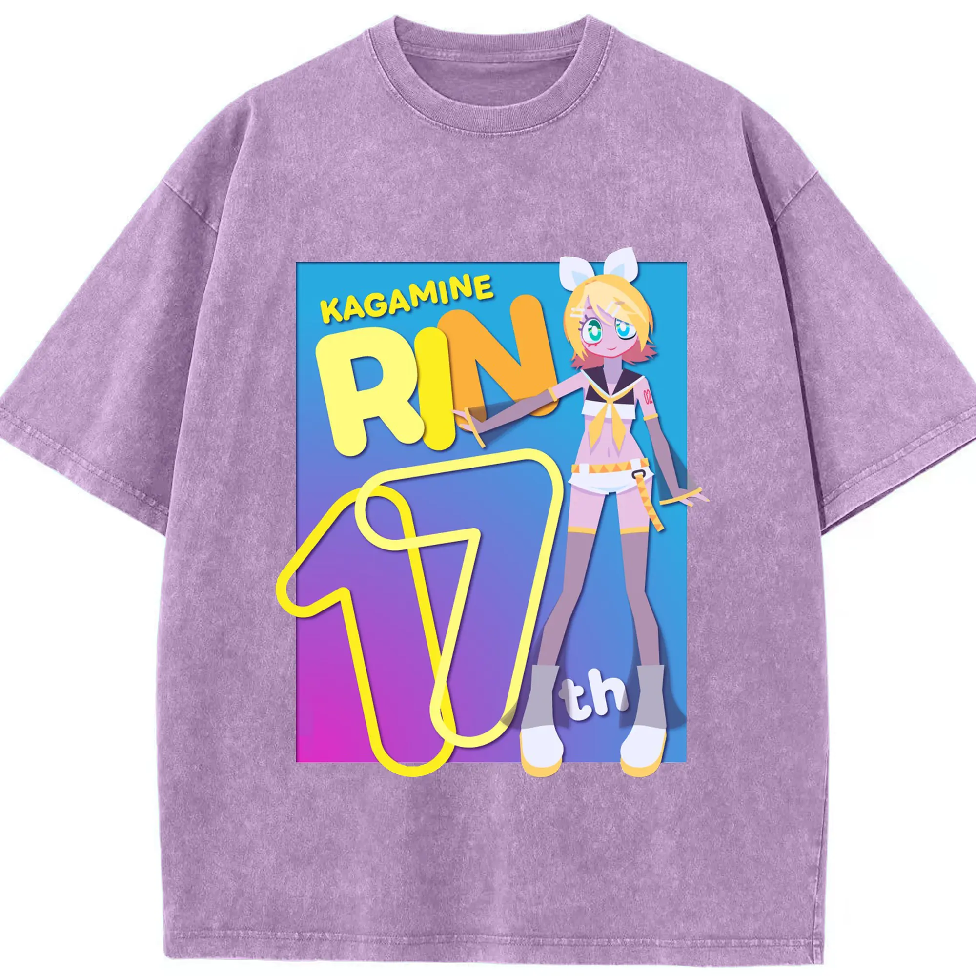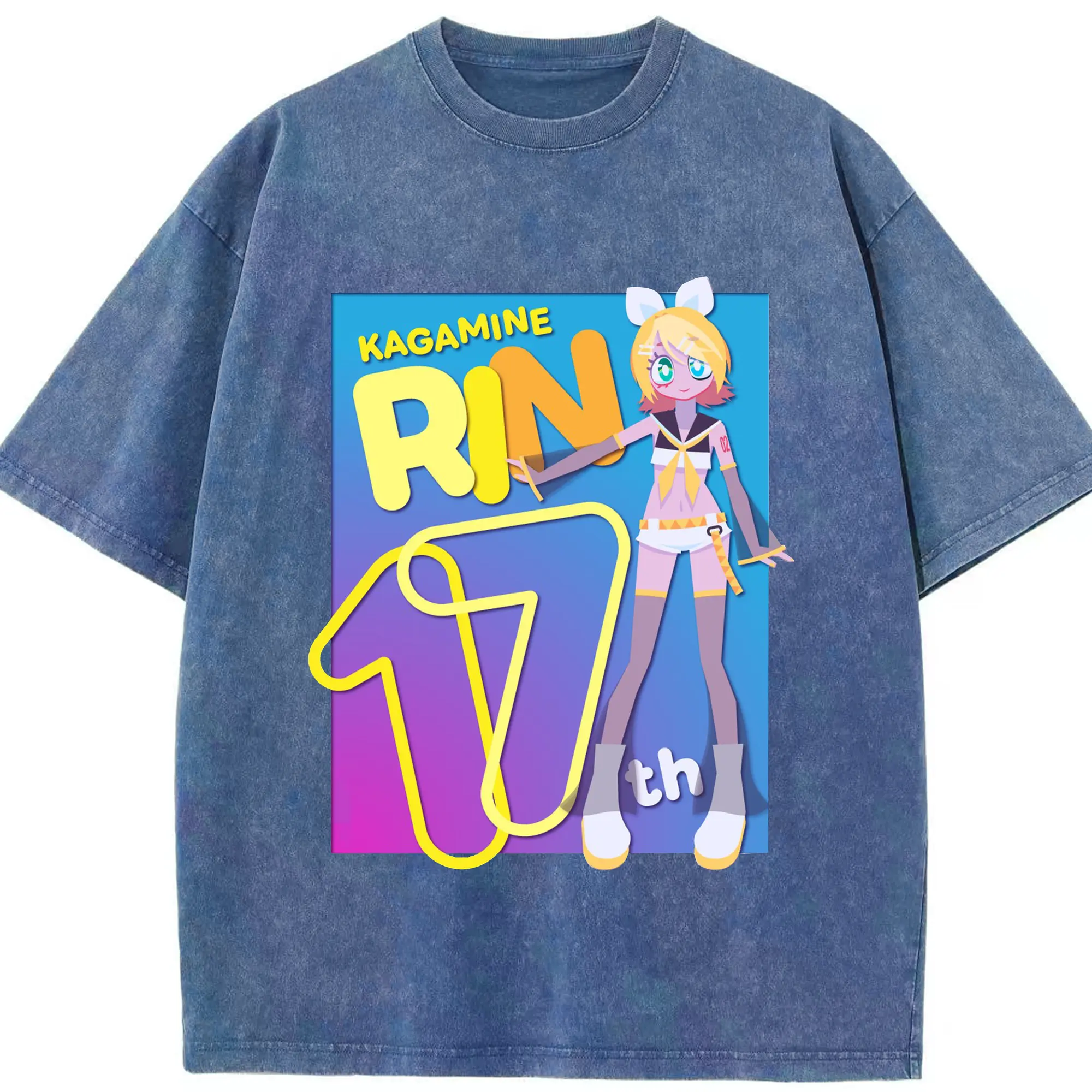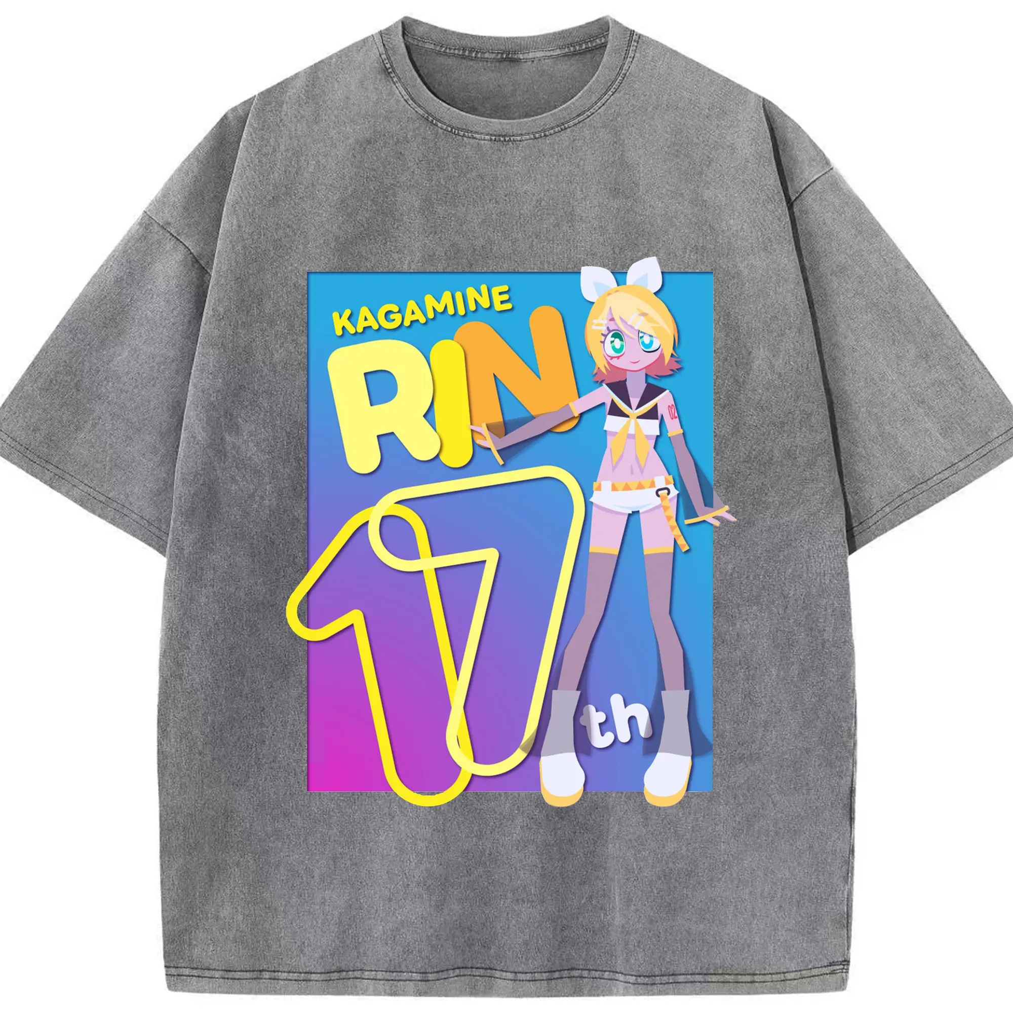 鏡音リンKagamine Rin17th - 綿100% 半袖Tシャツ ・ フロントプリント ・ 快適 通気性 ・ 日常使い 散歩 スポーツ用