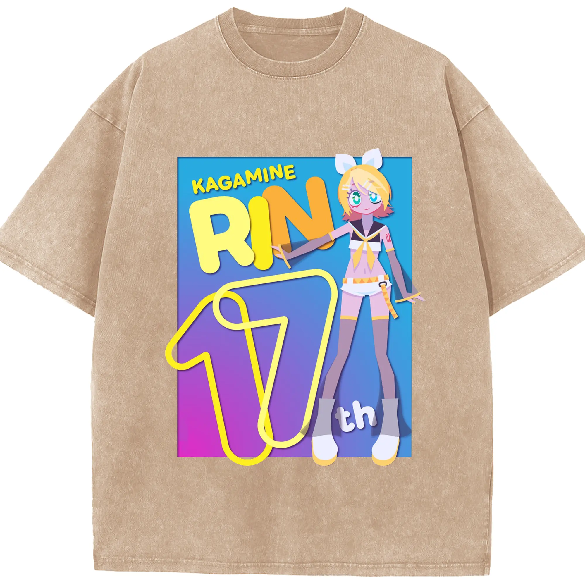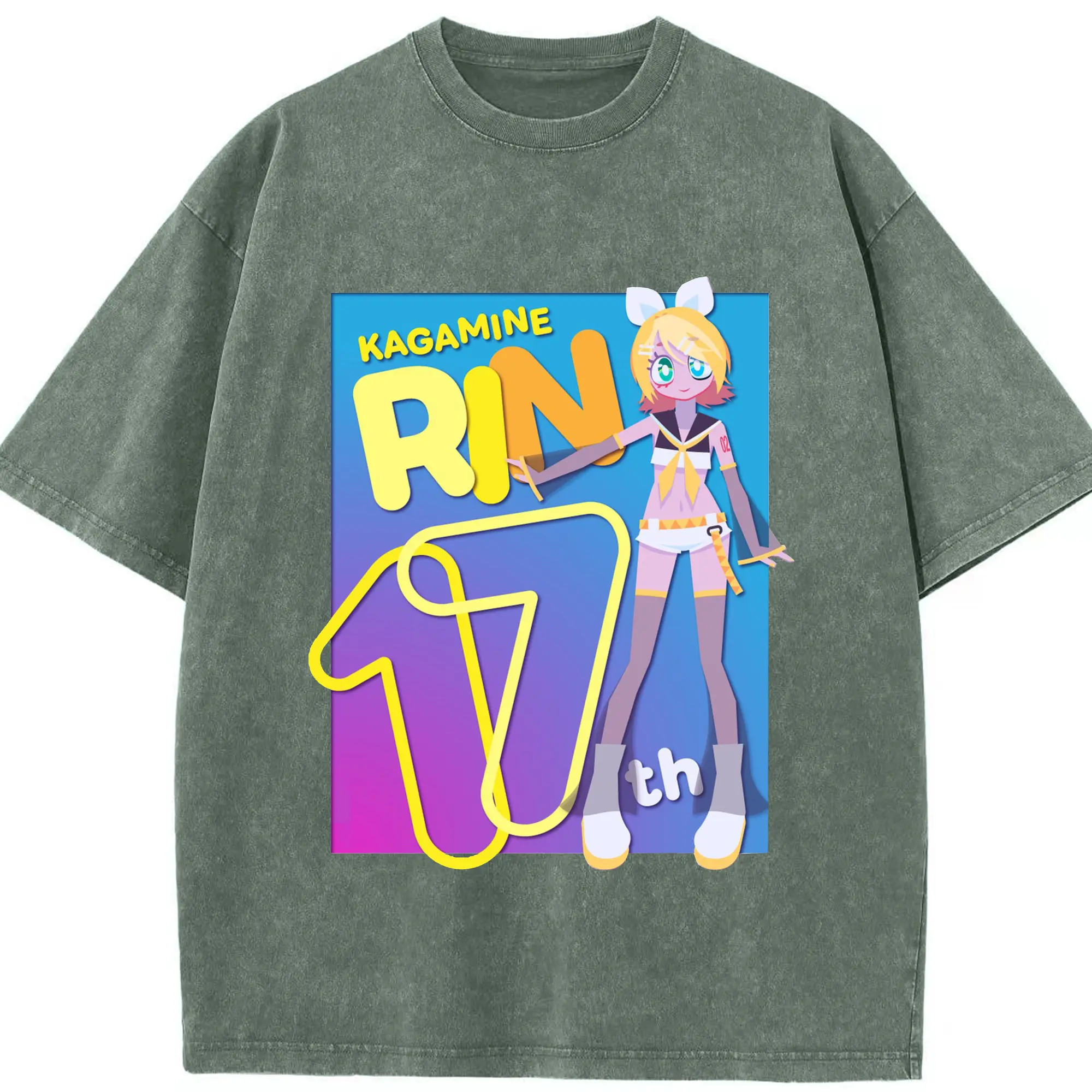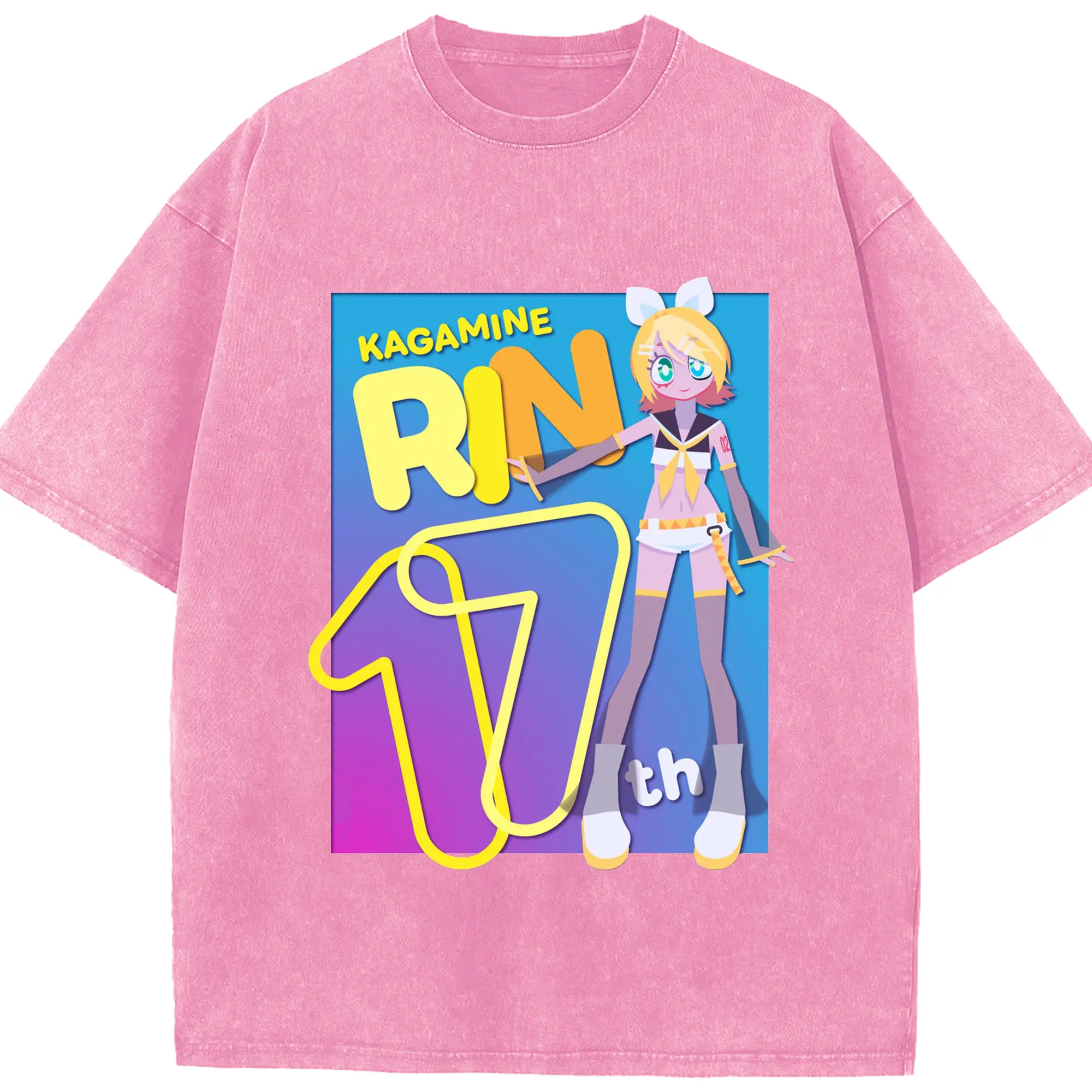 鏡音リンKagamine Rin17th - 綿100% 半袖Tシャツ ・ フロントプリント ・ 快適 通気性 ・ 日常使い 散歩 スポーツ用