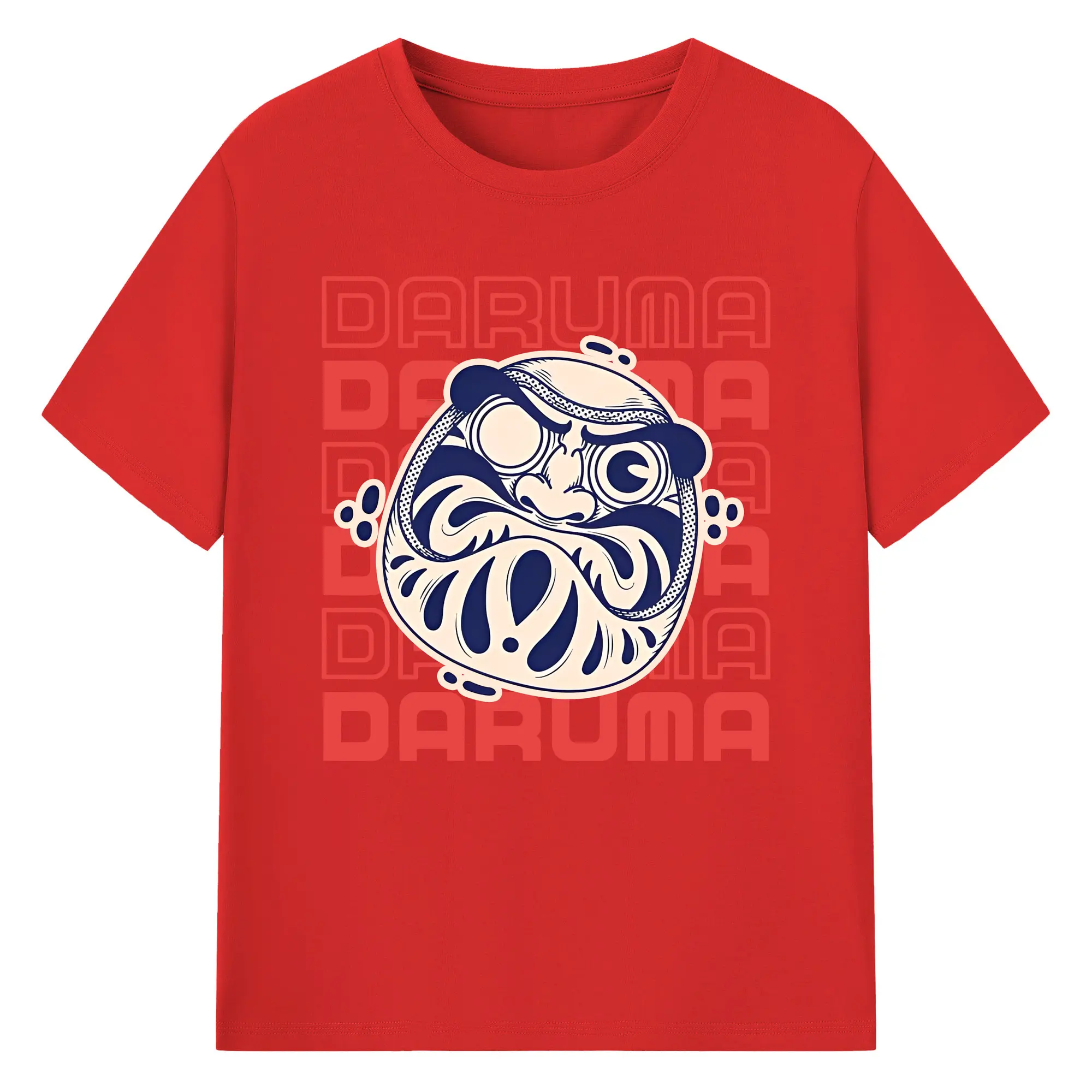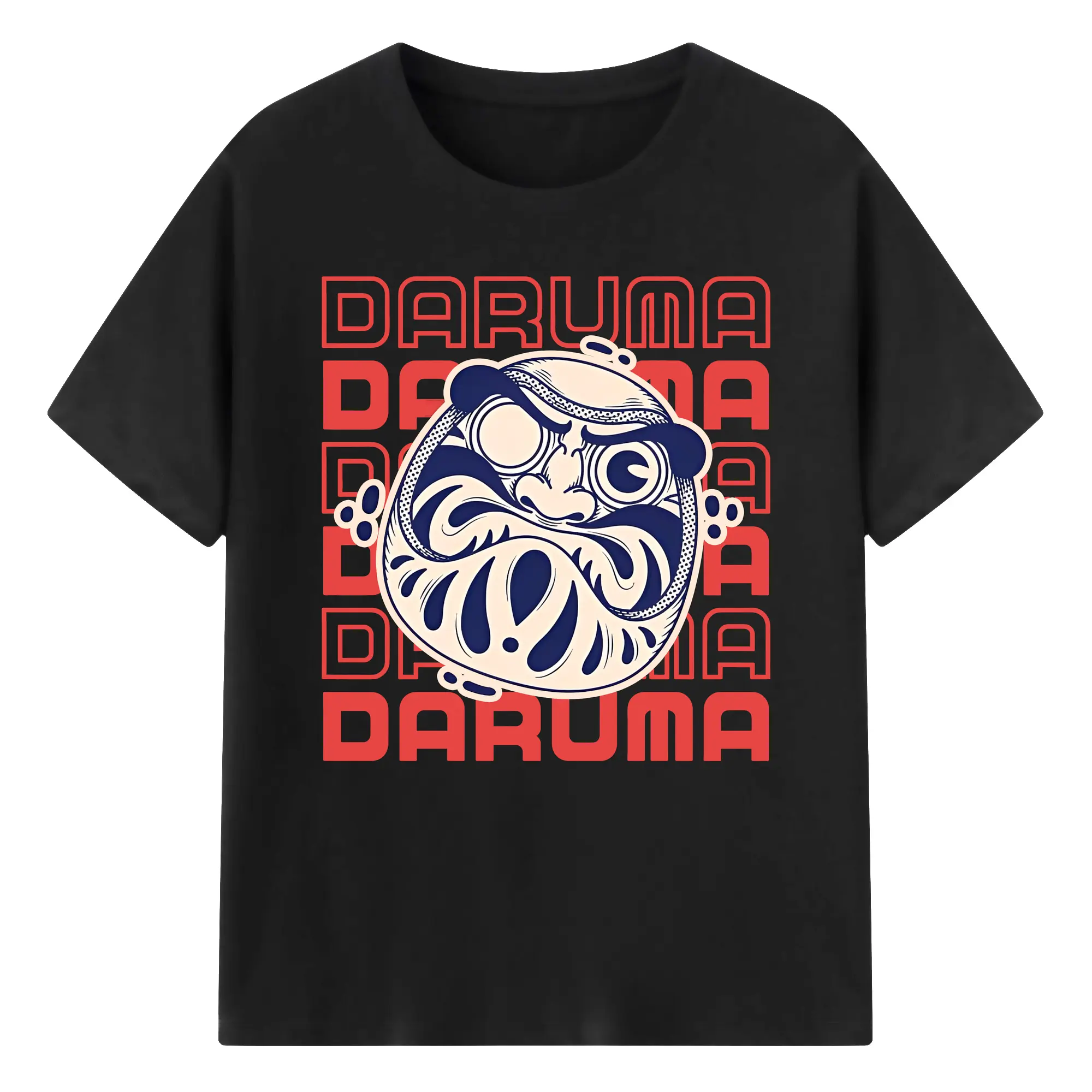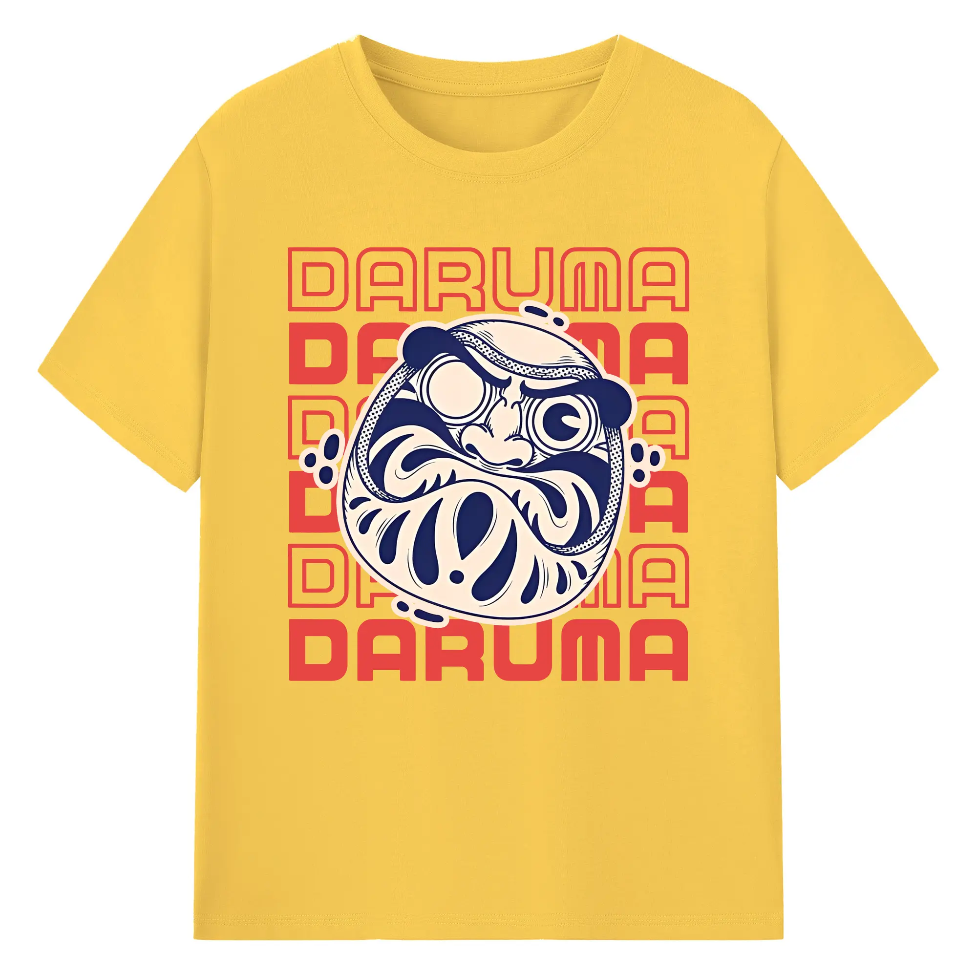 開運だるま 日本縁起物 - 綿100% ヴィンテージ風 半袖Tシャツ ・ フロントプリント ・ 柔らか肌触り ・ 通気性 快適 ・ スポーツ カジュアル 外出用