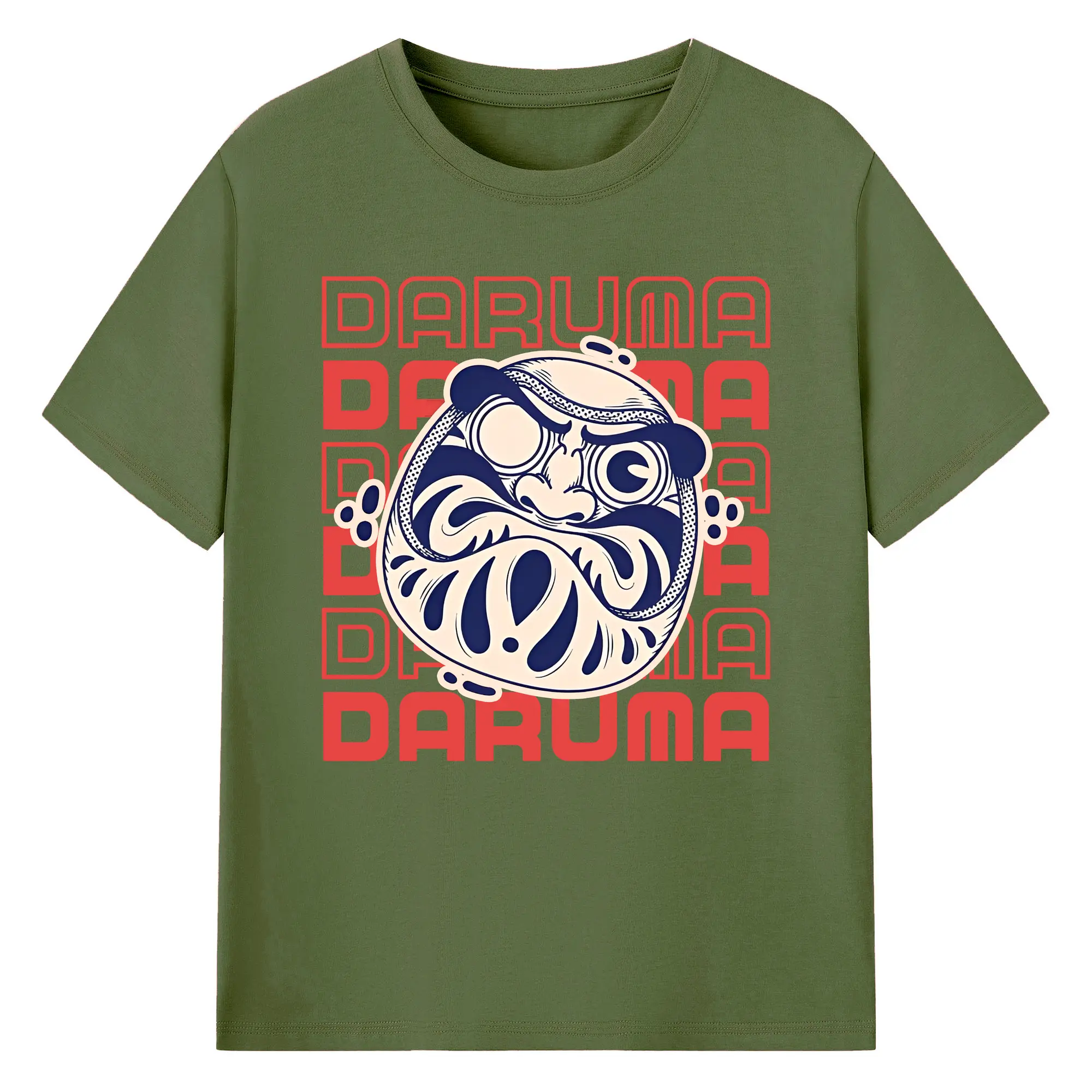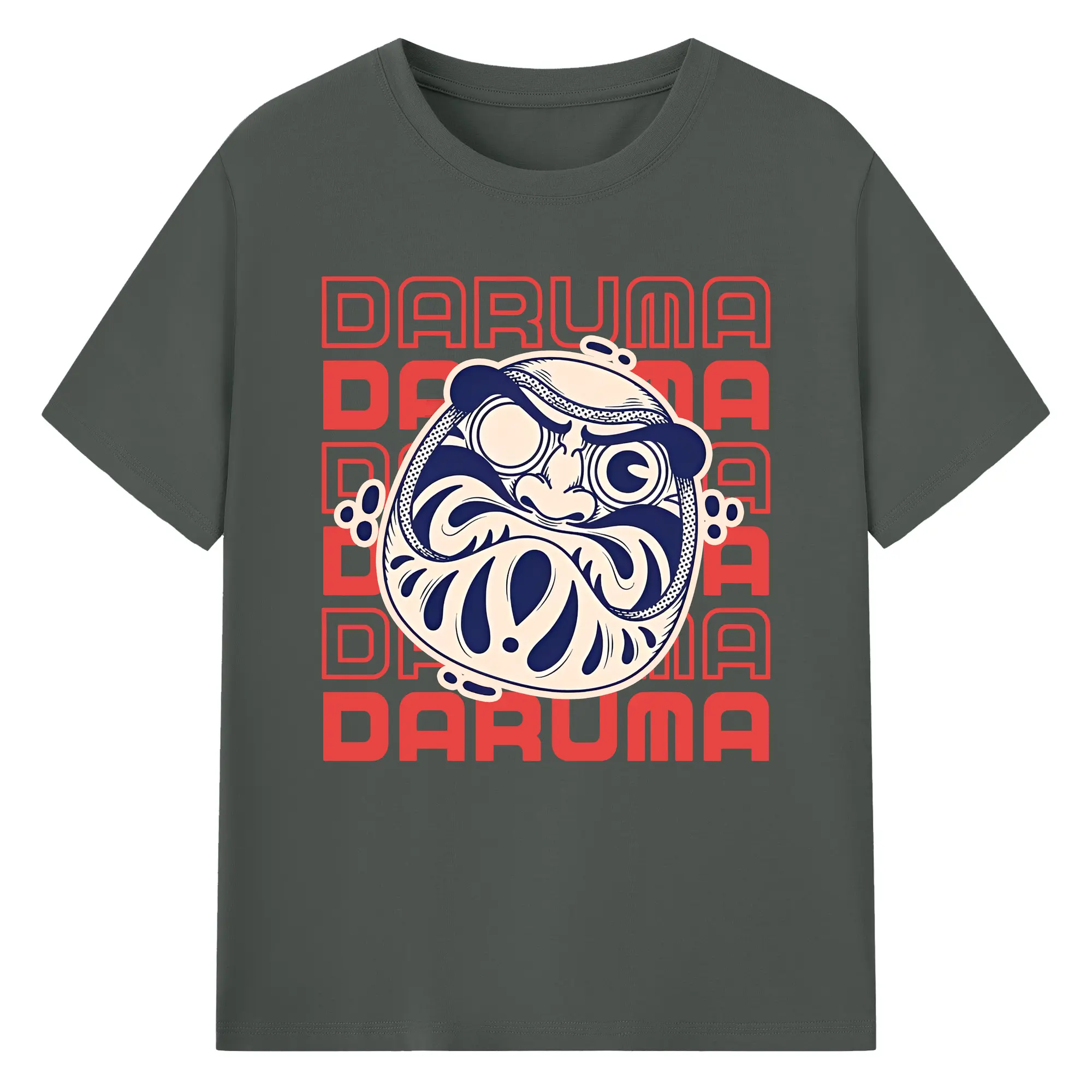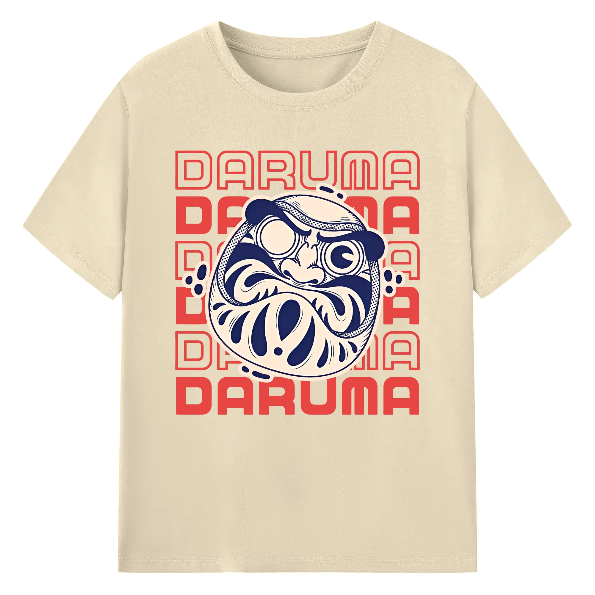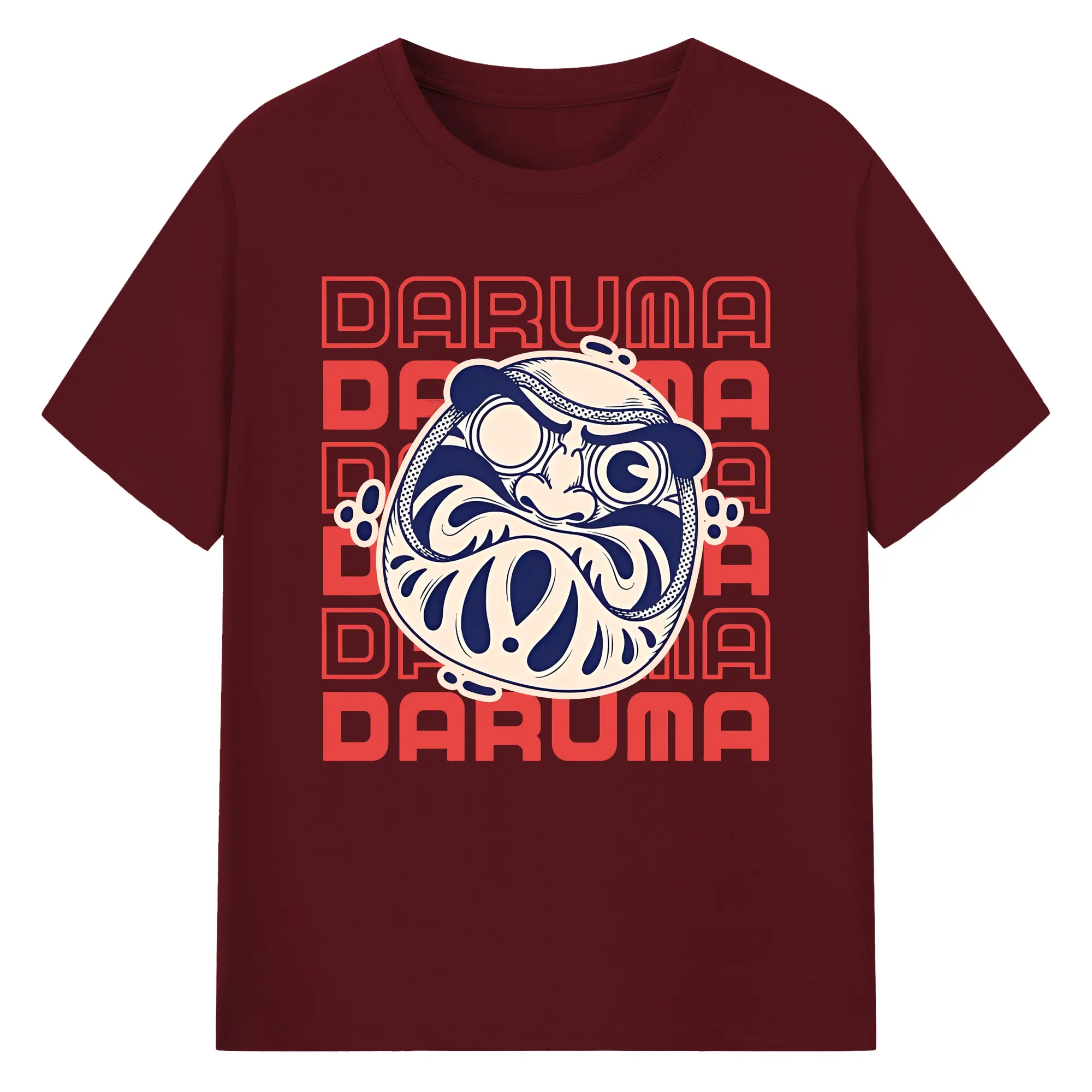 開運だるま 日本縁起物 - 綿100% ヴィンテージ風 半袖Tシャツ ・ フロントプリント ・ 柔らか肌触り ・ 通気性 快適 ・ スポーツ カジュアル 外出用
