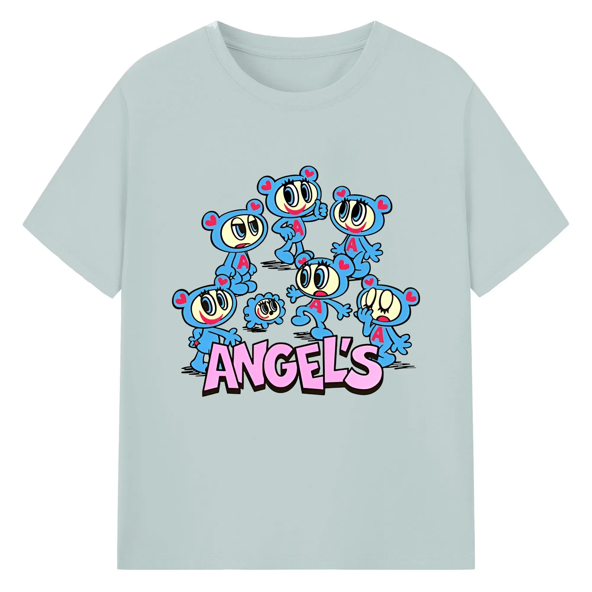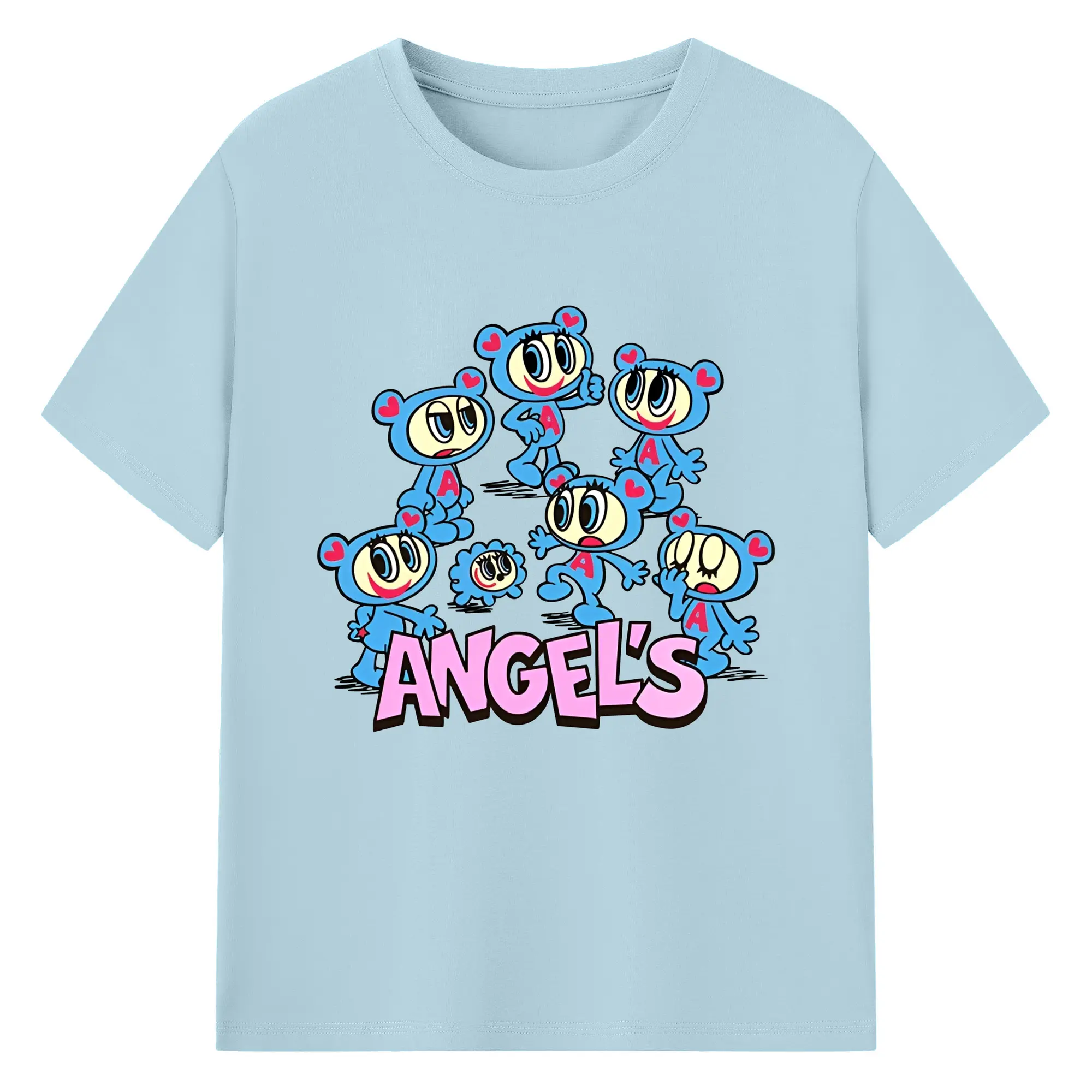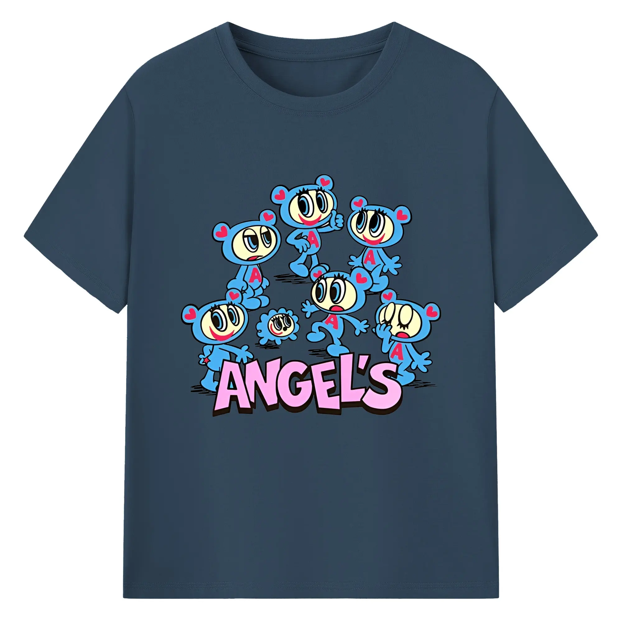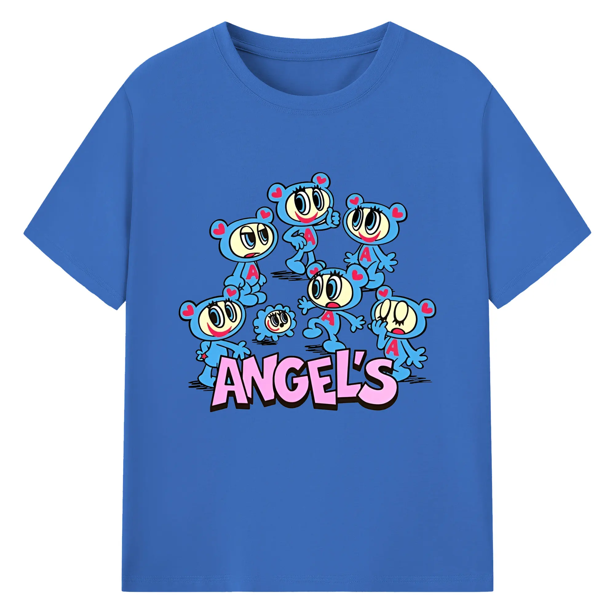 【限定】エンジェルブルーナカムラ君 - 綿100% ヴィンテージ風 半袖Tシャツ ・ フロントプリント ・ 柔らか肌触り ・ 通気性 快適 ・ スポーツ カジュアル 外出用
