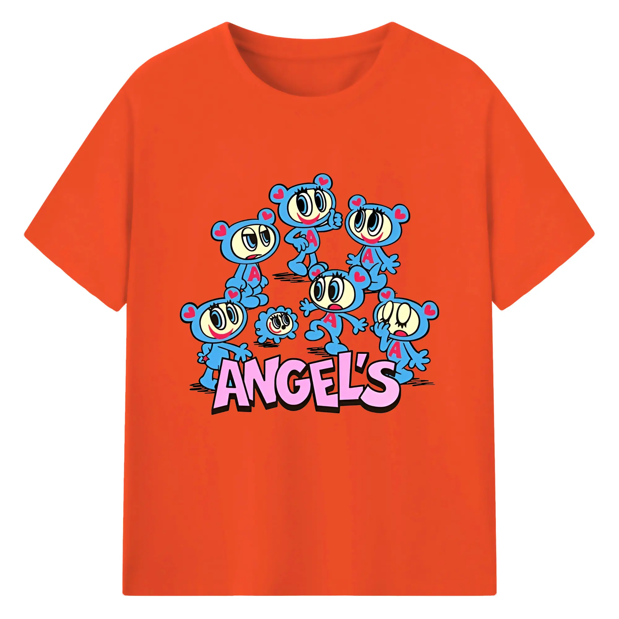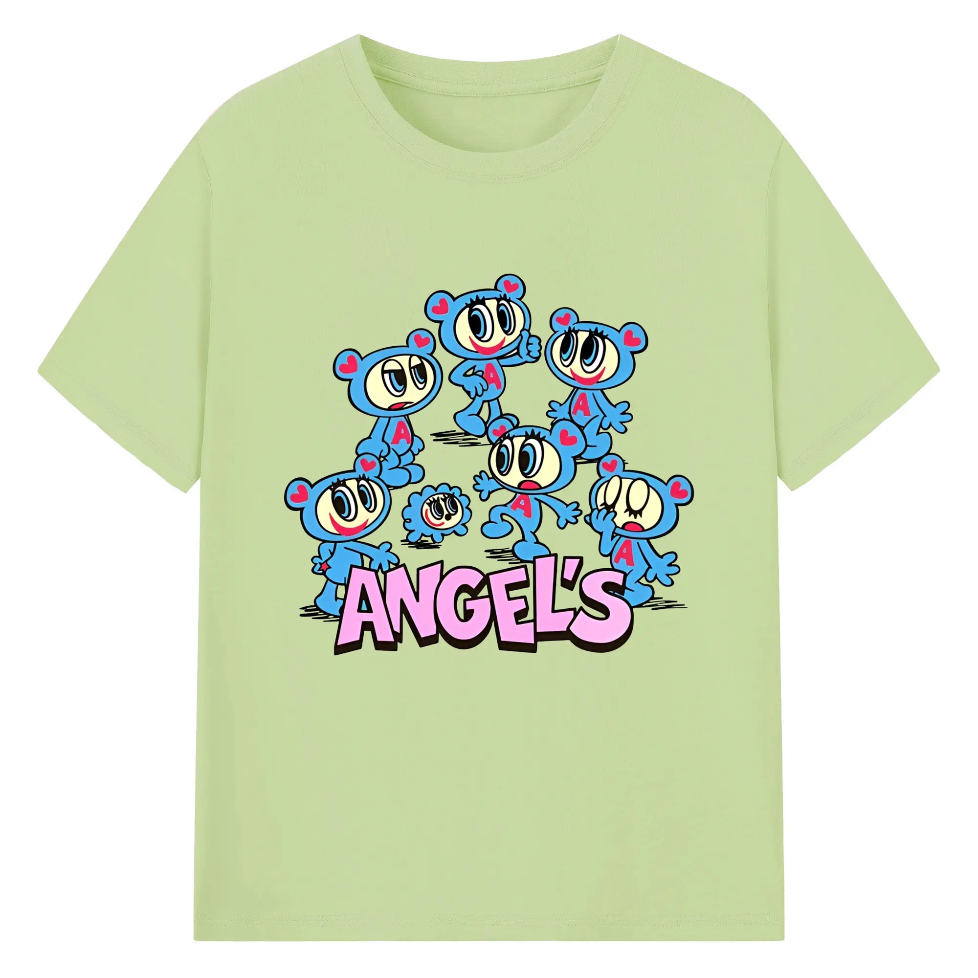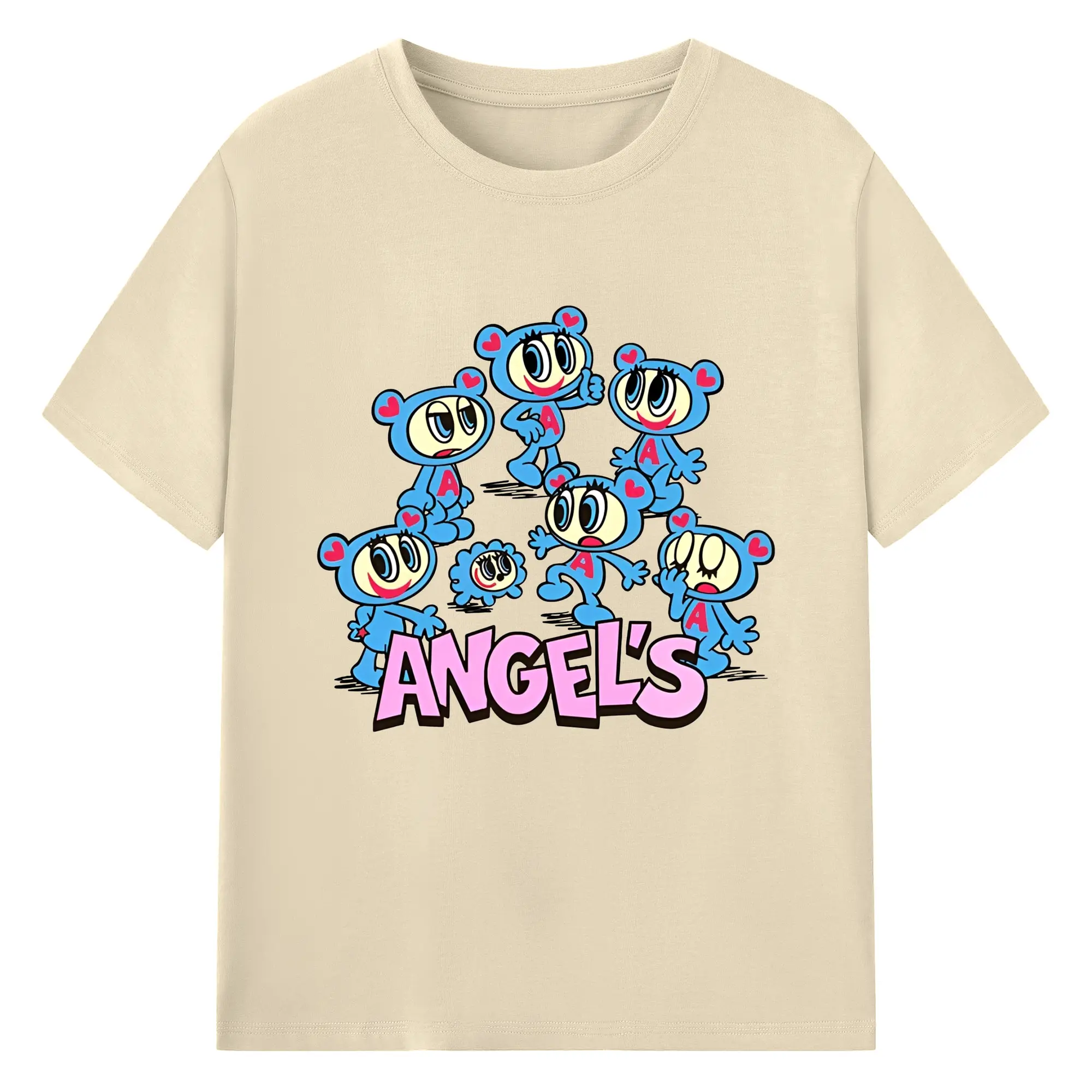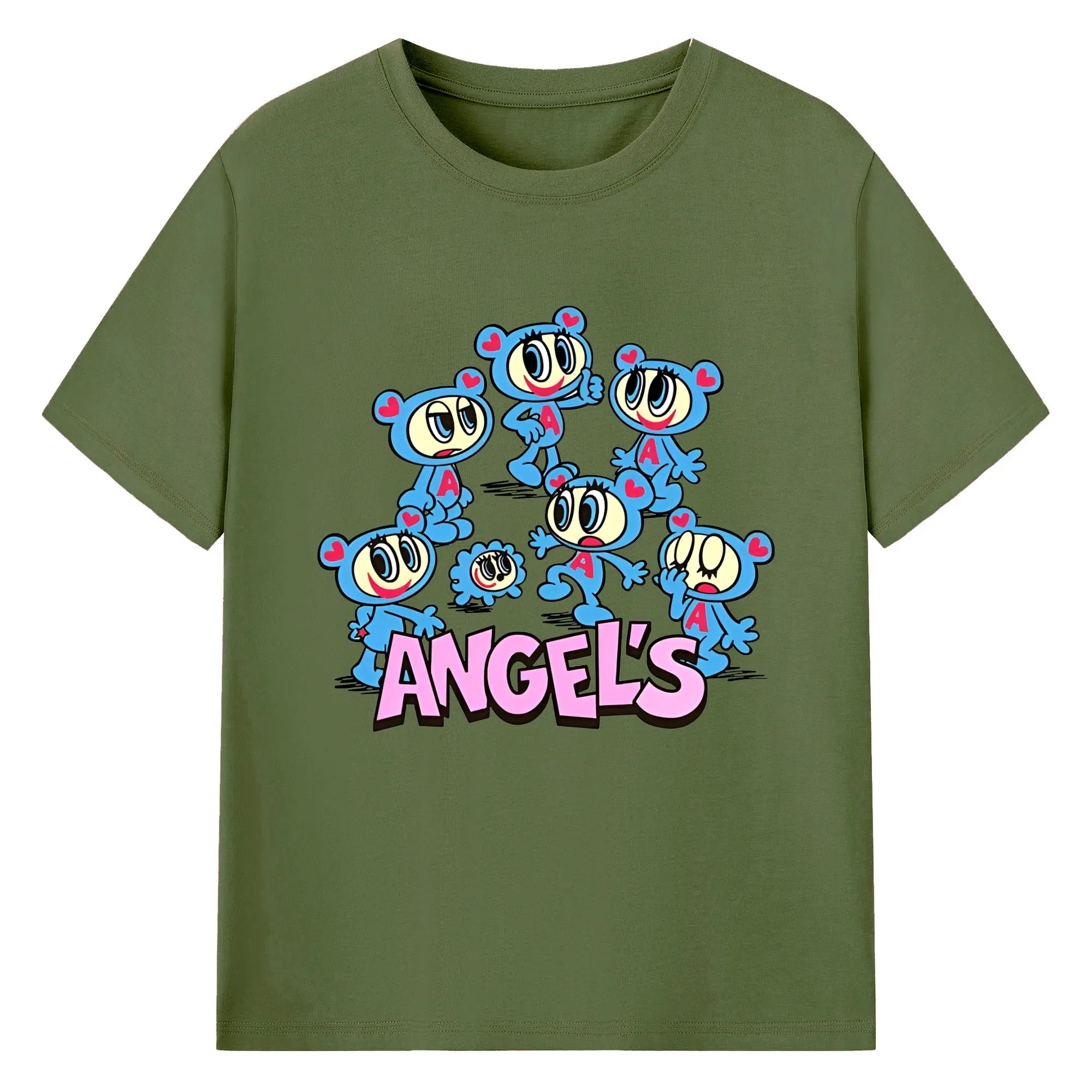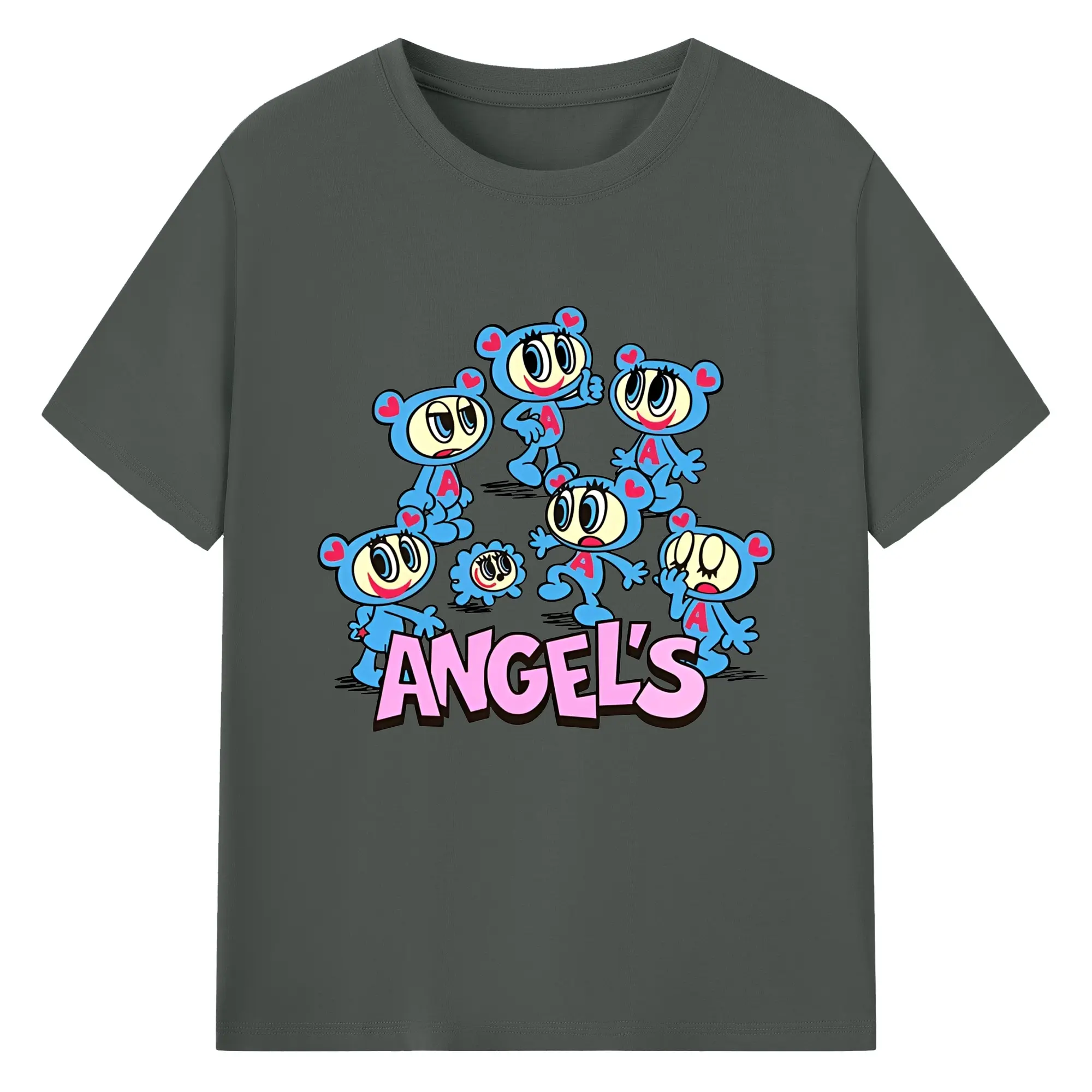 【限定】エンジェルブルーナカムラ君 - 綿100% ヴィンテージ風 半袖Tシャツ ・ フロントプリント ・ 柔らか肌触り ・ 通気性 快適 ・ スポーツ カジュアル 外出用