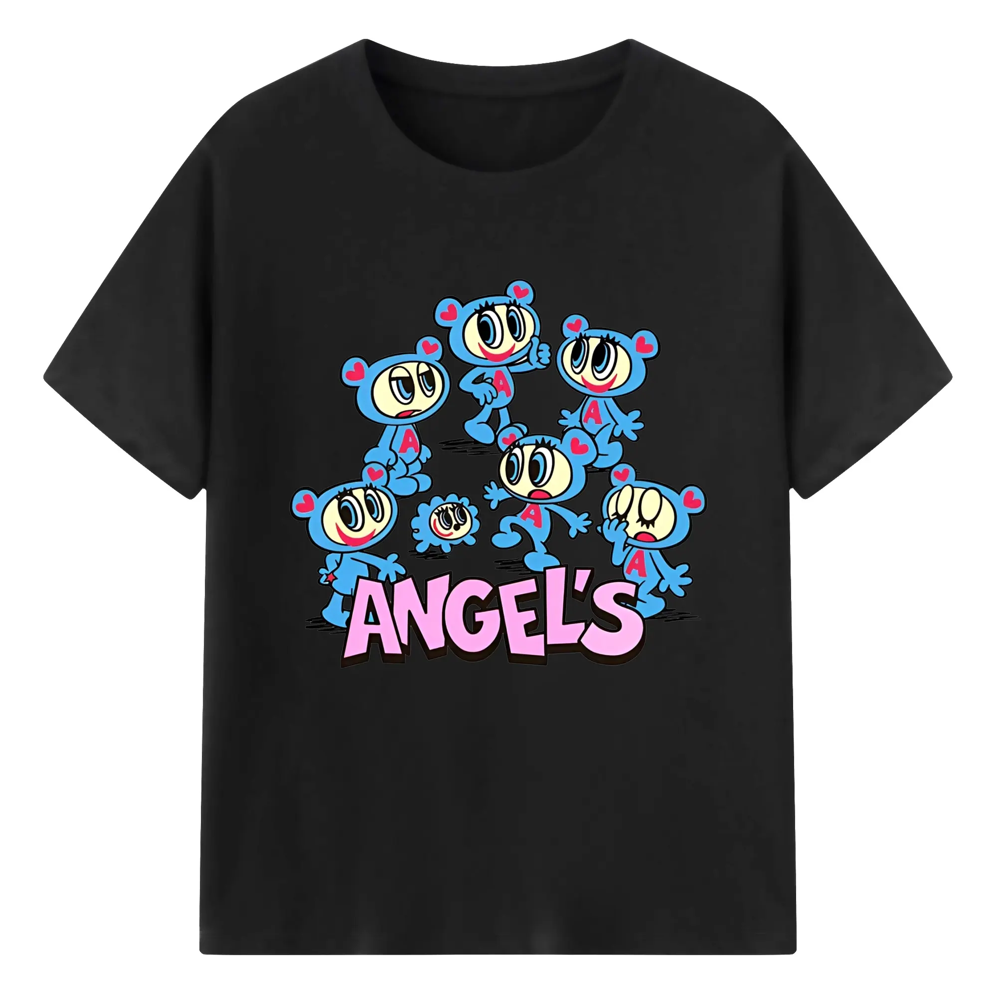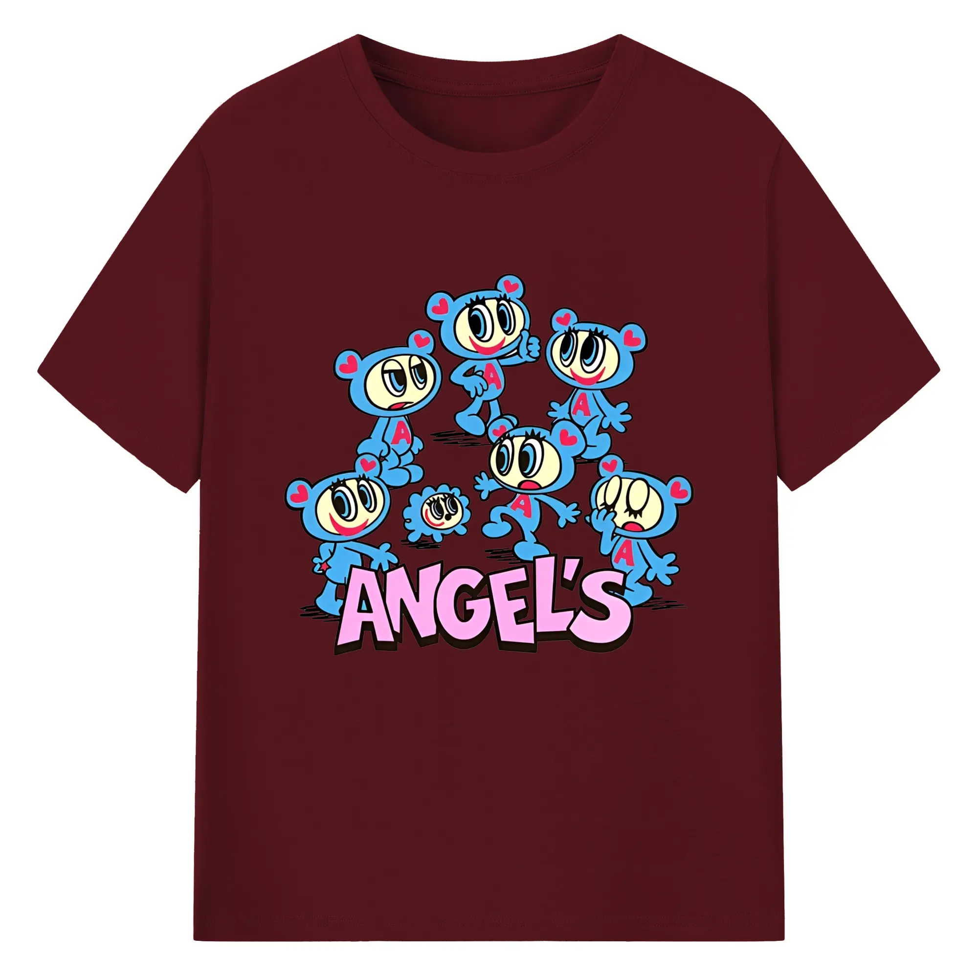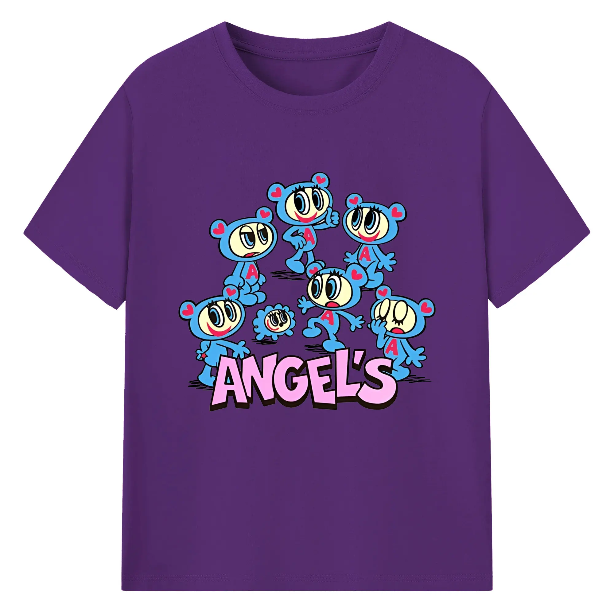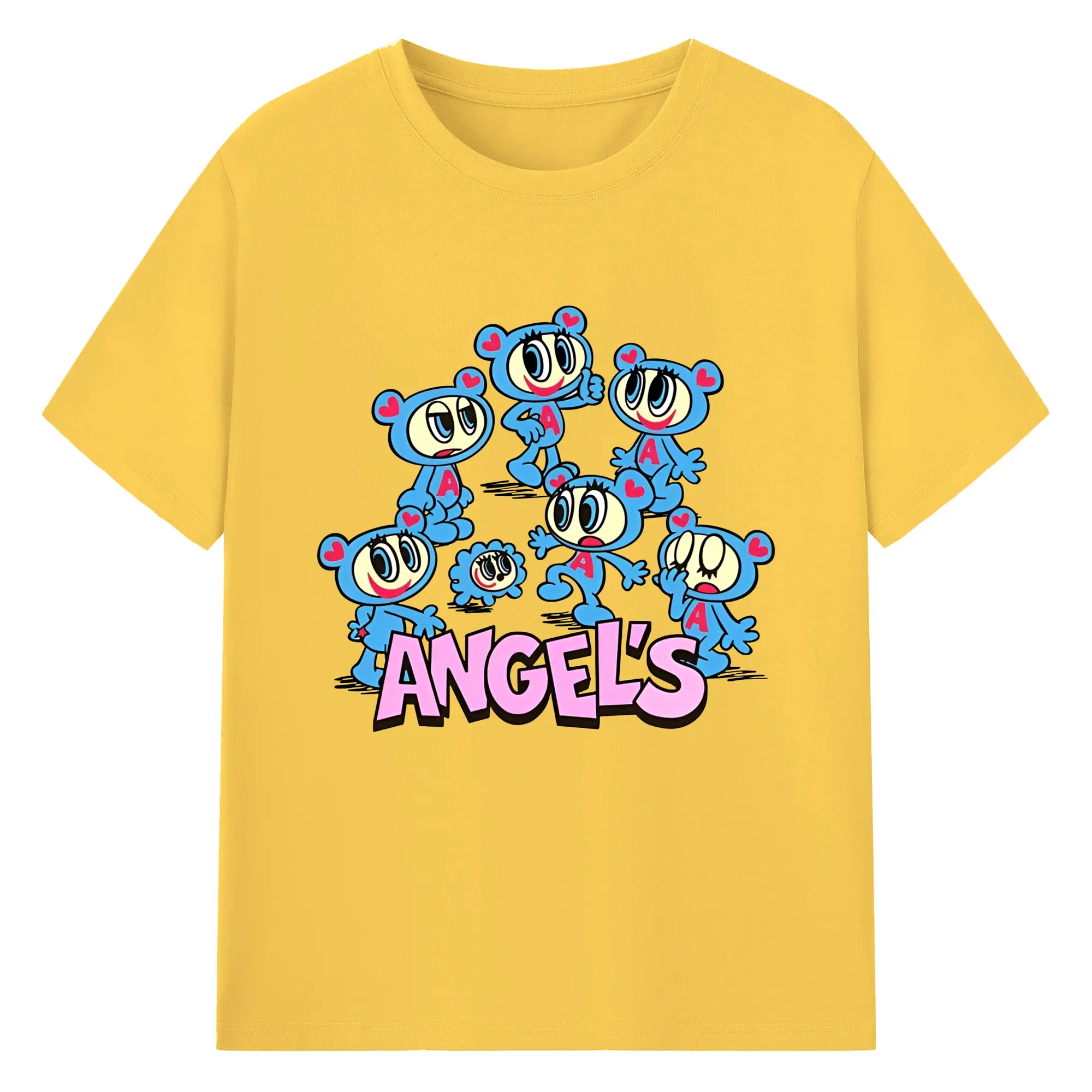 【限定】エンジェルブルーナカムラ君 - 綿100% ヴィンテージ風 半袖Tシャツ ・ フロントプリント ・ 柔らか肌触り ・ 通気性 快適 ・ スポーツ カジュアル 外出用