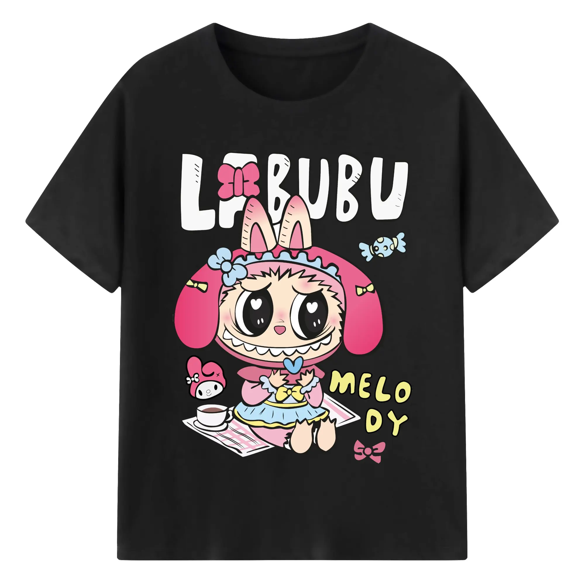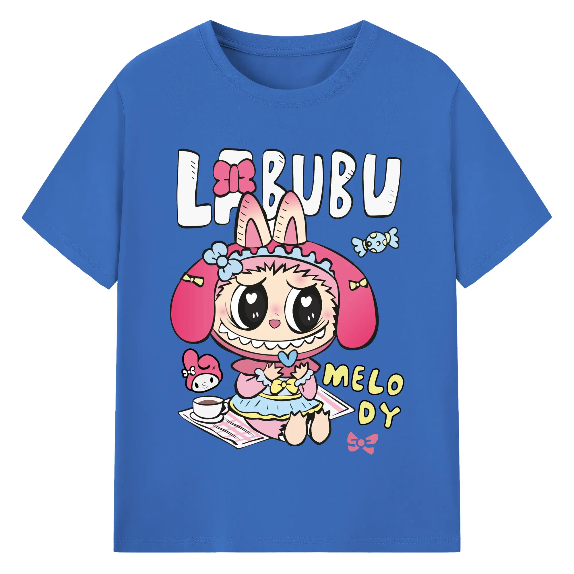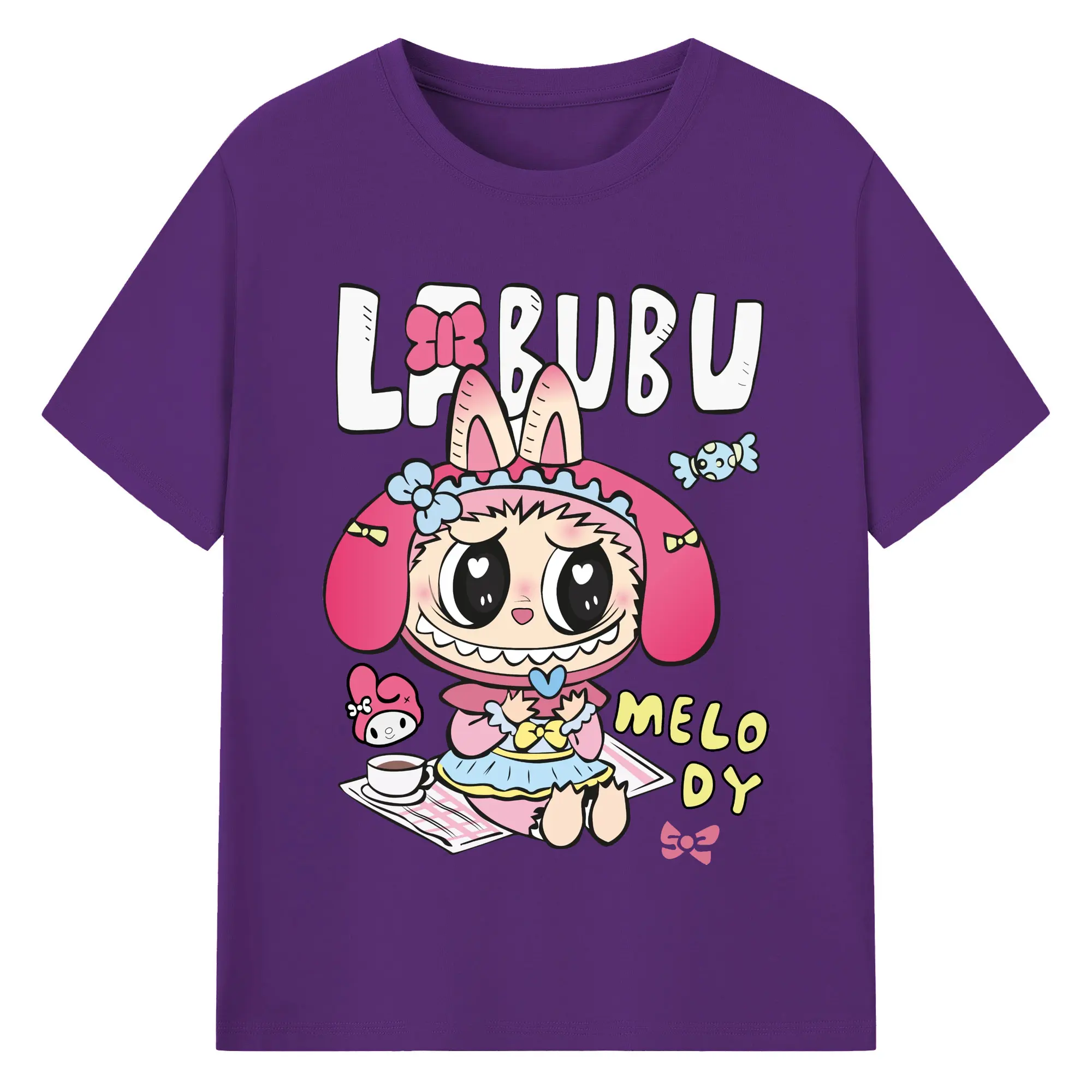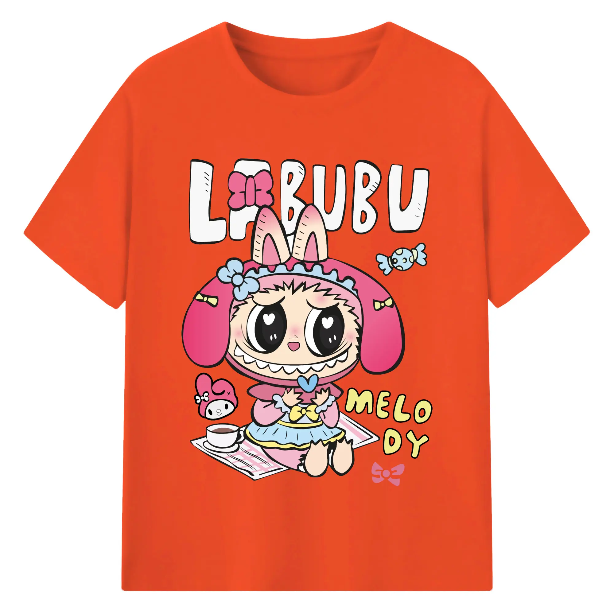 【限定】サンリオマイメロディ × ラブブ コラボ - 綿100% ヴィンテージ風 半袖Tシャツ ・ フロントプリント ・ 柔らか肌触り ・ 通気性 快適 ・ スポーツ カジュアル 外出用