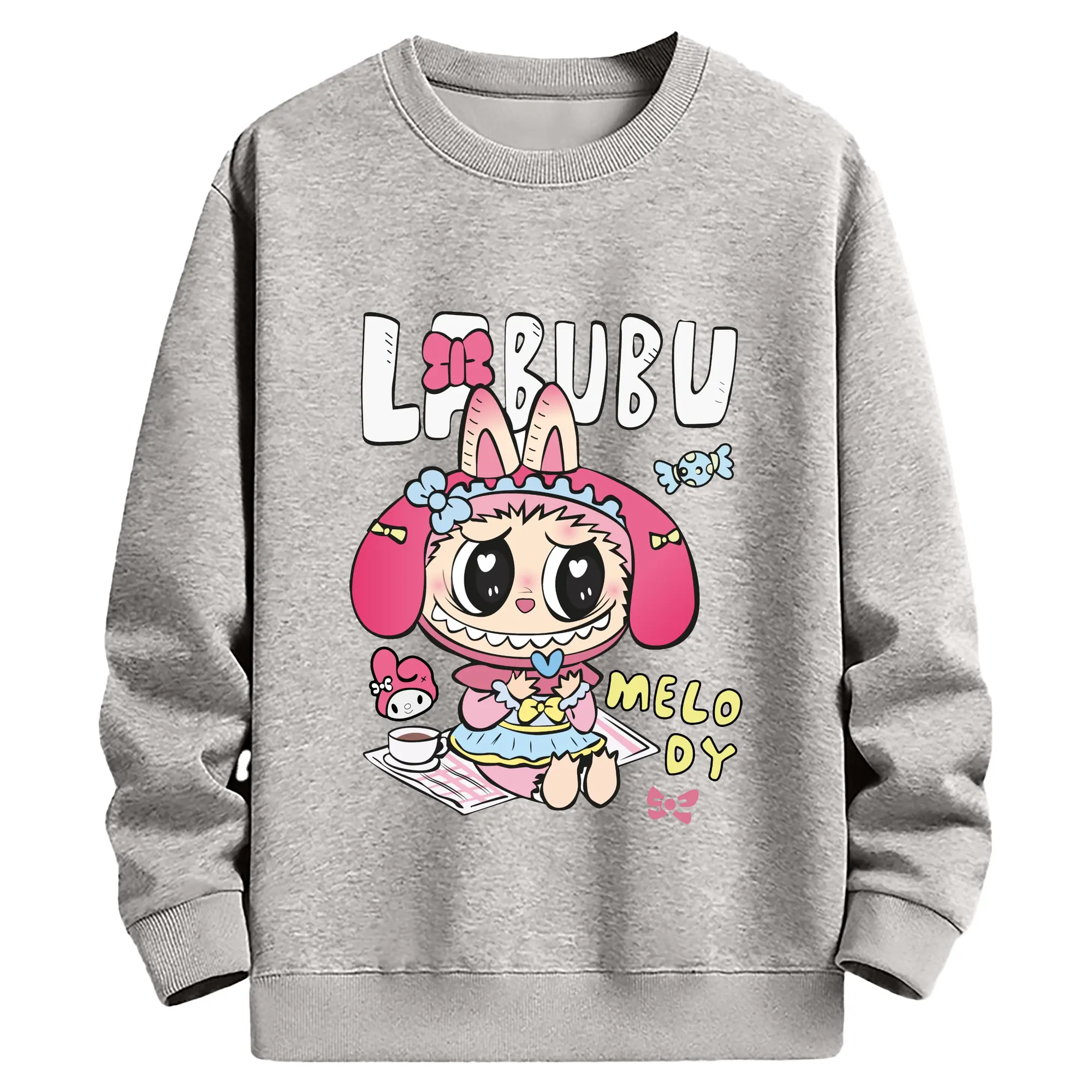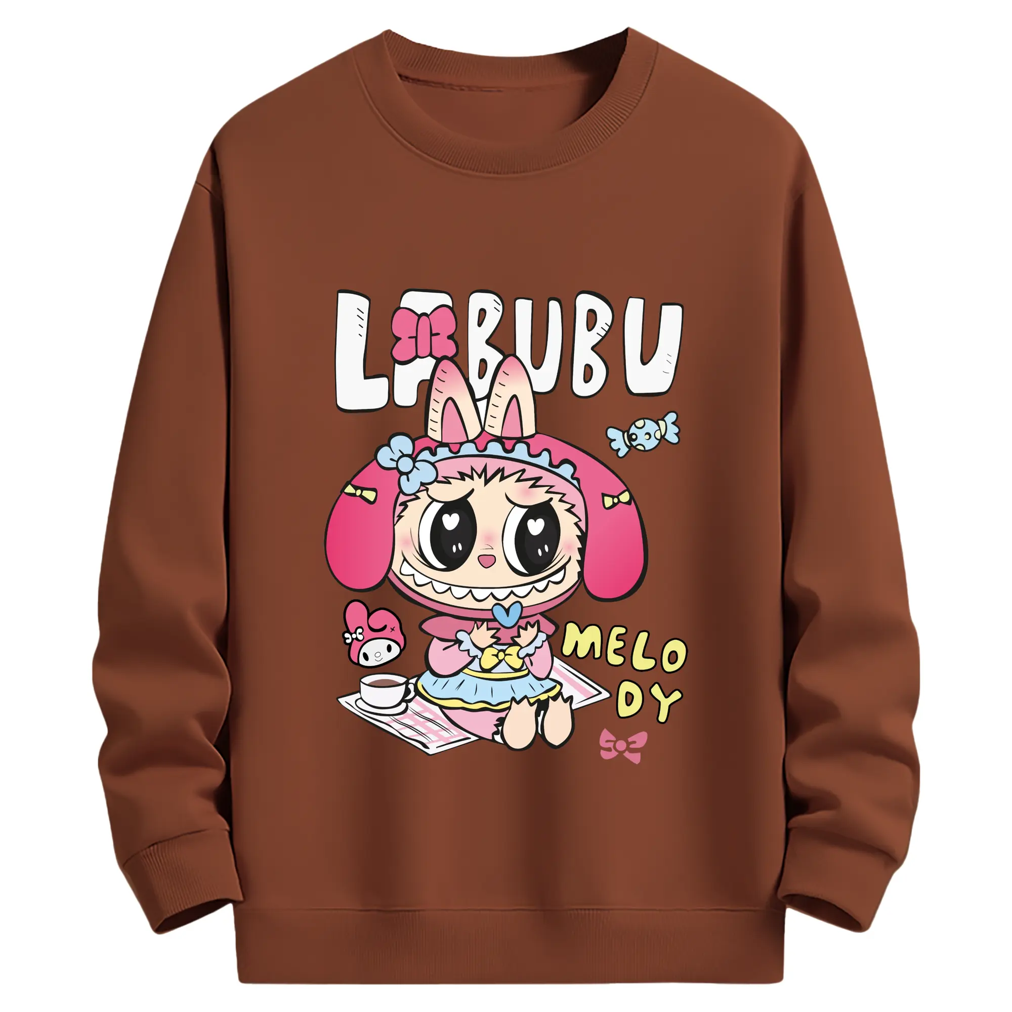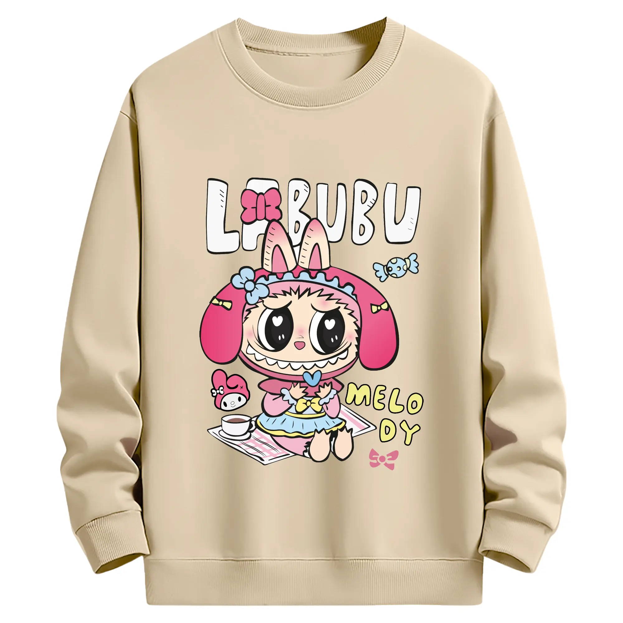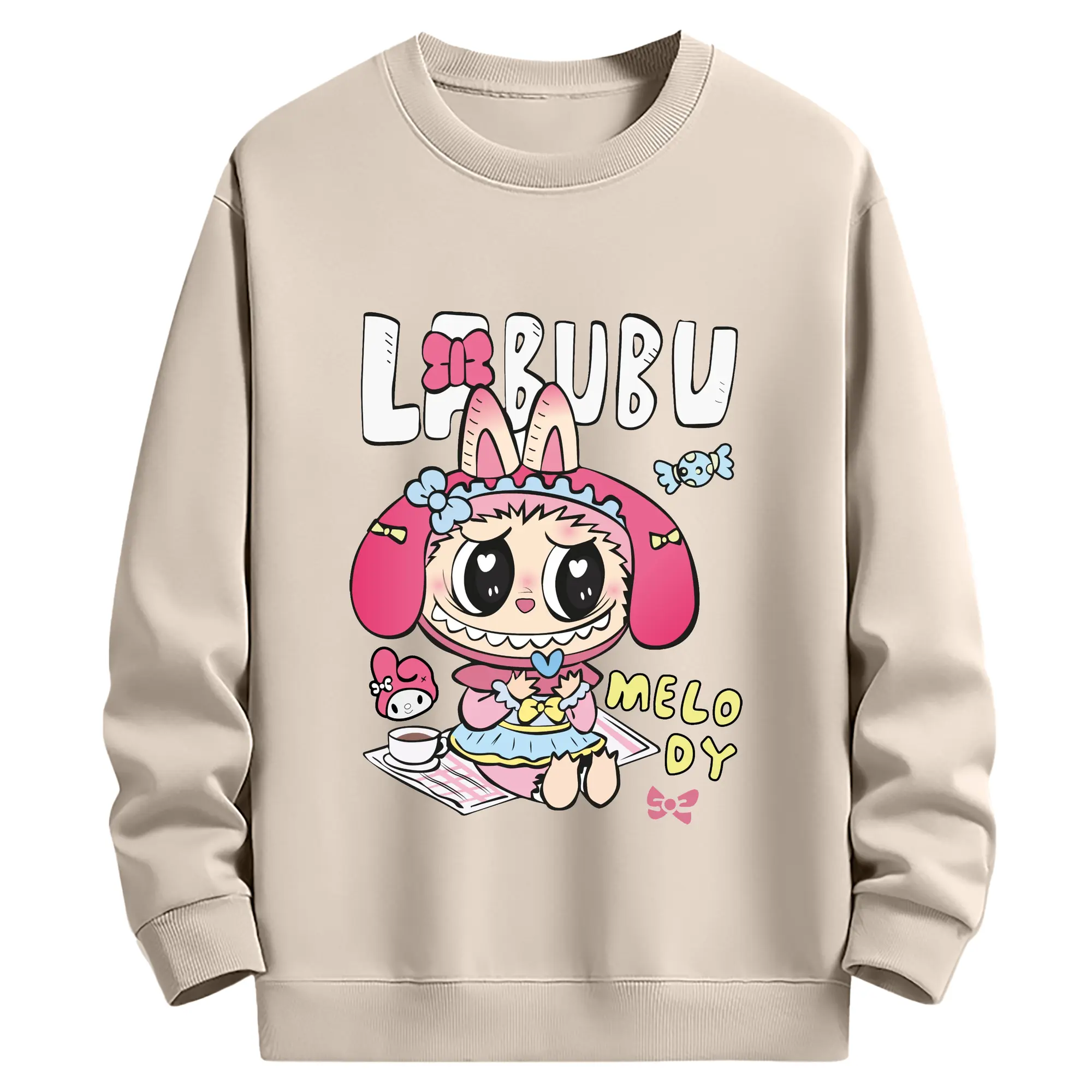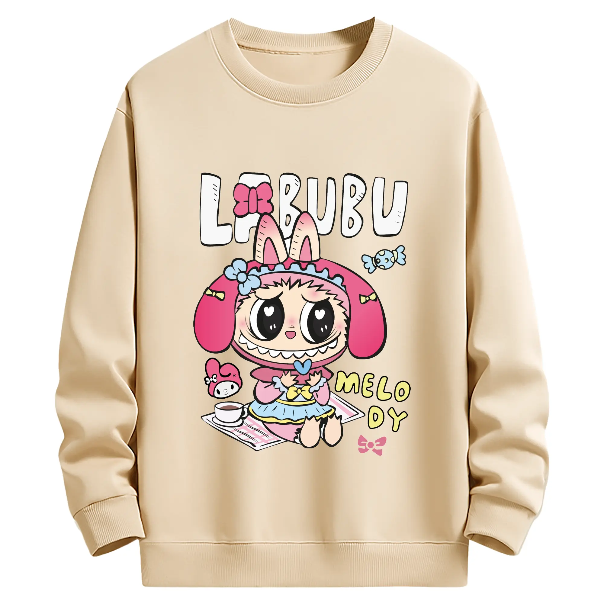 【限定】サンリオマイメロディ × ラブブ コラボ - 綿100% ヴィンテージ風 半袖Tシャツ ・ フロントプリント ・ 柔らか肌触り ・ 通気性 快適 ・ スポーツ カジュアル 外出用