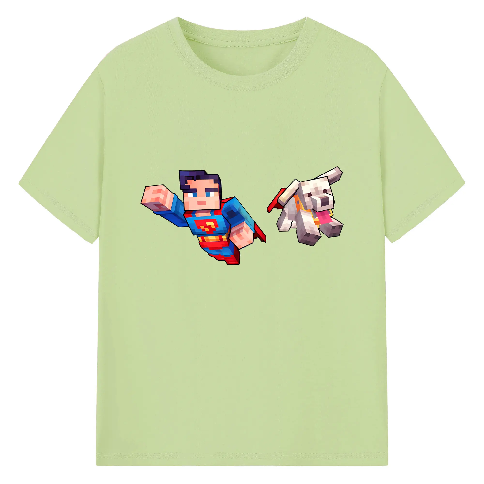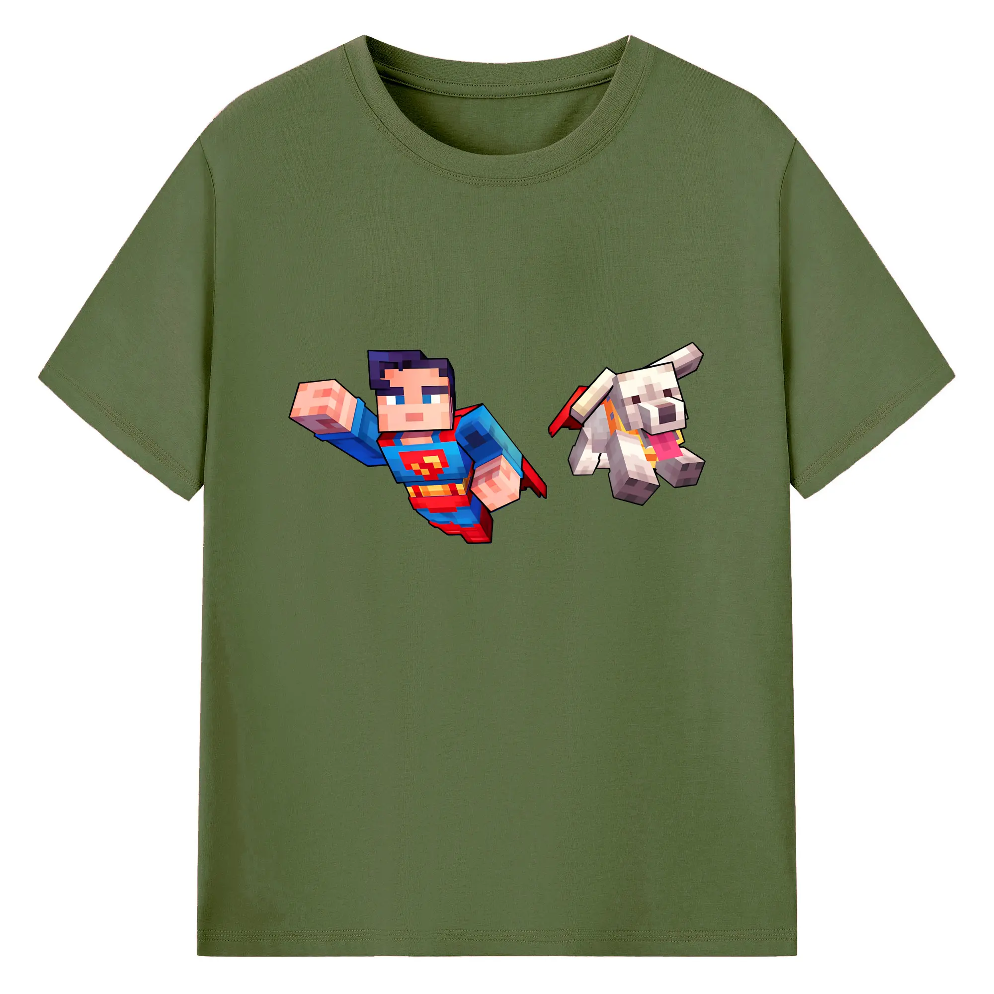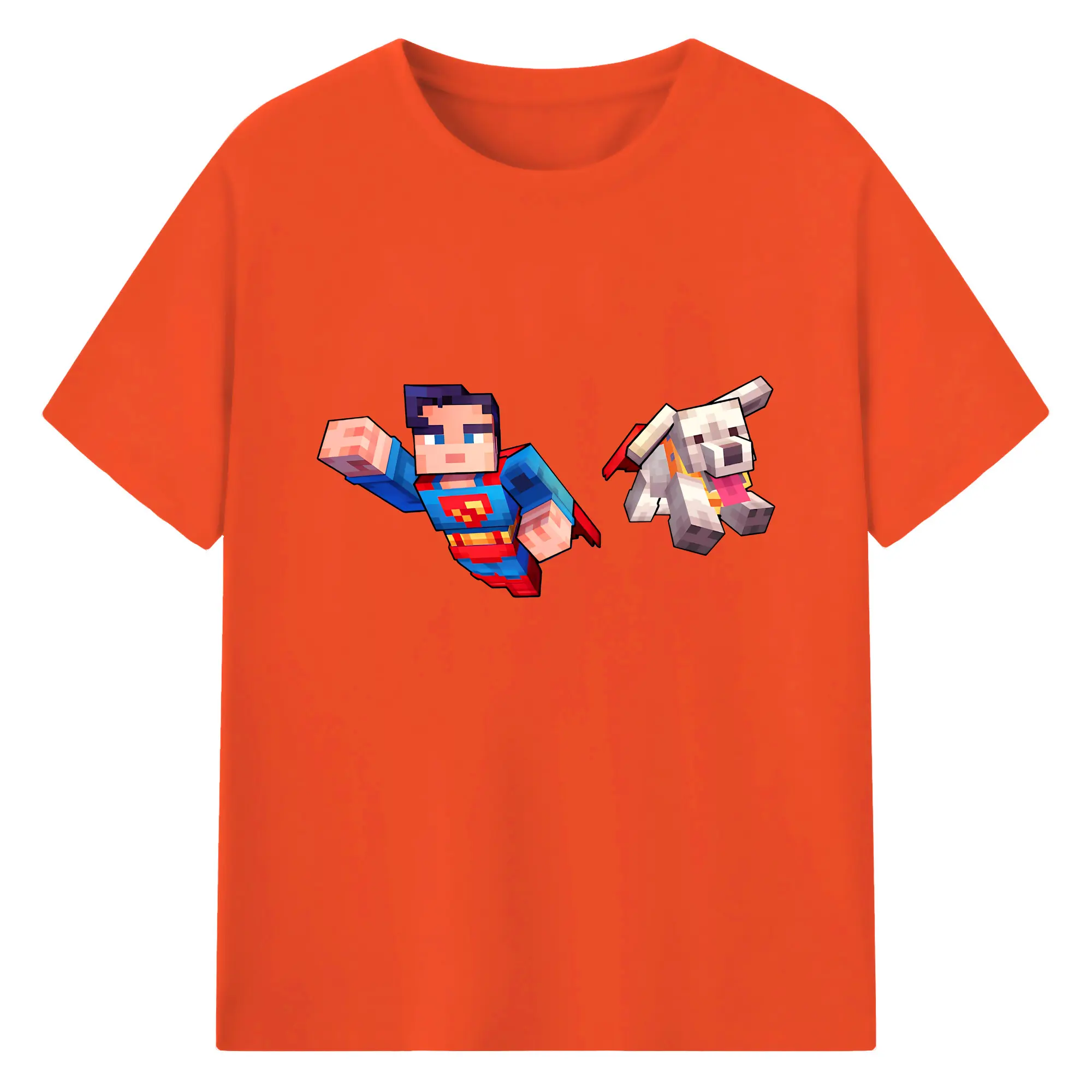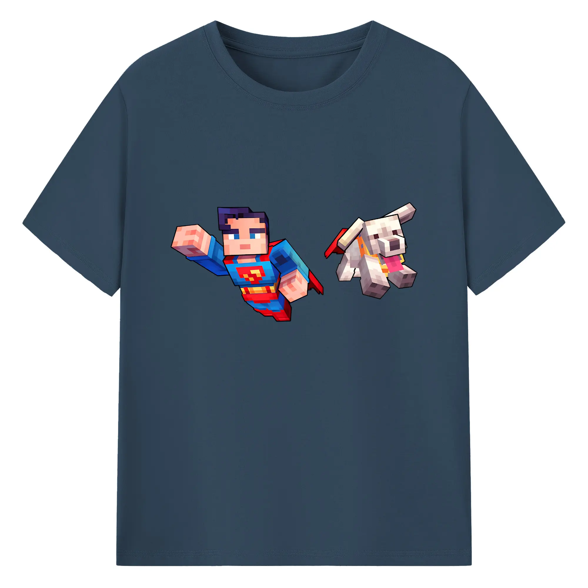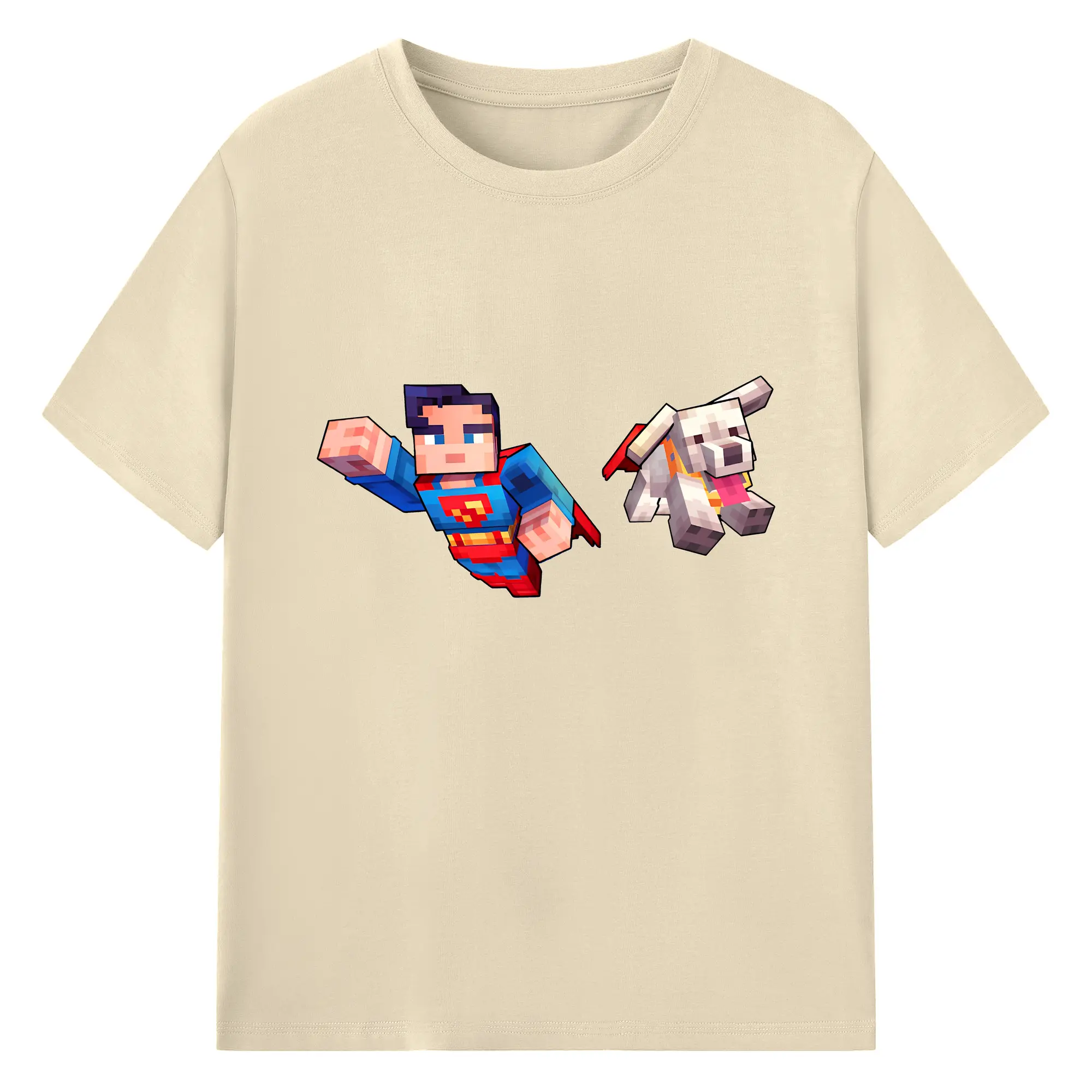 【限定】マインクラフト コラボ - 綿100% ヴィンテージ風 半袖Tシャツ ・ フロントプリント ・ 柔らか肌触り ・ 通気性 快適 ・ スポーツ カジュアル 外出用