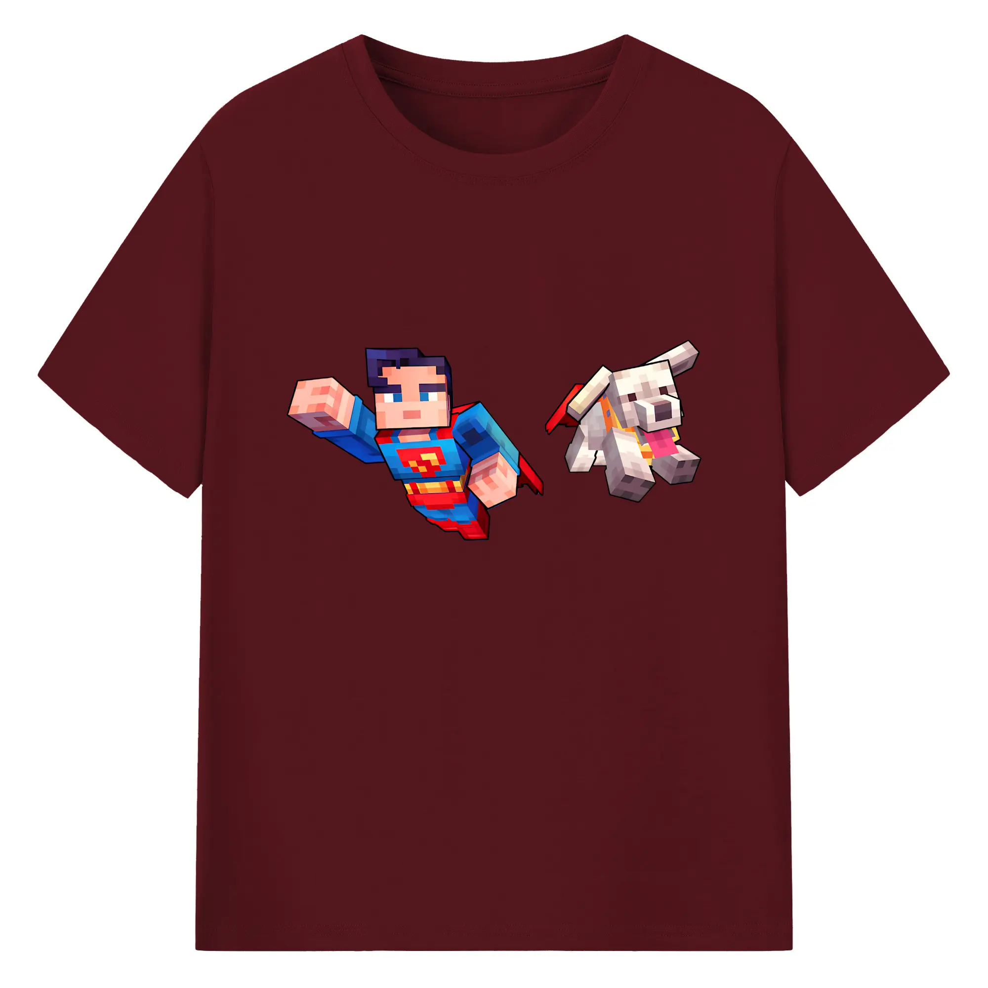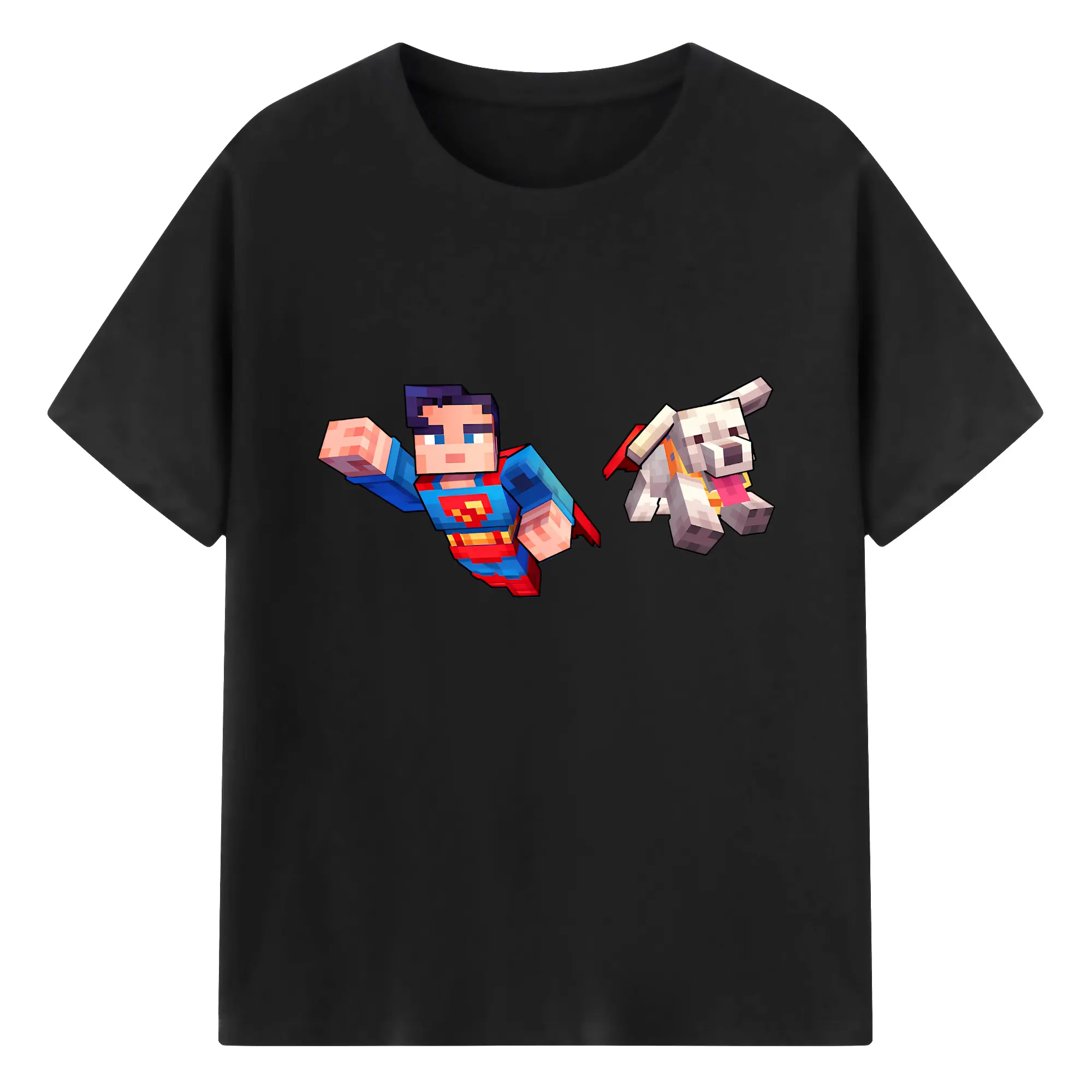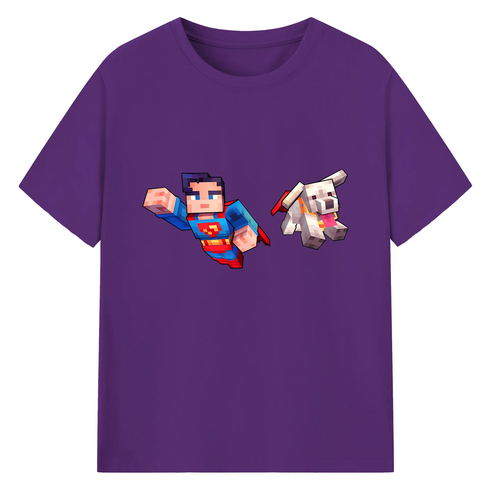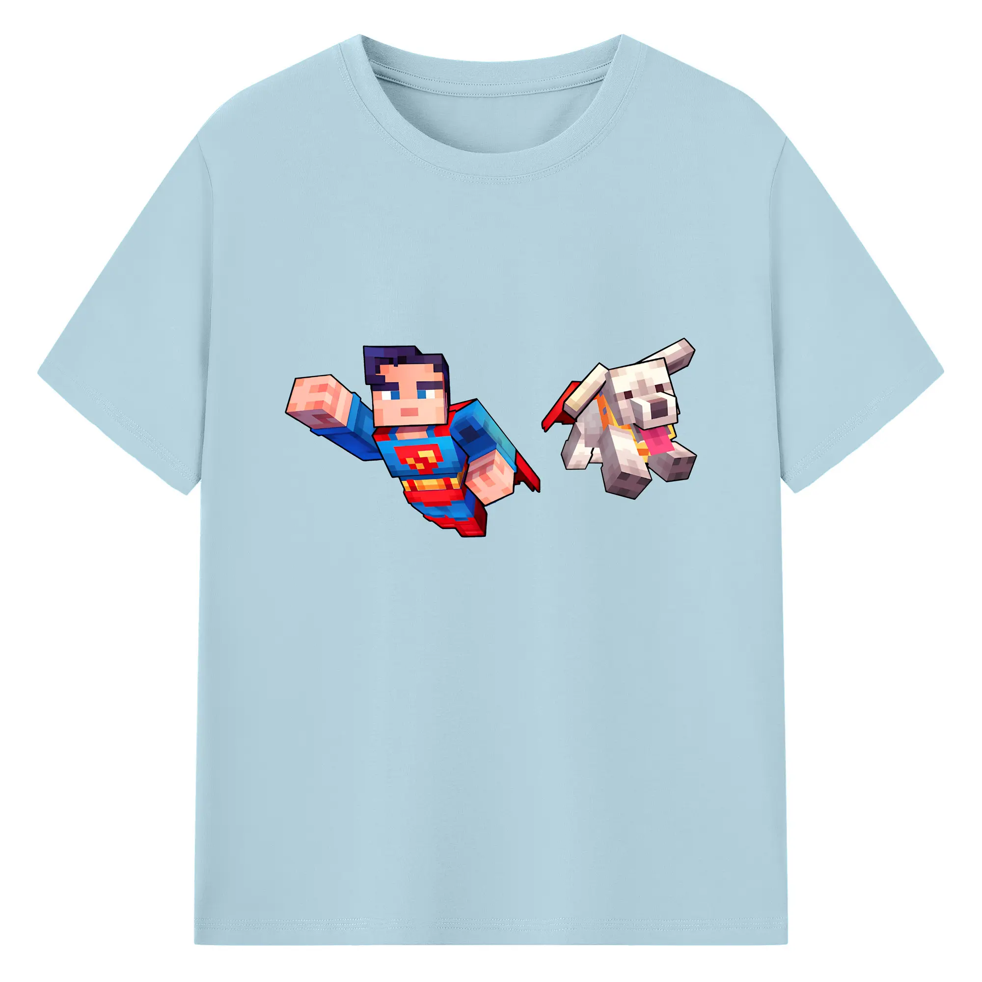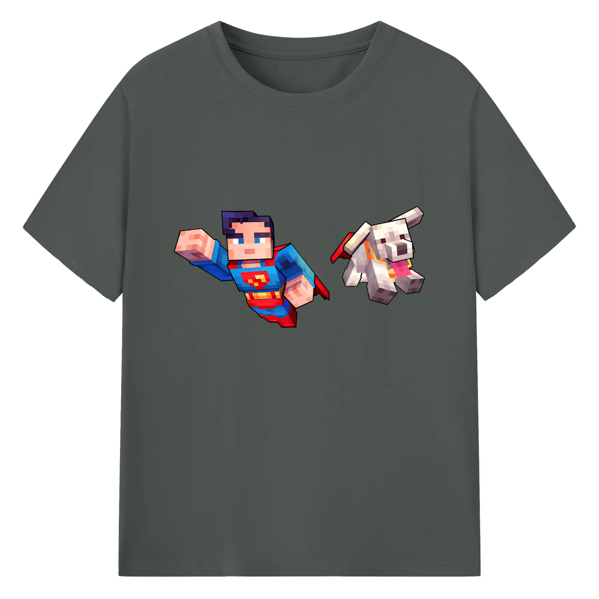 【限定】マインクラフト コラボ - 綿100% ヴィンテージ風 半袖Tシャツ ・ フロントプリント ・ 柔らか肌触り ・ 通気性 快適 ・ スポーツ カジュアル 外出用