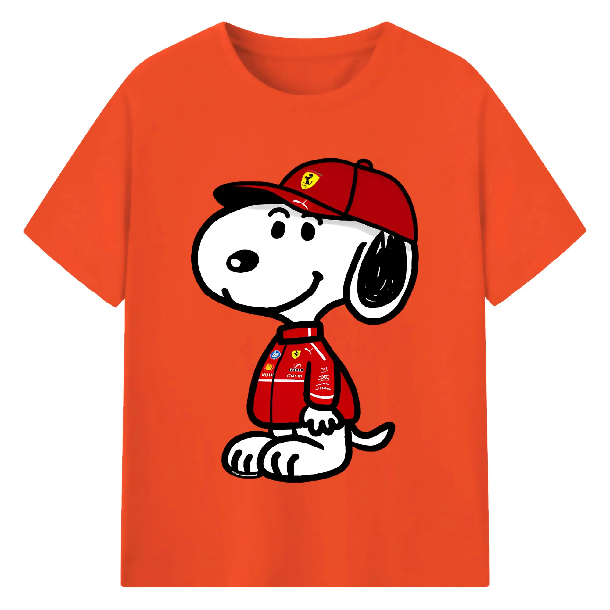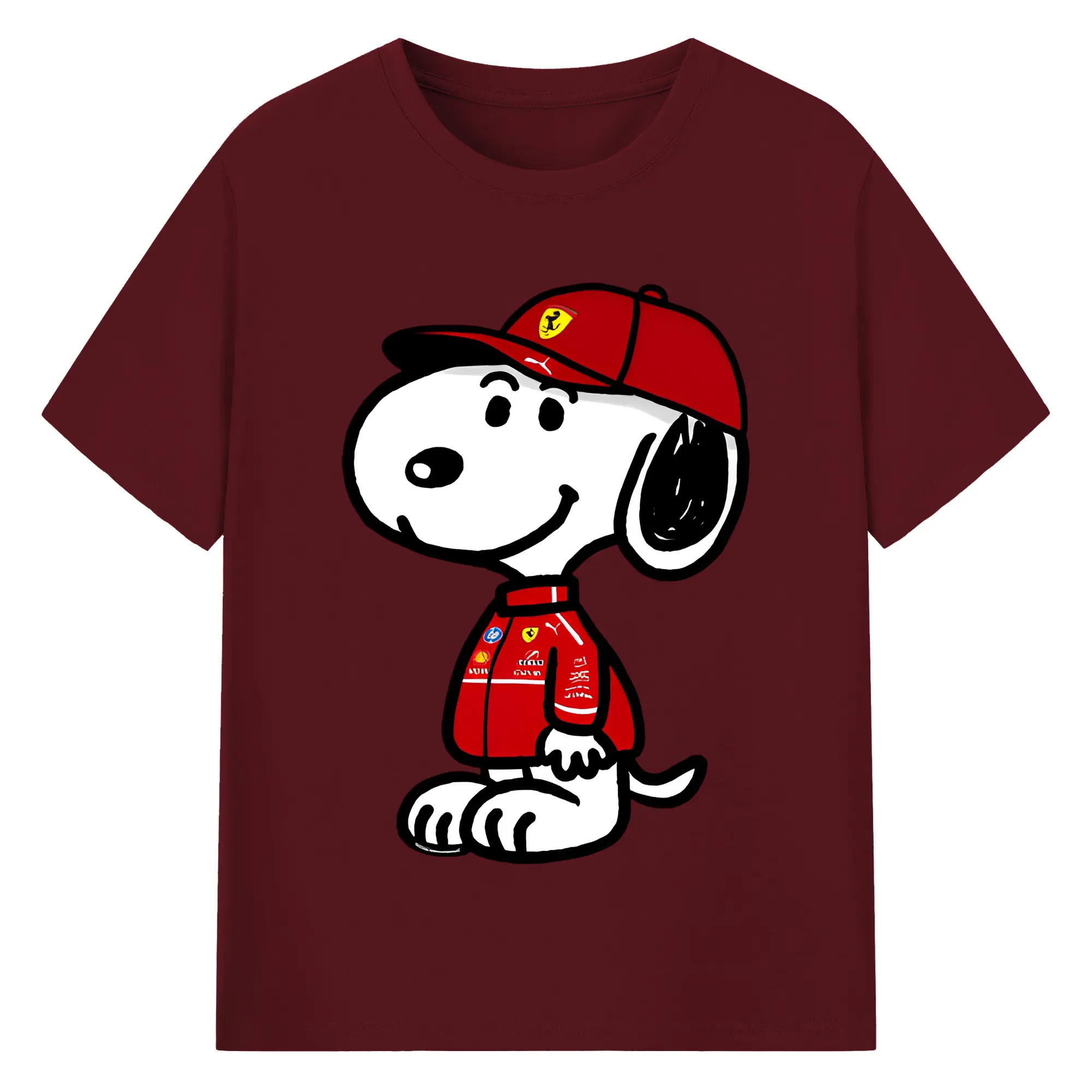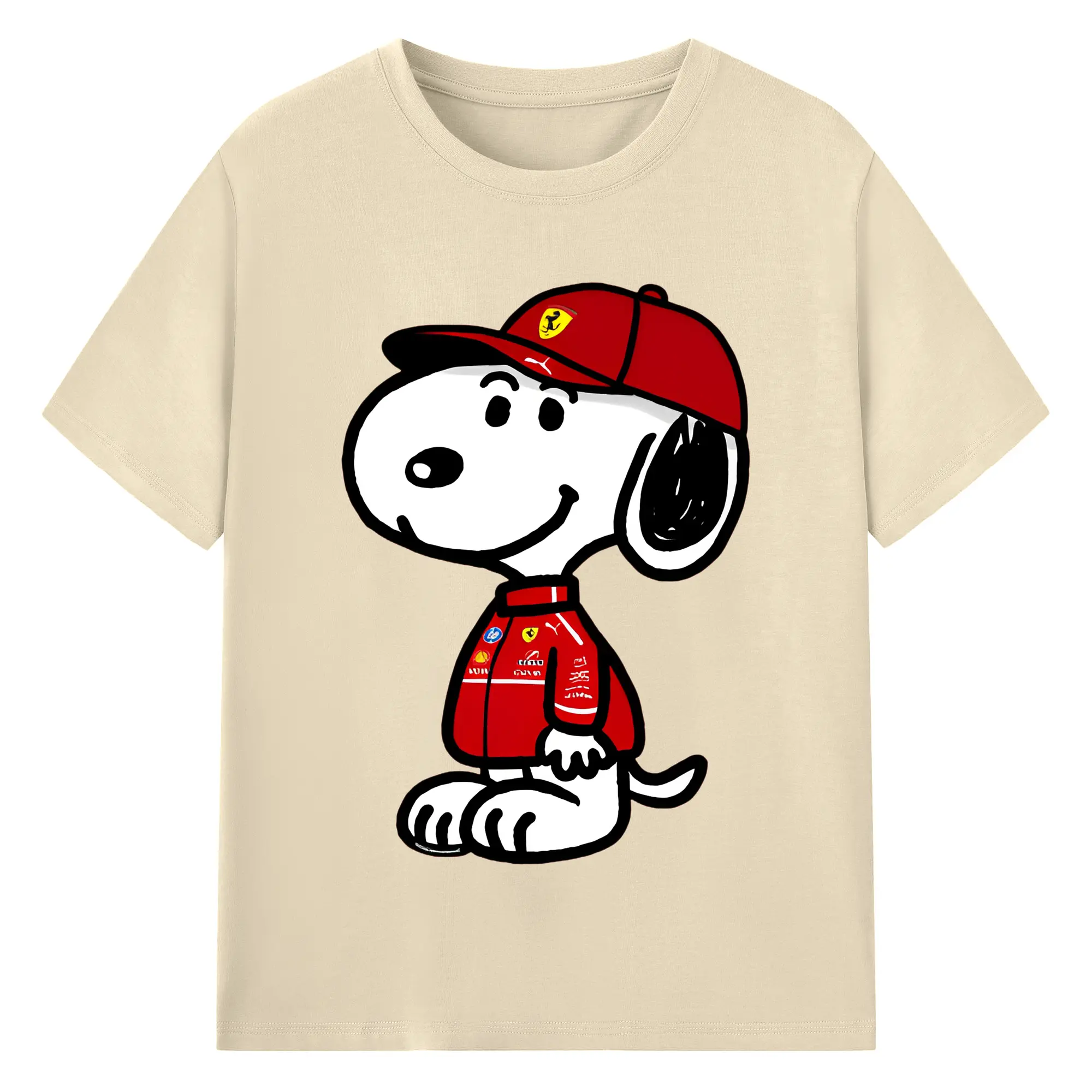 限定版 スヌーピー×フェラーリレーシング - 綿100% ヴィンテージ風 半袖Tシャツ ・ フロントプリント ・ 柔らか肌触り ・ 通気性 快適 ・ スポーツ カジュアル 外出用