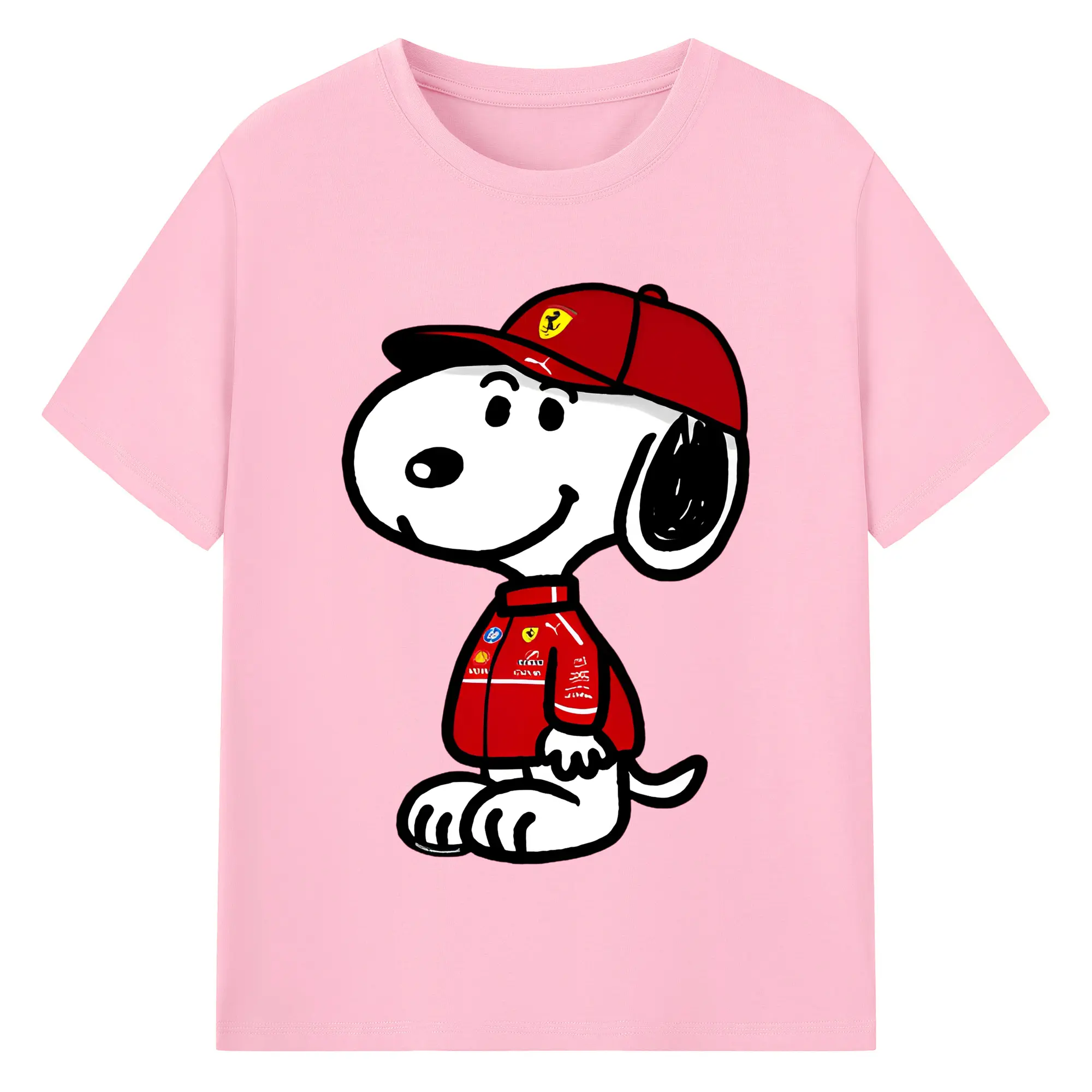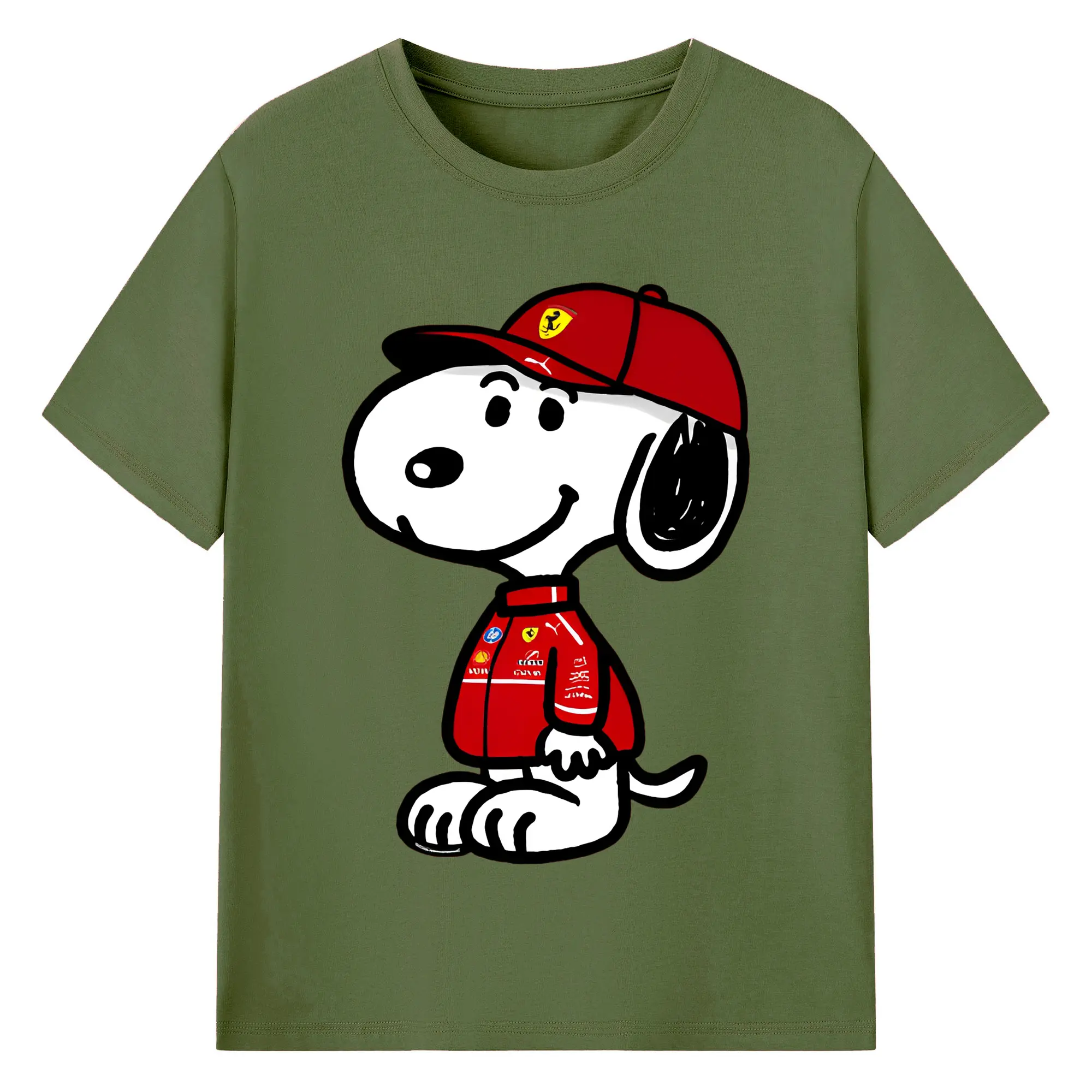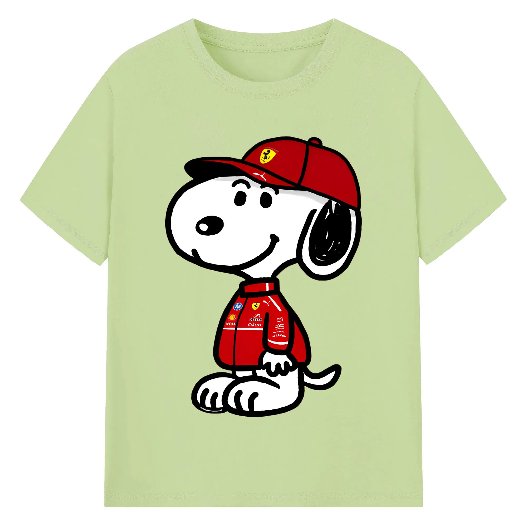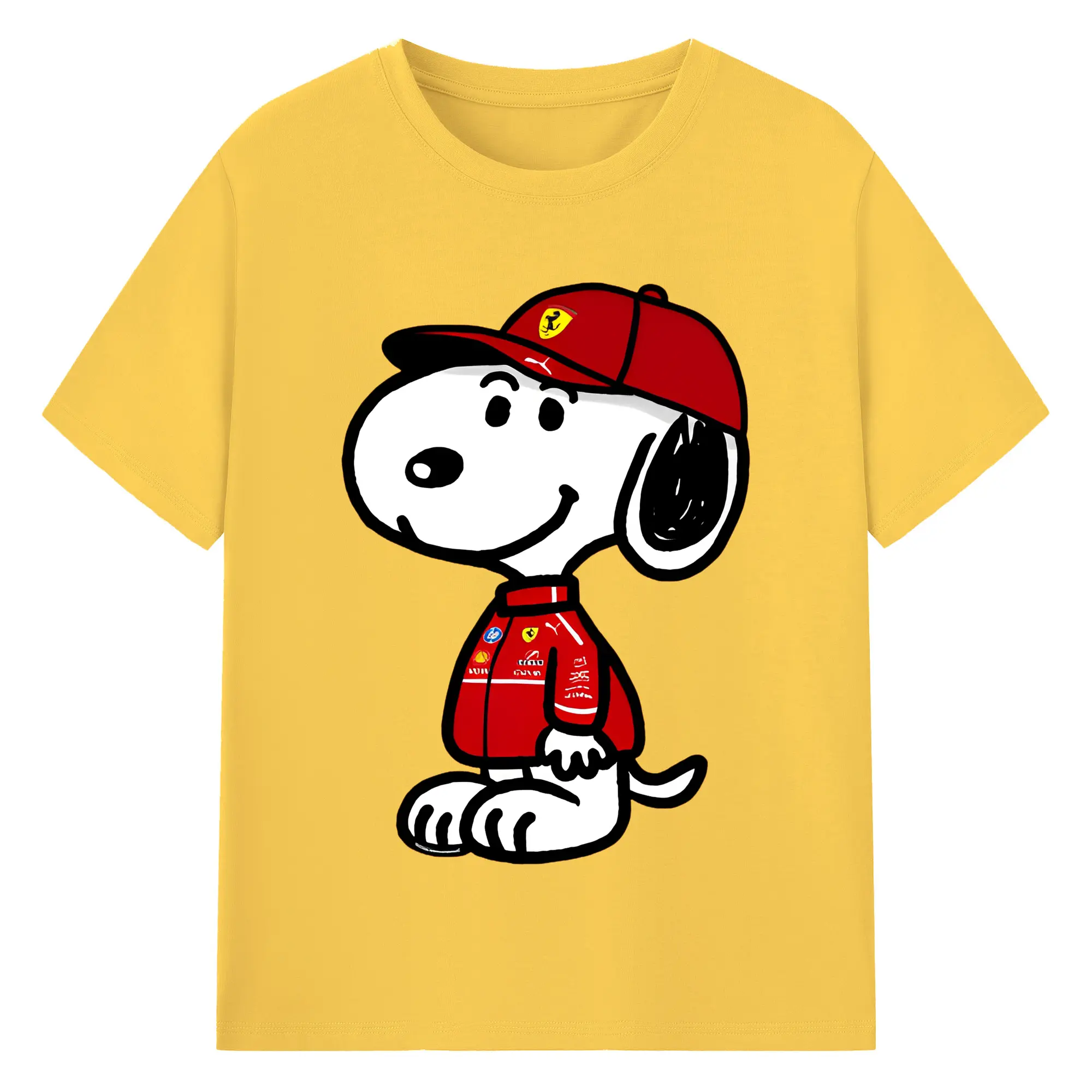 限定版 スヌーピー×フェラーリレーシング - 綿100% ヴィンテージ風 半袖Tシャツ ・ フロントプリント ・ 柔らか肌触り ・ 通気性 快適 ・ スポーツ カジュアル 外出用