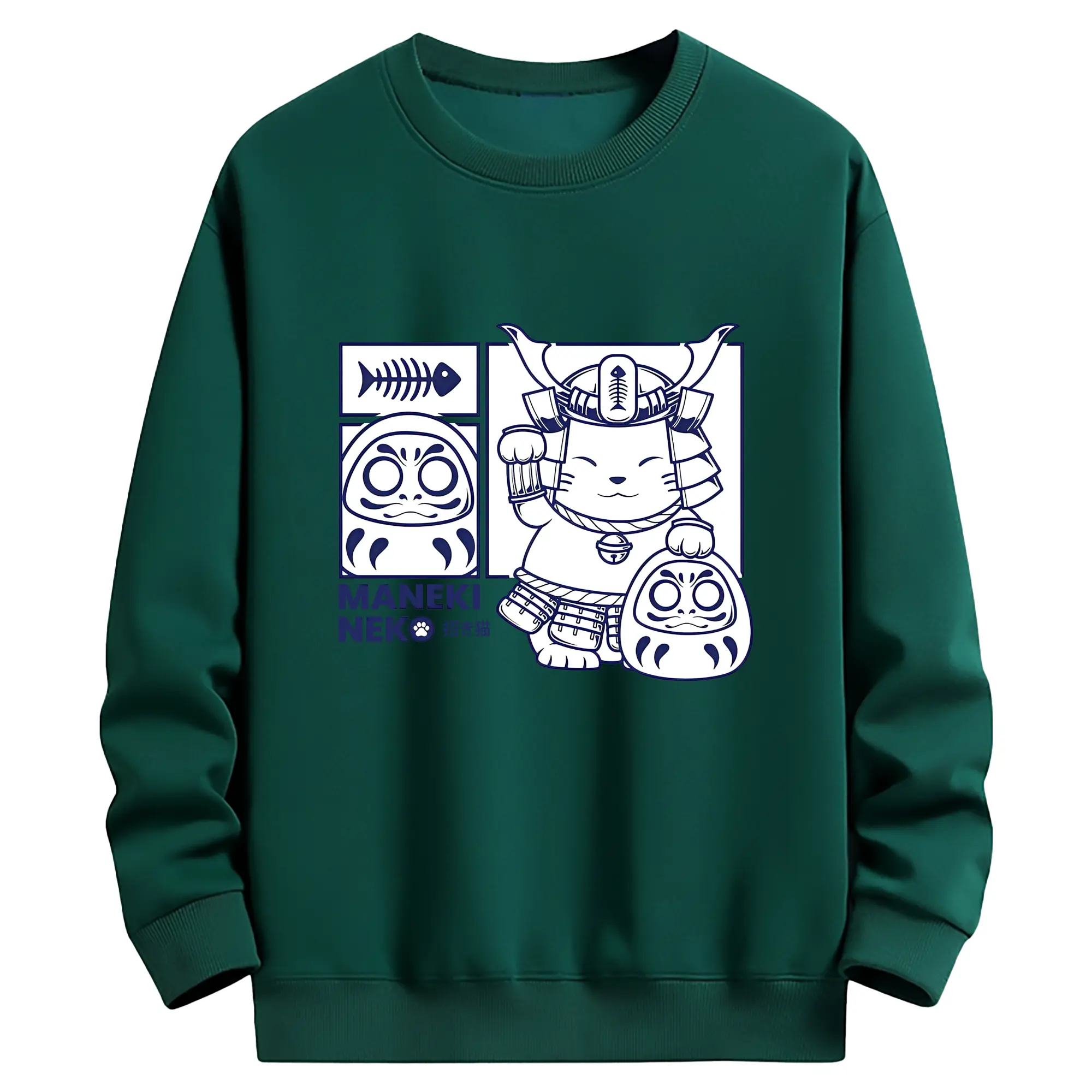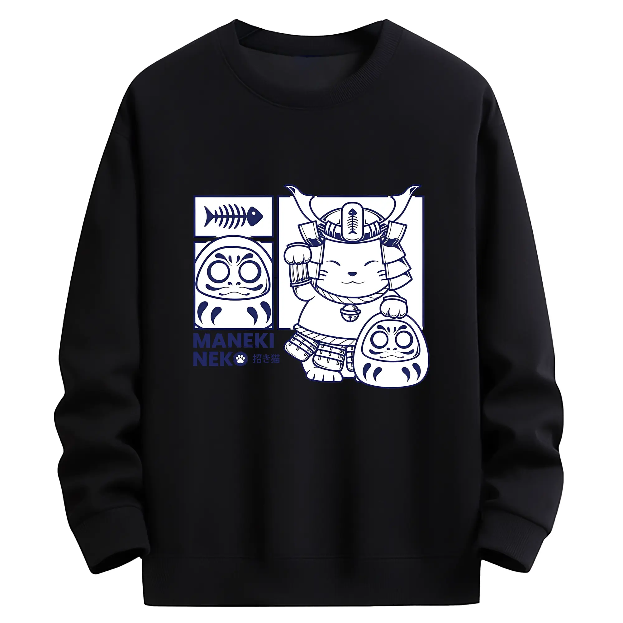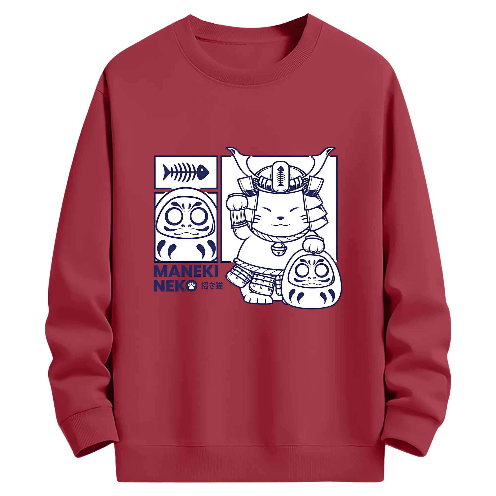 限定 武士ネコ×だるま 開運キャラクター - 綿100% 半袖Tシャツ ・ フロントプリント ・ 快適 通気性 ・ 日常使い 散歩 スポーツ用
