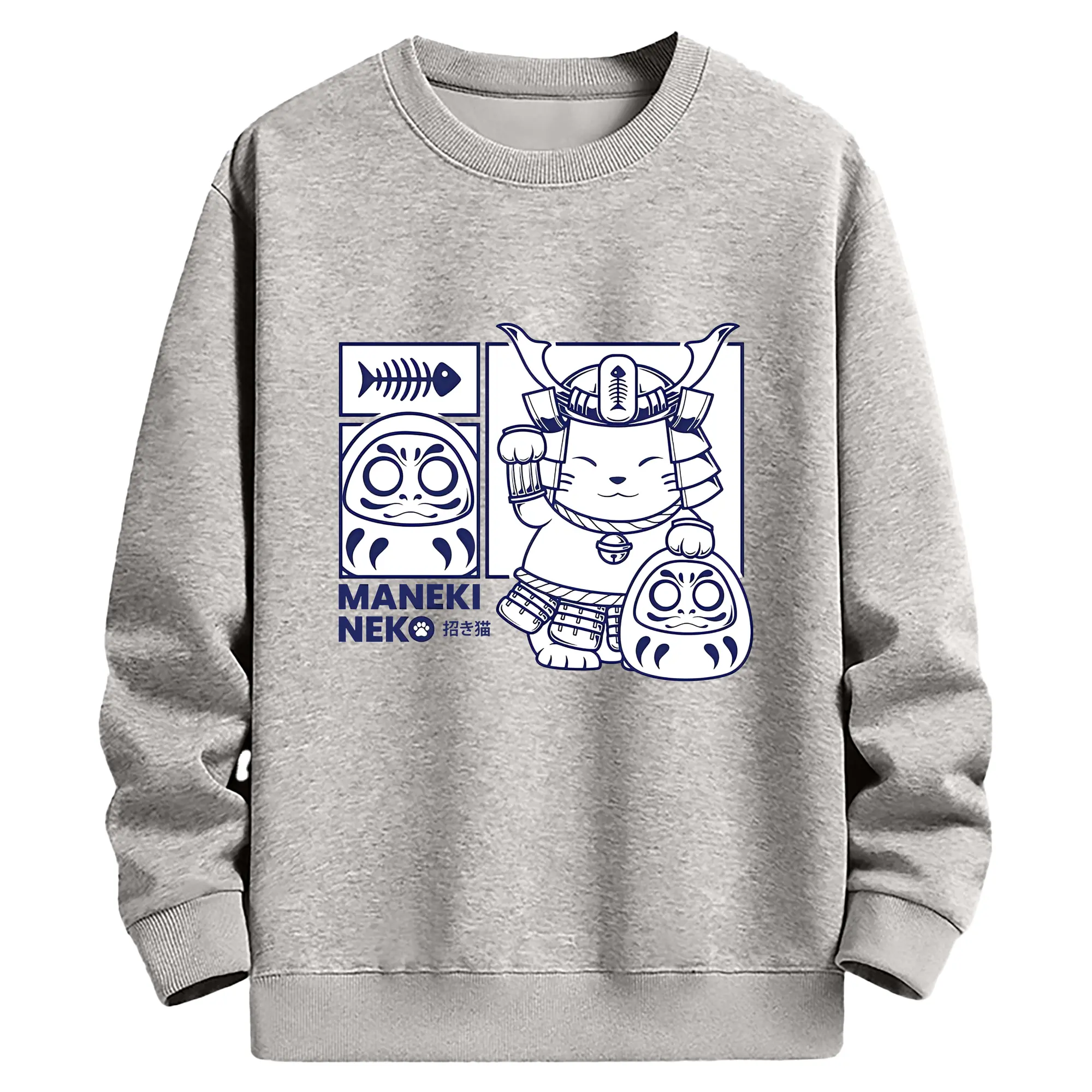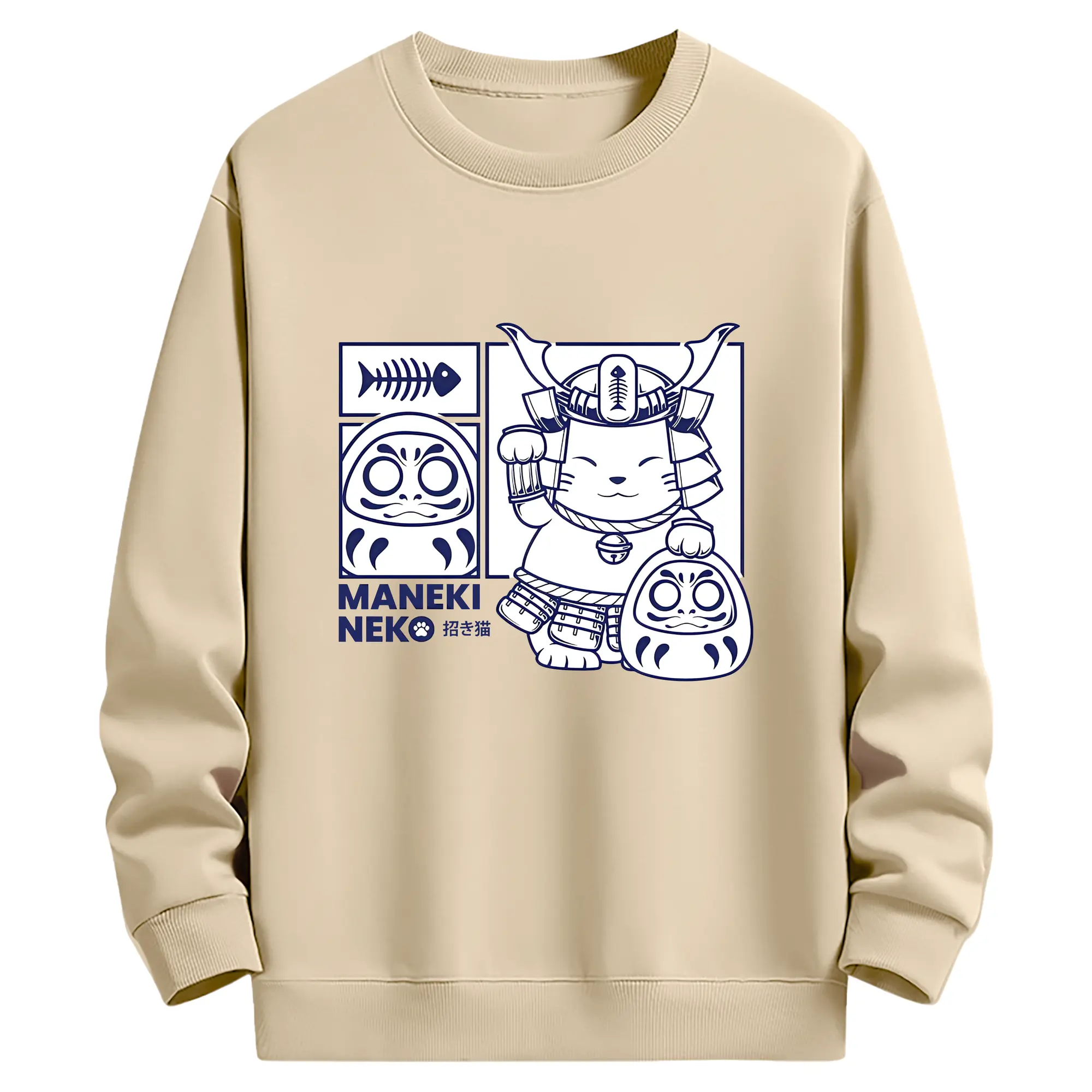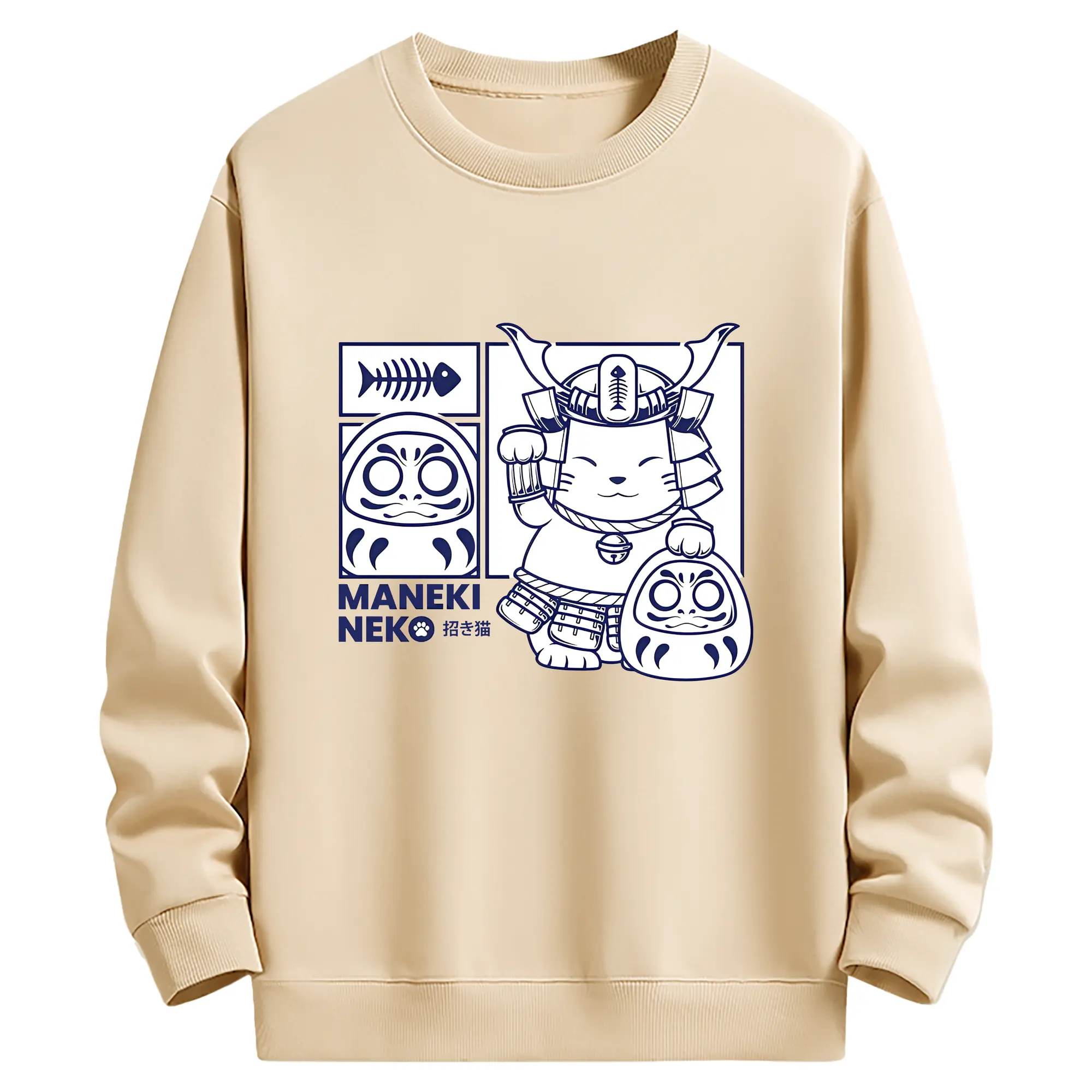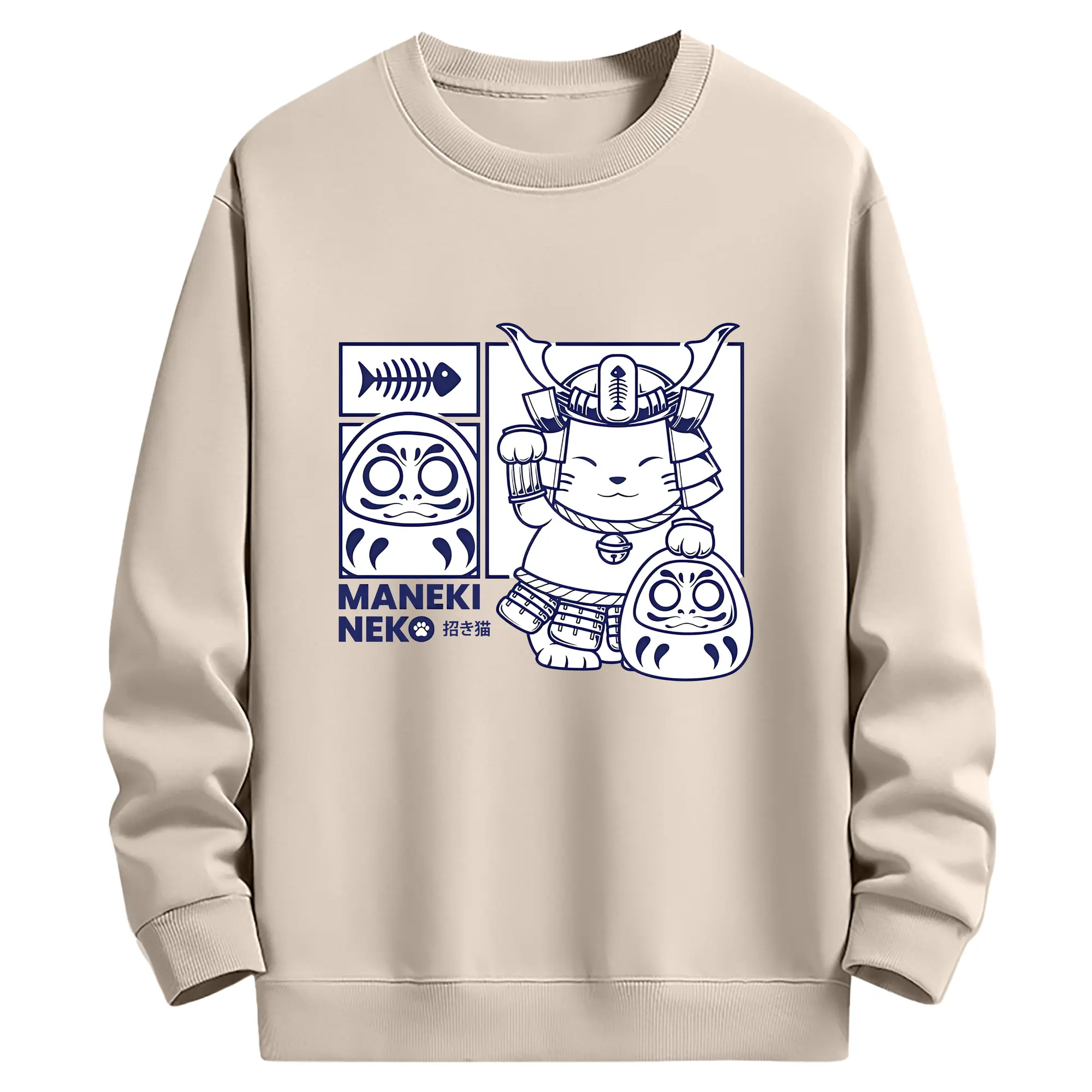 限定 武士ネコ×だるま 開運キャラクター - 綿100% 半袖Tシャツ ・ フロントプリント ・ 快適 通気性 ・ 日常使い 散歩 スポーツ用