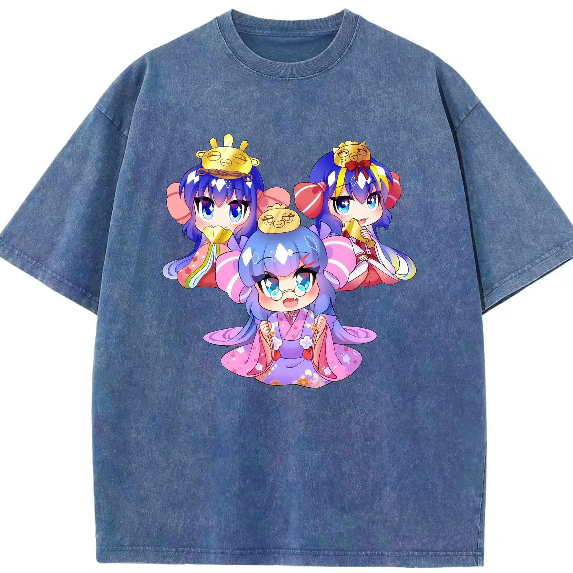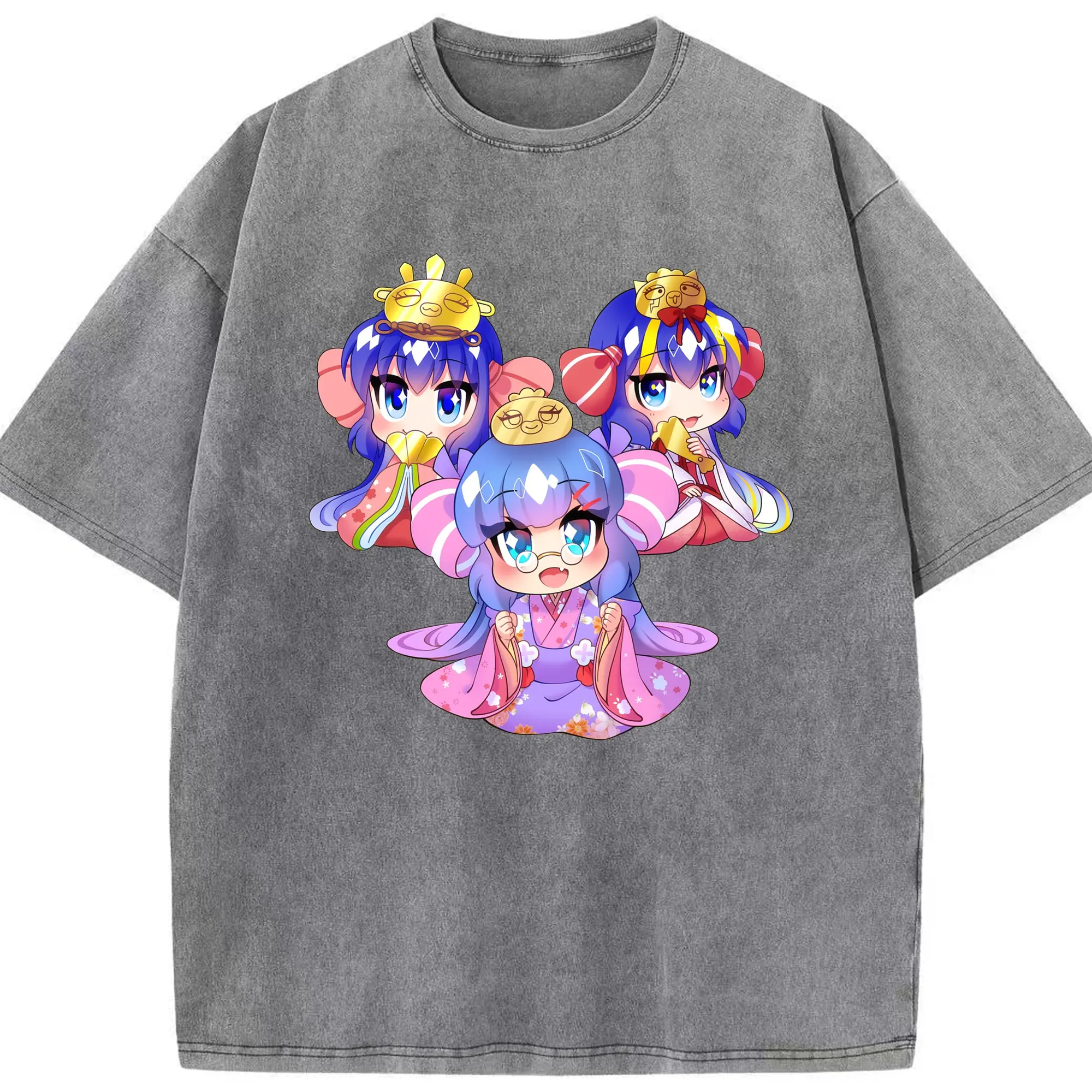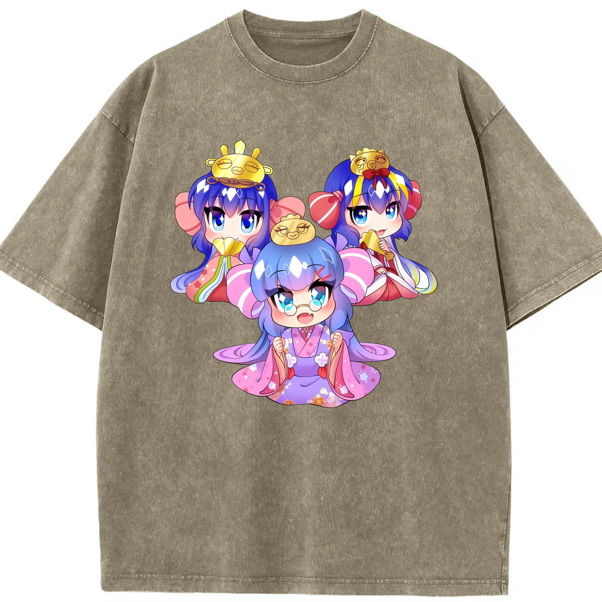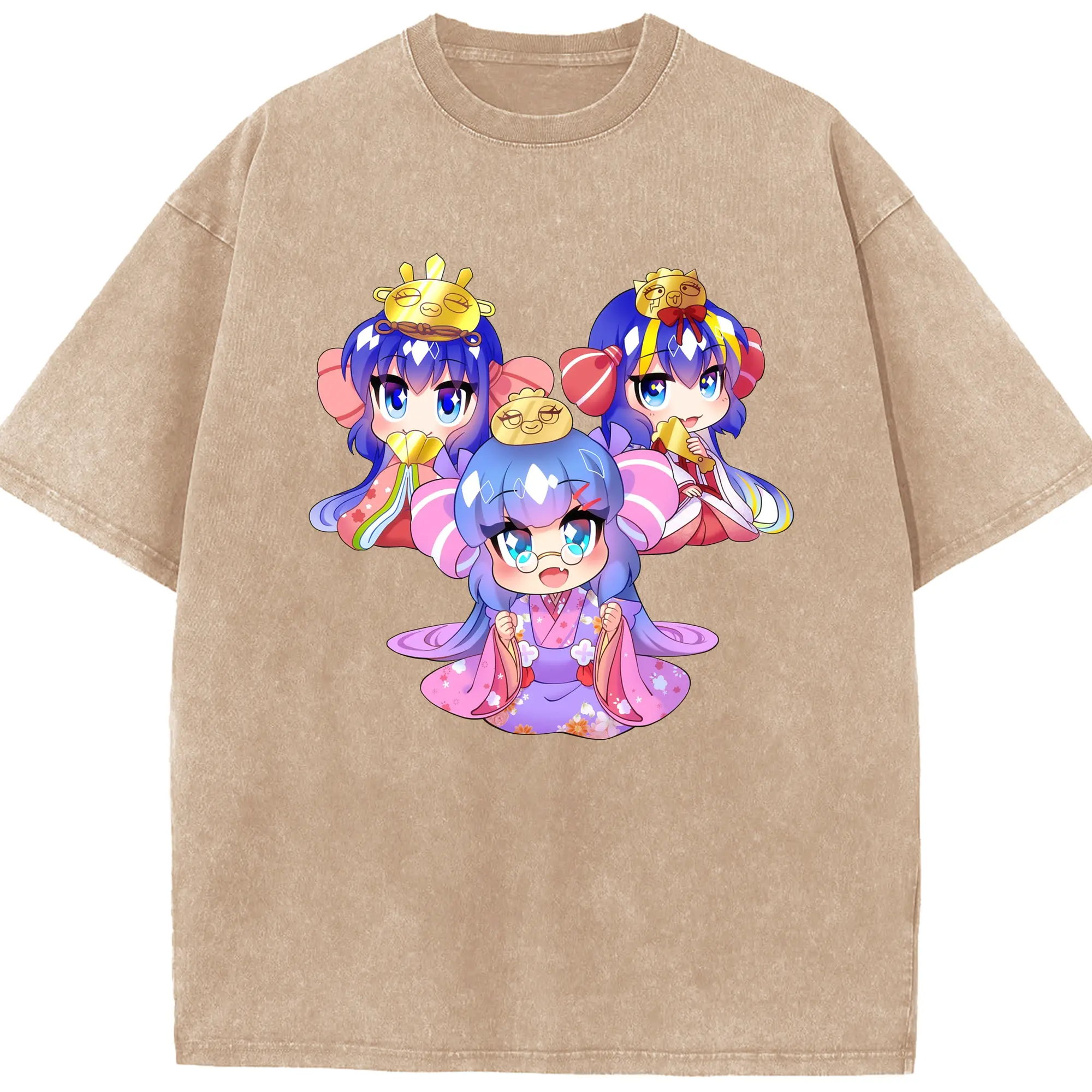 Genshin Impact 放浪者 Q版キャラクター 可愛いファングッズ - 綿100% ヴィンテージ風 半袖Tシャツ ・ フロントプリント ・ 柔らか肌触り ・ 通気性 快適 ・ スポーツ カジュアル 外出用