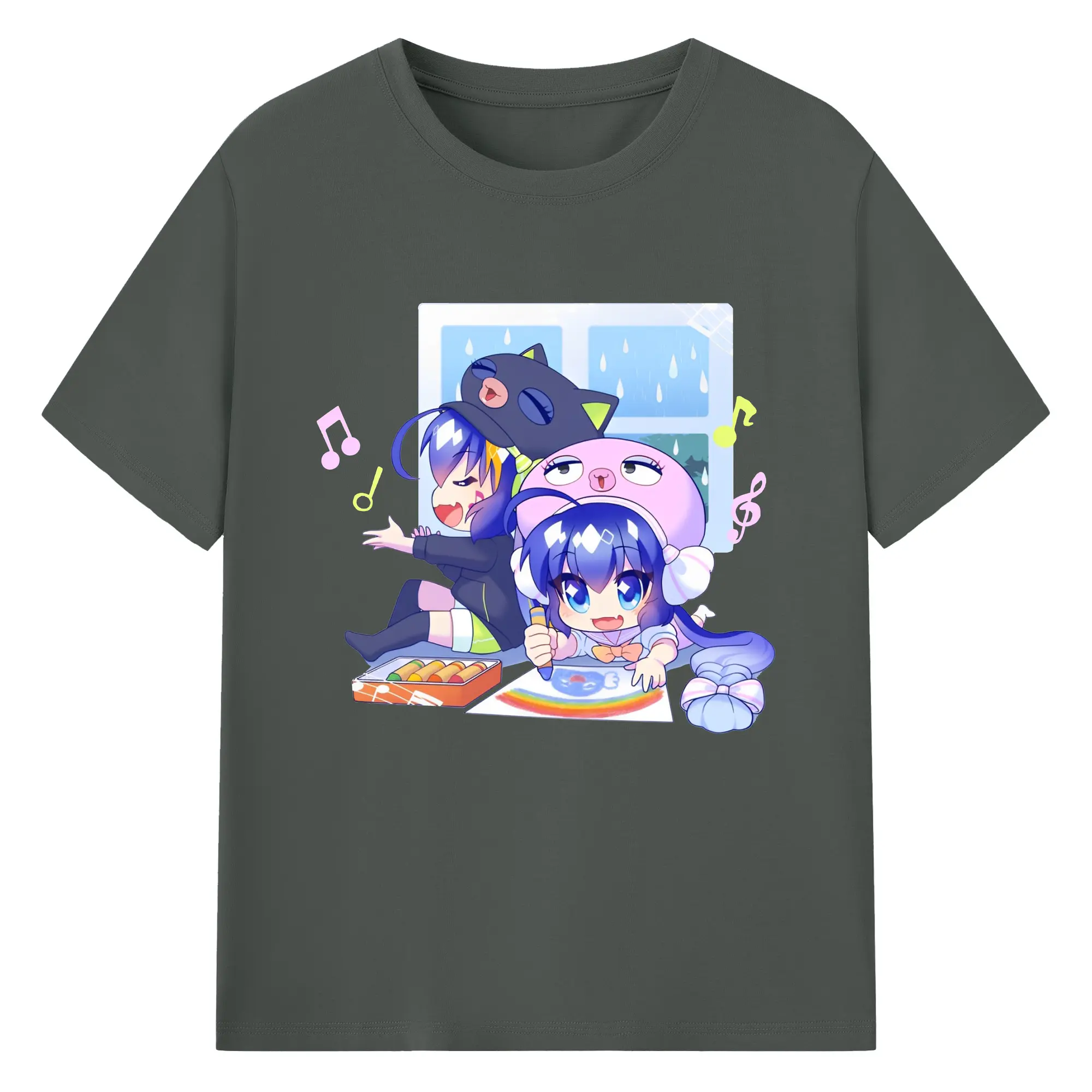 初音ミク 面白いデザイン - 綿100% 半袖Tシャツ ・ フロントプリント ・ 快適 通気性 ・ 日常使い 散歩 スポーツ用