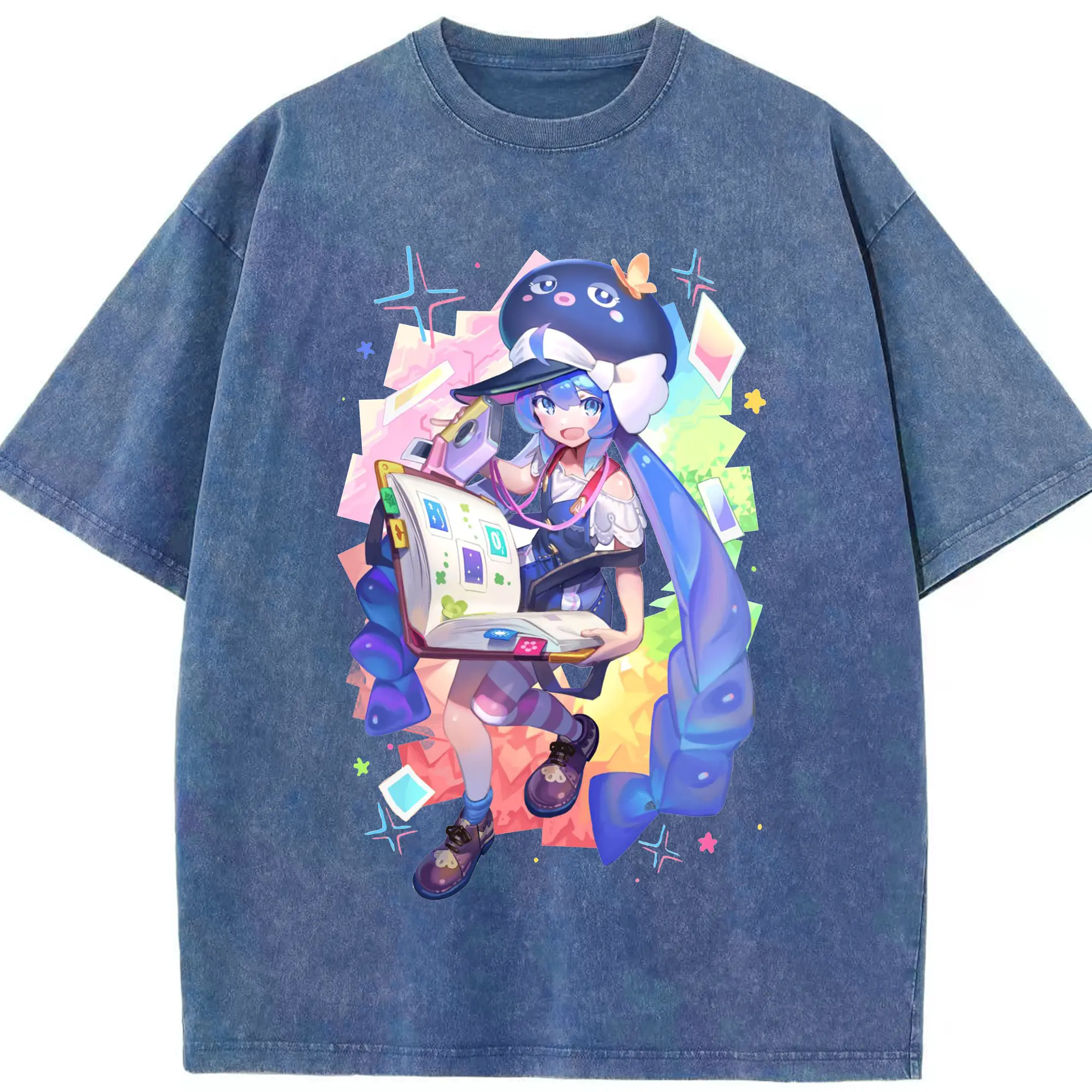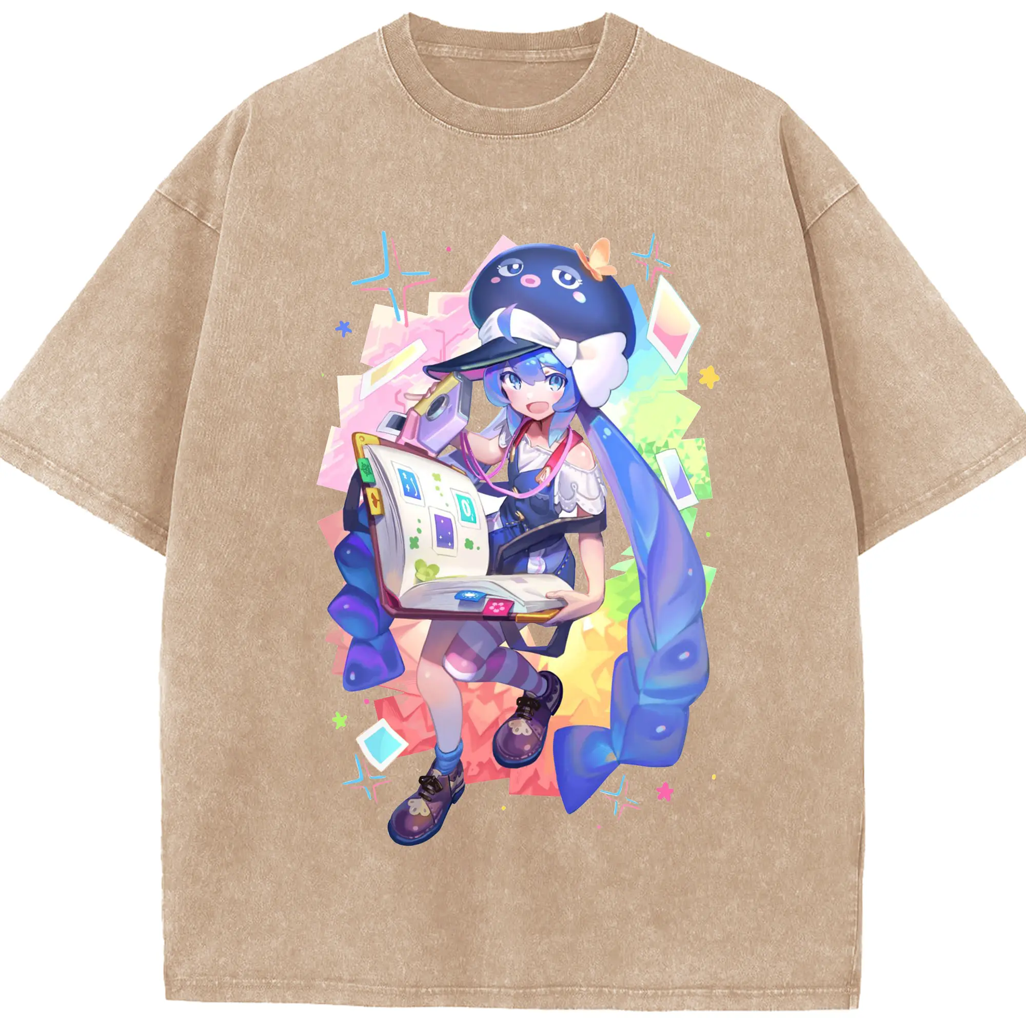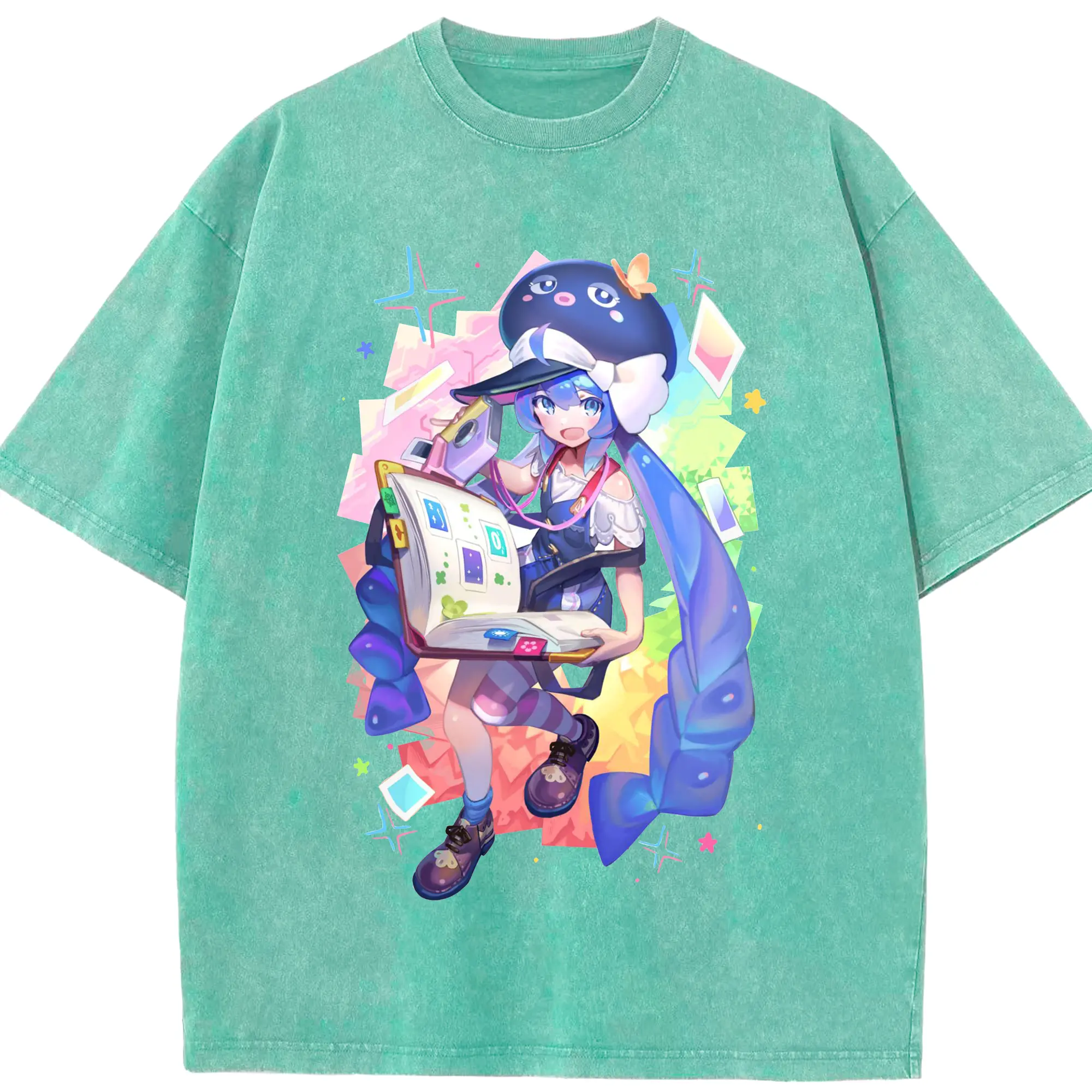 原神 胡桃 ゆるかわアート - 綿100% ヴィンテージ風 半袖Tシャツ ・ フロントプリント ・ 柔らか肌触り ・ 通気性 快適 ・ スポーツ カジュアル 外出用