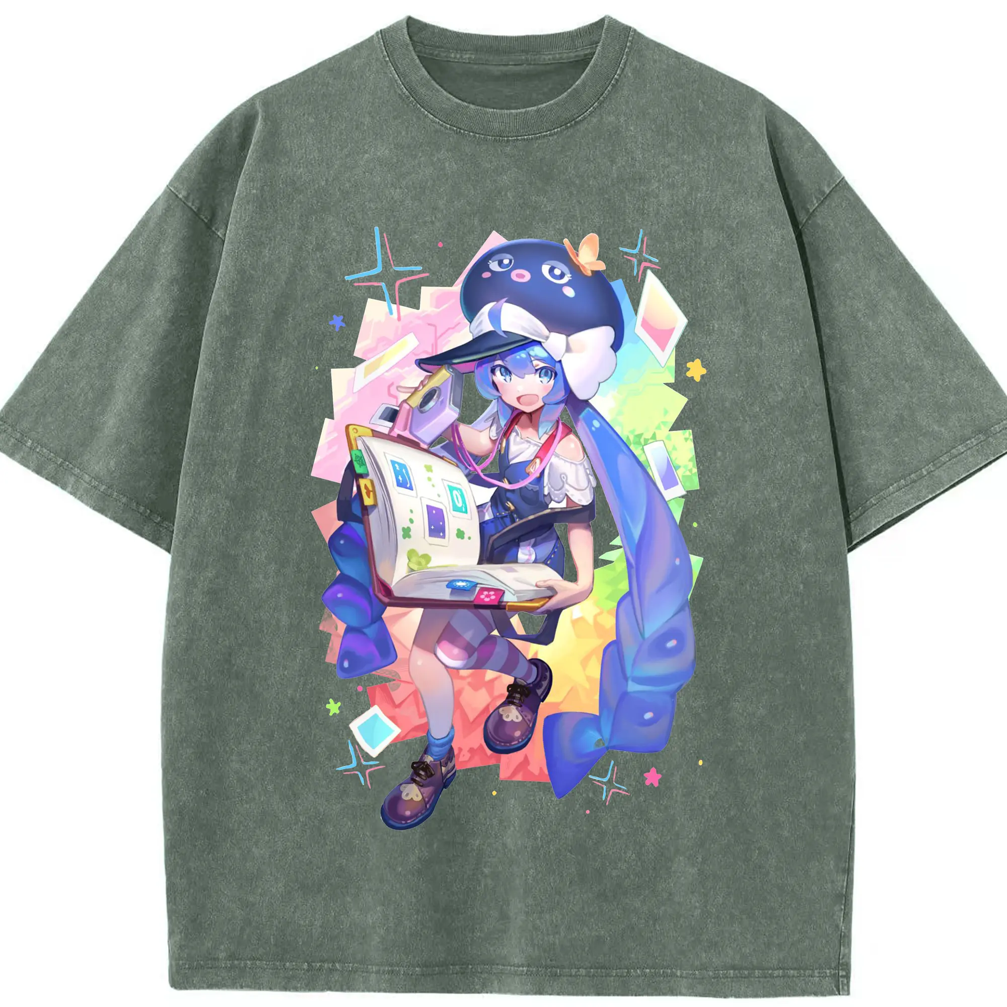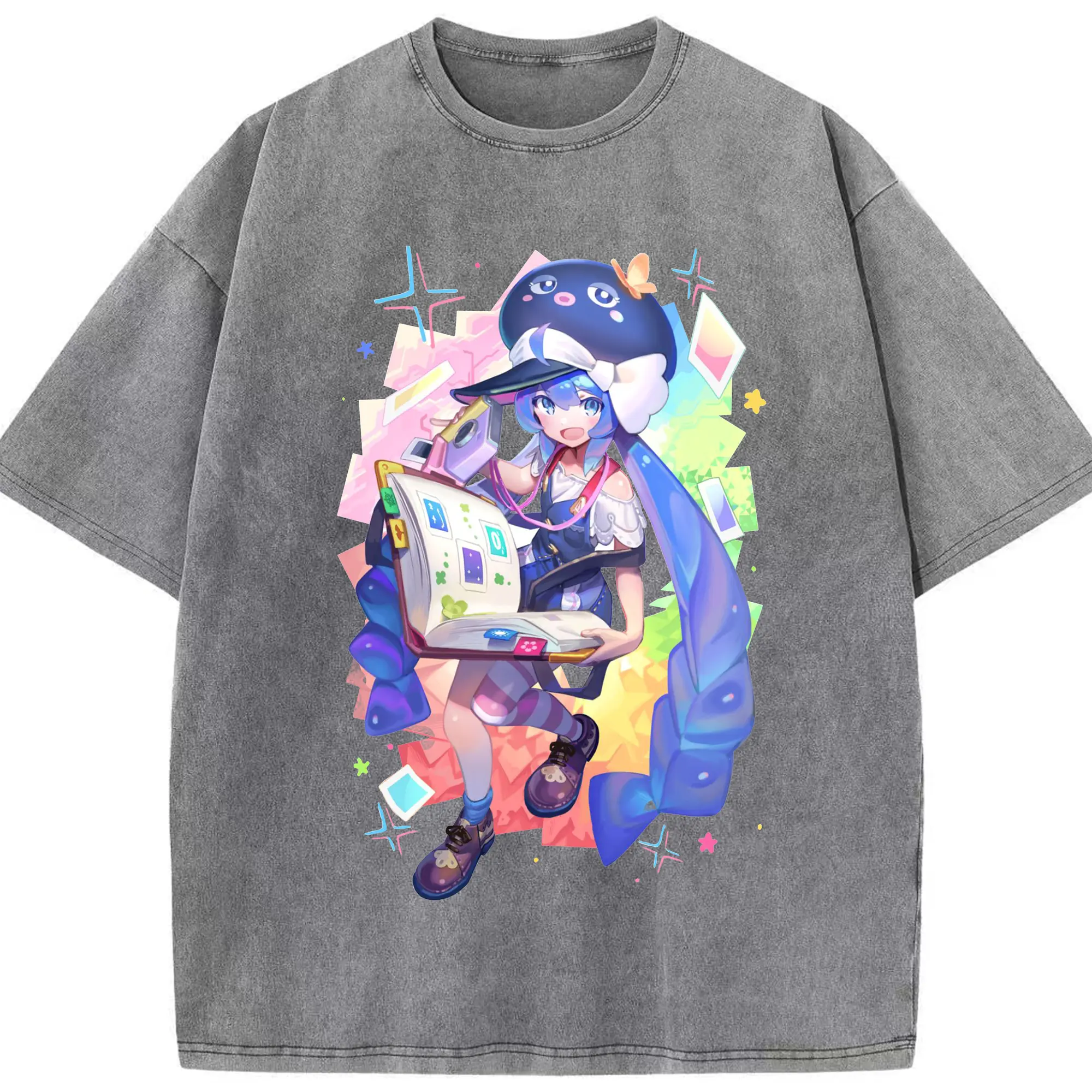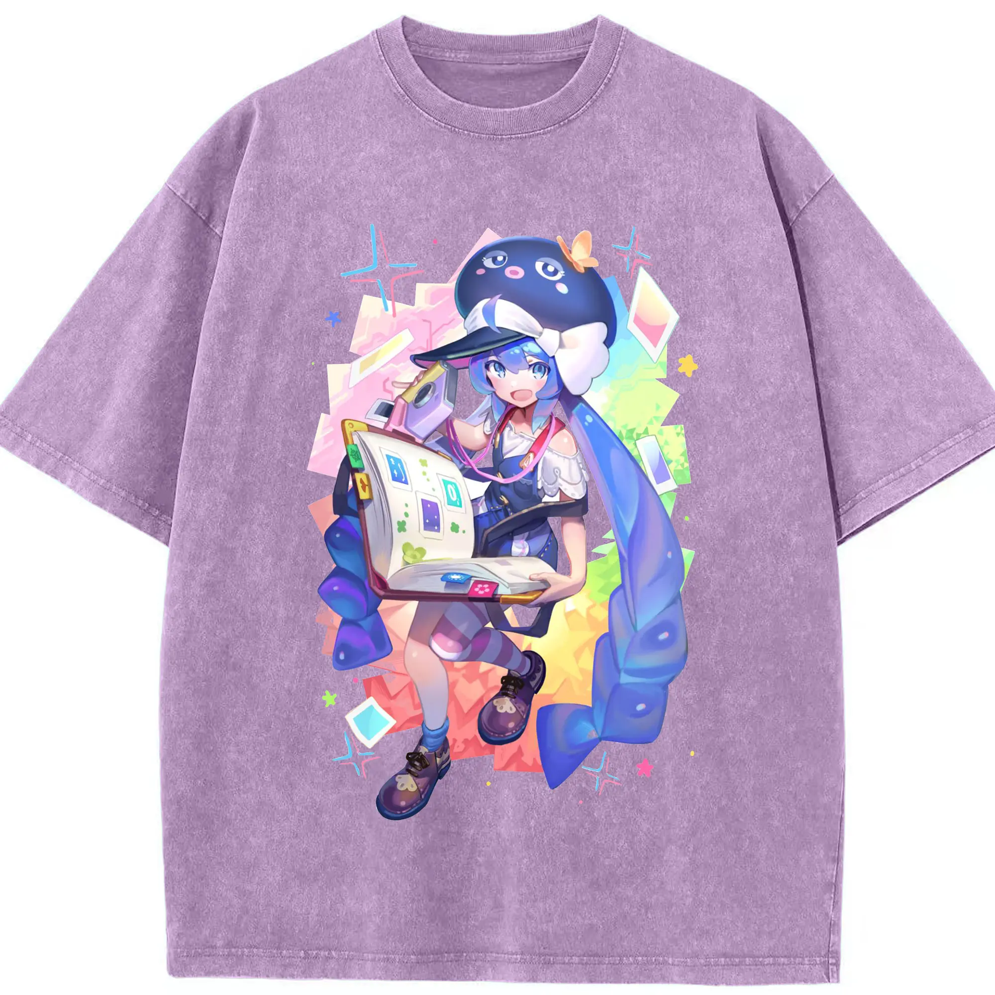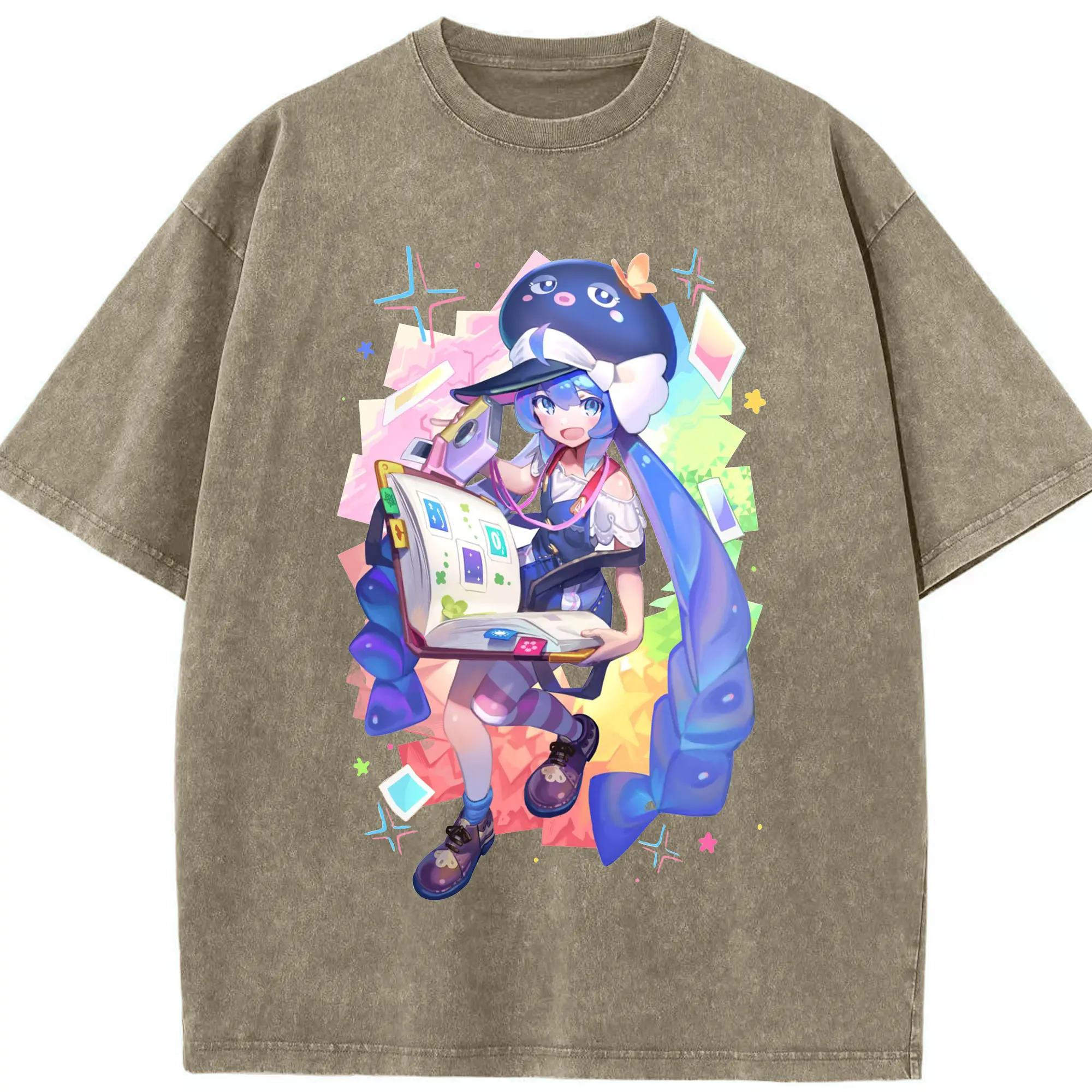 原神 胡桃 ゆるかわアート - 綿100% ヴィンテージ風 半袖Tシャツ ・ フロントプリント ・ 柔らか肌触り ・ 通気性 快適 ・ スポーツ カジュアル 外出用