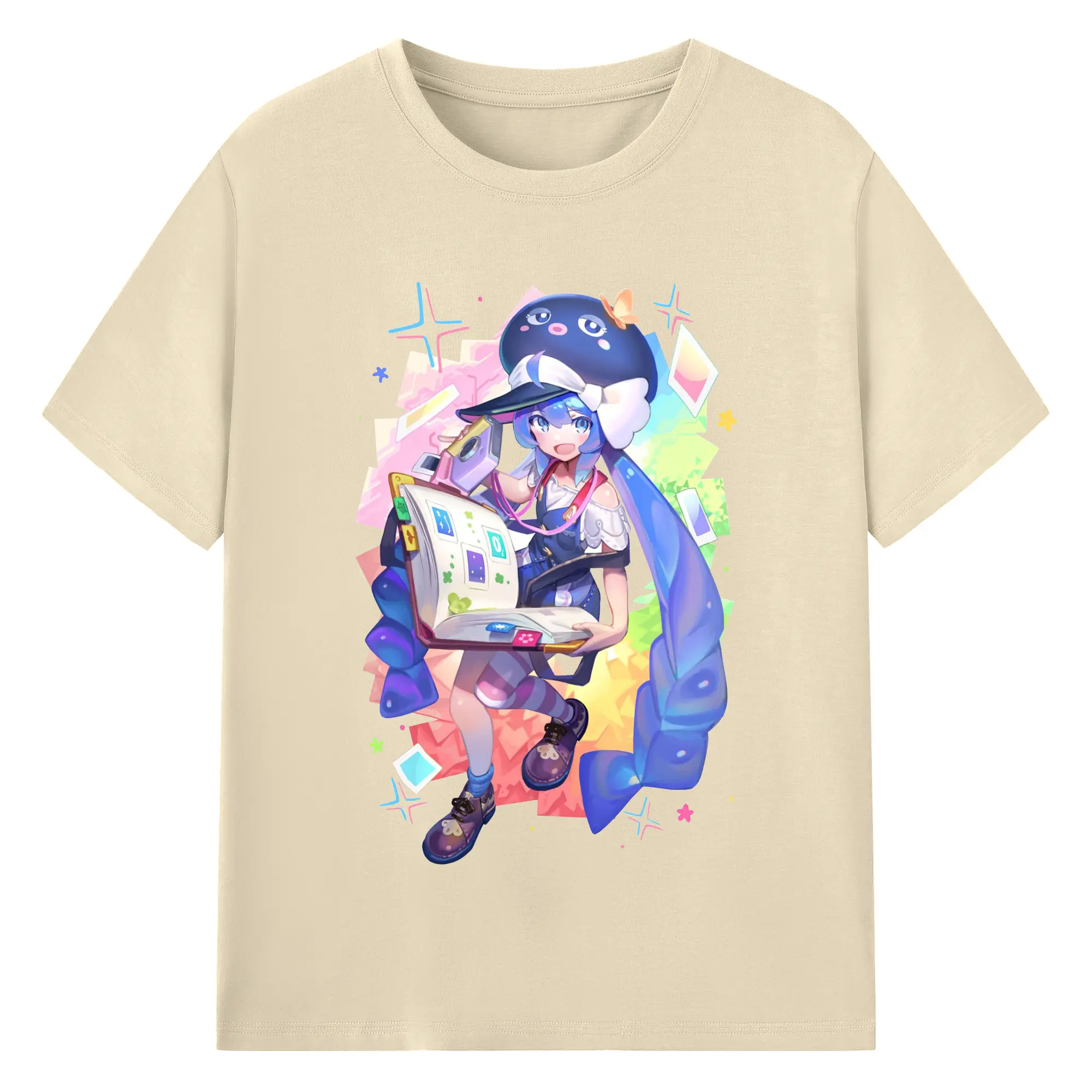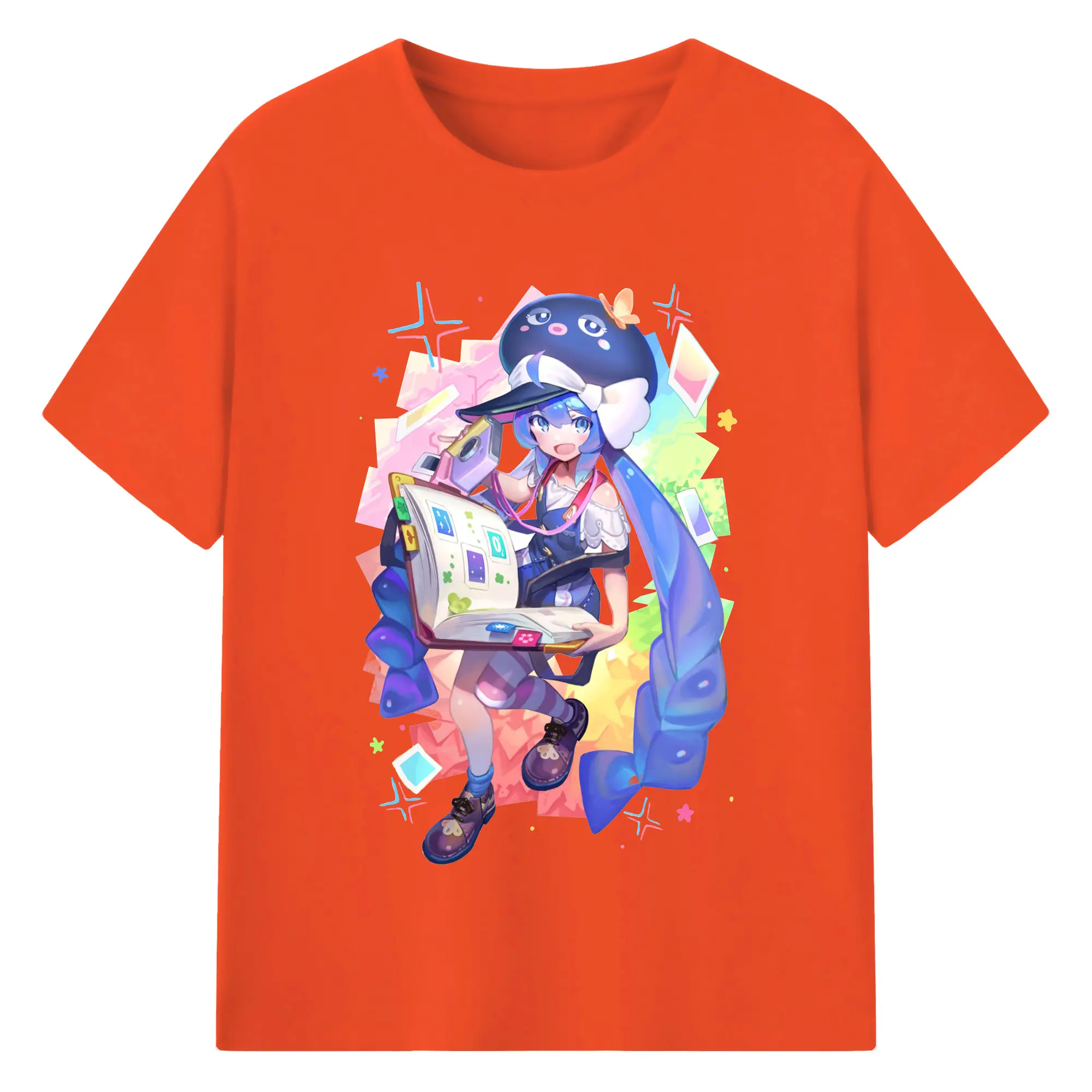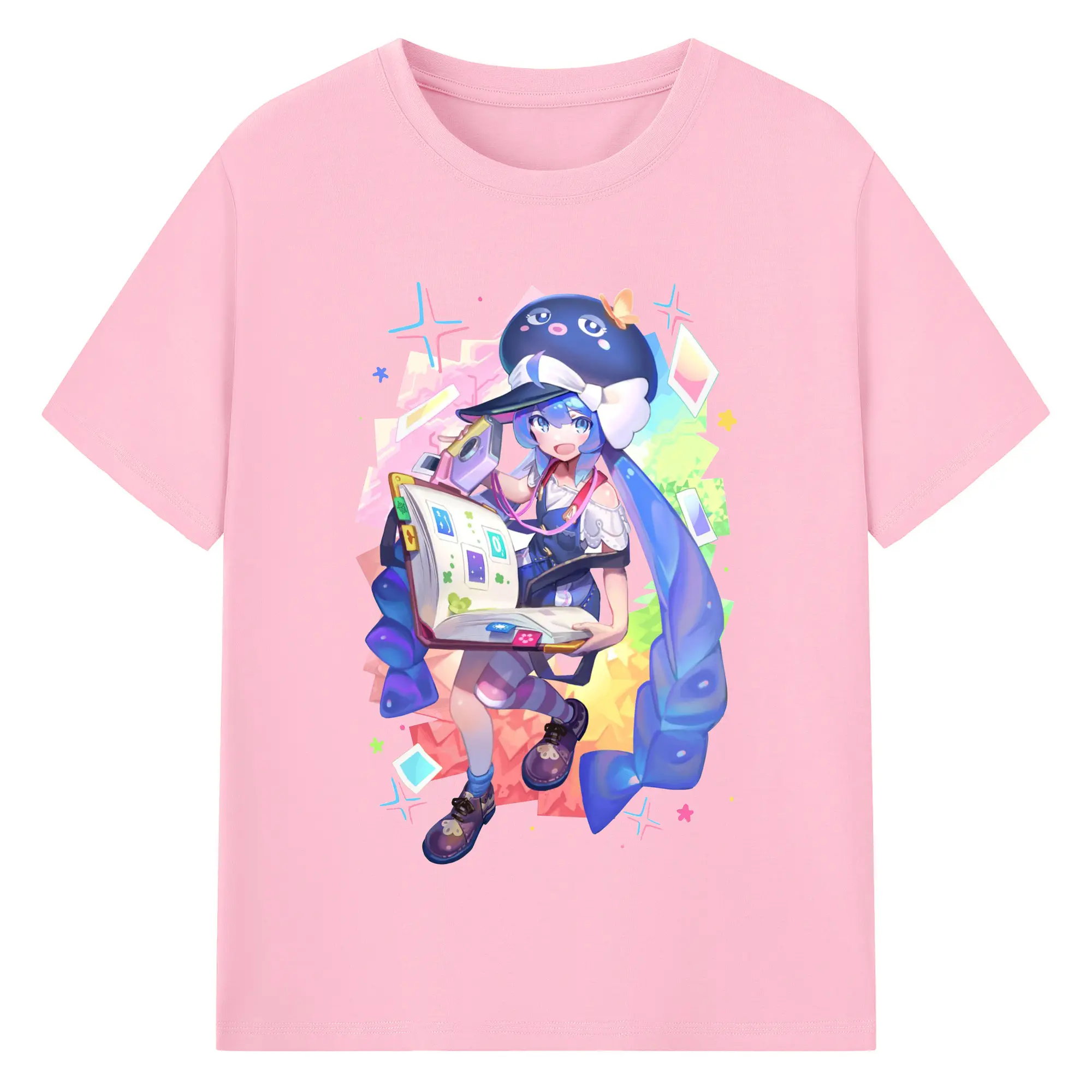 原神 Furina 限定デザイン キュートキャラクター - 綿100% 半袖Tシャツ ・ フロントプリント ・ 快適 通気性 ・ 日常使い 散歩 スポーツ用