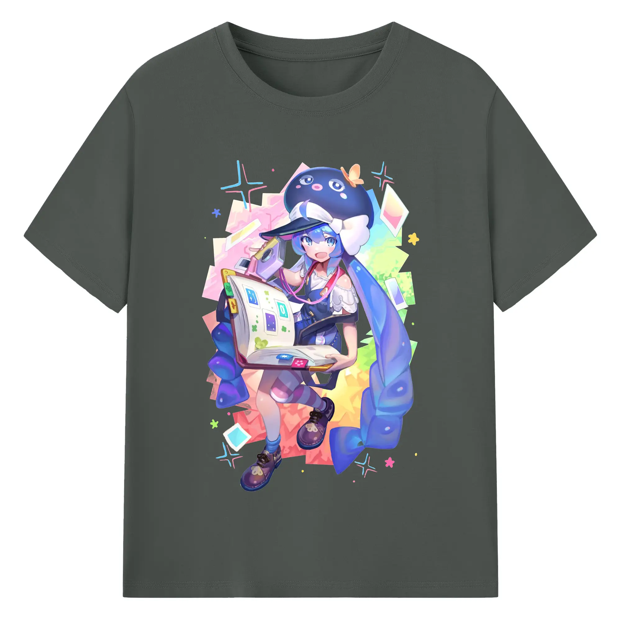 GUMI バーチャルアイドル - 綿100% 半袖Tシャツ ・ フロントプリント ・ 快適 通気性 ・ 日常使い 散歩 スポーツ用