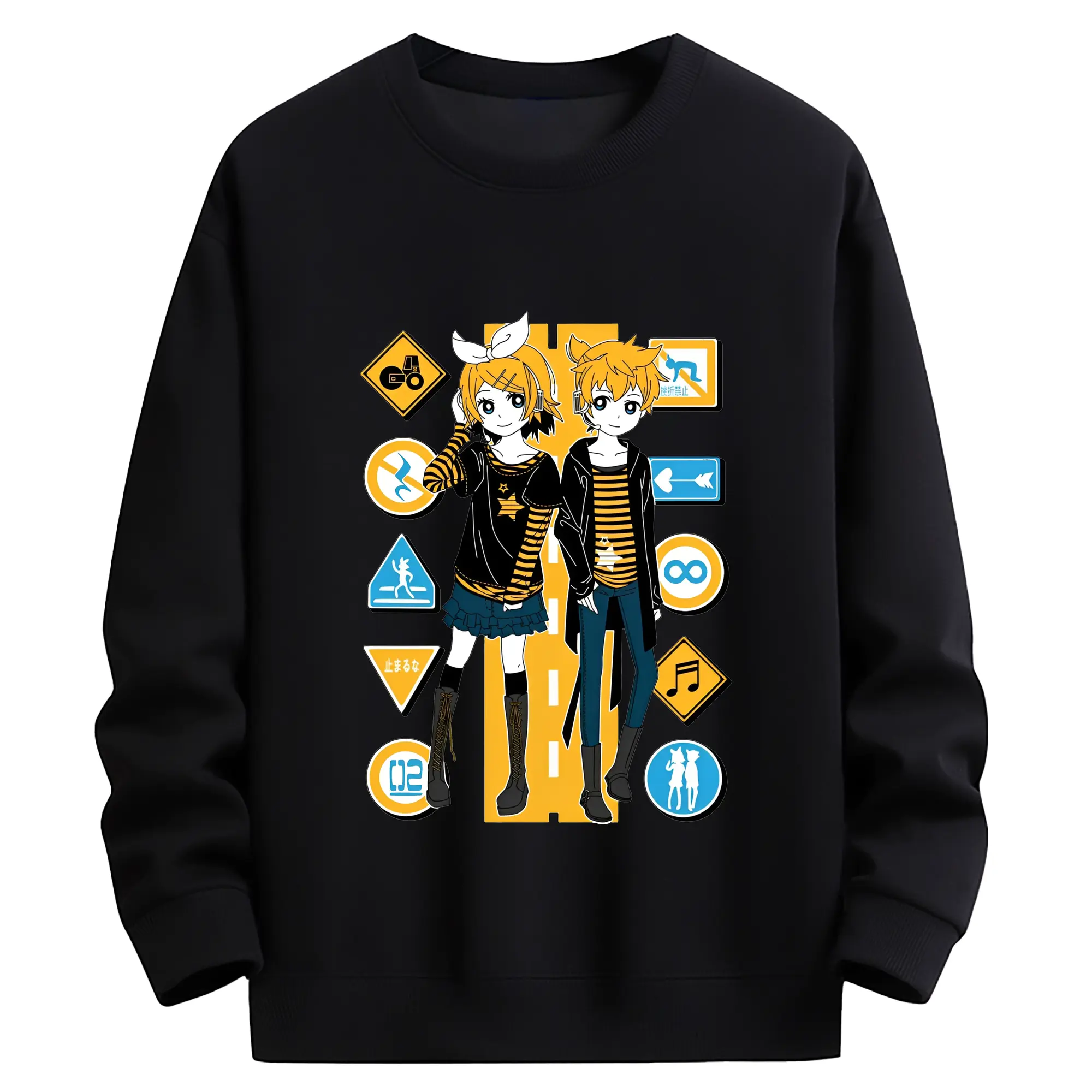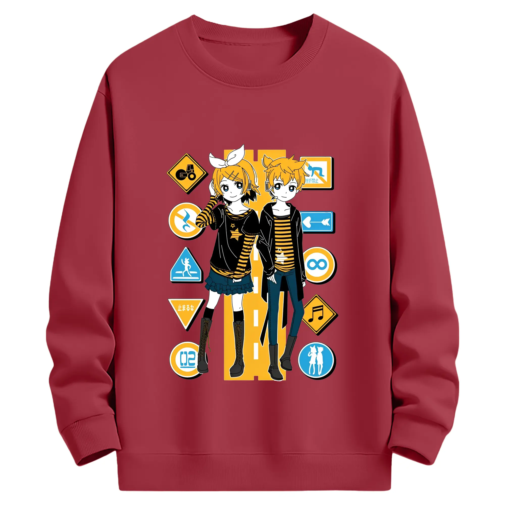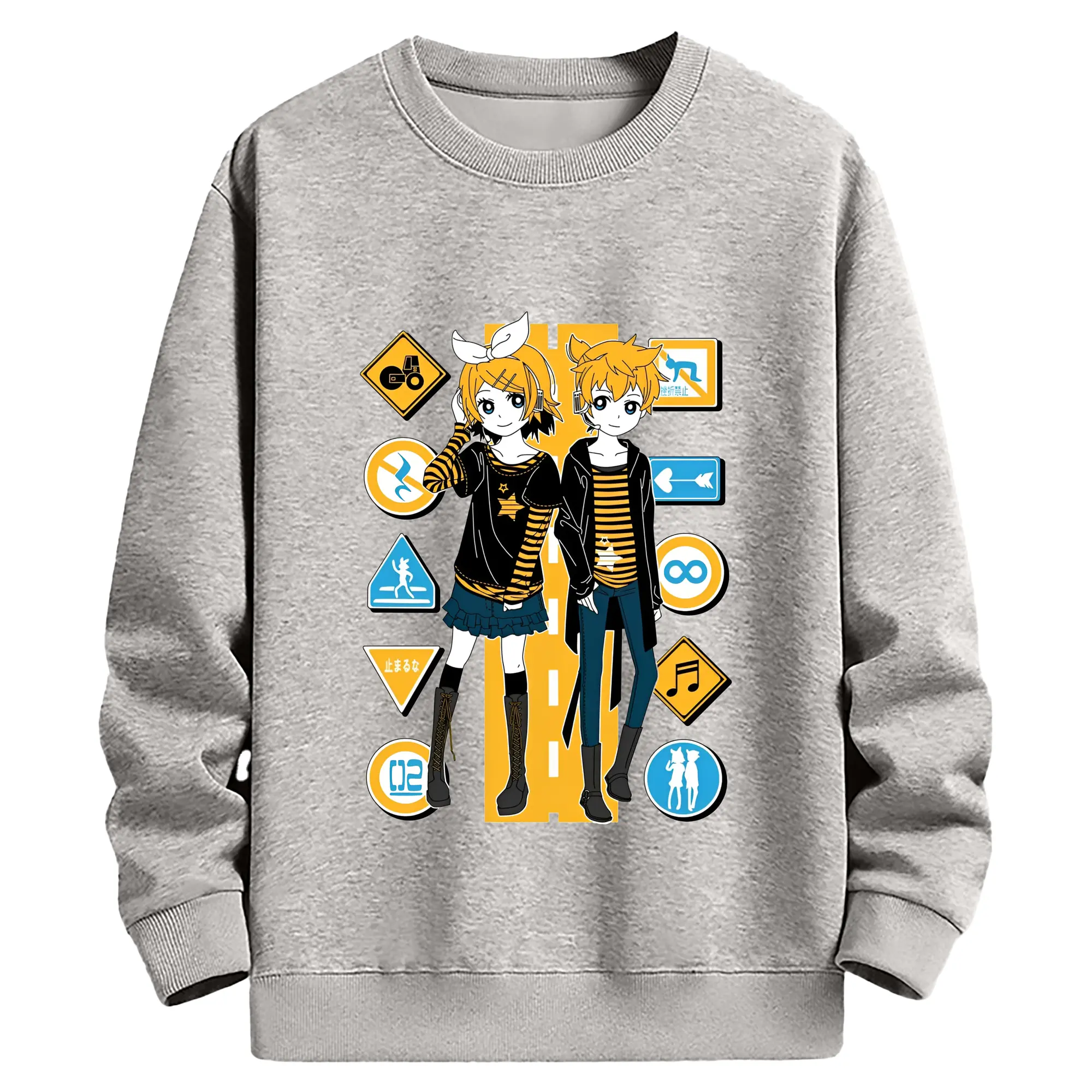 鏡音リン・レン - 高品質 クルーネック スウェット ・ コットン59% ポリエステル41% ・ ユニセックス 長袖 トレーナー ・ カジュアル デイリー スポーツ 散歩用