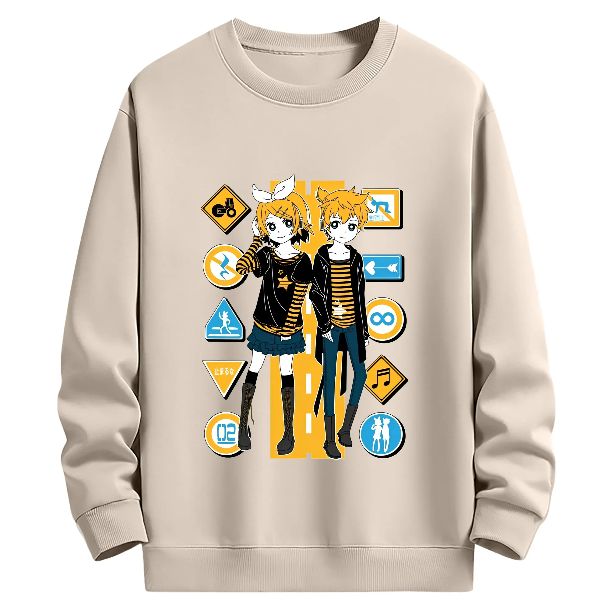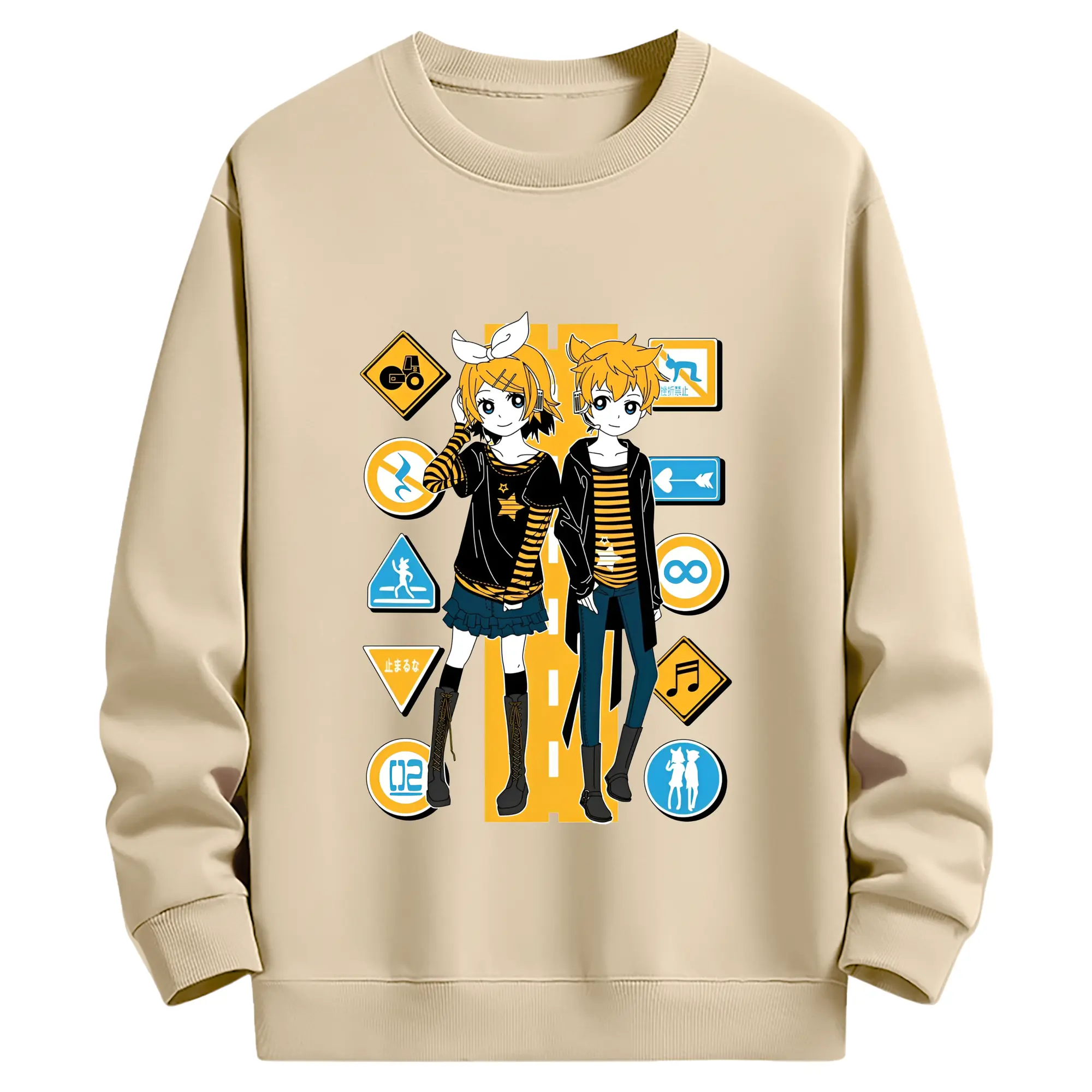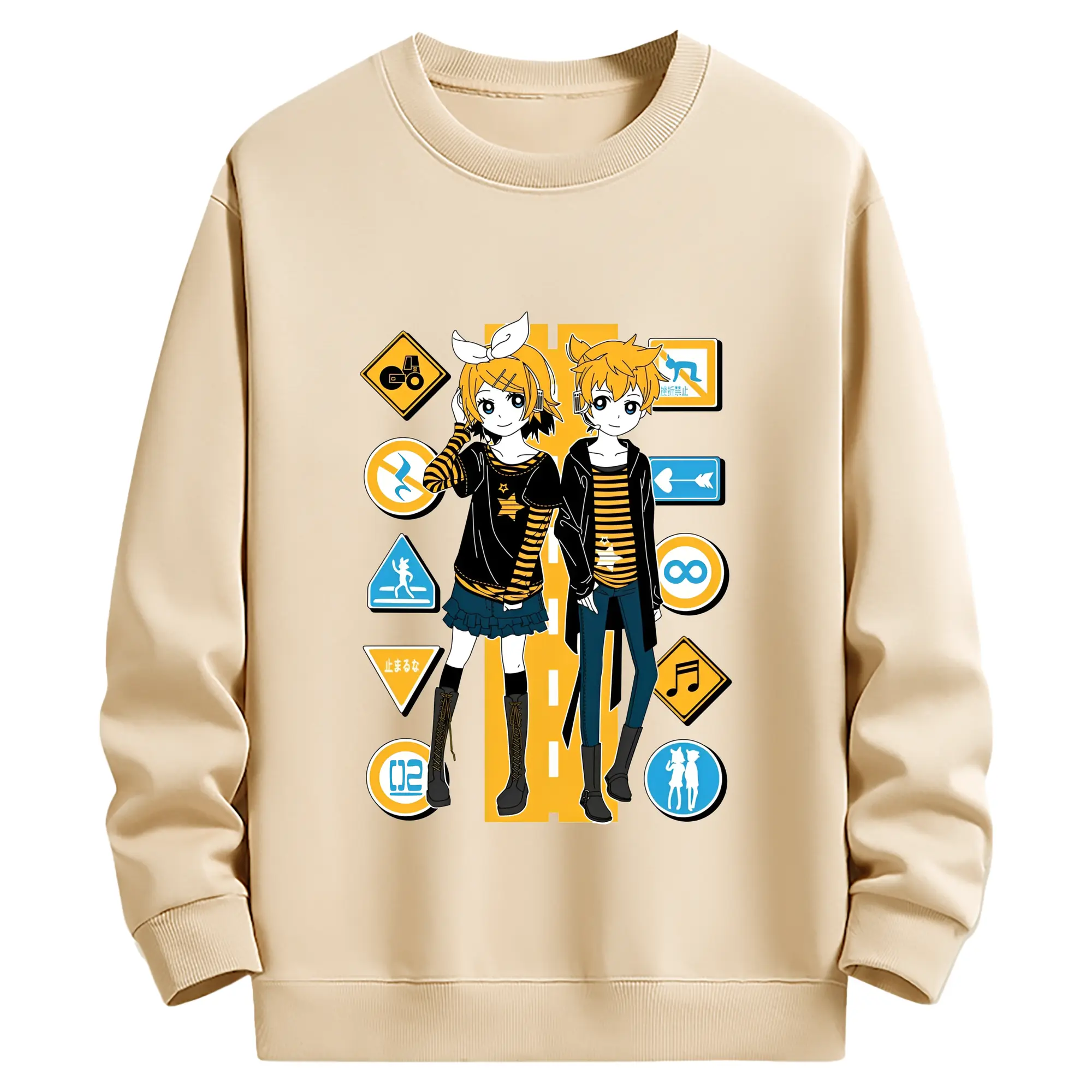 鏡音リン・レン - 高品質 クルーネック スウェット ・ コットン59% ポリエステル41% ・ ユニセックス 長袖 トレーナー ・ カジュアル デイリー スポーツ 散歩用