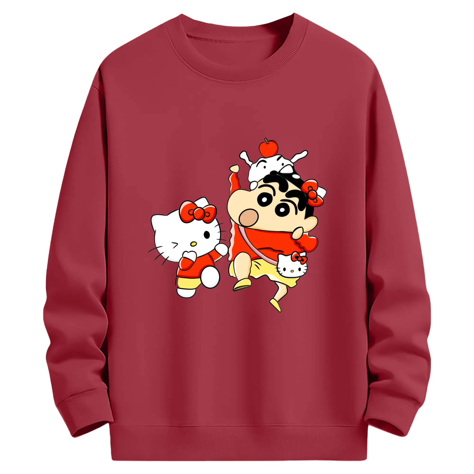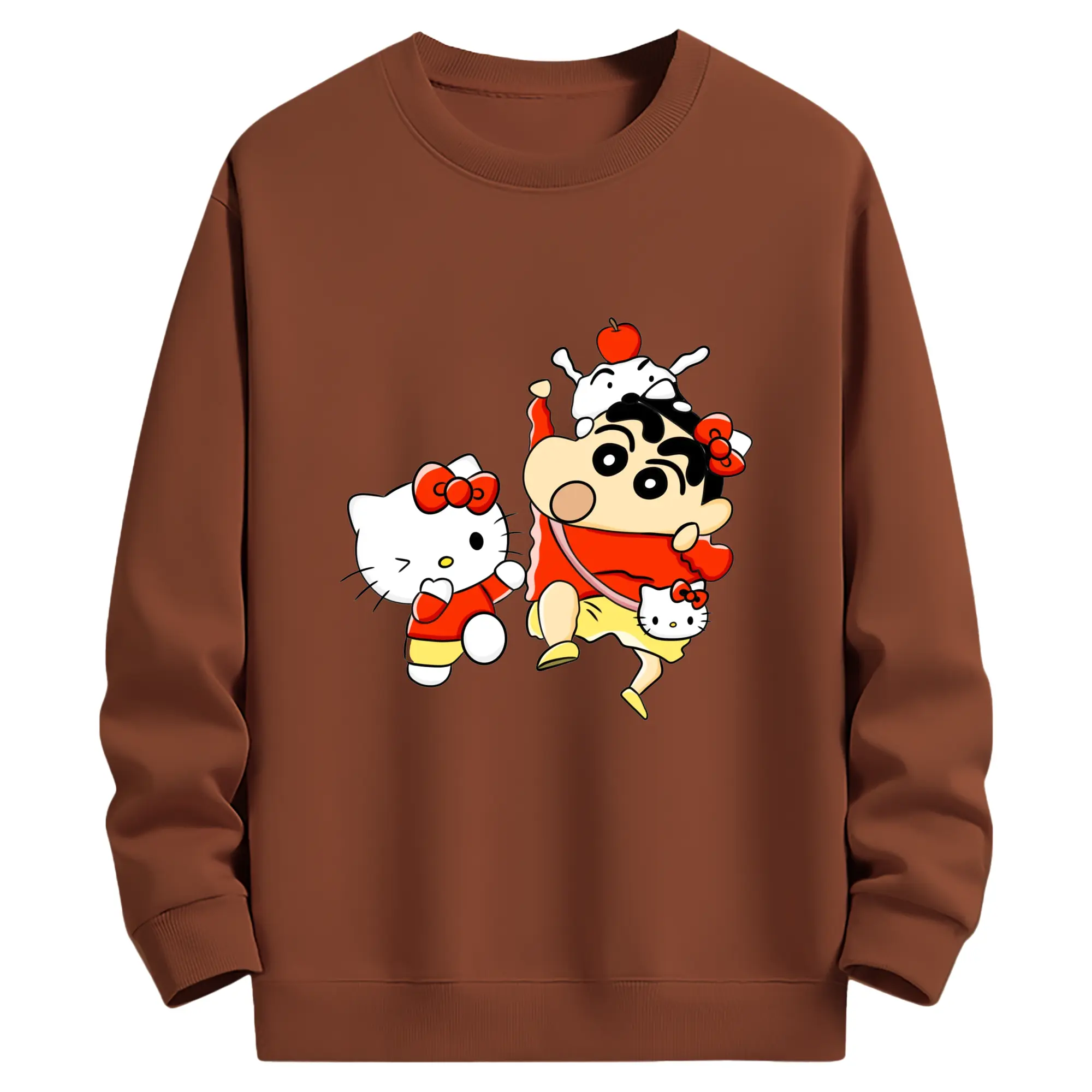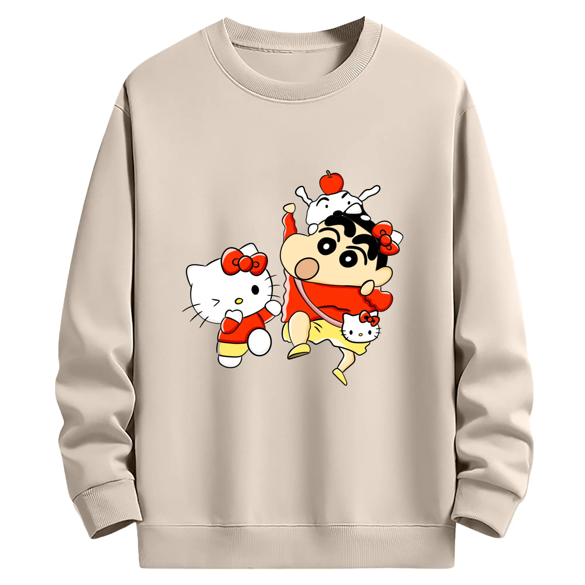 2025クレヨンしんちゃん × ハローキティ 限定コラボ - 綿100% 半袖Tシャツ ・ フロントプリント ・ 快適 通気性 ・ 日常使い 散歩 スポーツ用