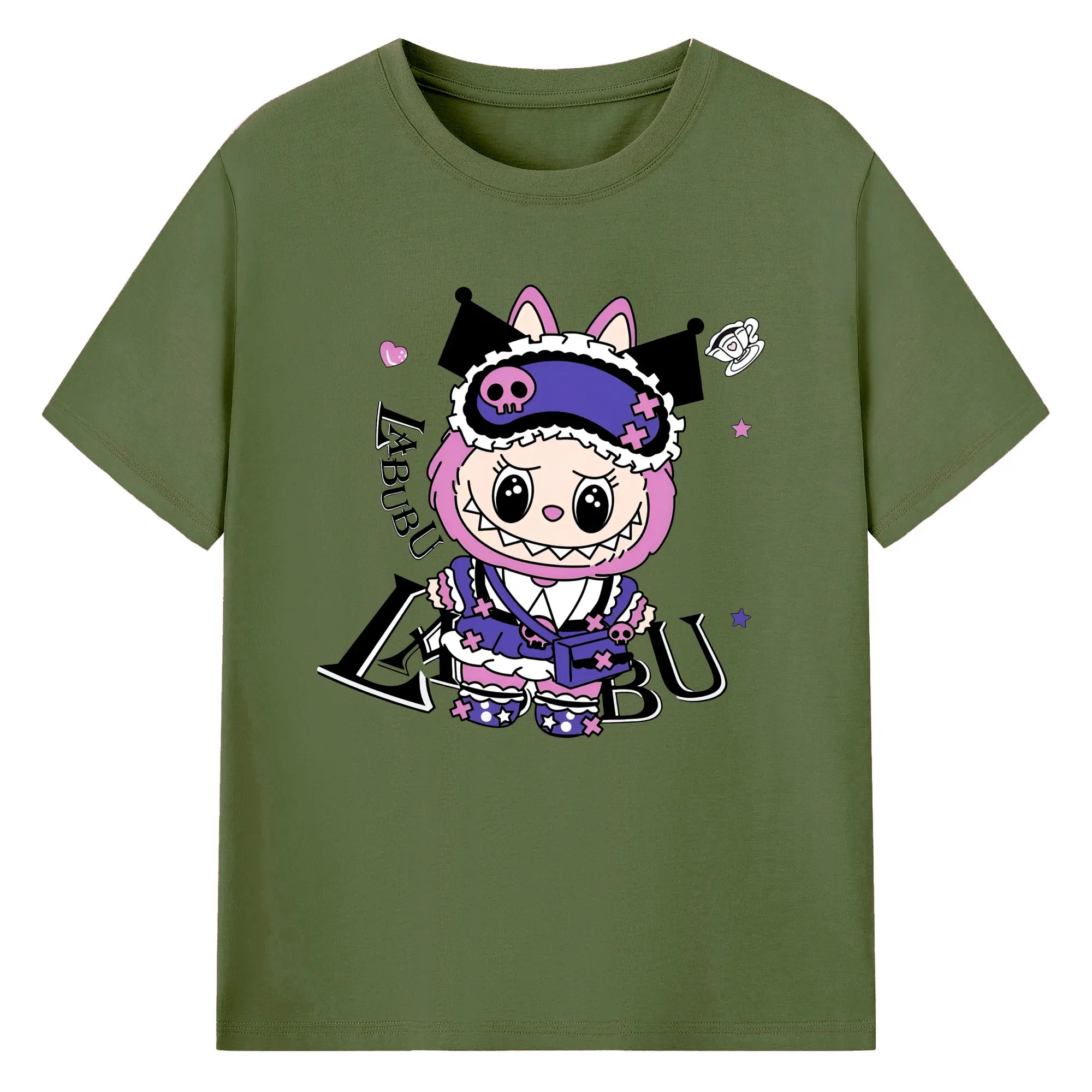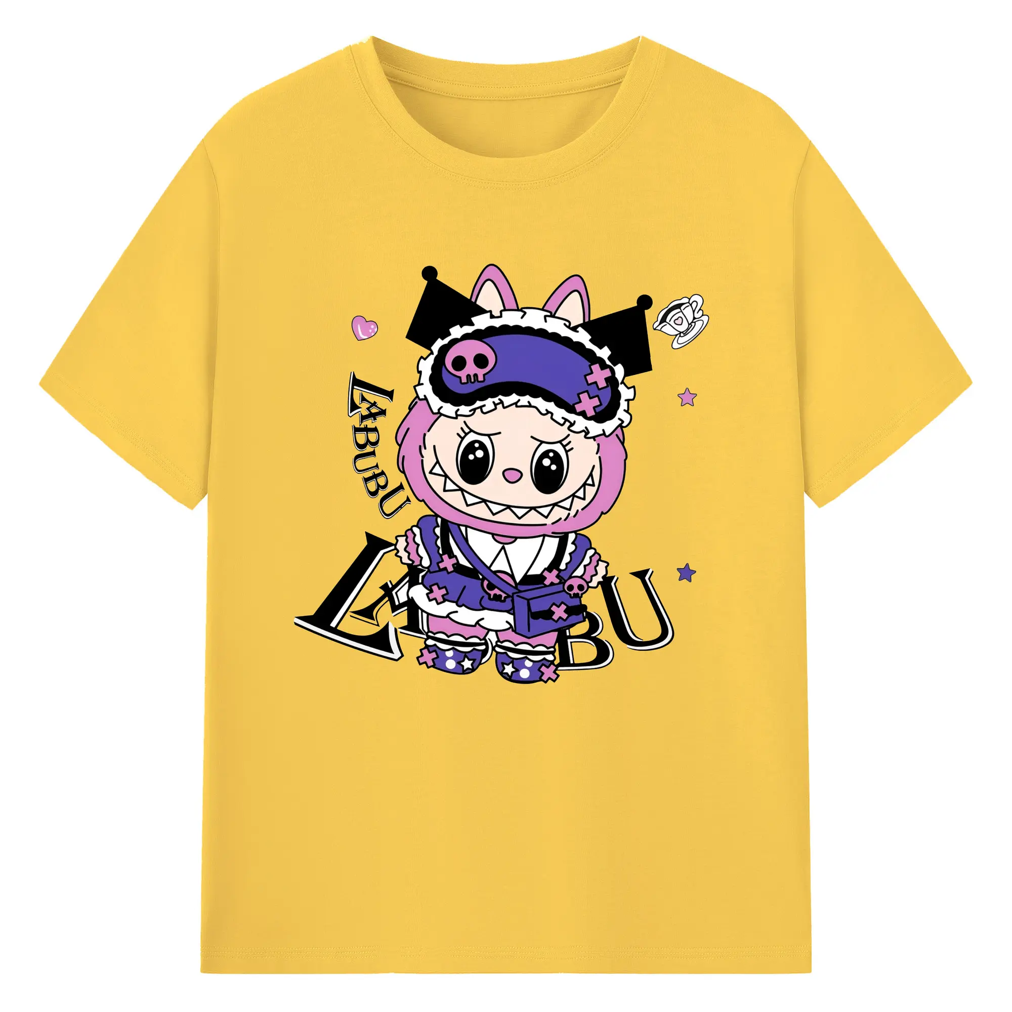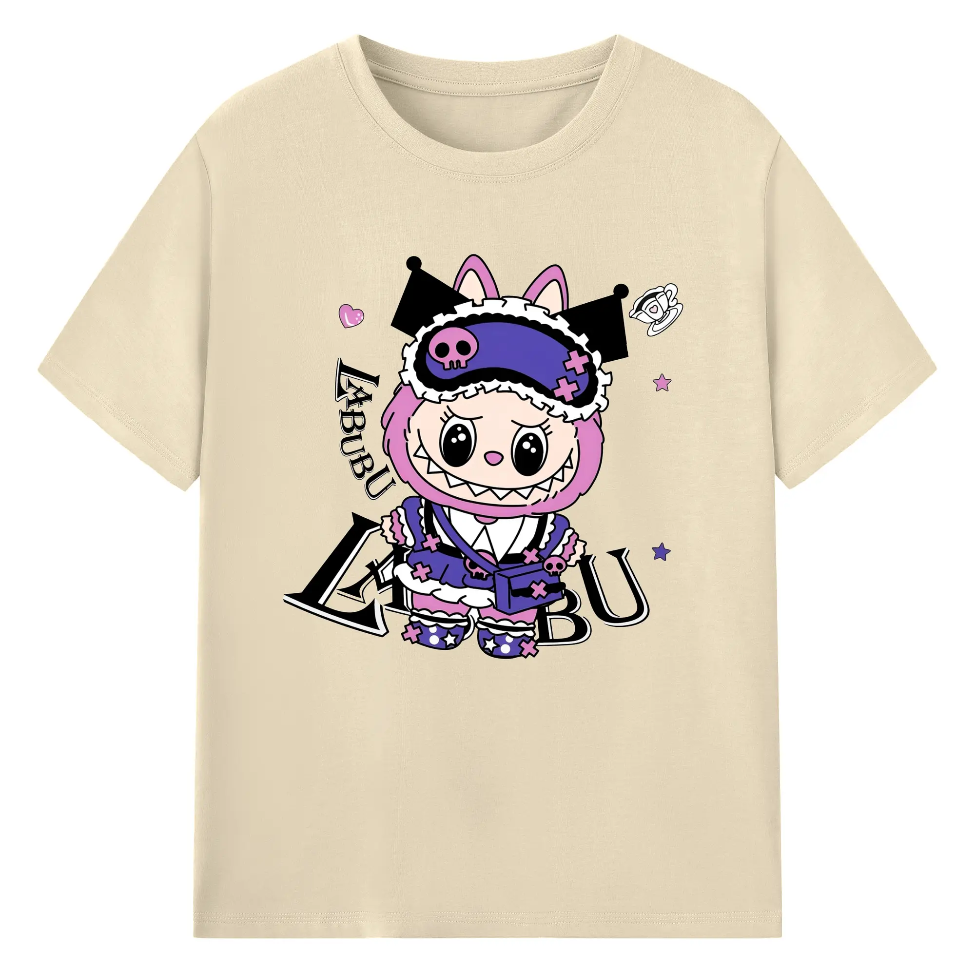 2025クロミ × ラブブ 限定 - 綿100% ヴィンテージ風 半袖Tシャツ ・ フロントプリント ・ 柔らか肌触り ・ 通気性 快適 ・ スポーツ カジュアル 外出用