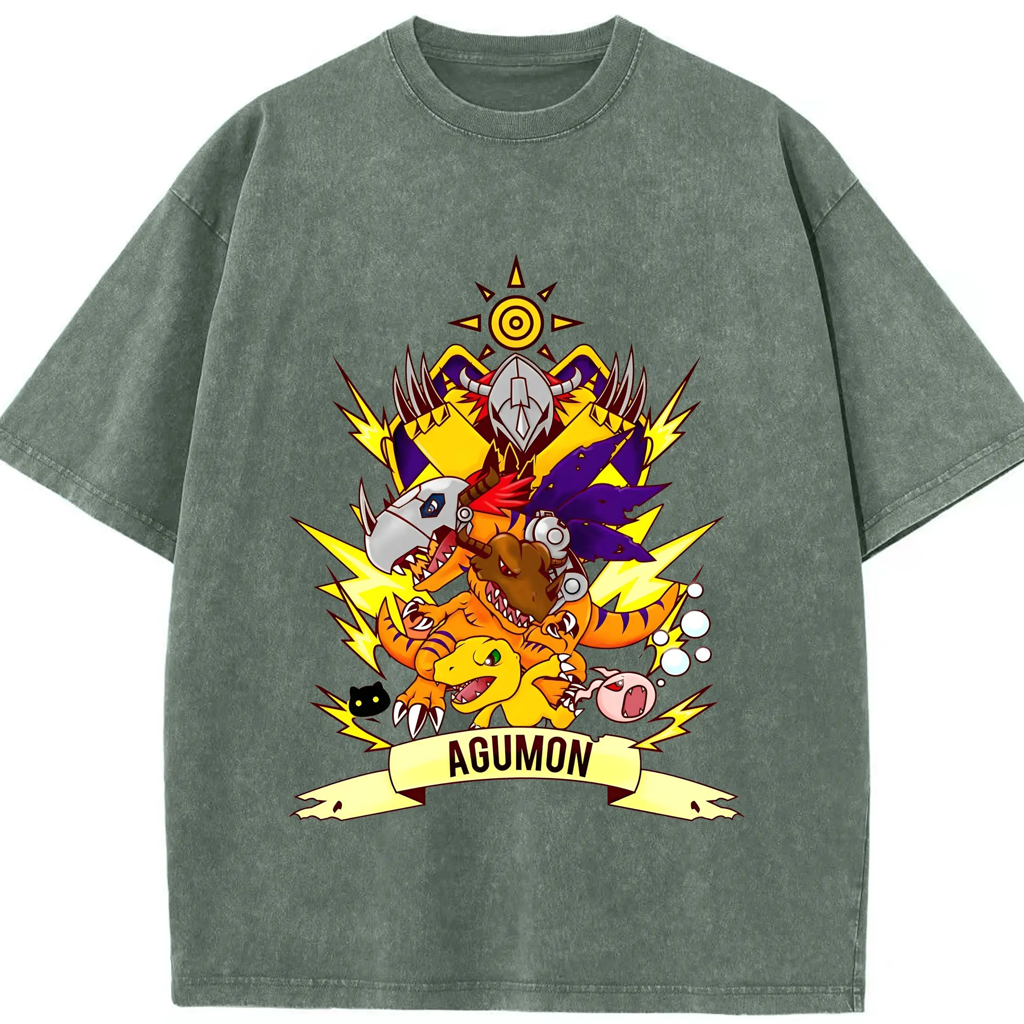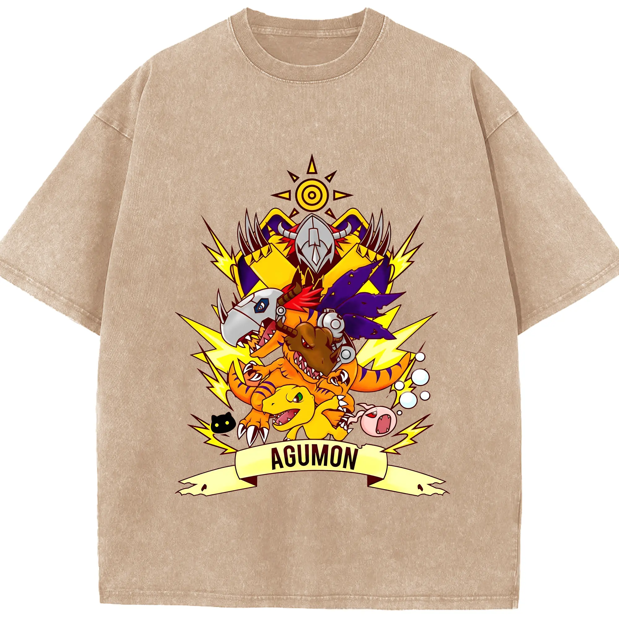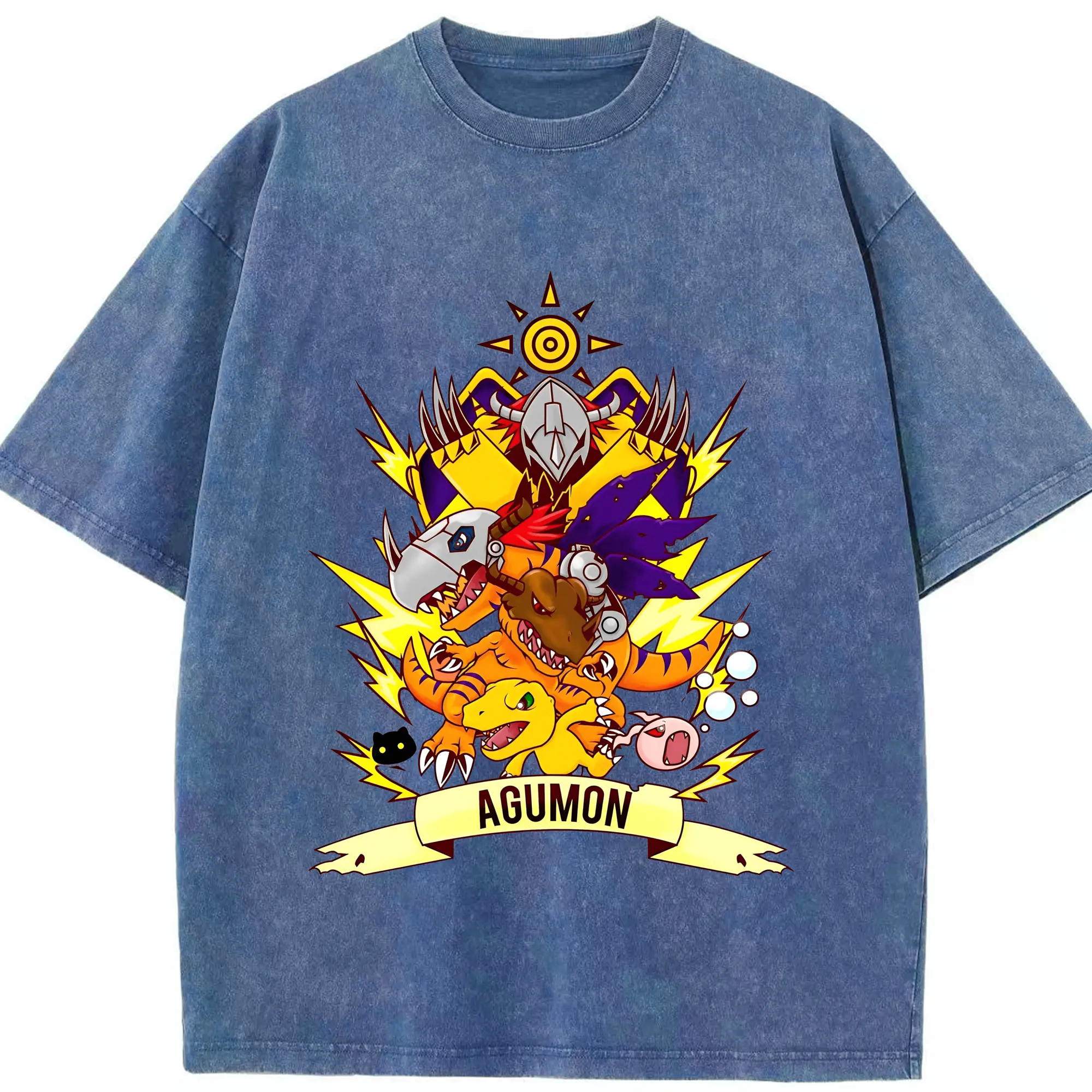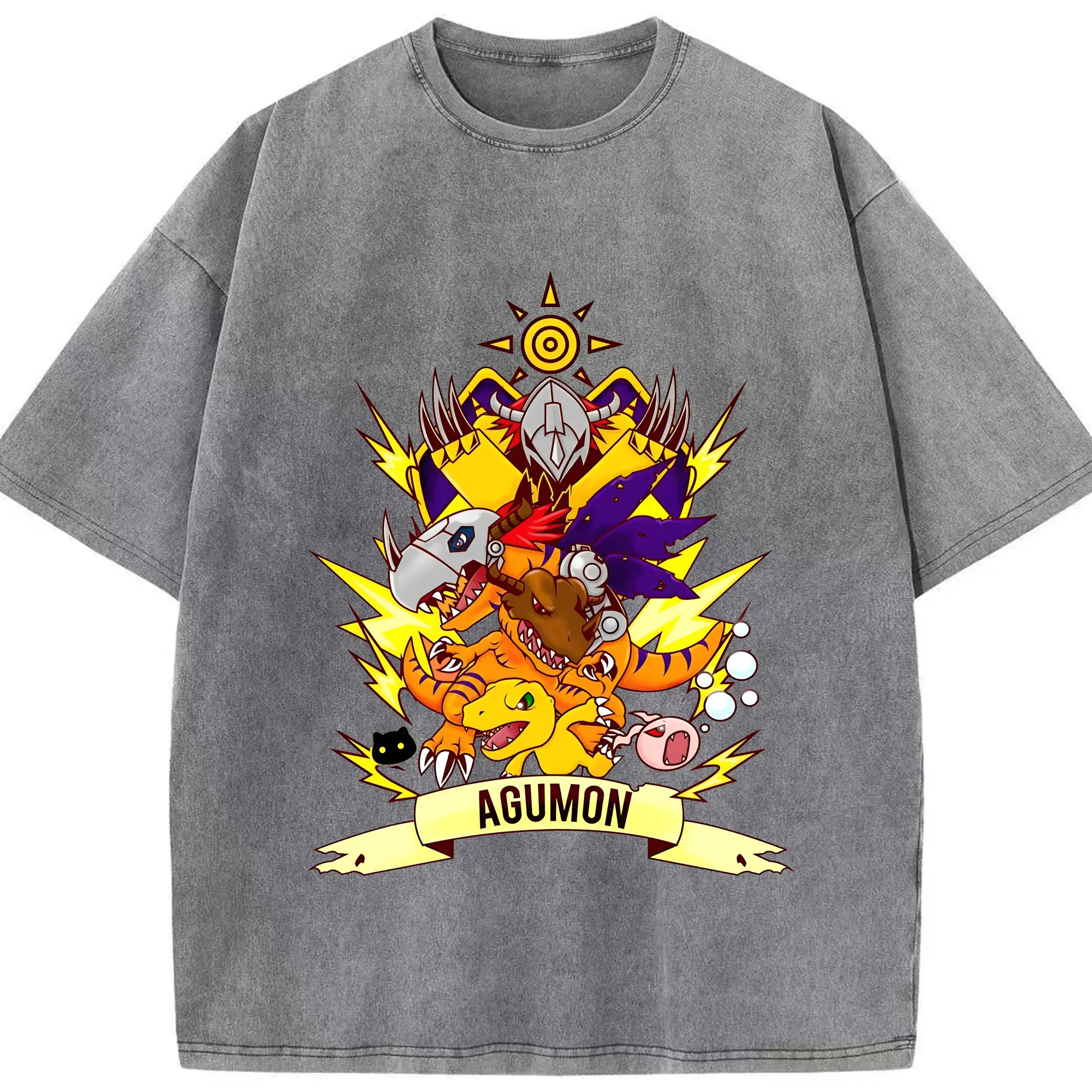 アグモン八神 太一限定 - 綿100% ヴィンテージ風 半袖Tシャツ ・ フロントプリント ・ 柔らか肌触り ・ 通気性 快適 ・ スポーツ カジュアル 外出用