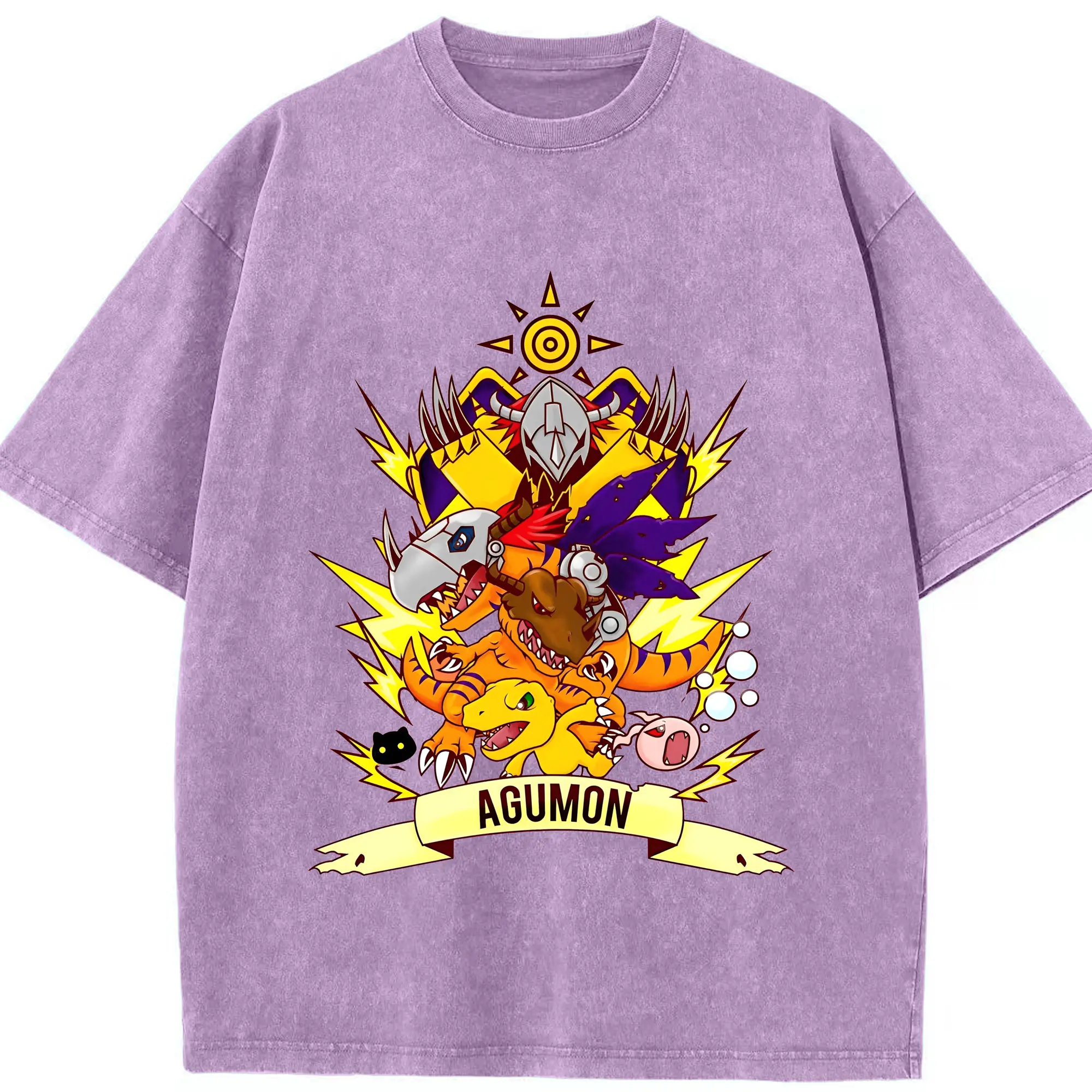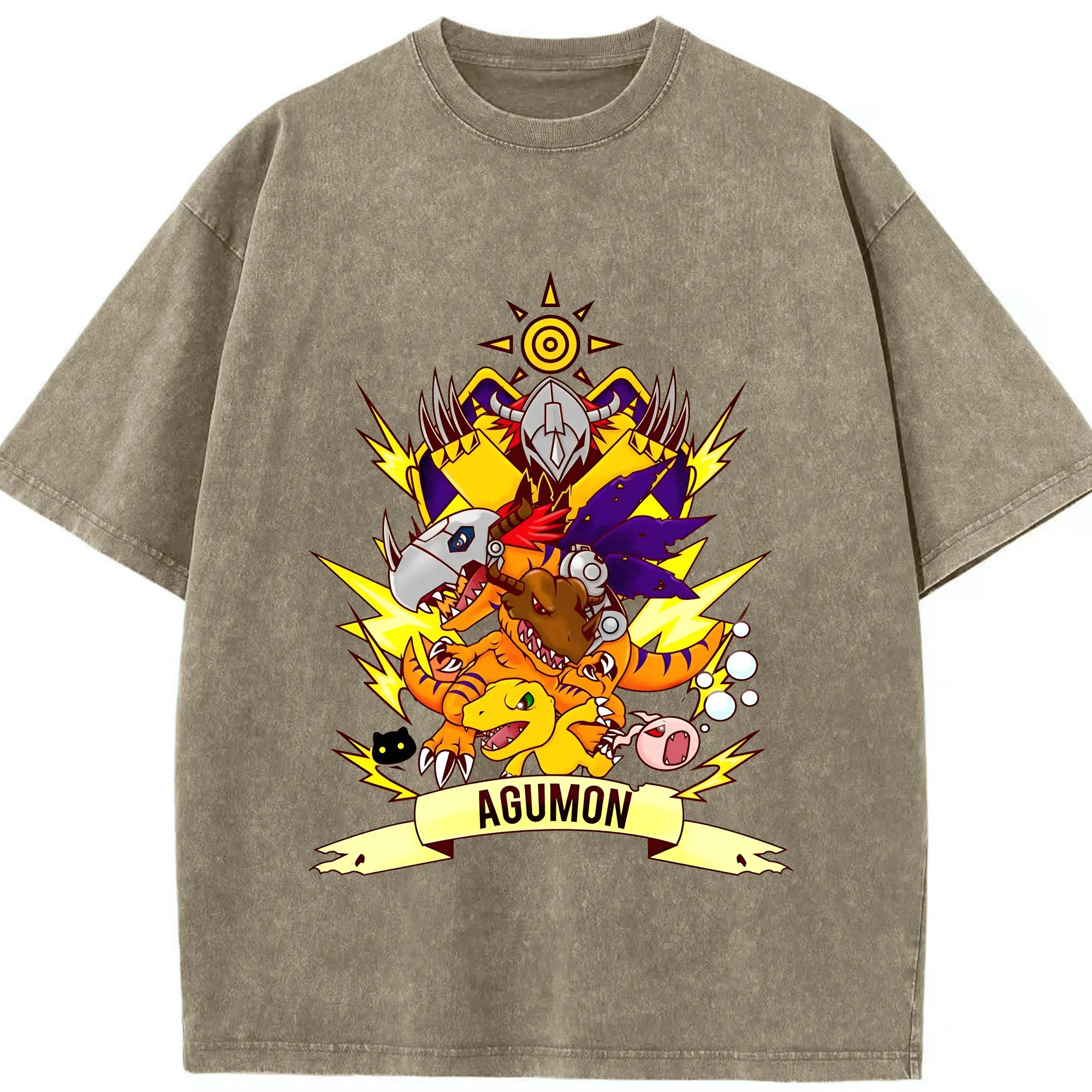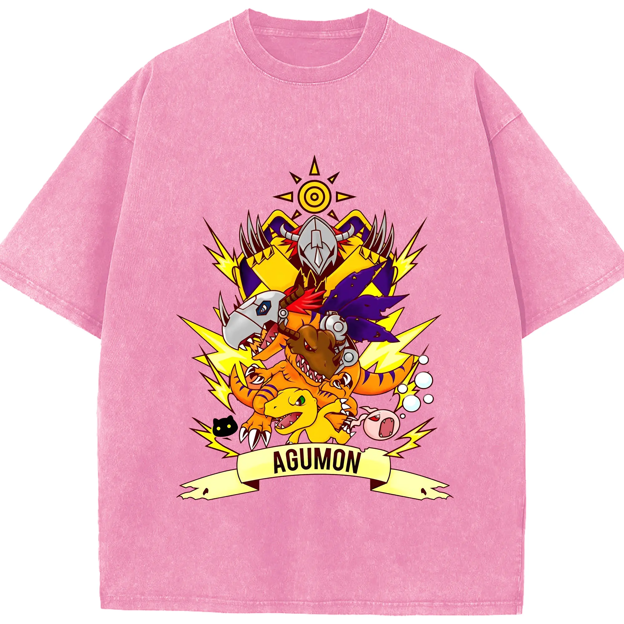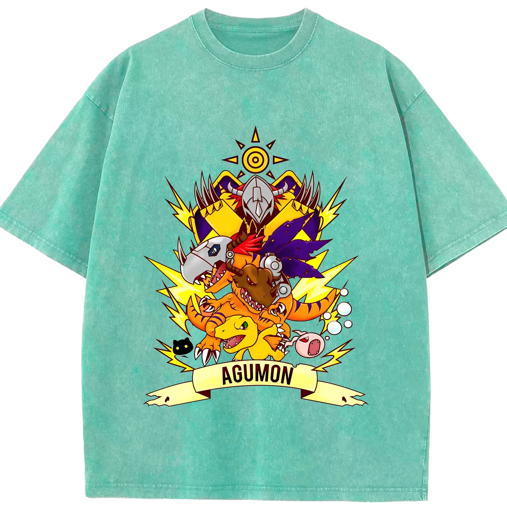 アグモン八神 太一限定 - 綿100% ヴィンテージ風 半袖Tシャツ ・ フロントプリント ・ 柔らか肌触り ・ 通気性 快適 ・ スポーツ カジュアル 外出用